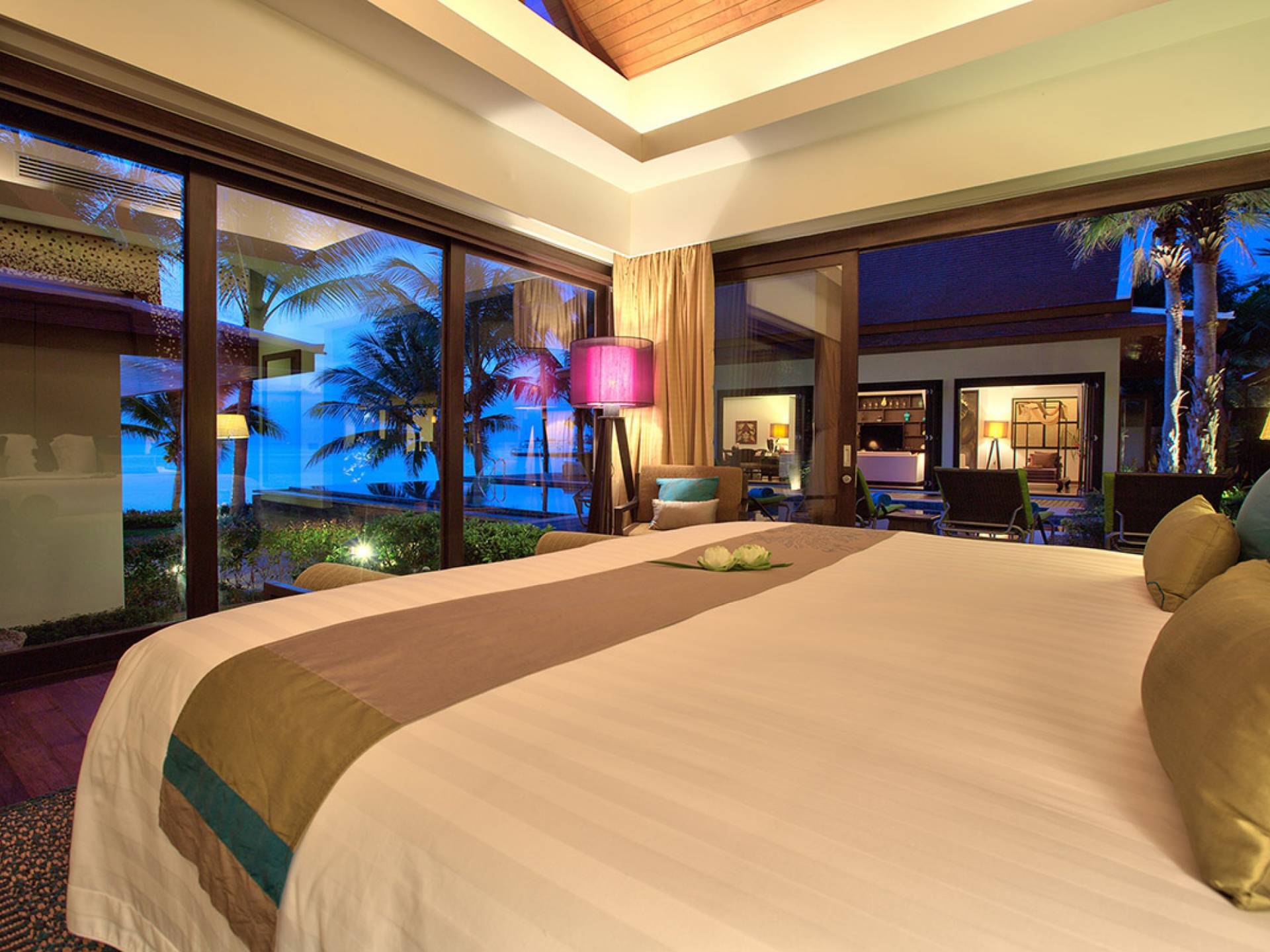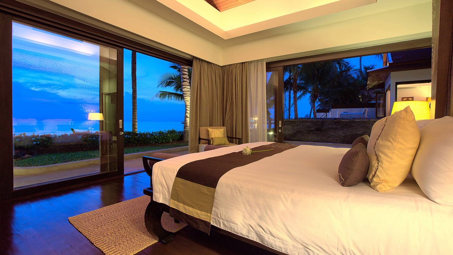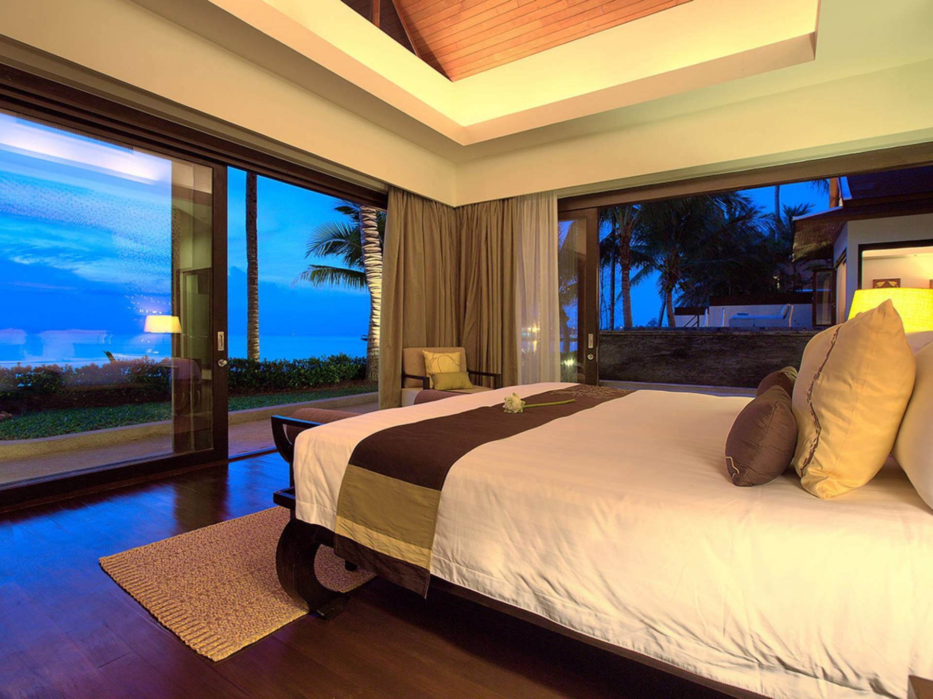 Le cinque ampie camere matrimoniali con bagno privato di Villa Baan Chang a Dhevatara Cove Samui si aprono tutte sugli incantevoli giardini tropicali. Due delle suite sono vicine all'ingresso della villa, mentre una si trova sopra la cucina e vanta una terrazza privata con vista sull'oceano. Un'altra camera da letto si trova a bordo piscina e la suite principale occupa il proprio padiglione sulla spiaggia che offre viste sulla sabbia soffice e sulle dolci onde direttamente dal letto.