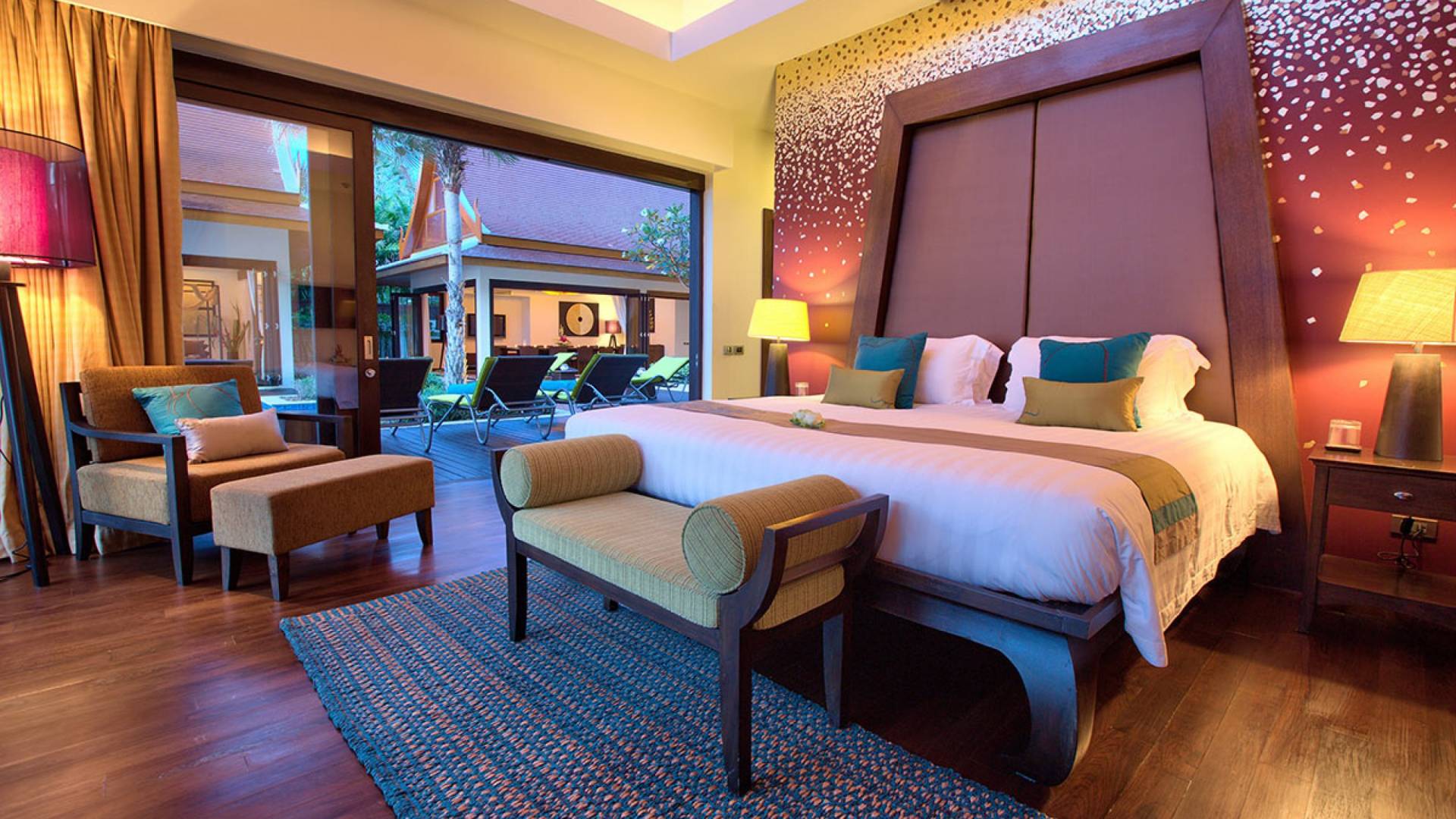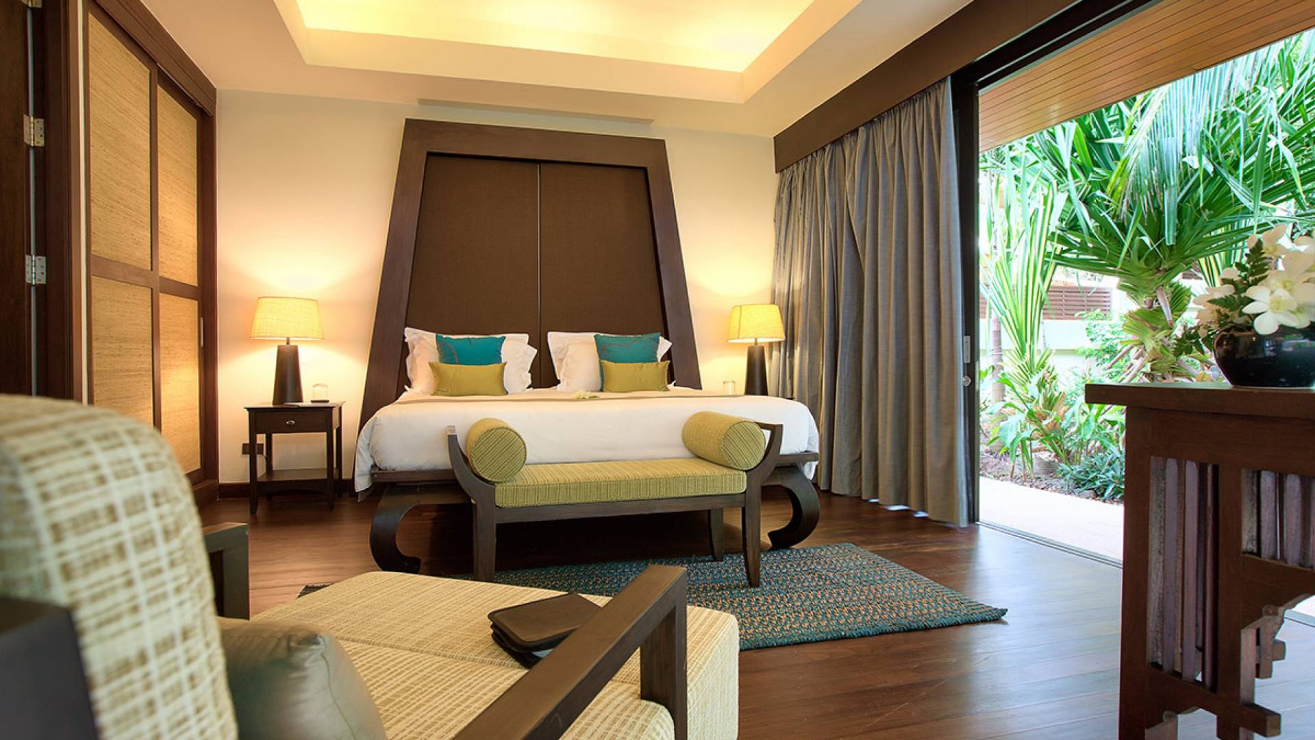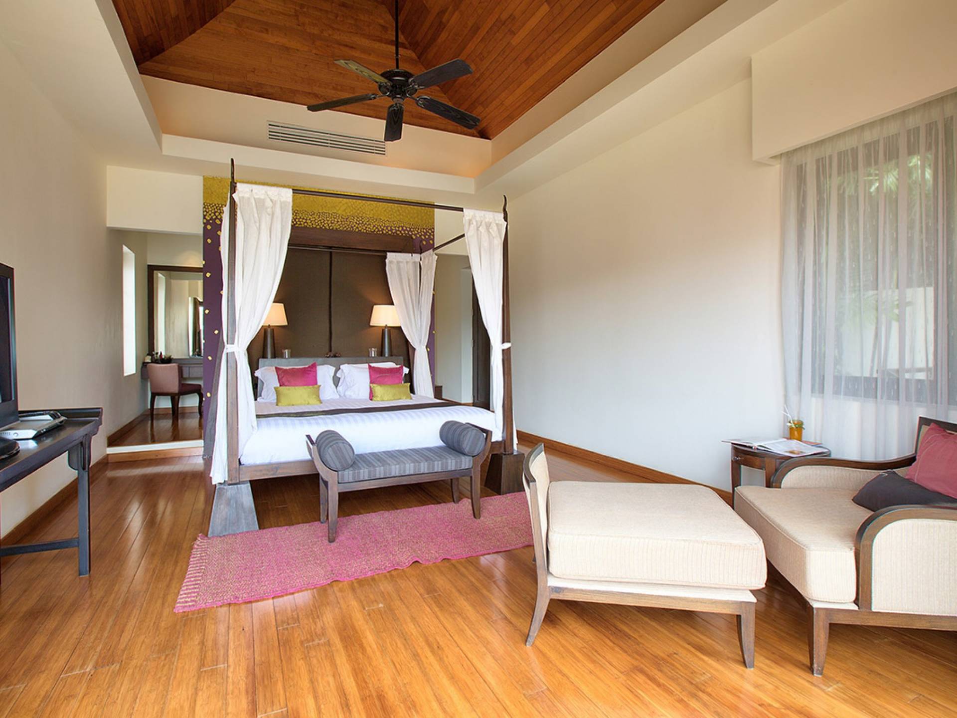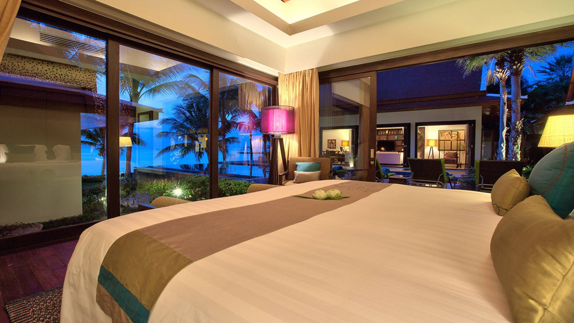 Le cinque ampie camere matrimoniali con bagno privato di Villa Baan Chang a Dhevatara Cove Samui si aprono tutte sugli incantevoli giardini tropicali. Due delle suite sono vicine all'ingresso della villa, mentre una si trova sopra la cucina e vanta una terrazza privata con vista sull'oceano. Un'altra camera da letto si trova a bordo piscina e la suite principale occupa il proprio padiglione sulla spiaggia che offre viste sulla sabbia soffice e sulle dolci onde direttamente dal letto.