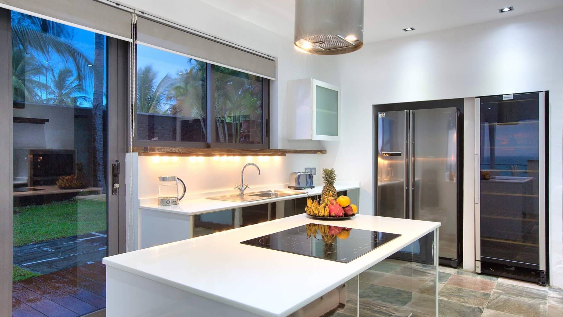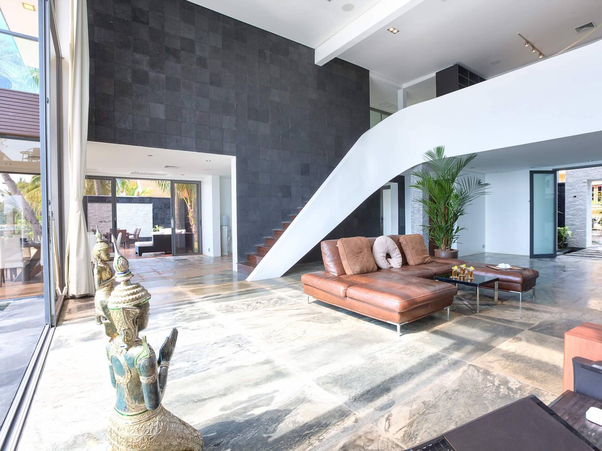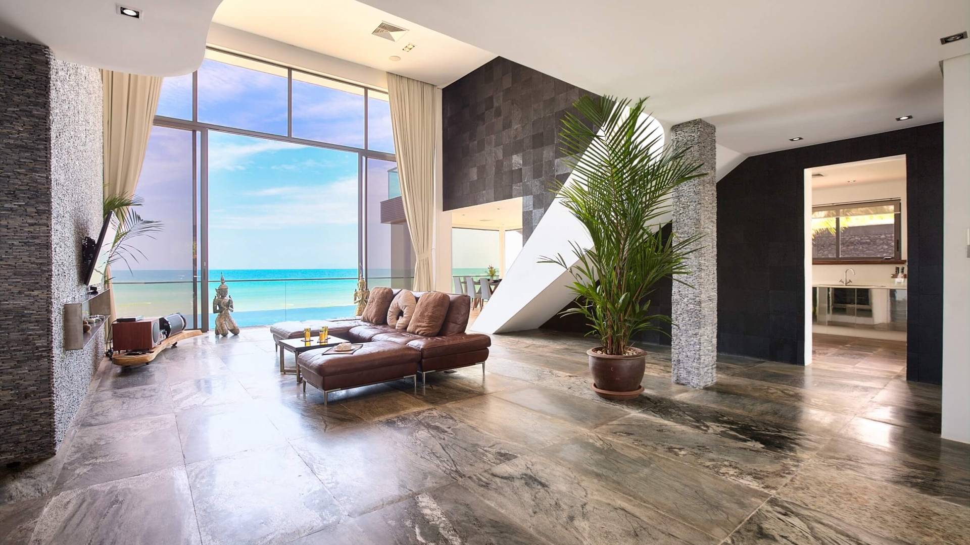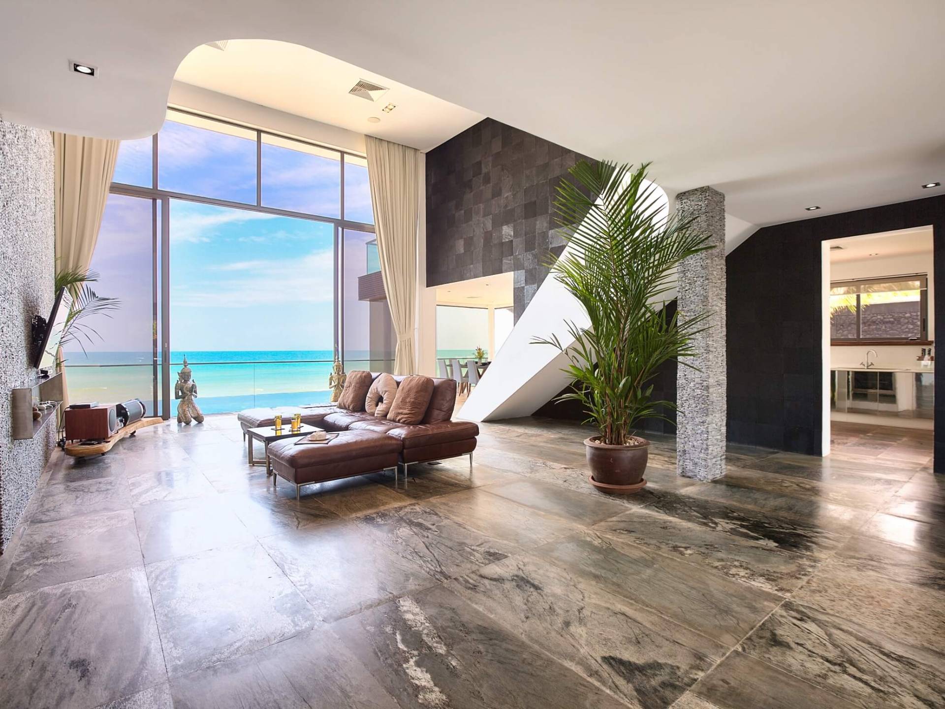 La giungla circostante rimane intatta e gli unici suoni che sentirai saranno quelli della natura. Se desideri ardentemente la civiltà, l'esclusivo Nikki Beach Club internazionale è nelle vicinanze, con alcuni semplici ristoranti e bar tailandesi disseminati lungo la tranquilla strada lungo la strada. Entra nella Villa e lasciati travolgere dalle incredibili viste sul mare attraverso le finestre di vetro dal pavimento al soffitto; apri le finestre e ascolta il mare; una giornata piovosa e tempestosa è un regalo speciale a Villa U in quanto puoi catturare gli spruzzi delle onde che si infrangono a pochi metri dal tuo patio fronte mare.