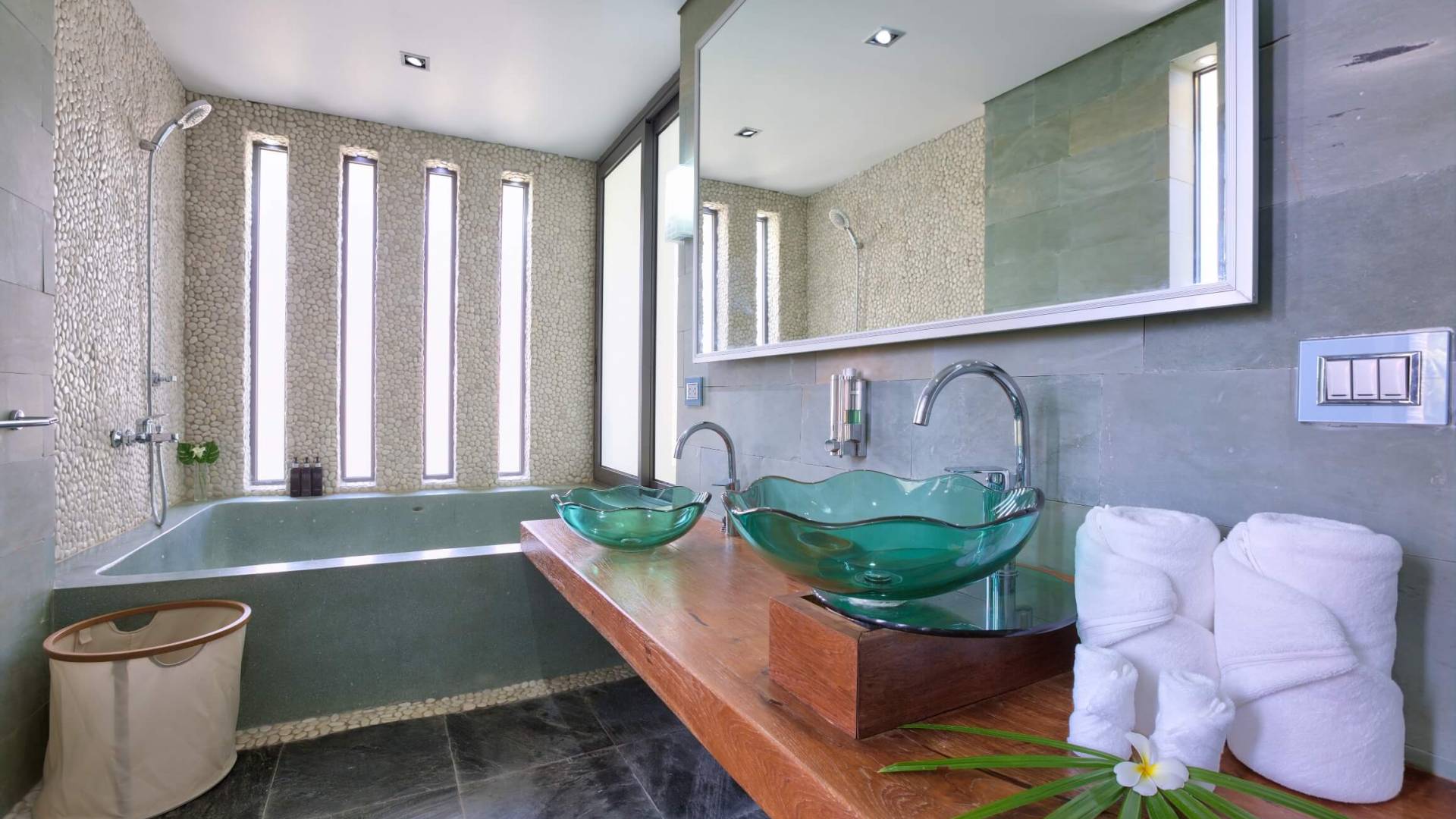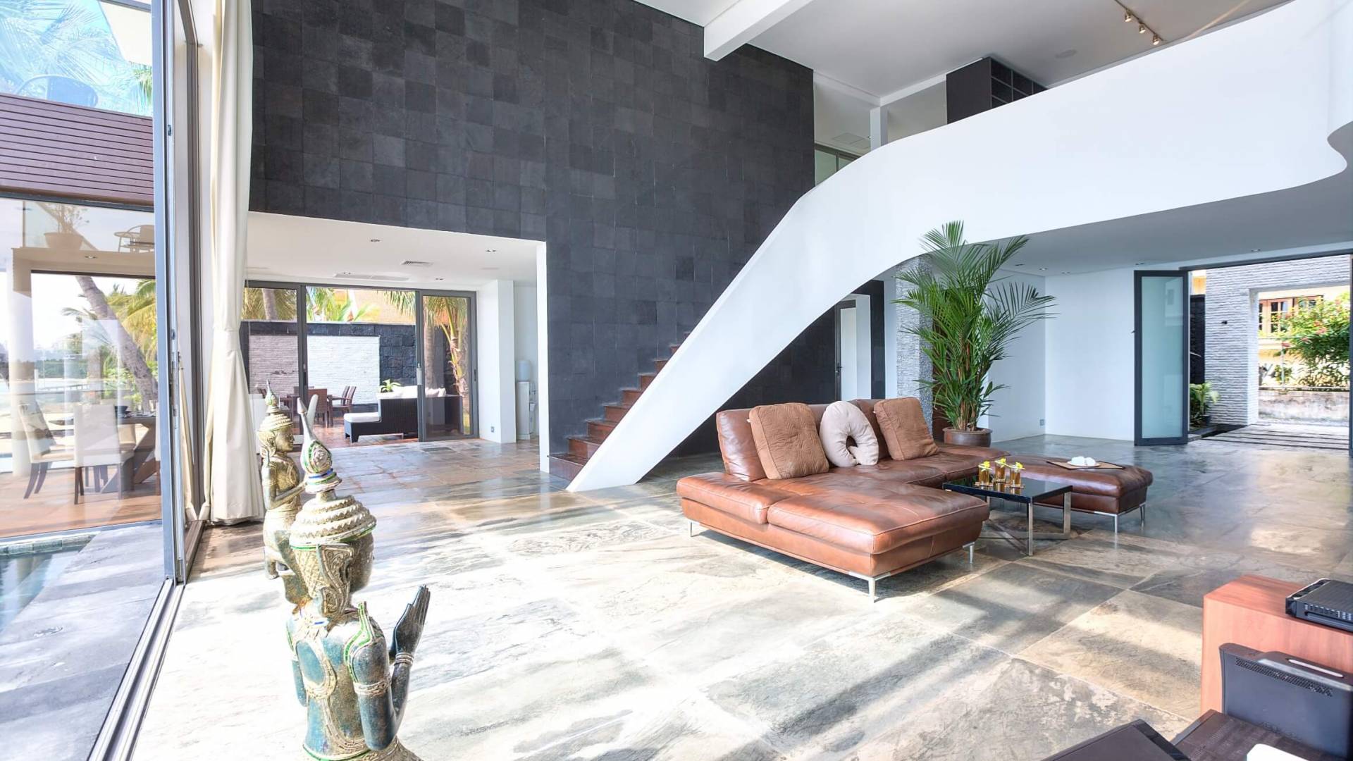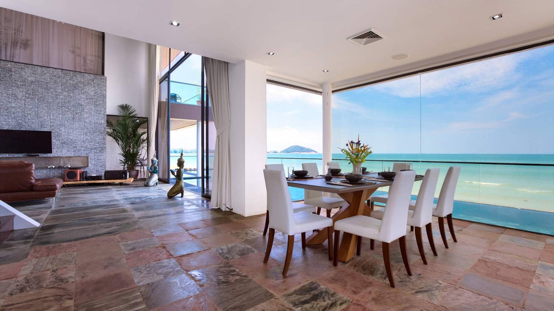 La giungla circostante rimane intatta e gli unici suoni che sentirai saranno quelli della natura. Se desideri ardentemente la civiltà, l'esclusivo Nikki Beach Club internazionale è nelle vicinanze, con alcuni semplici ristoranti e bar tailandesi disseminati lungo la tranquilla strada lungo la strada. Entra nella Villa e lasciati travolgere dalle incredibili viste sul mare attraverso le finestre di vetro dal pavimento al soffitto; apri le finestre e ascolta il mare; una giornata piovosa e tempestosa è un regalo speciale a Villa U in quanto puoi catturare gli spruzzi delle onde che si infrangono a pochi metri dal tuo patio fronte mare.