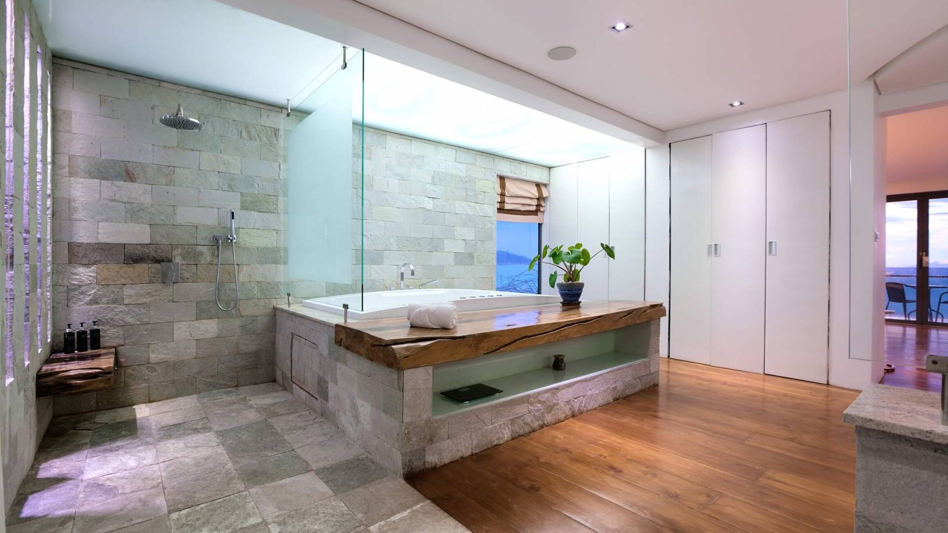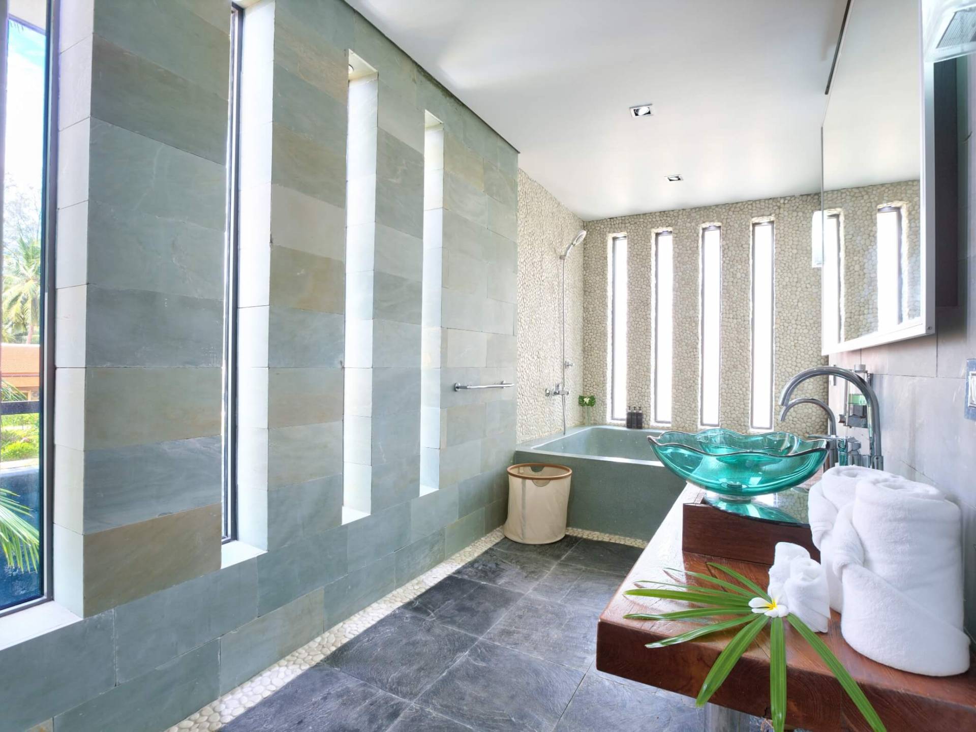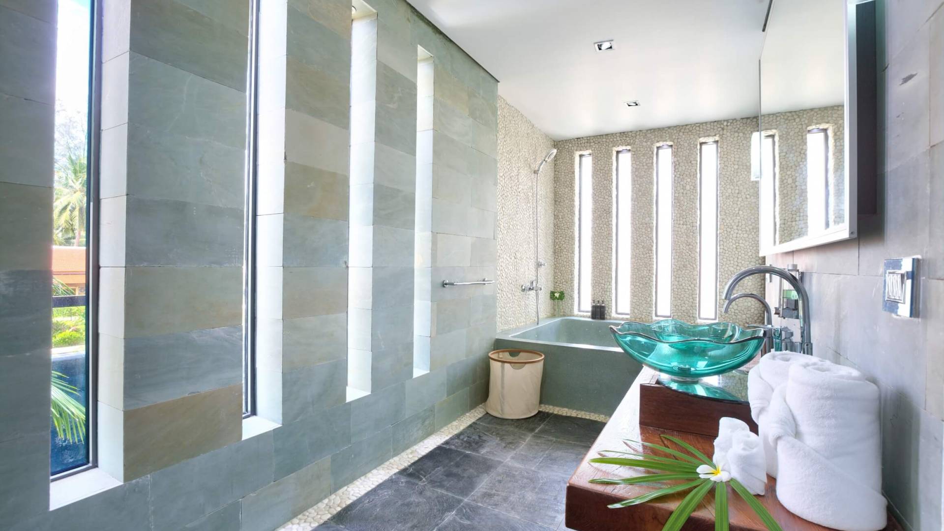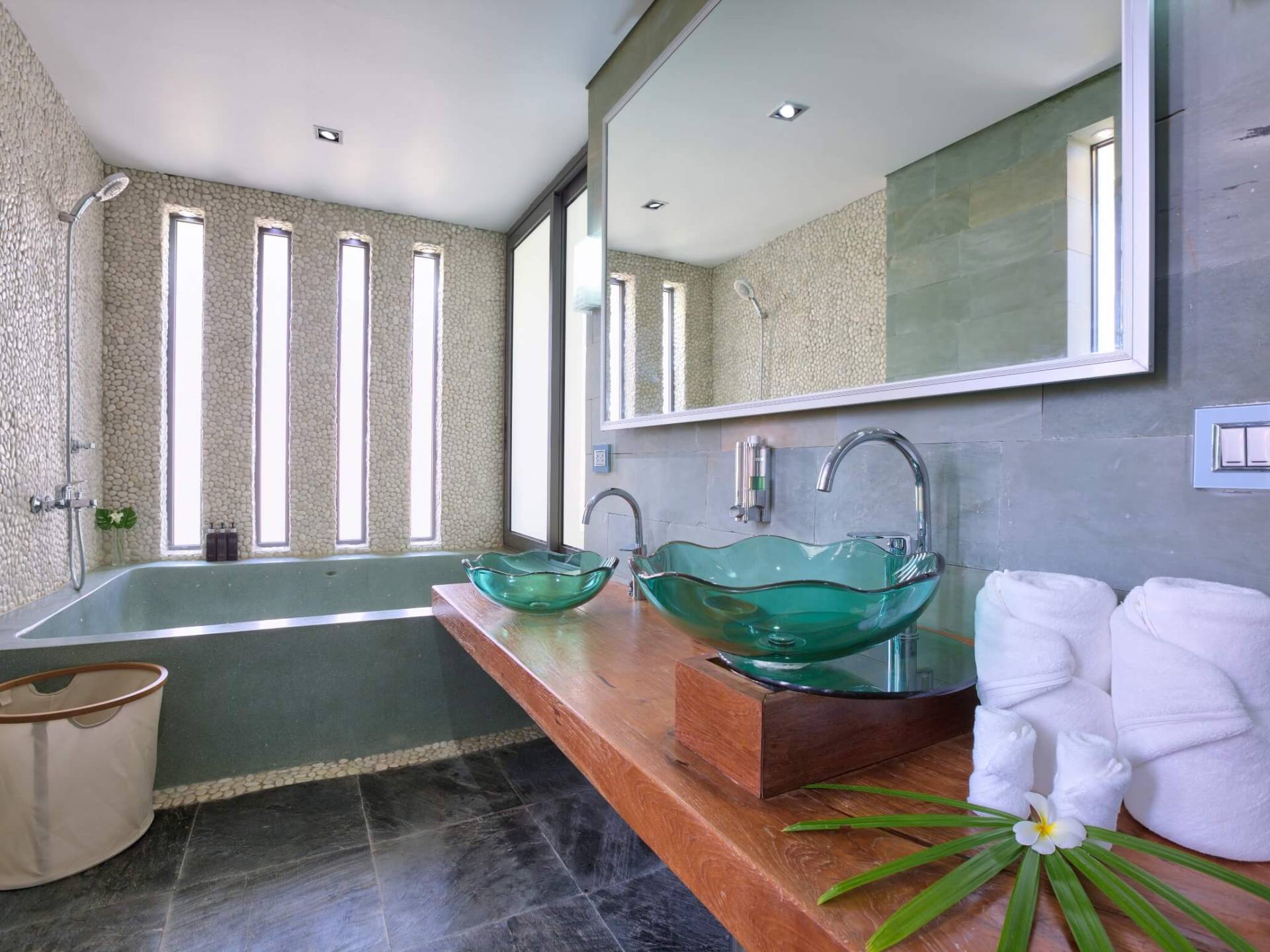 La giungla circostante rimane intatta e gli unici suoni che sentirai saranno quelli della natura. Se desideri ardentemente la civiltà, l'esclusivo Nikki Beach Club internazionale è nelle vicinanze, con alcuni semplici ristoranti e bar tailandesi disseminati lungo la tranquilla strada lungo la strada. Entra nella Villa e lasciati travolgere dalle incredibili viste sul mare attraverso le finestre di vetro dal pavimento al soffitto; apri le finestre e ascolta il mare; una giornata piovosa e tempestosa è un regalo speciale a Villa U in quanto puoi catturare gli spruzzi delle onde che si infrangono a pochi metri dal tuo patio fronte mare.