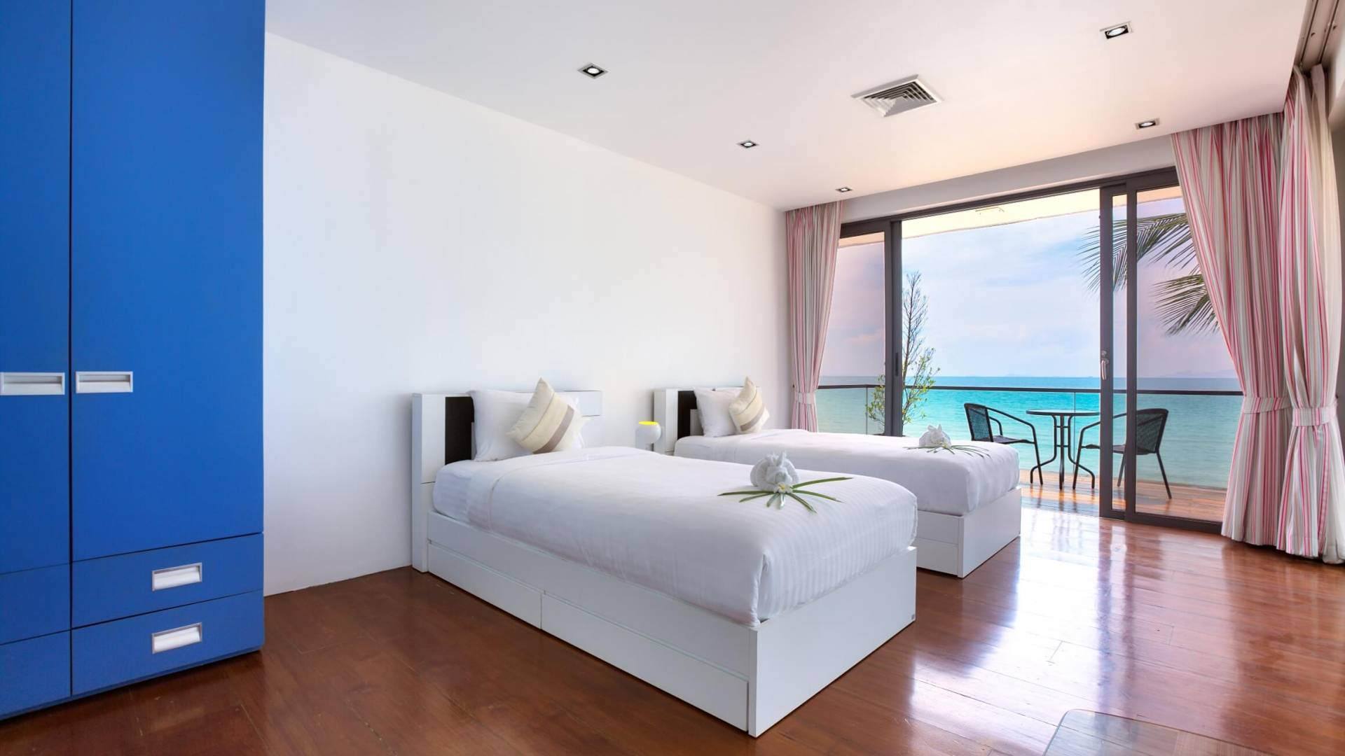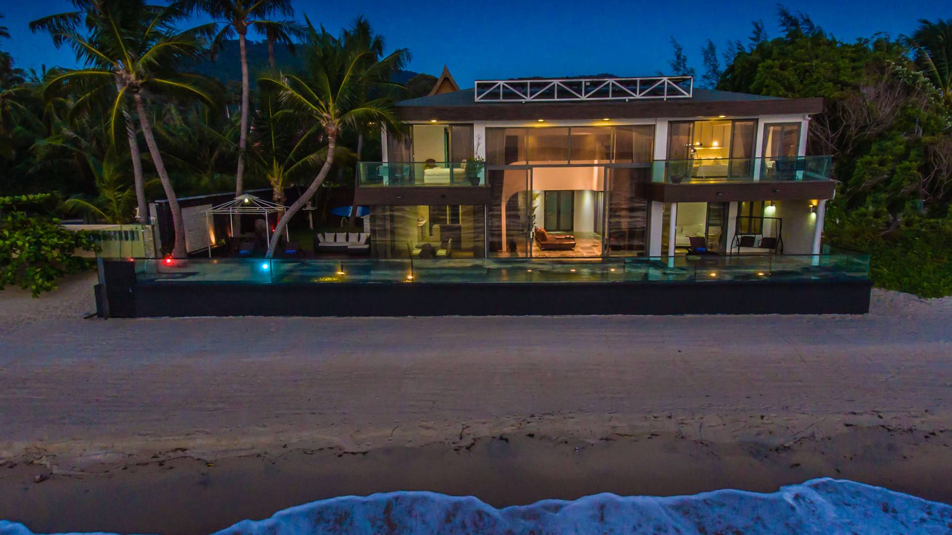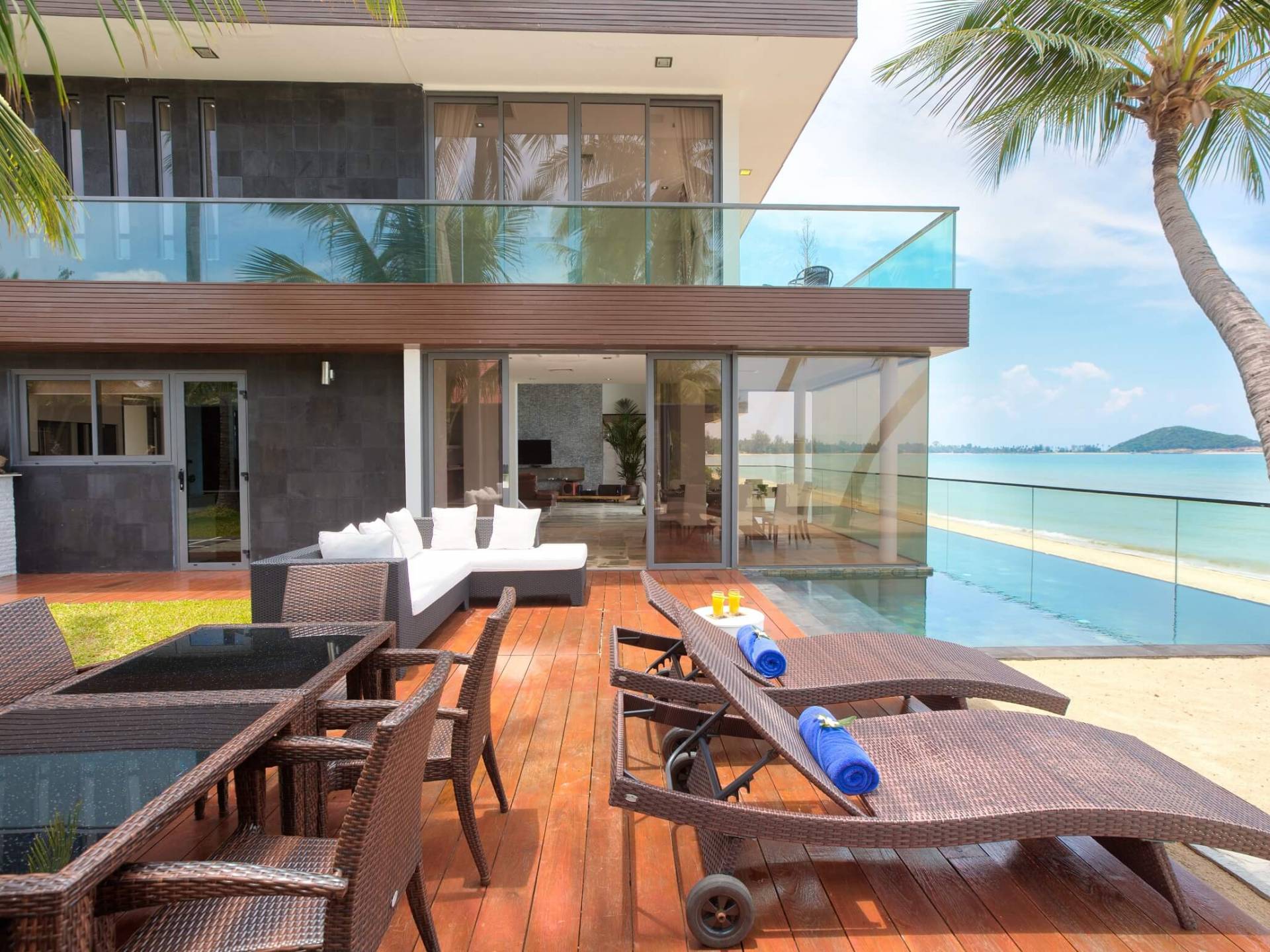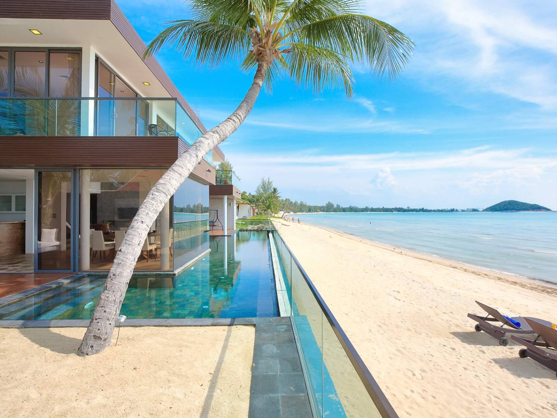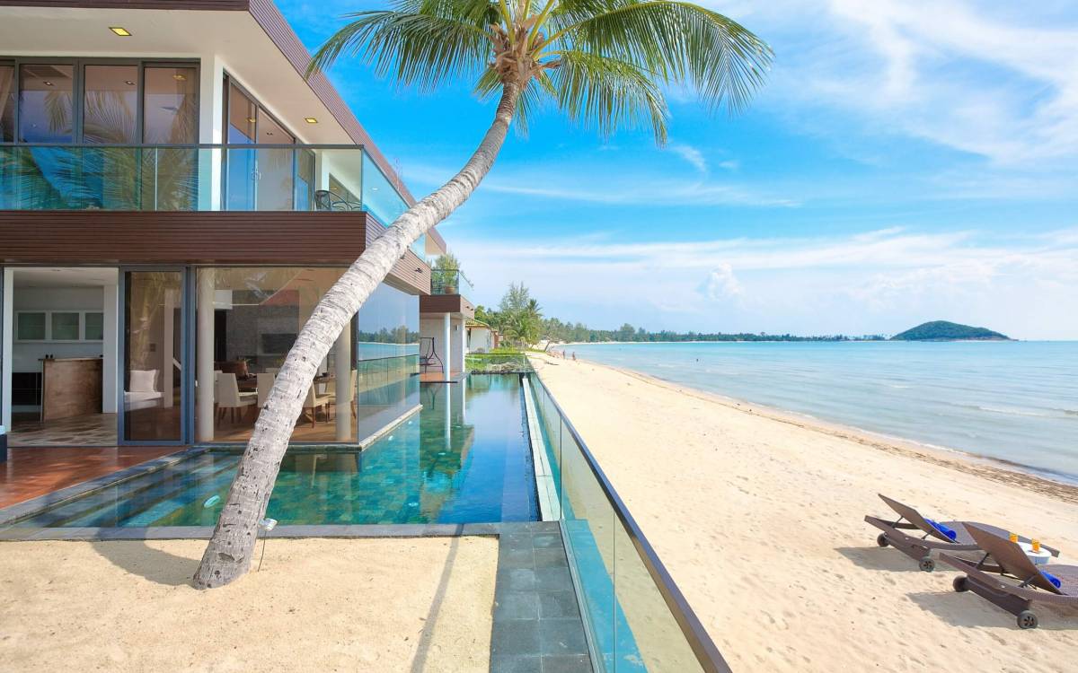 I sogni non vanno oltre questa opulenta villa sulla spiaggia situata in un paradiso. Villa U Koh Samui si erge sentinella sulla spiaggia di sabbia bianca orlata di palme. Con viste fantastiche da splendide terrazze, indimenticabili tramonti tropicali, una spettacolare piscina a sfioro e interni lussuosi, questa è una delle proprietà più ricercate di Koh Samui. Lì puoi goderti una superba miscela di vita tropicale con eleganza moderna in un'atmosfera calma, rinfrescante e rilassante che è stata creata da un design architettonico innovativo e una miscela armoniosa di arredi interni moderni e naturali.