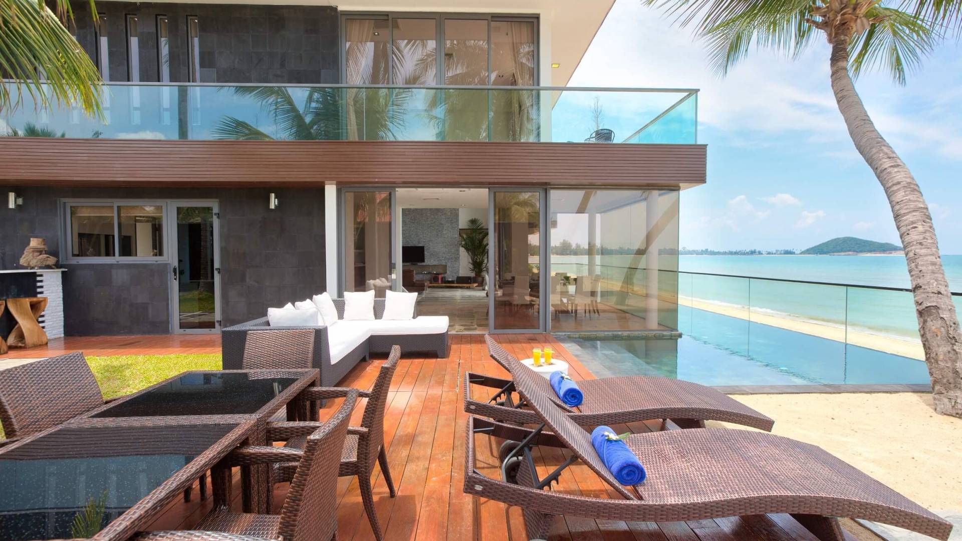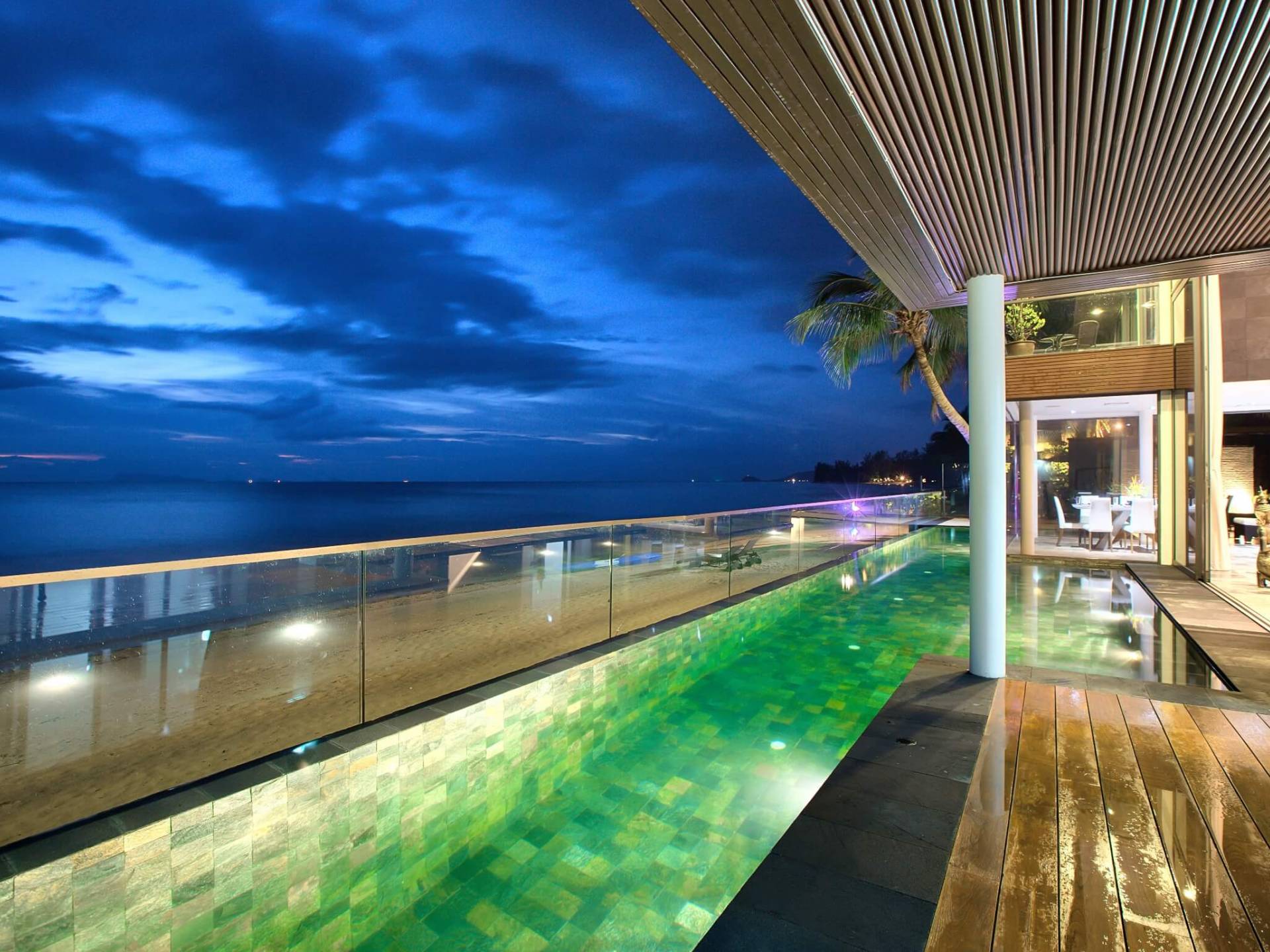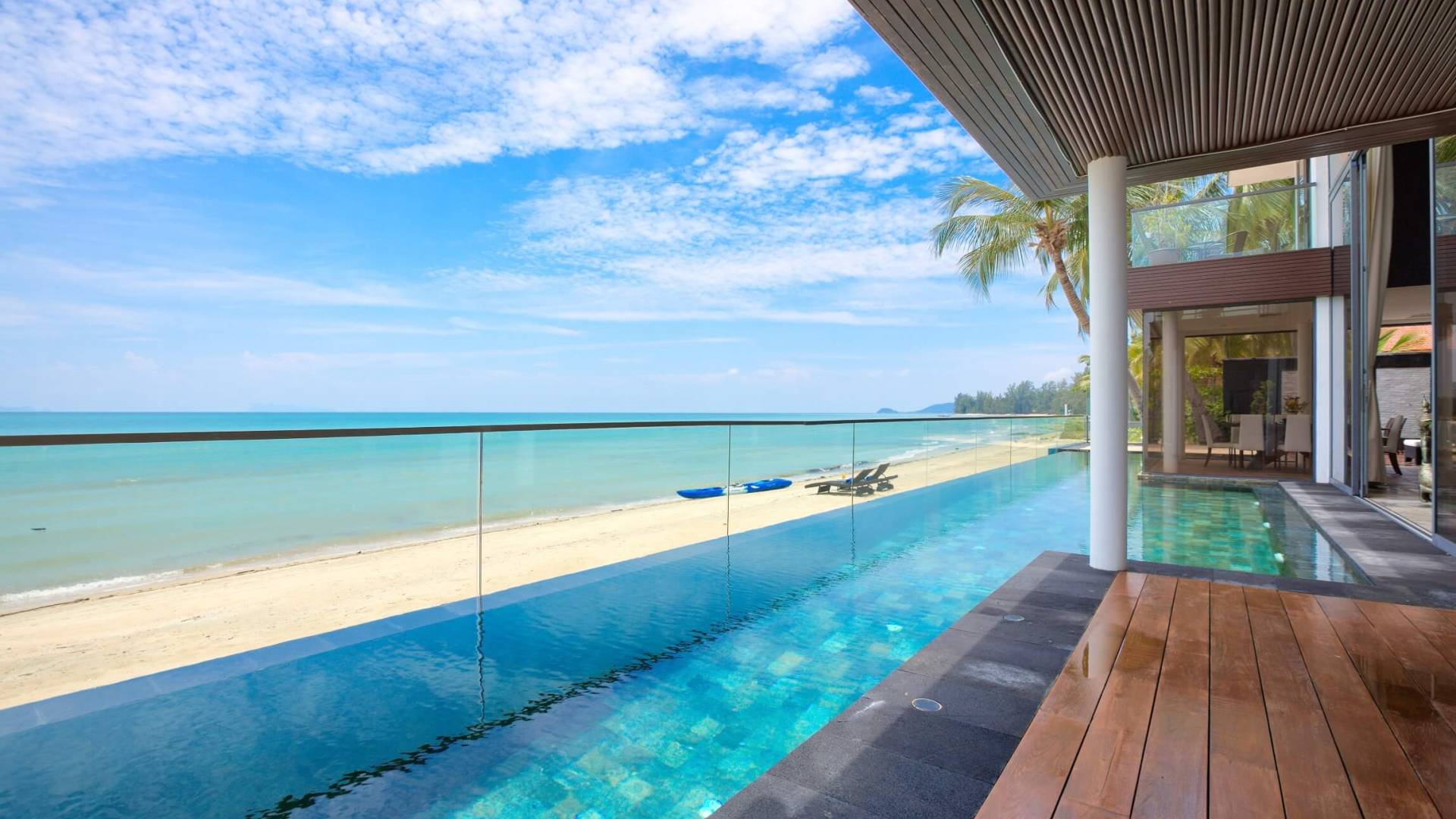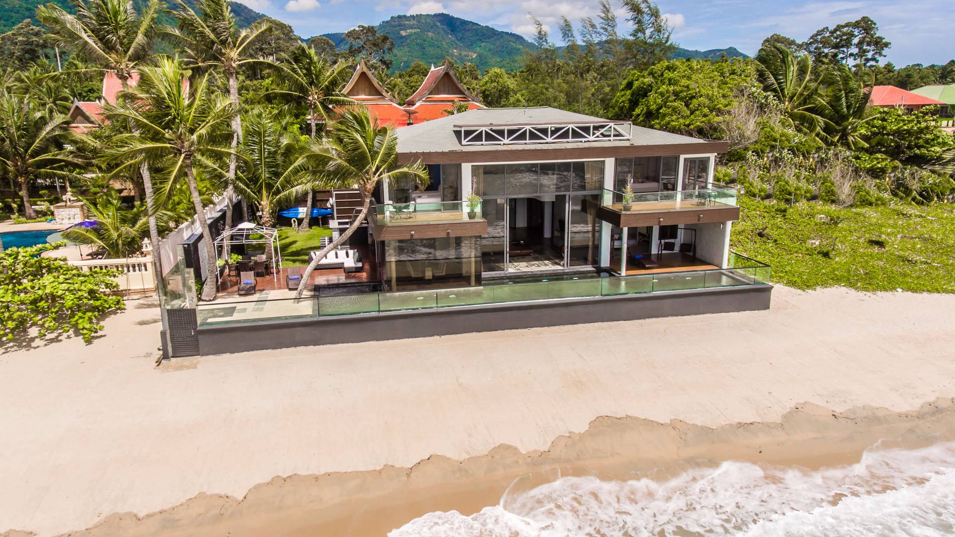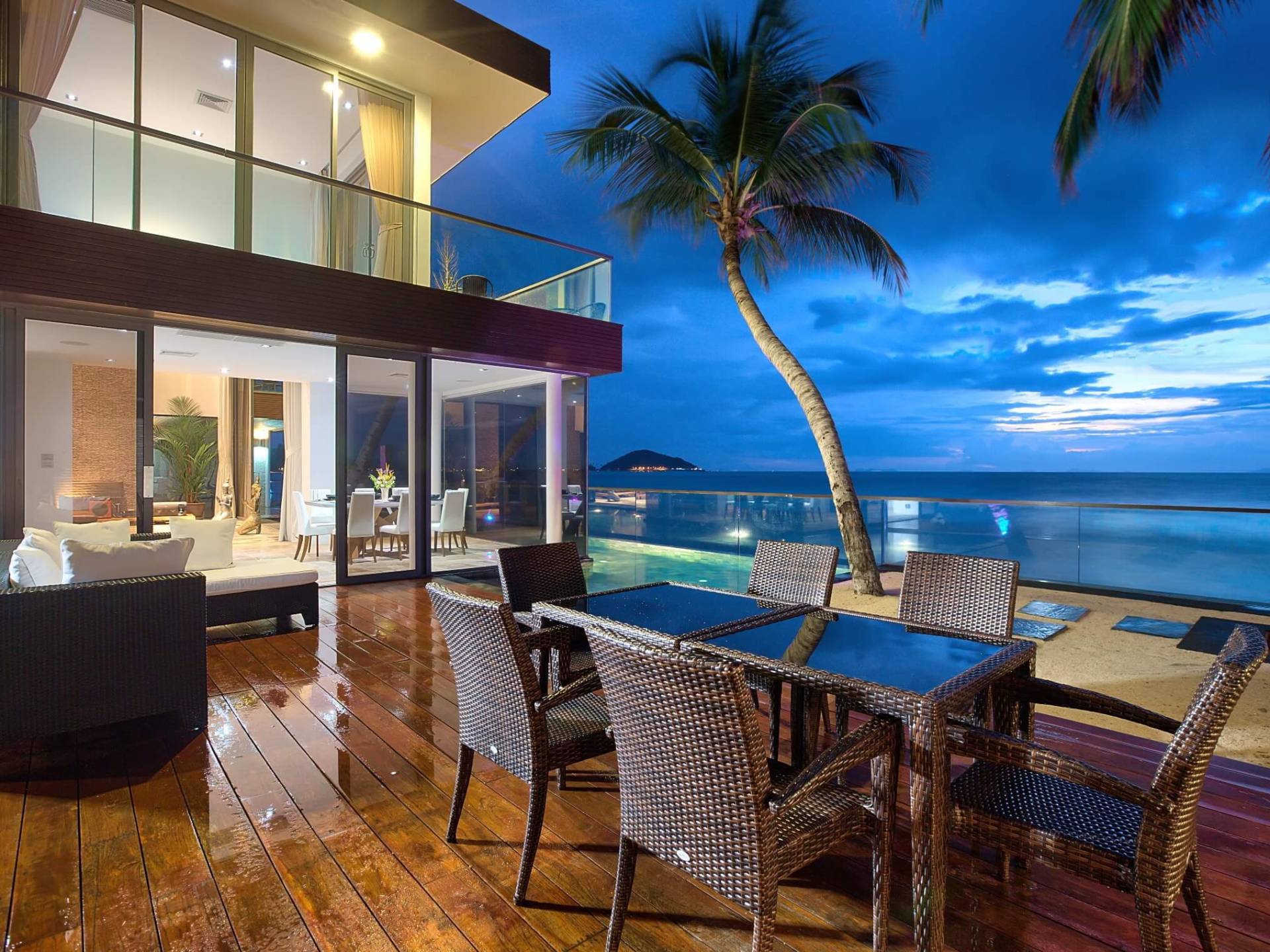 I sogni non vanno oltre questa opulenta villa sulla spiaggia situata in un paradiso. Villa U Koh Samui si erge sentinella sulla spiaggia di sabbia bianca orlata di palme. Con viste fantastiche da splendide terrazze, indimenticabili tramonti tropicali, una spettacolare piscina a sfioro e interni lussuosi, questa è una delle proprietà più ricercate di Koh Samui. Lì puoi goderti una superba miscela di vita tropicale con eleganza moderna in un'atmosfera calma, rinfrescante e rilassante che è stata creata da un design architettonico innovativo e una miscela armoniosa di arredi interni moderni e naturali.