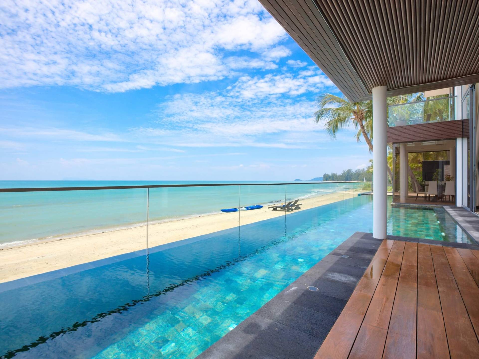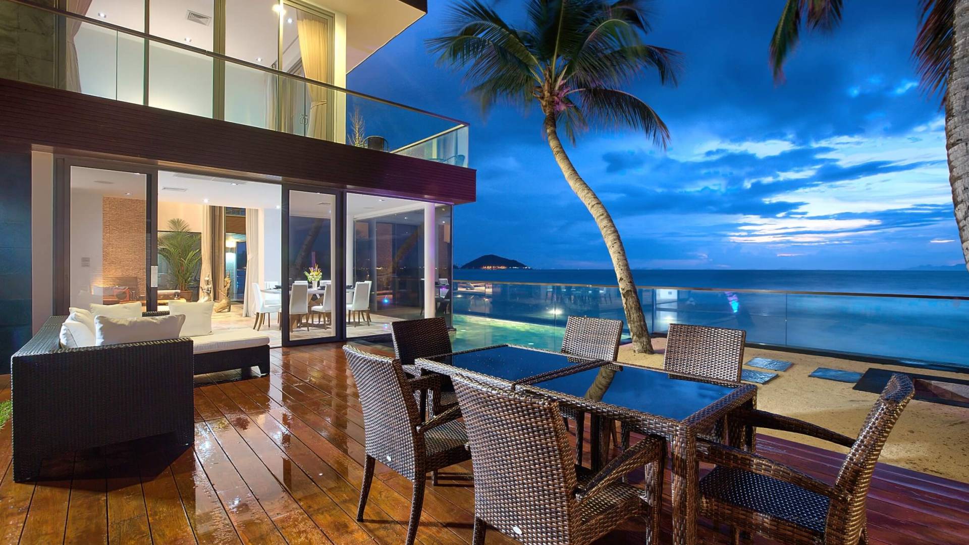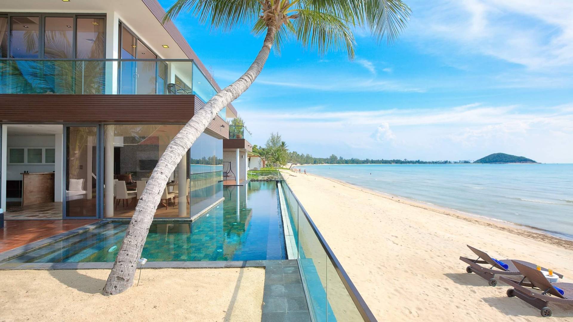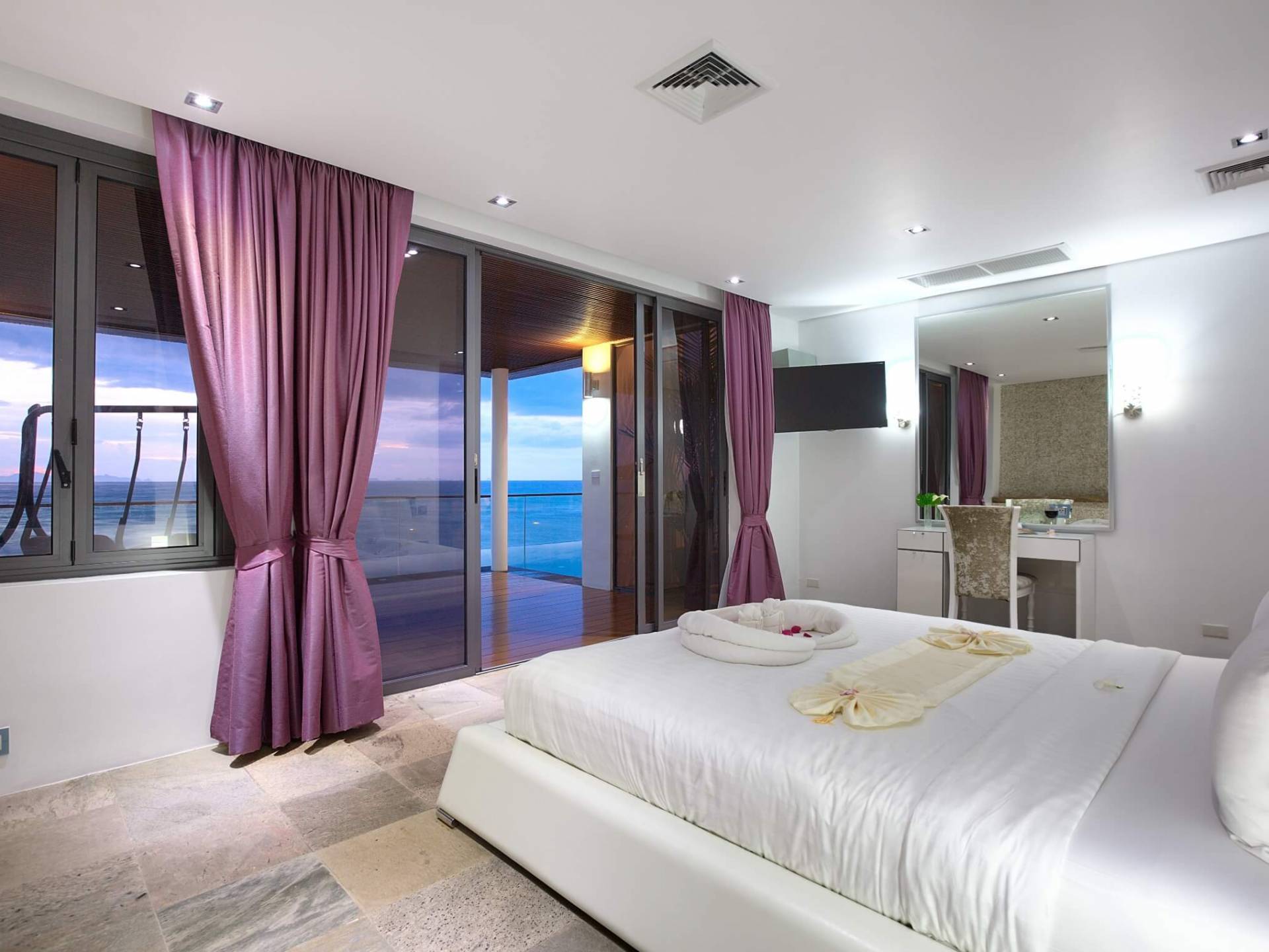 I sogni non vanno oltre questa opulenta villa sulla spiaggia situata in un paradiso. Villa U Koh Samui si erge sentinella sulla spiaggia di sabbia bianca orlata di palme. Con viste fantastiche da splendide terrazze, indimenticabili tramonti tropicali, una spettacolare piscina a sfioro e interni lussuosi, questa è una delle proprietà più ricercate di Koh Samui. Lì puoi goderti una superba miscela di vita tropicale con eleganza moderna in un'atmosfera calma, rinfrescante e rilassante che è stata creata da un design architettonico innovativo e una miscela armoniosa di arredi interni moderni e naturali.