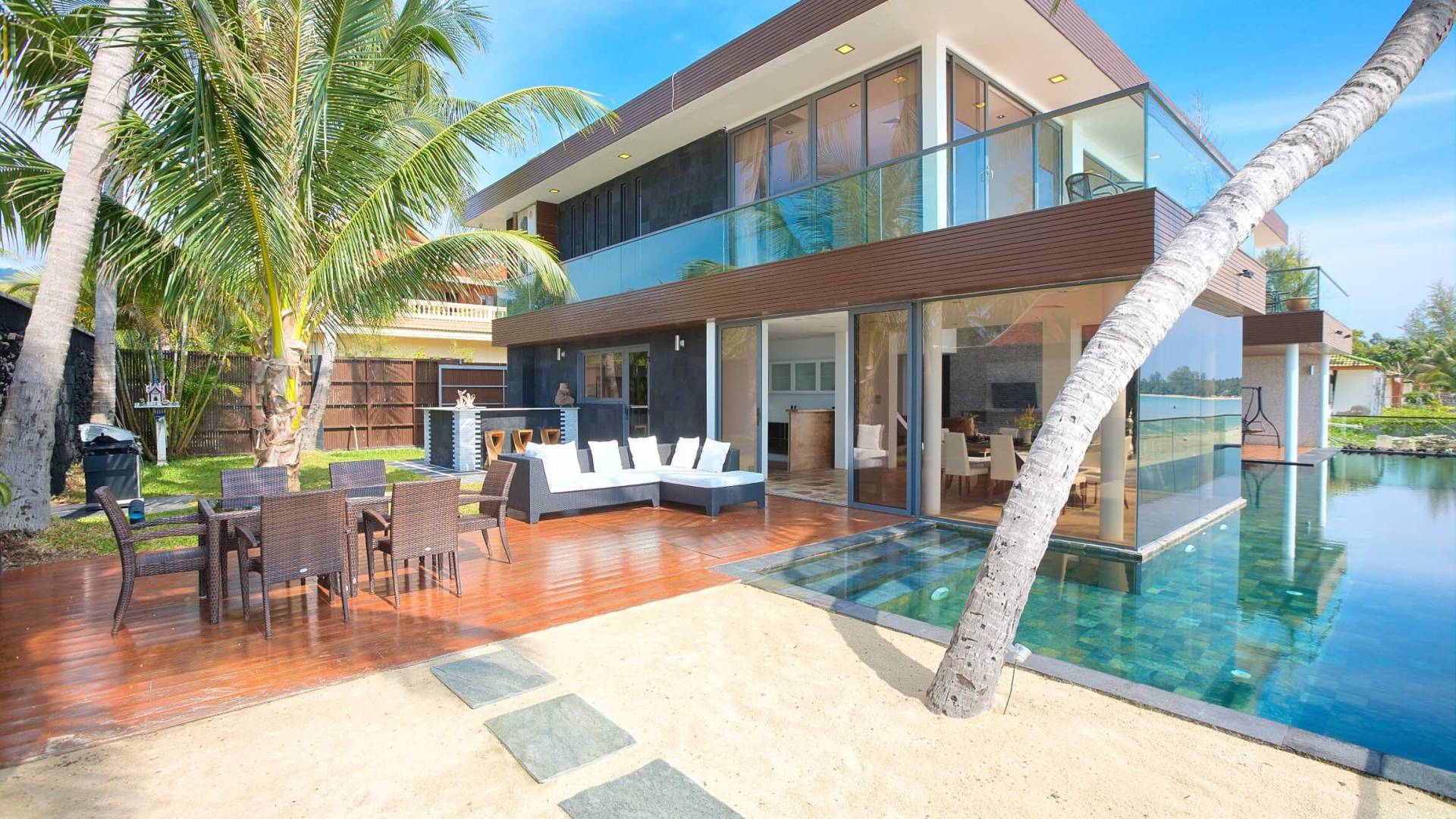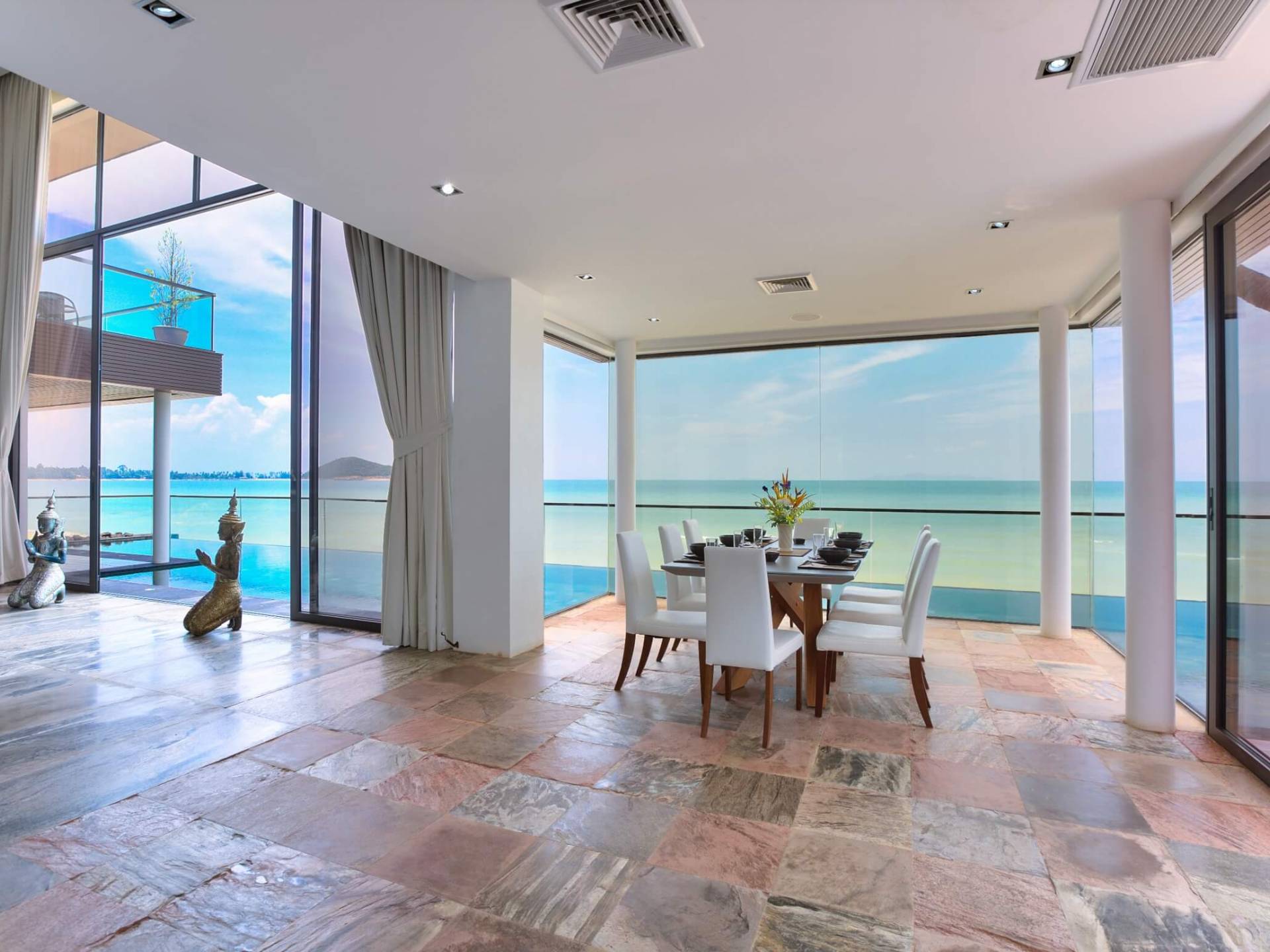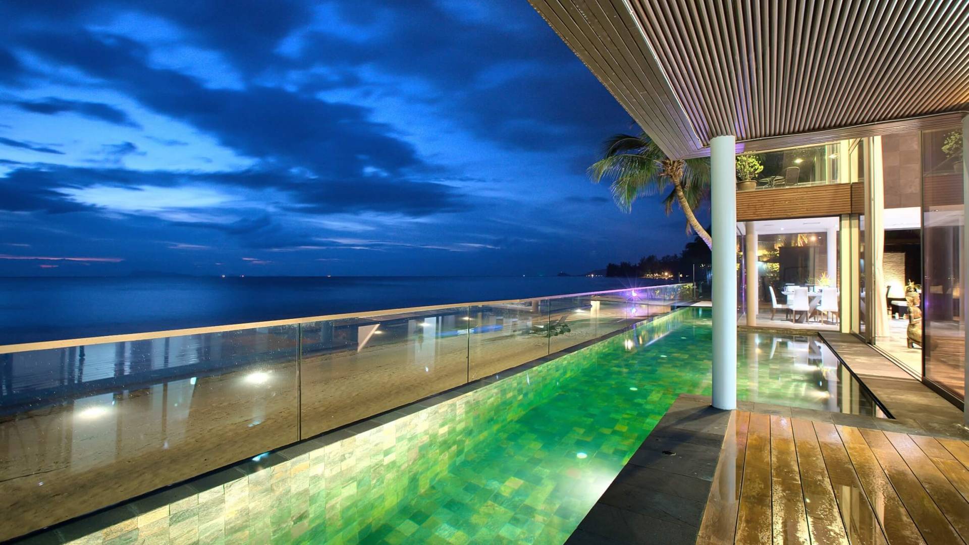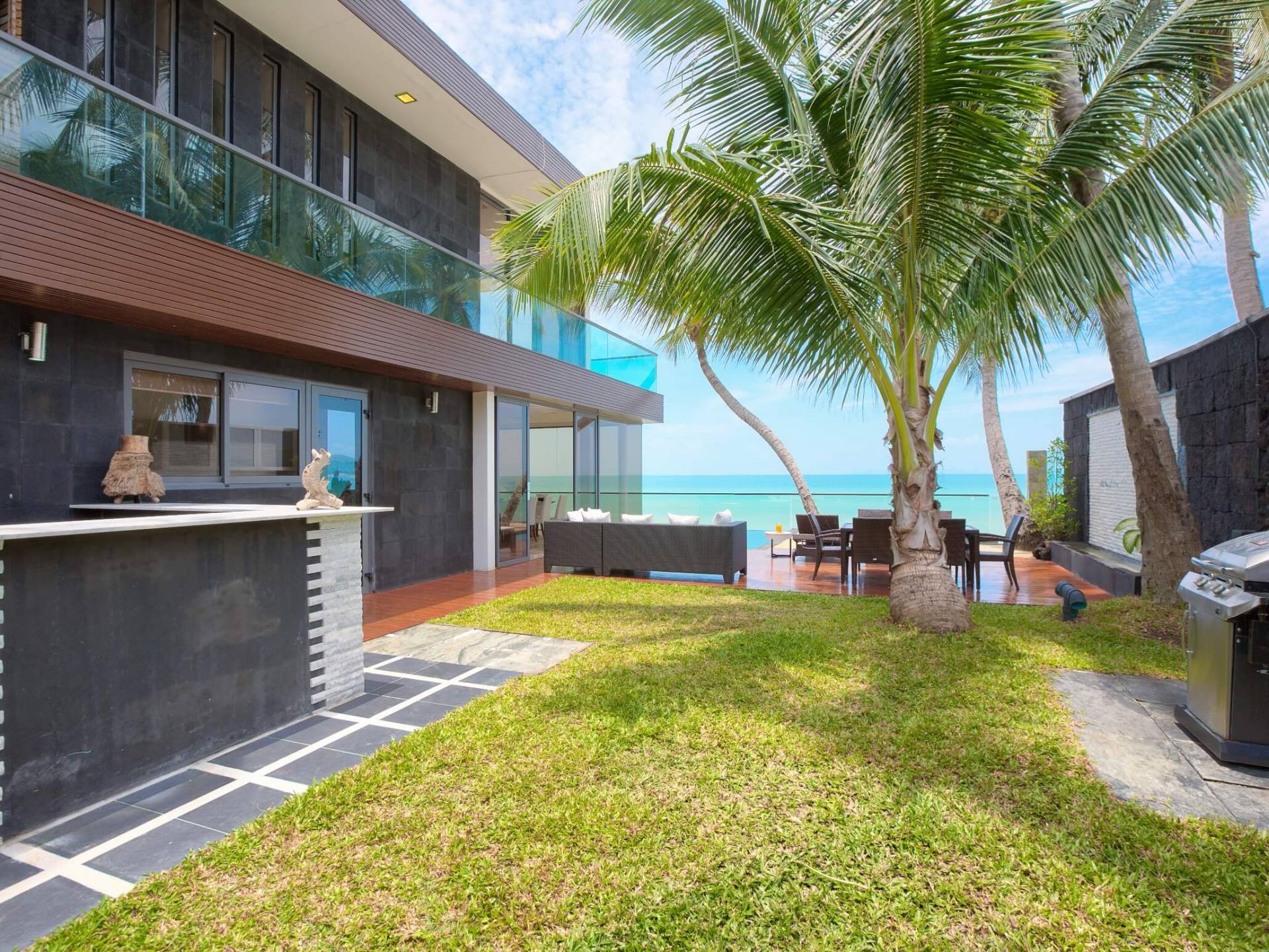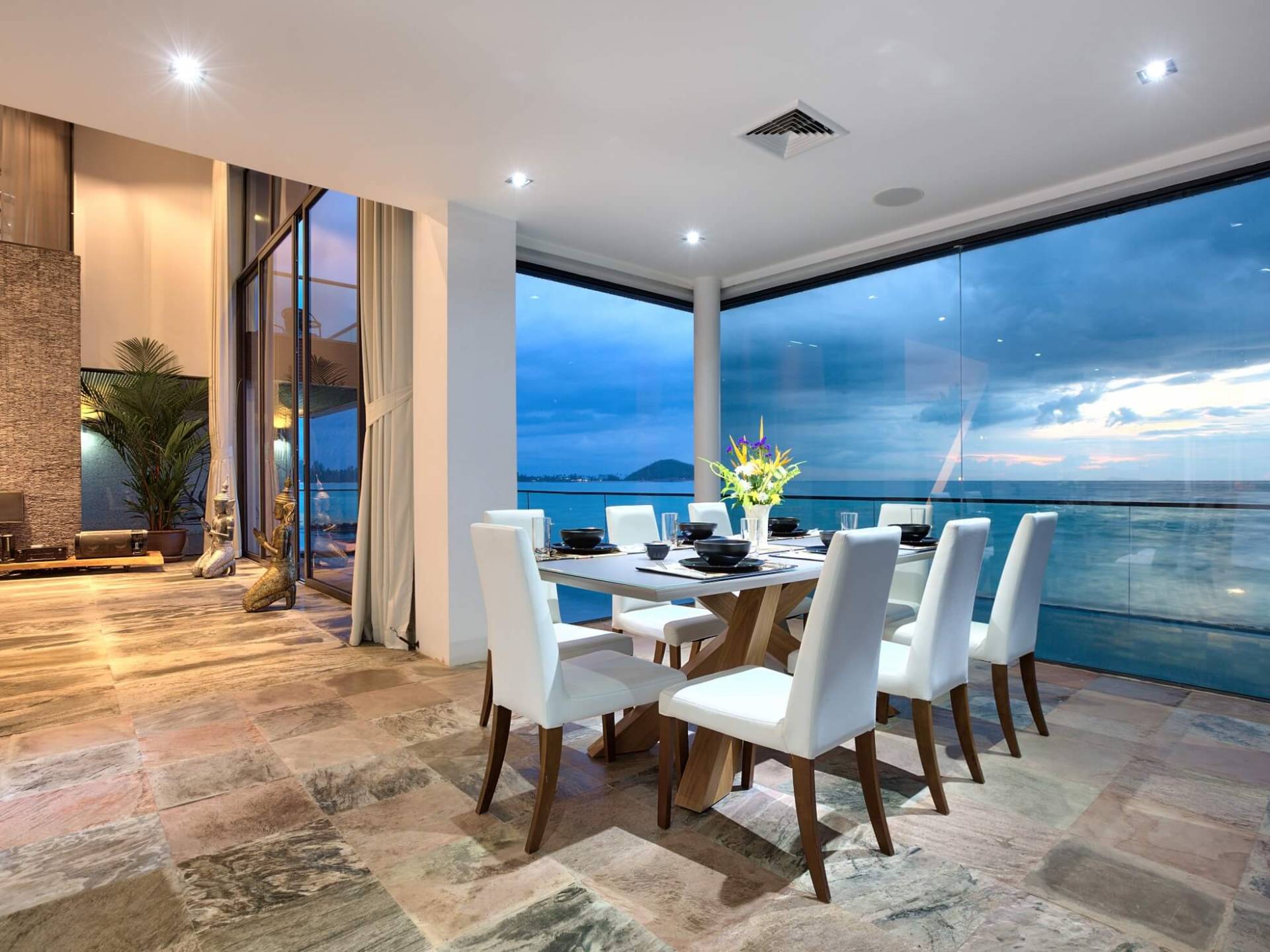 I sogni non vanno oltre questa opulenta villa sulla spiaggia situata in un paradiso. Villa U Koh Samui si erge sentinella sulla spiaggia di sabbia bianca orlata di palme. Con viste fantastiche da splendide terrazze, indimenticabili tramonti tropicali, una spettacolare piscina a sfioro e interni lussuosi, questa è una delle proprietà più ricercate di Koh Samui. Lì puoi goderti una superba miscela di vita tropicale con eleganza moderna in un'atmosfera calma, rinfrescante e rilassante che è stata creata da un design architettonico innovativo e una miscela armoniosa di arredi interni moderni e naturali.