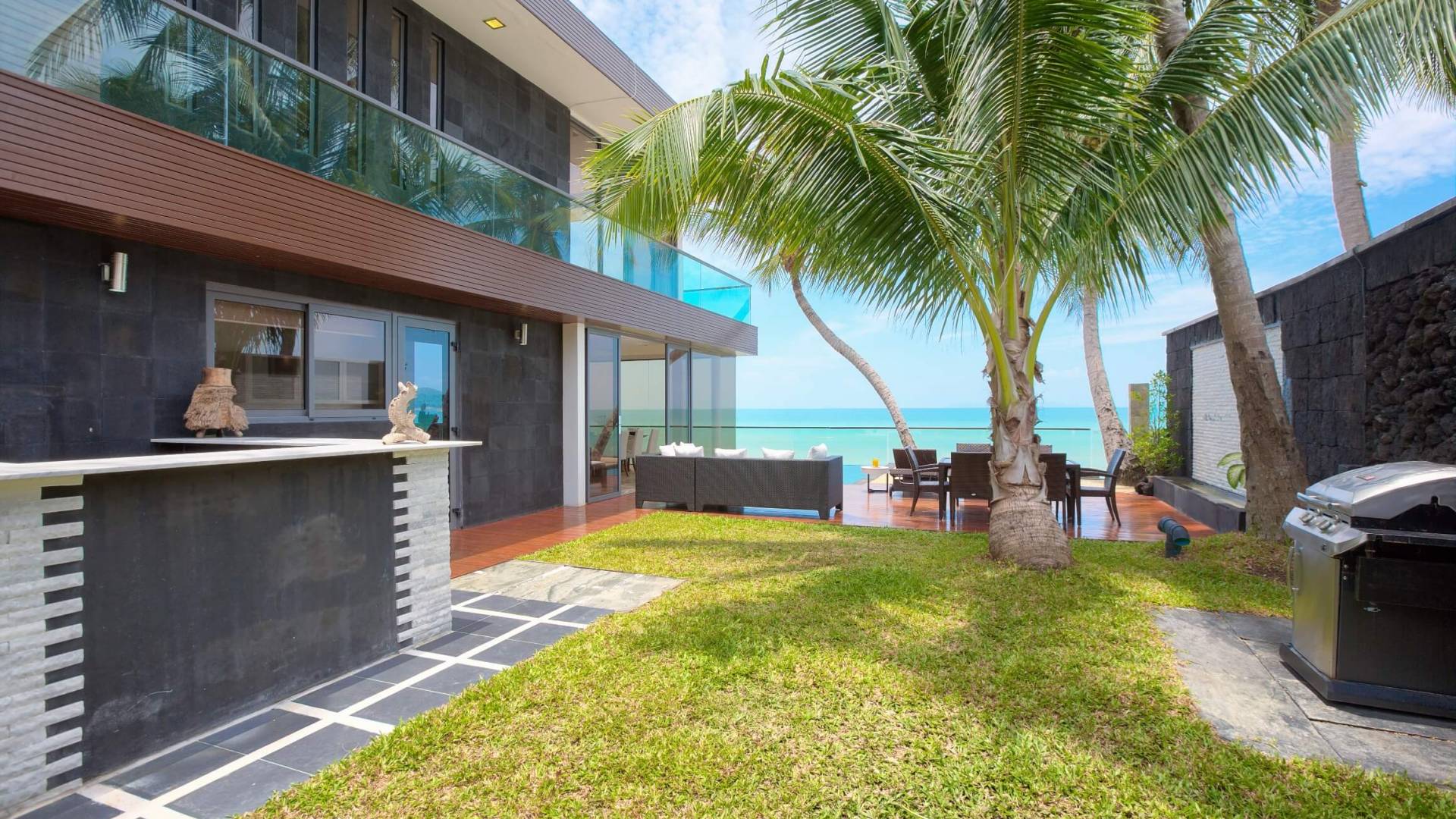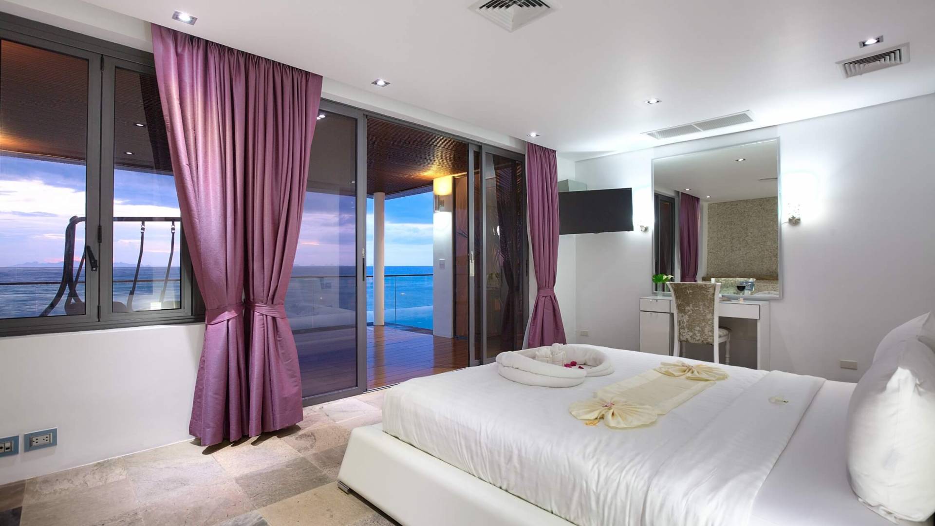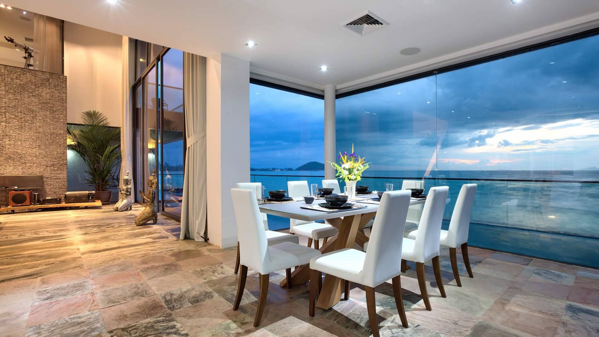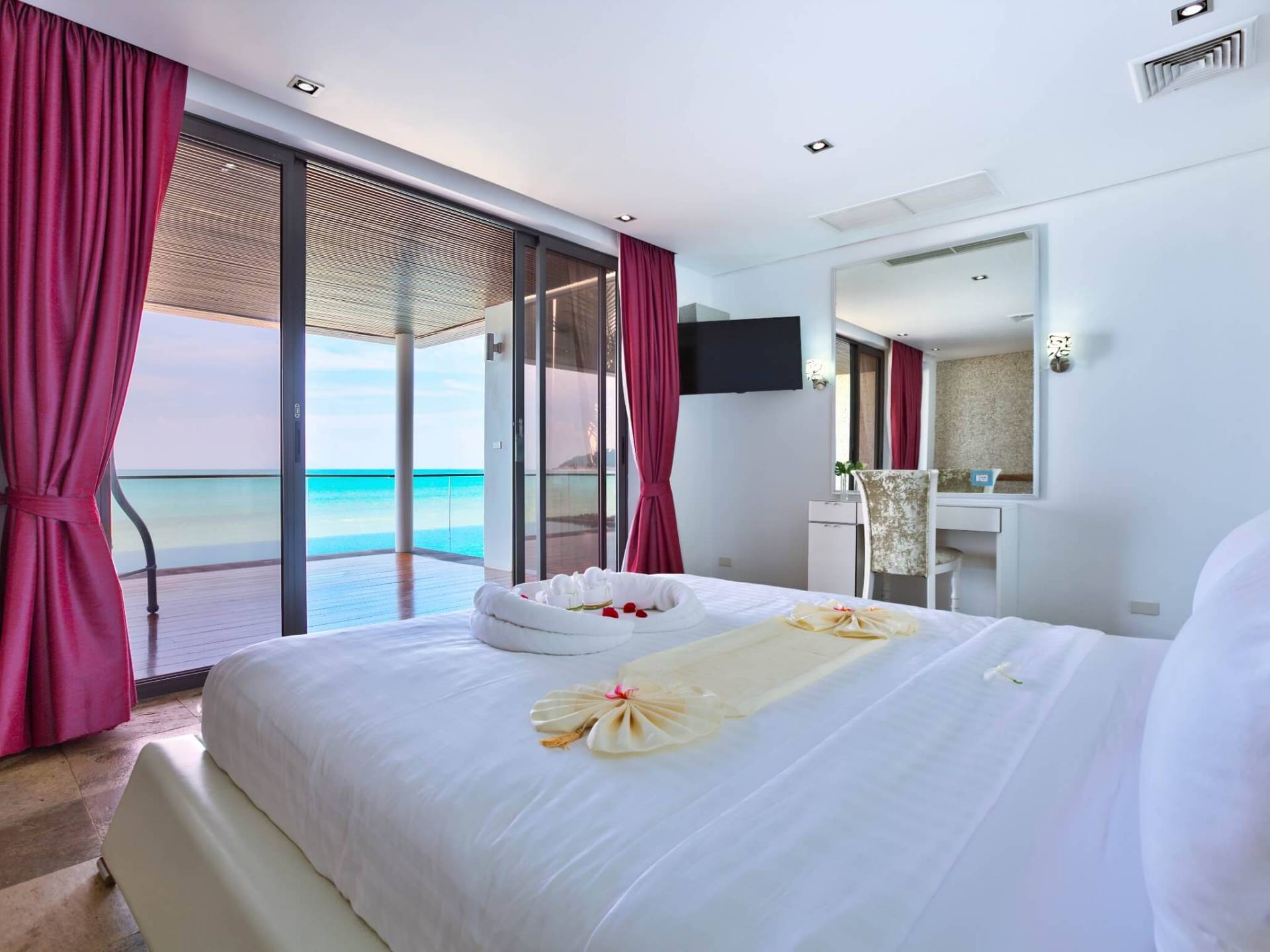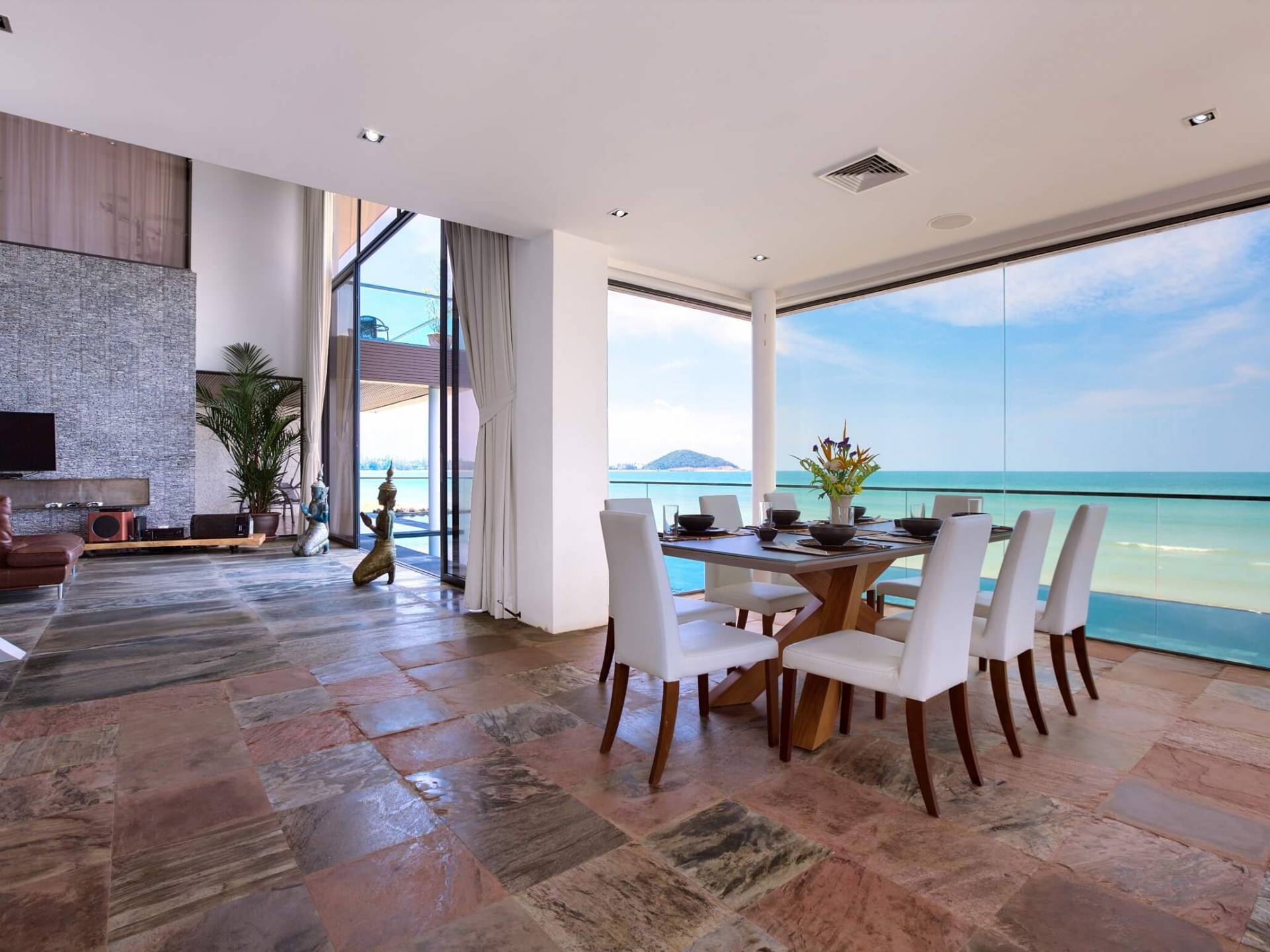 I sogni non vanno oltre questa opulenta villa sulla spiaggia situata in un paradiso. Villa U Koh Samui si erge sentinella sulla spiaggia di sabbia bianca orlata di palme. Con viste fantastiche da splendide terrazze, indimenticabili tramonti tropicali, una spettacolare piscina a sfioro e interni lussuosi, questa è una delle proprietà più ricercate di Koh Samui. Lì puoi goderti una superba miscela di vita tropicale con eleganza moderna in un'atmosfera calma, rinfrescante e rilassante che è stata creata da un design architettonico innovativo e una miscela armoniosa di arredi interni moderni e naturali.