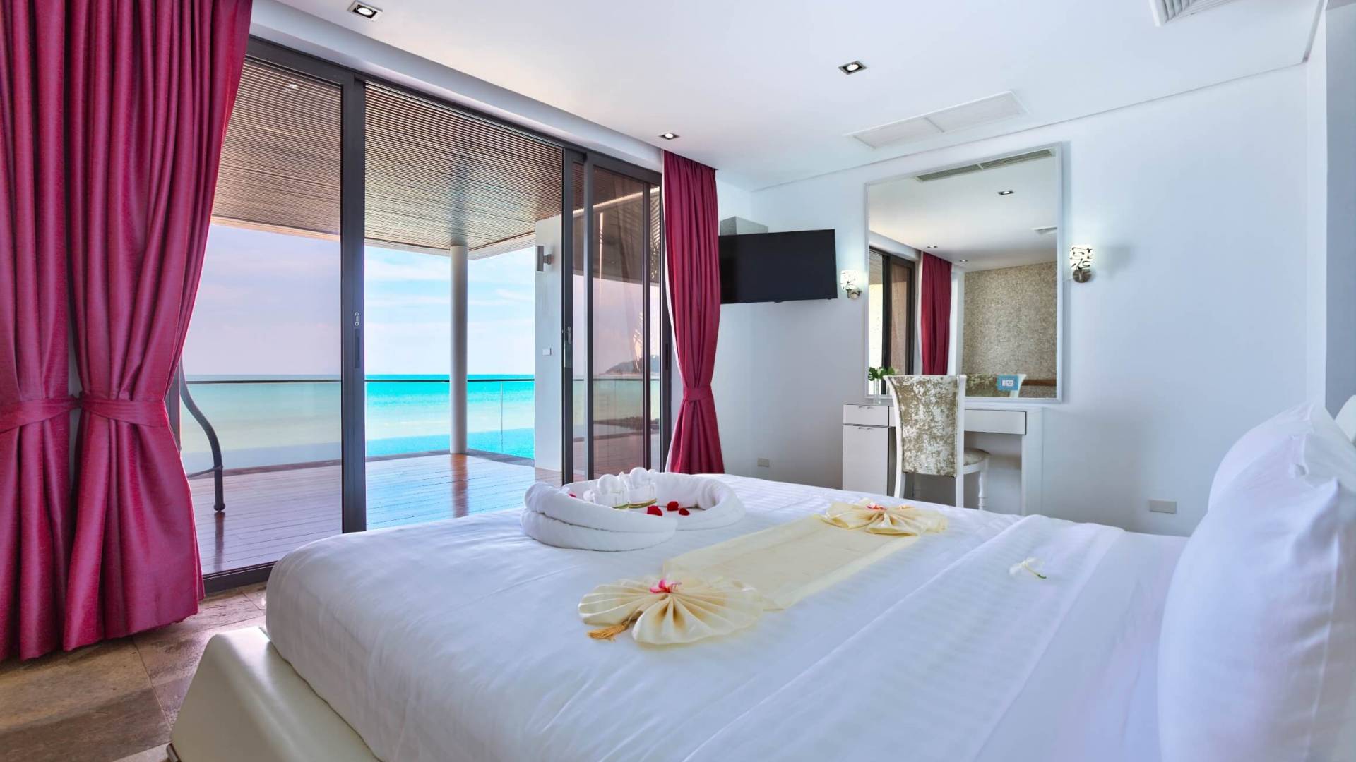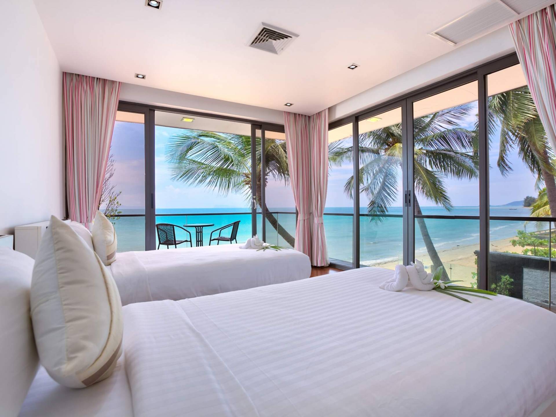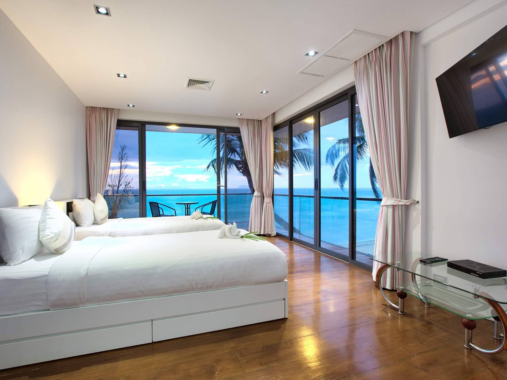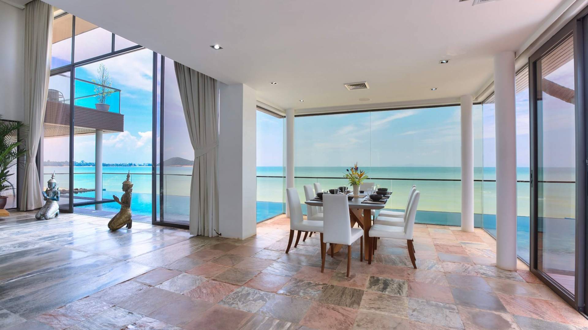 I sogni non vanno oltre questa opulenta villa sulla spiaggia situata in un paradiso. Villa U Koh Samui si erge sentinella sulla spiaggia di sabbia bianca orlata di palme. Con viste fantastiche da splendide terrazze, indimenticabili tramonti tropicali, una spettacolare piscina a sfioro e interni lussuosi, questa è una delle proprietà più ricercate di Koh Samui. Lì puoi goderti una superba miscela di vita tropicale con eleganza moderna in un'atmosfera calma, rinfrescante e rilassante che è stata creata da un design architettonico innovativo e una miscela armoniosa di arredi interni moderni e naturali.