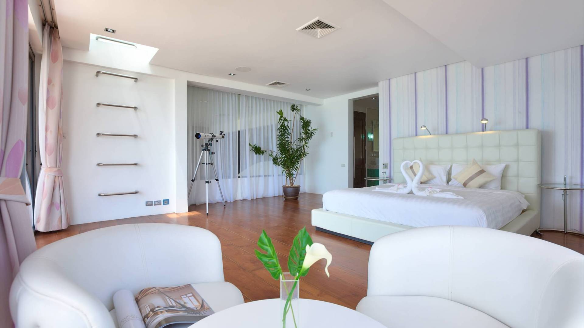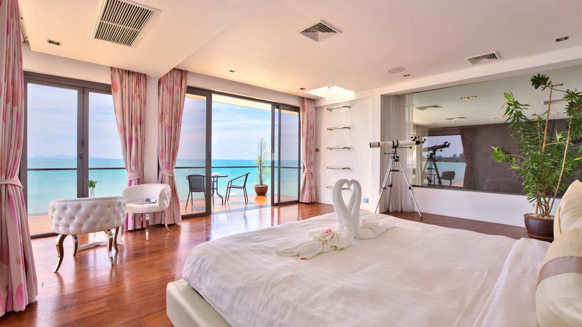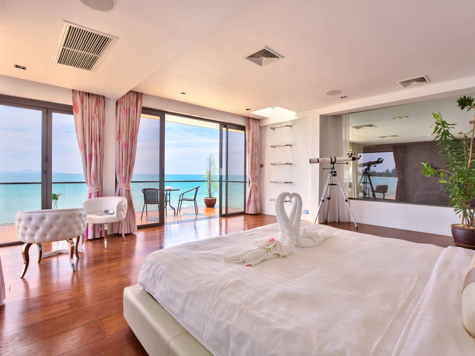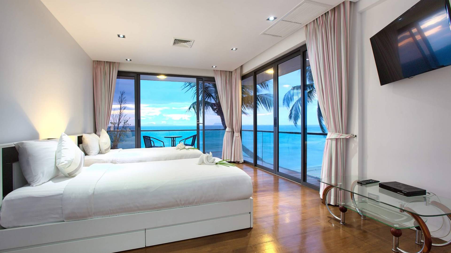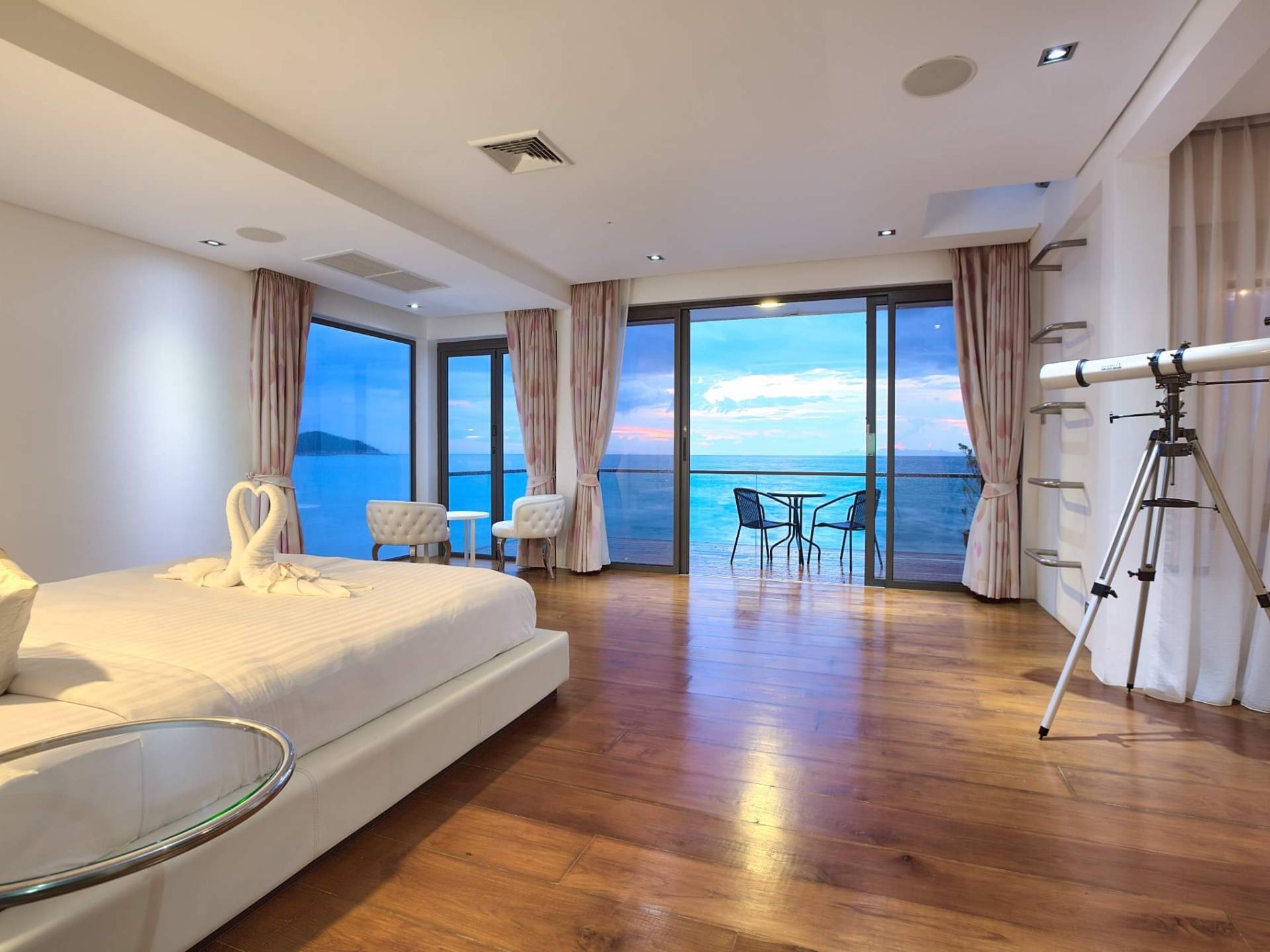 I sogni non vanno oltre questa opulenta villa sulla spiaggia situata in un paradiso. Villa U Koh Samui si erge sentinella sulla spiaggia di sabbia bianca orlata di palme. Con viste fantastiche da splendide terrazze, indimenticabili tramonti tropicali, una spettacolare piscina a sfioro e interni lussuosi, questa è una delle proprietà più ricercate di Koh Samui. Lì puoi goderti una superba miscela di vita tropicale con eleganza moderna in un'atmosfera calma, rinfrescante e rilassante che è stata creata da un design architettonico innovativo e una miscela armoniosa di arredi interni moderni e naturali.