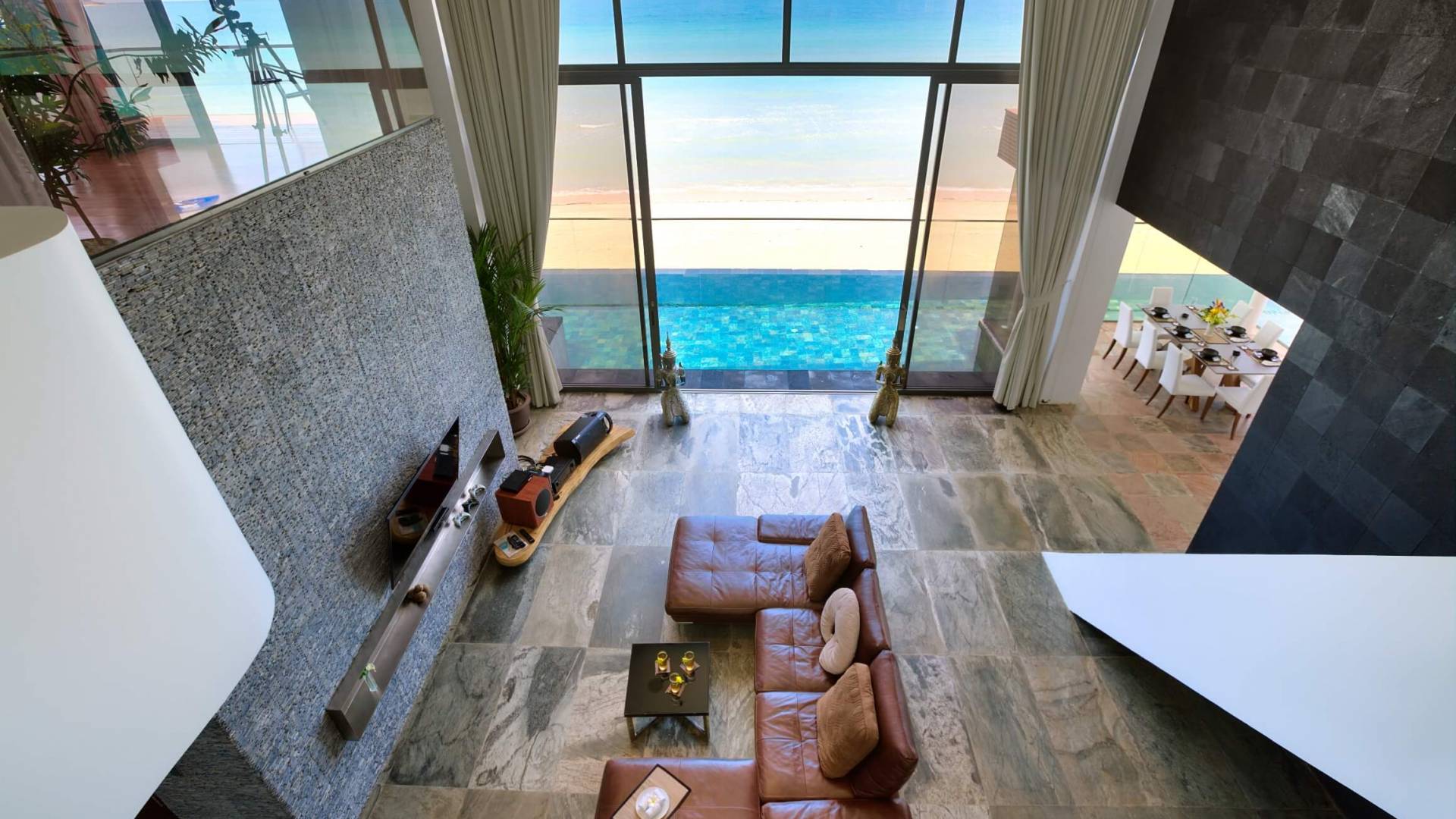 La grande piscina a sfioro corre parallela all'oceano insieme a un ingresso alla spiaggia. La terrazza intorno è delle dimensioni perfette per vivere all'aperto e intrattenersi ed è il luogo ideale per prendere il sole e ammirare i tramonti perfetti proprio di fronte alla villa ogni sera. Ti piacerà fare un barbecue sulla spiaggia nel tuo spazio di vita all'aperto e sederti ogni sera a guardare i tramonti con un cocktail o due.