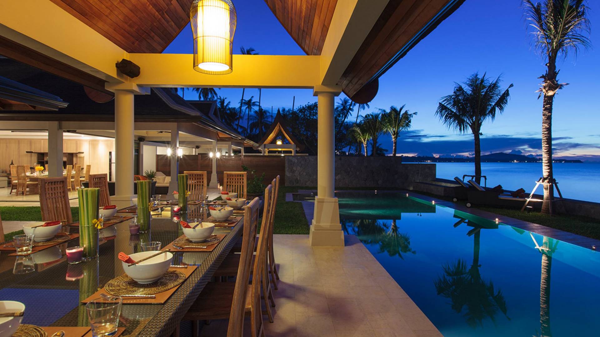 Miskawaan Villas Samui, che significa Buddha's Garden, è una raccolta di 11 ville di lusso sulla spiaggia; 10 si trovano con vista sulla splendida sabbia dorata di Maenam e uno sull'incontaminata spiaggia di Bangrak. Miskawaan Villas Samui offre il luogo ideale per un rifugio a piedi nudi e in una villa di lusso con i tuoi amici, familiari o partner d'affari. Villa Wayu a Miskawaan Villas Samui è una lussuosa villa in affitto fronte mare con 7 camere da letto, che può ospitare fino a 14 persone. Villa Wayu si trova all'interno delle residenze esclusive di Miskawaan.