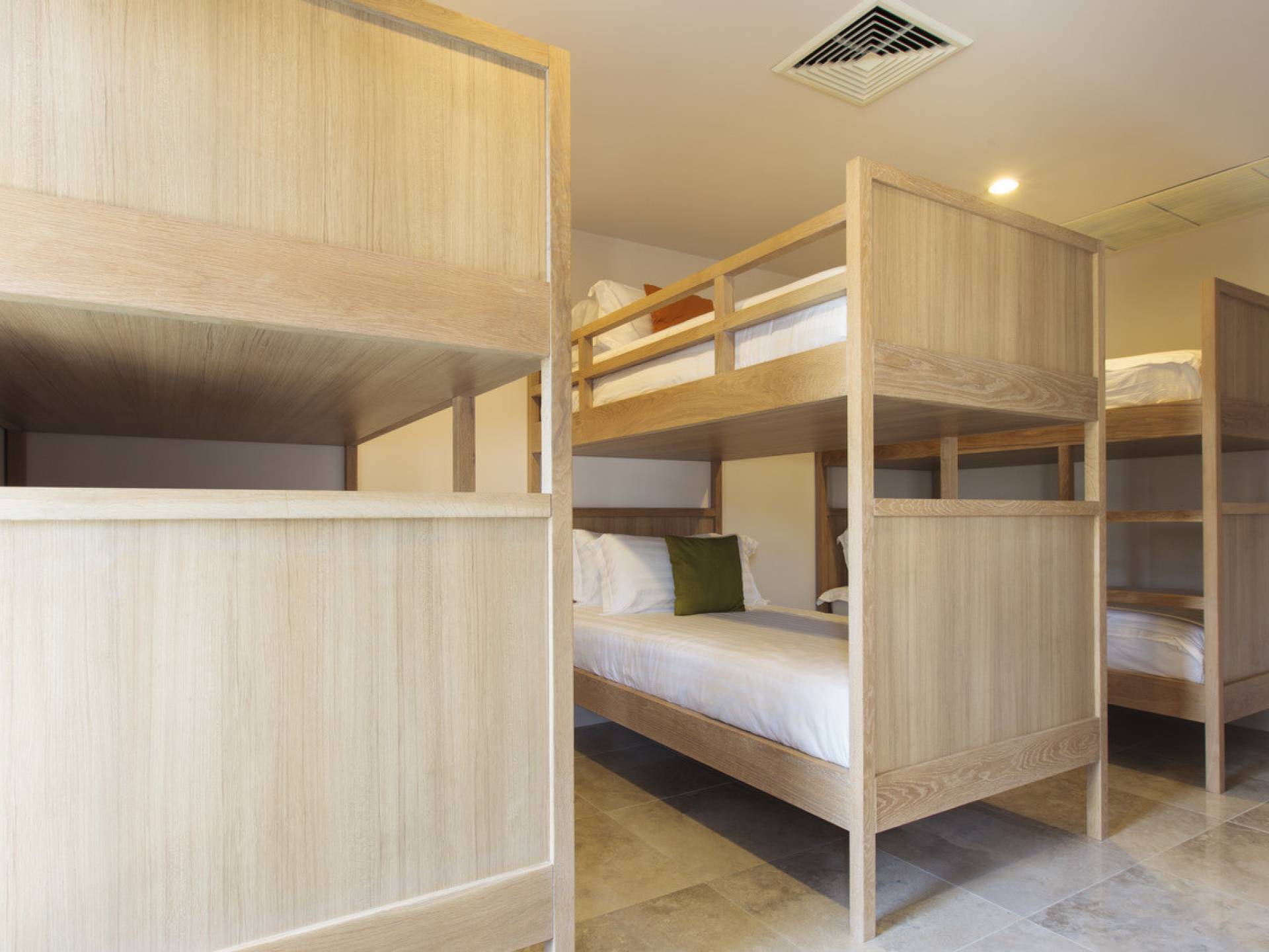 La camera da letto principale si trova nella parte anteriore della villa con vista mare, mentre la parte restante si trova sul retro. Abbiamo 4 camere da letto comunicanti e come ulteriore vantaggio puoi anche usufruire di una camera per bambini gratuita composta da 3 letti a castello, una sala giochi e un bagno! In totale la villa può ospitare 14 adulti e 6 bambini.