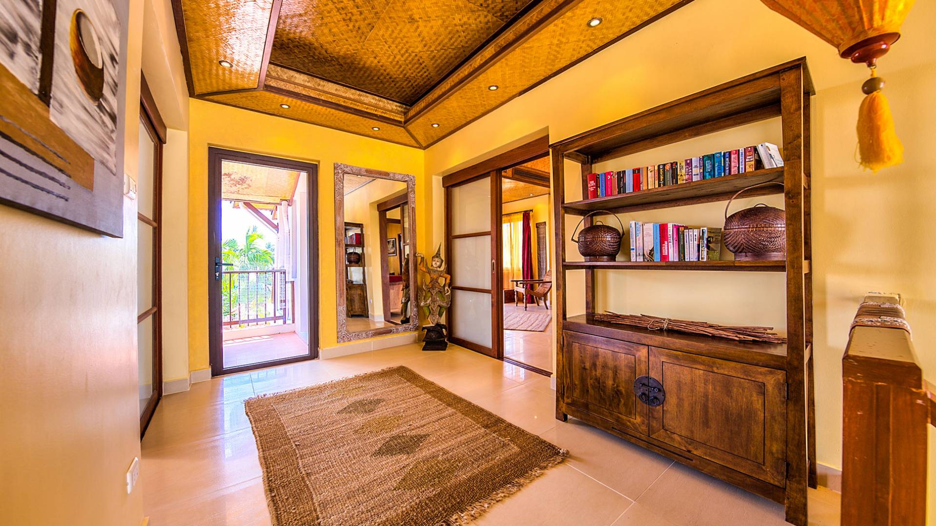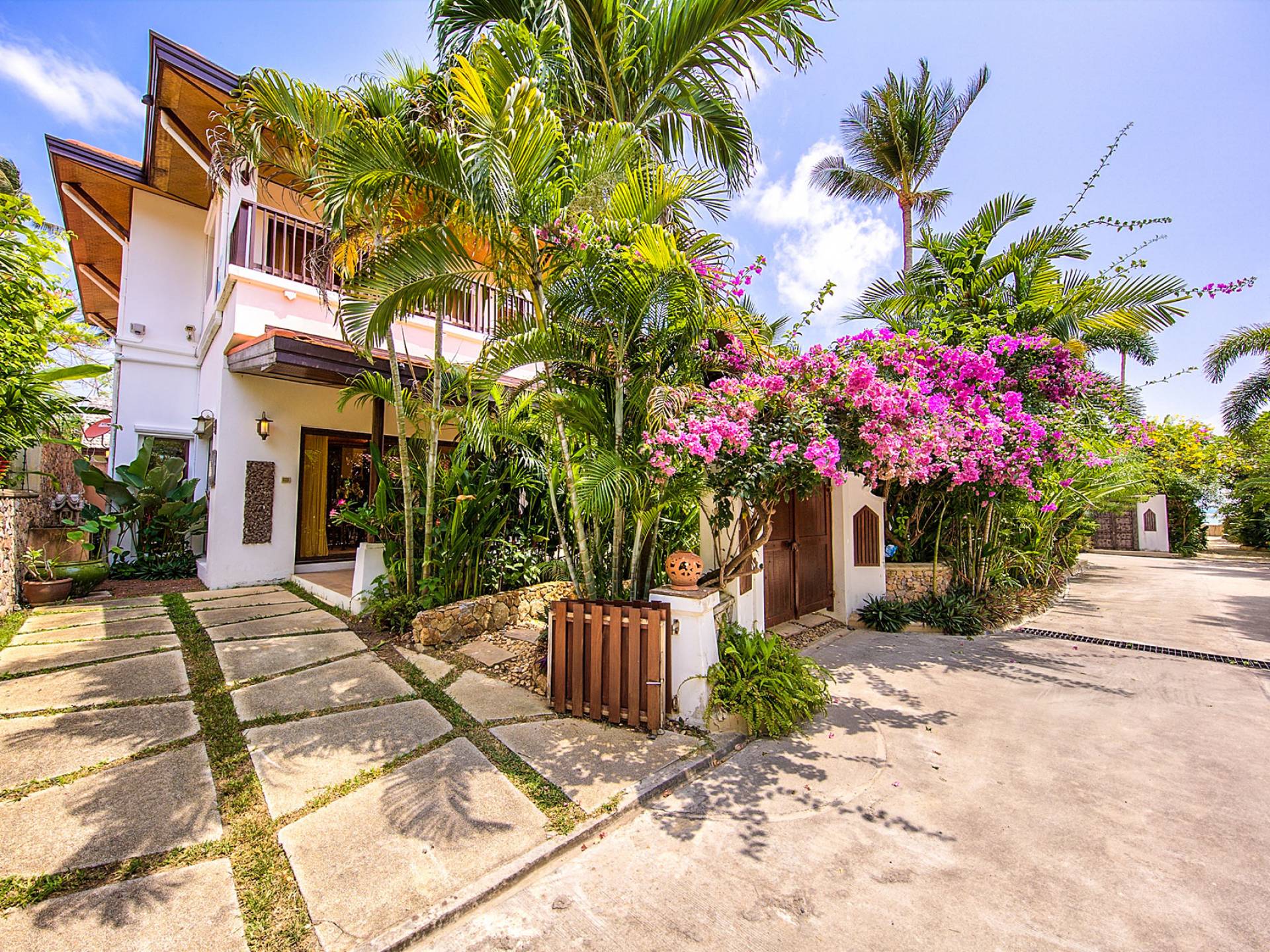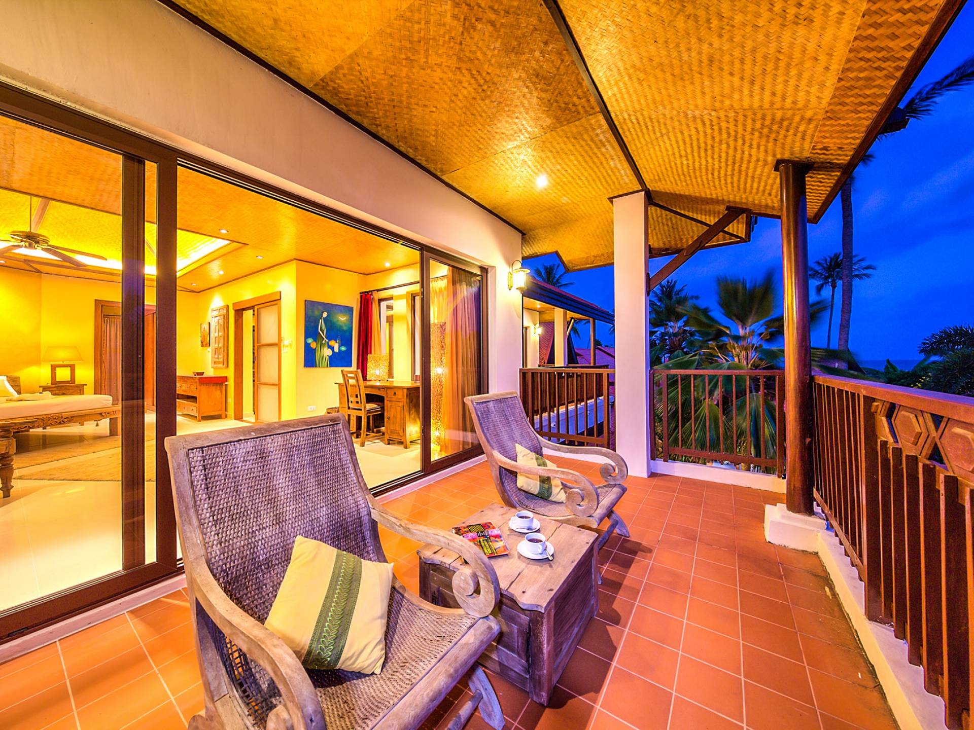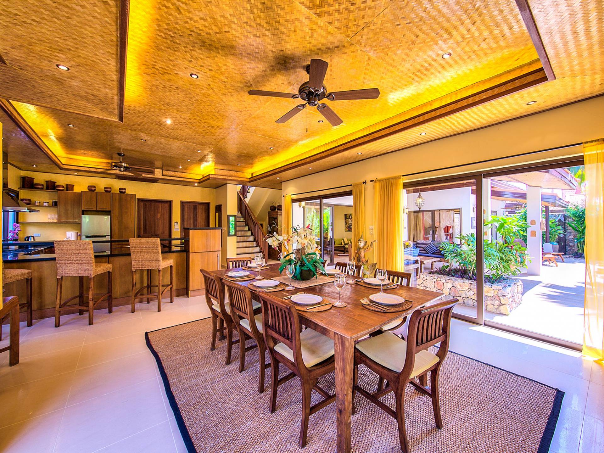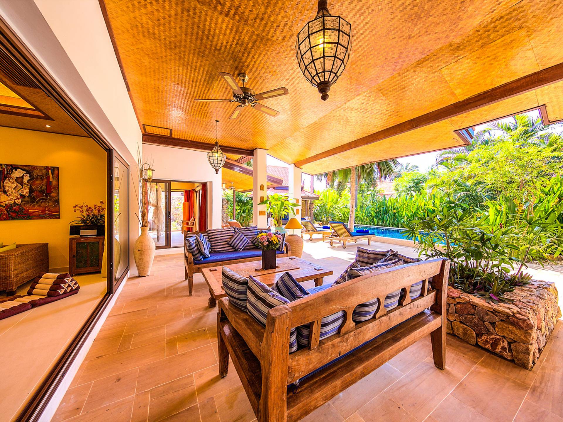 Villa Baan Buaa Samui è una lussuosa villa fronte mare in affitto con 3 camere da letto che può ospitare comodamente 6 adulti. Ci sono 3 camere matrimoniali e una culla che può essere fornita anche su richiesta e soggetta a disponibilità. Questa villa in affitto sulla spiaggia comprende un edificio principale di 2 piani e un edificio separato per gli ospiti adiacente. E' splendidamente arredato con molti pezzi d'antiquariato e riccamente decorato per riflettere l'architettura tailandese/balinese. Baan Buena è stato progettato per riflettere la vita tropicale interna ed esterna e offre un ambiente tranquillo e lussuoso per la tua vacanza sull'isola tropicale a Samui. La villa si trova a pochi passi dalla sabbia bianca di Nahai Beach e offre viste sul mare e sulla spiaggia dalle camere da letto e dai balconi al piano superiore.