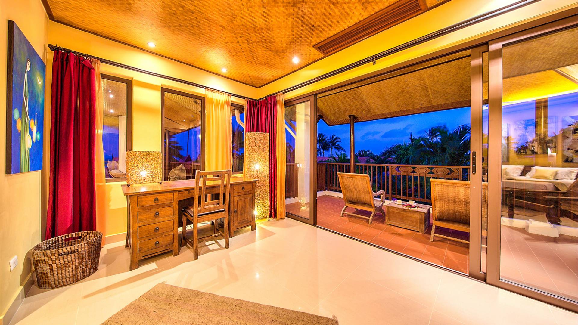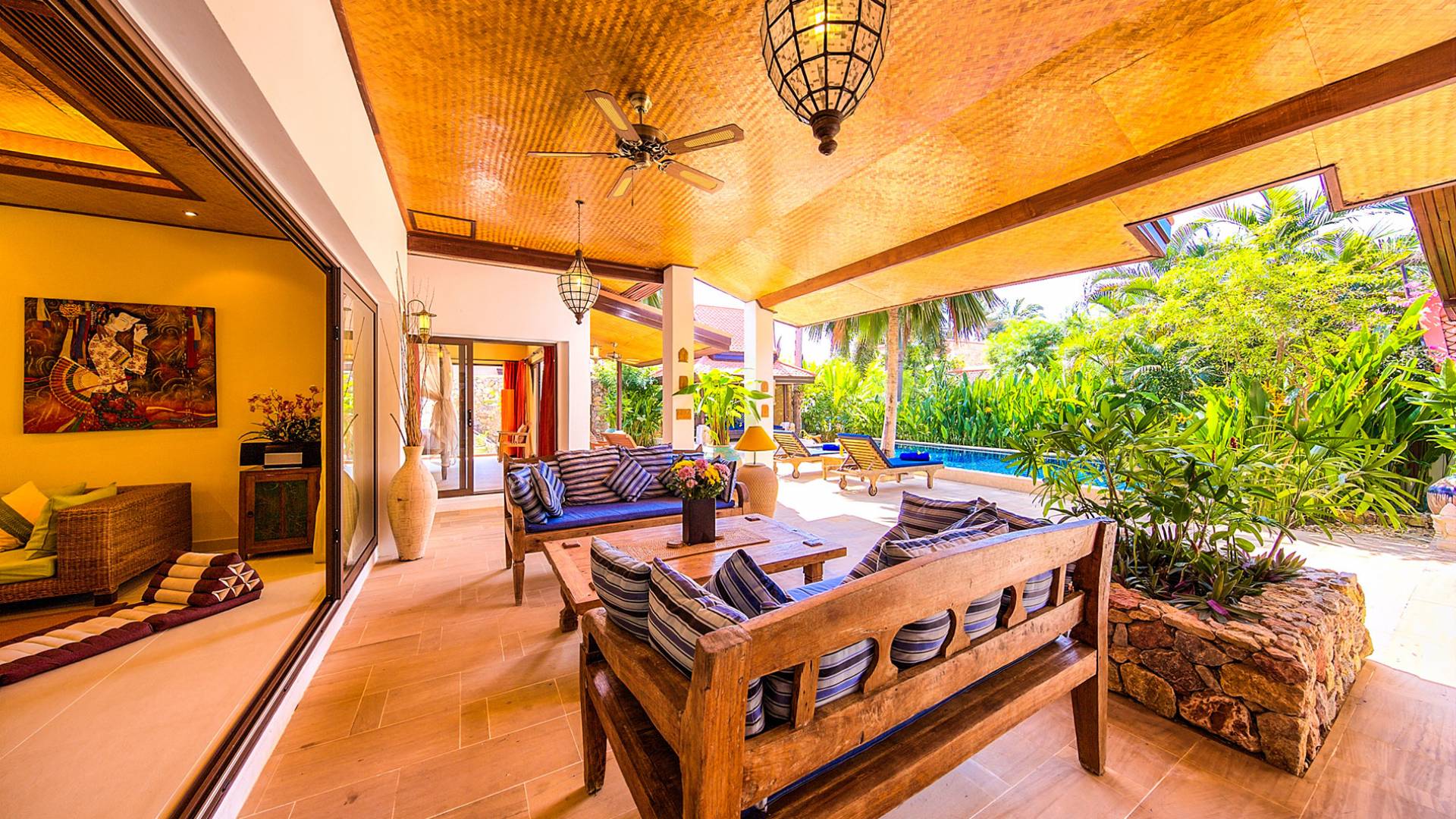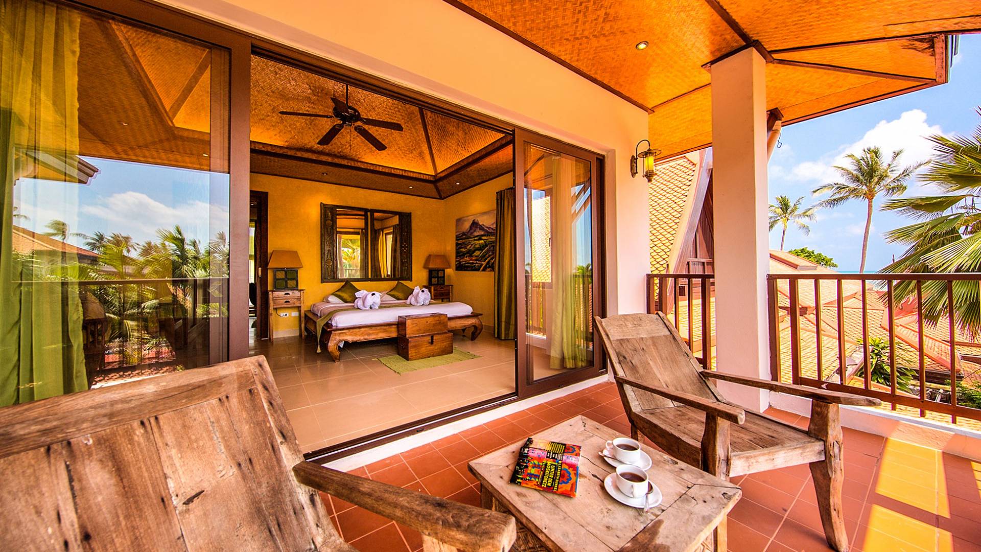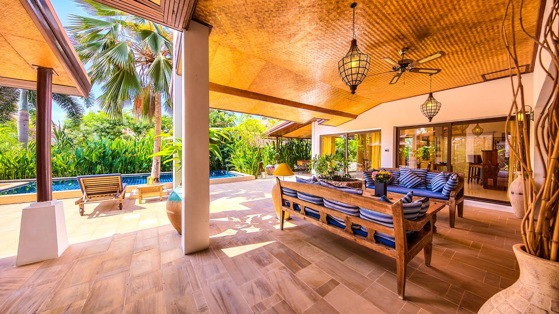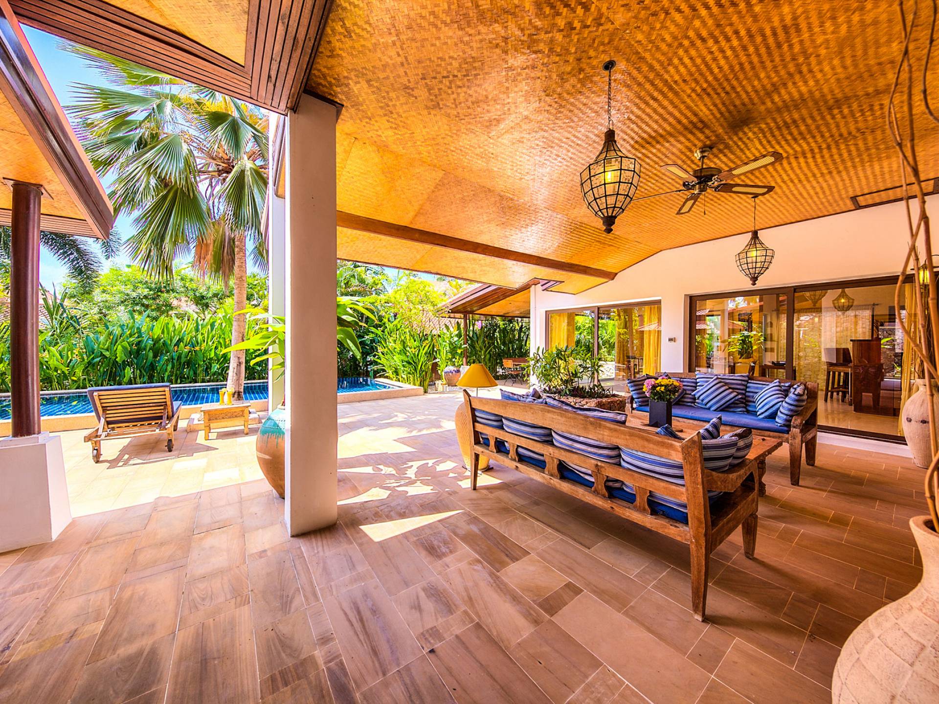 Villa Baan Buaa Samui è una lussuosa villa fronte mare in affitto con 3 camere da letto che può ospitare comodamente 6 adulti. Ci sono 3 camere matrimoniali e una culla che può essere fornita anche su richiesta e soggetta a disponibilità. Questa villa in affitto sulla spiaggia comprende un edificio principale di 2 piani e un edificio separato per gli ospiti adiacente. E' splendidamente arredato con molti pezzi d'antiquariato e riccamente decorato per riflettere l'architettura tailandese/balinese. Baan Buena è stato progettato per riflettere la vita tropicale interna ed esterna e offre un ambiente tranquillo e lussuoso per la tua vacanza sull'isola tropicale a Samui. La villa si trova a pochi passi dalla sabbia bianca di Nahai Beach e offre viste sul mare e sulla spiaggia dalle camere da letto e dai balconi al piano superiore.