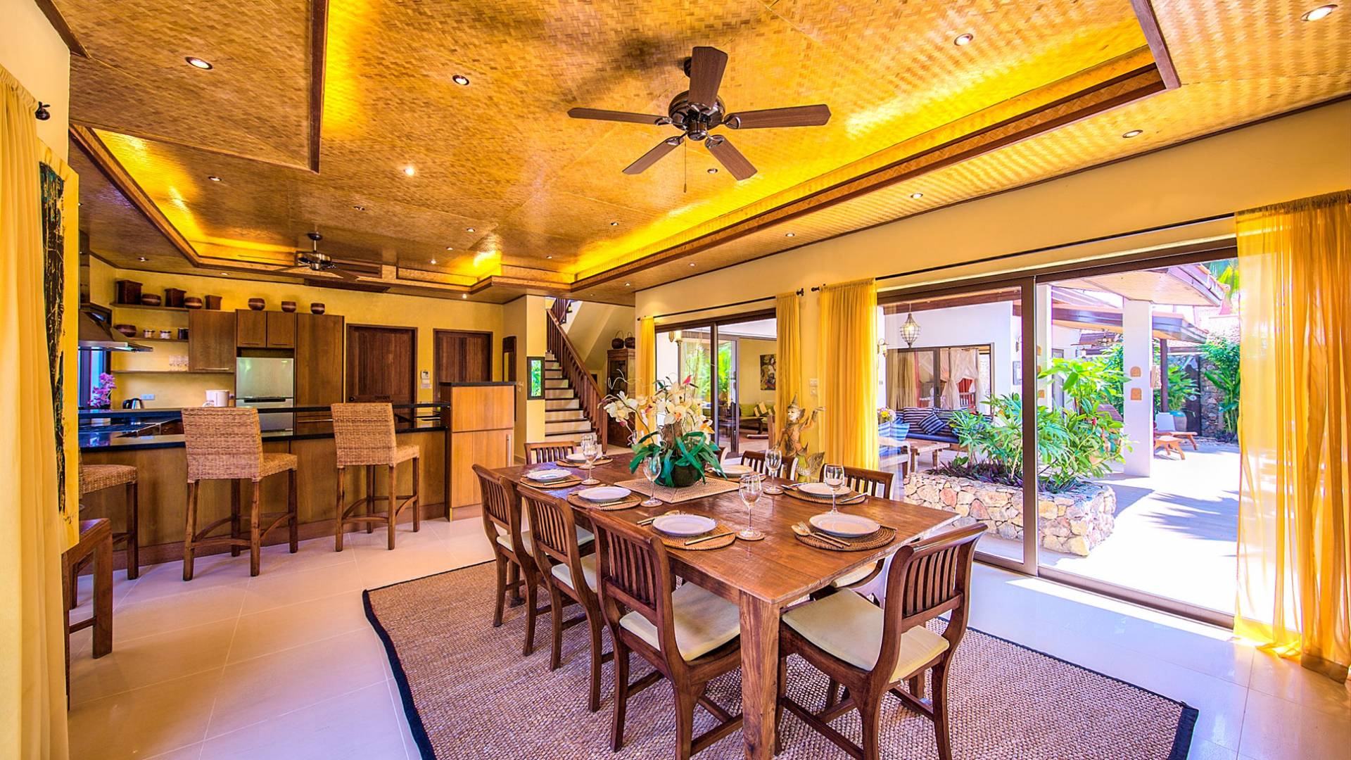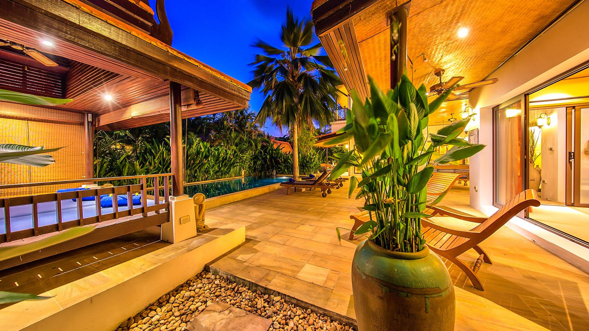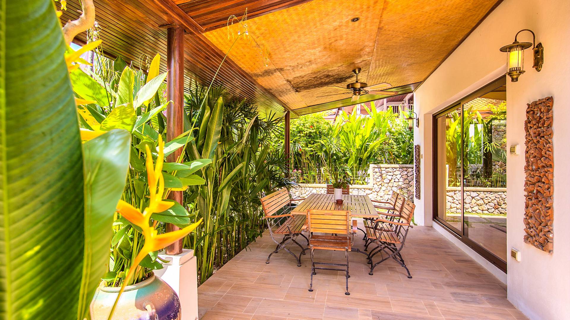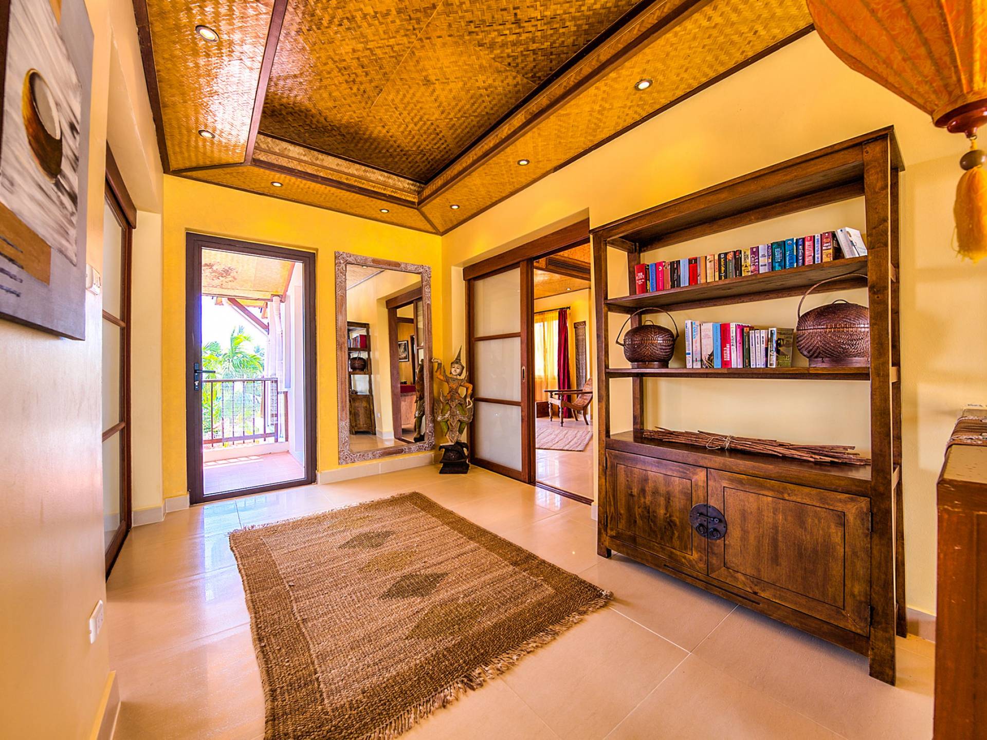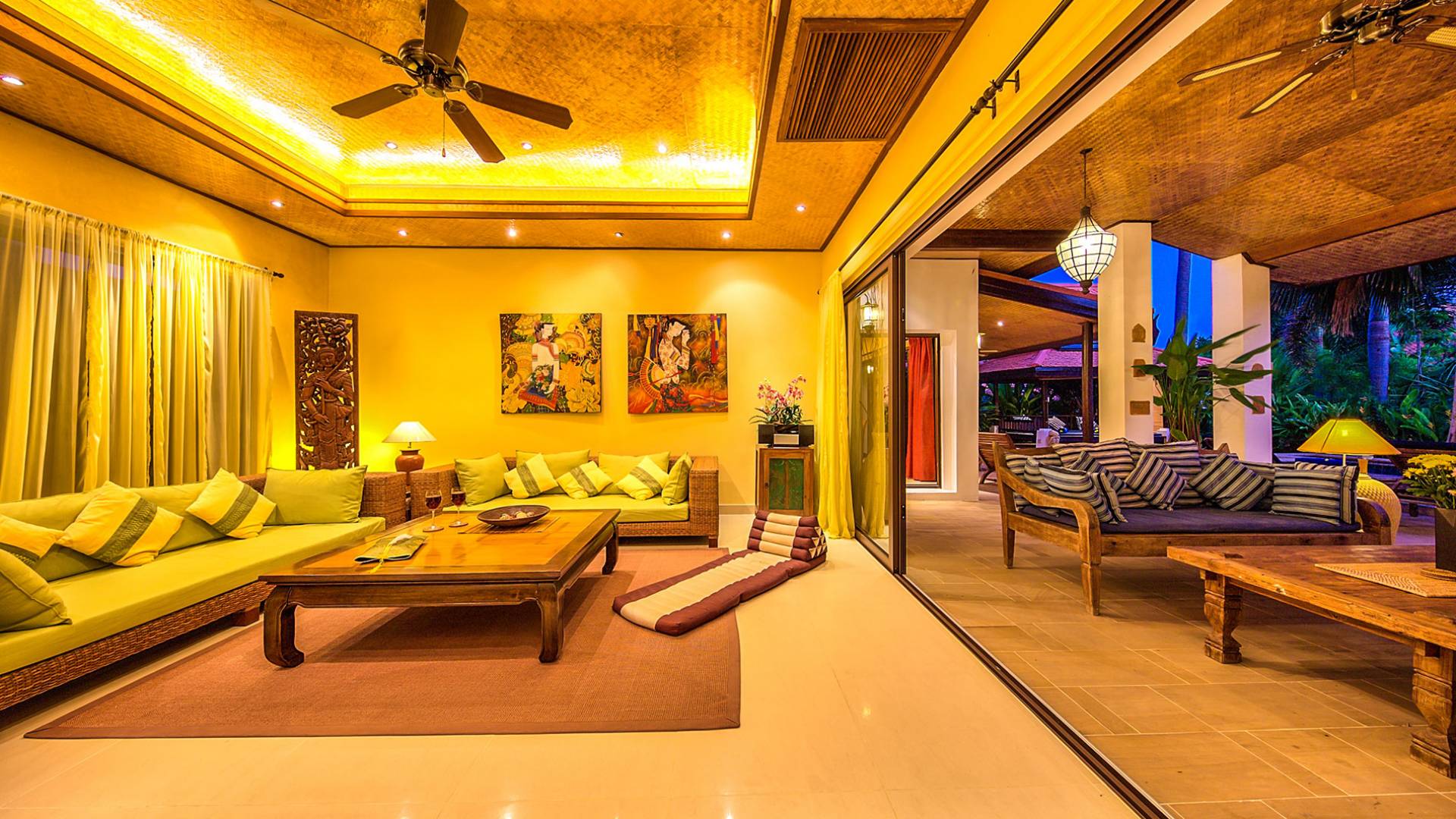 Villa Baan Buaa Samui è una lussuosa villa fronte mare in affitto con 3 camere da letto che può ospitare comodamente 6 adulti. Ci sono 3 camere matrimoniali e una culla che può essere fornita anche su richiesta e soggetta a disponibilità. Questa villa in affitto sulla spiaggia comprende un edificio principale di 2 piani e un edificio separato per gli ospiti adiacente. E' splendidamente arredato con molti pezzi d'antiquariato e riccamente decorato per riflettere l'architettura tailandese/balinese. Baan Buena è stato progettato per riflettere la vita tropicale interna ed esterna e offre un ambiente tranquillo e lussuoso per la tua vacanza sull'isola tropicale a Samui. La villa si trova a pochi passi dalla sabbia bianca di Nahai Beach e offre viste sul mare e sulla spiaggia dalle camere da letto e dai balconi al piano superiore.
