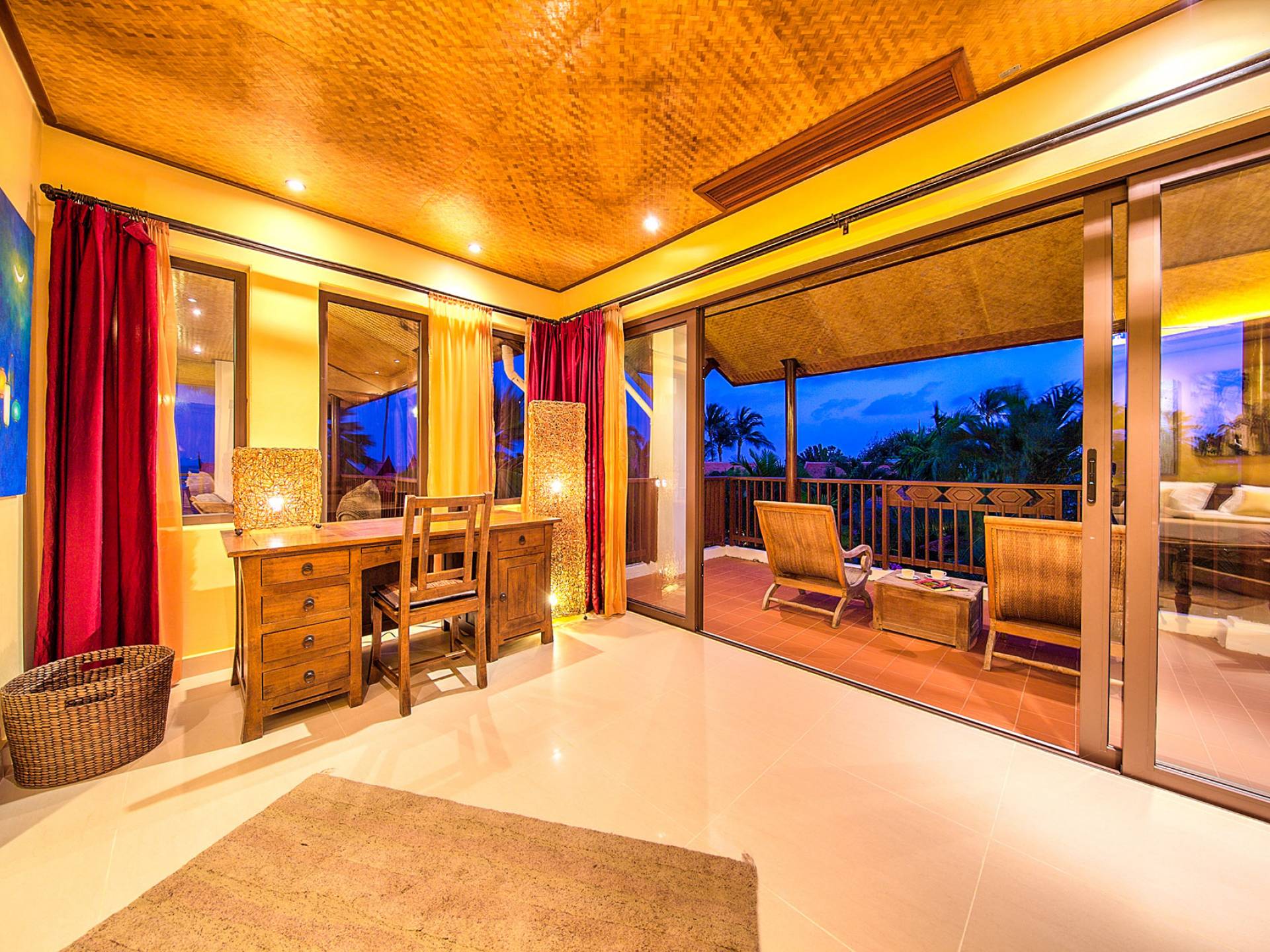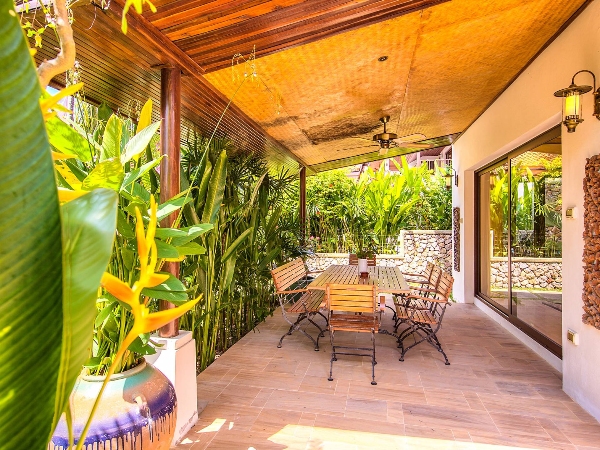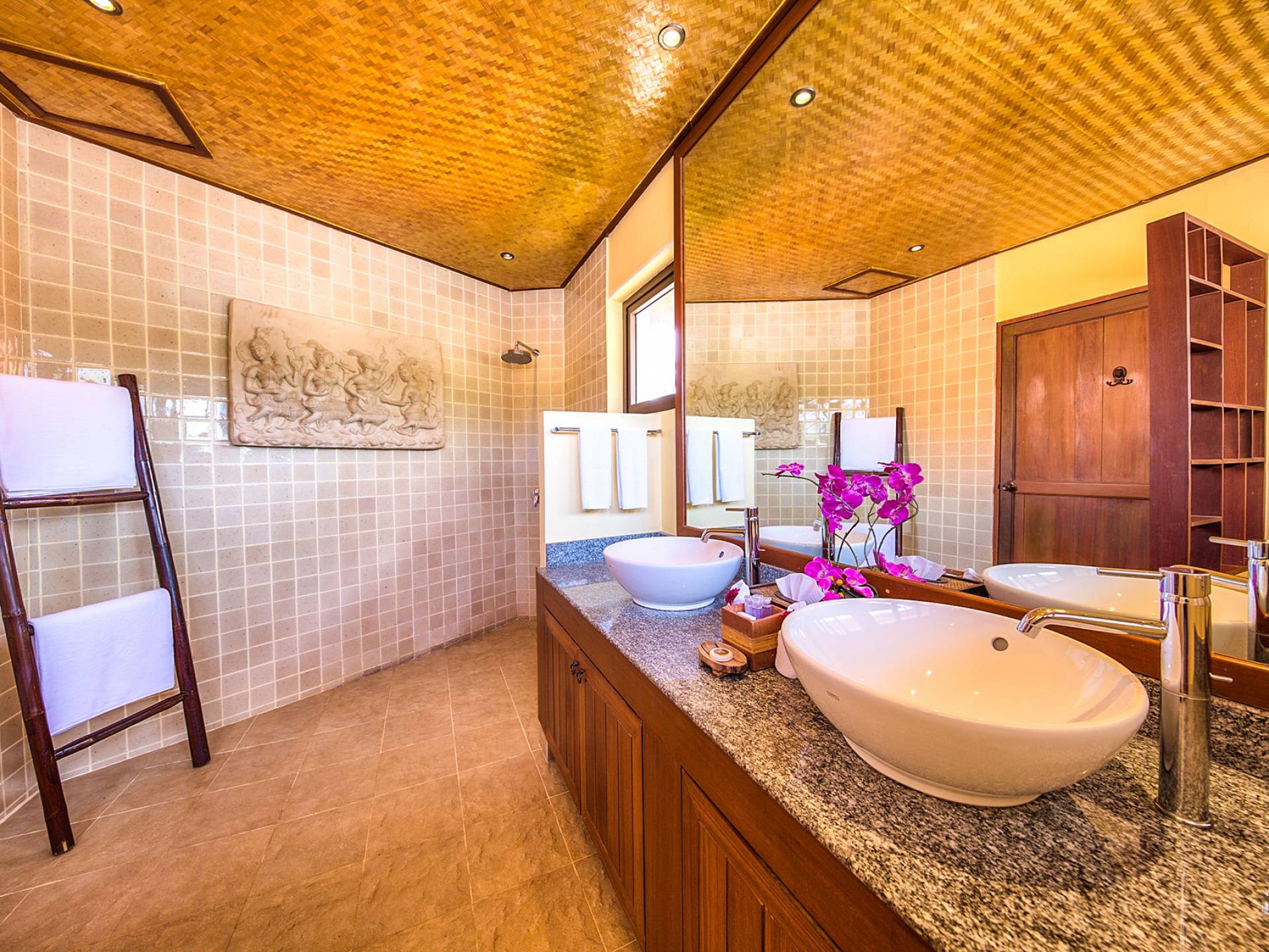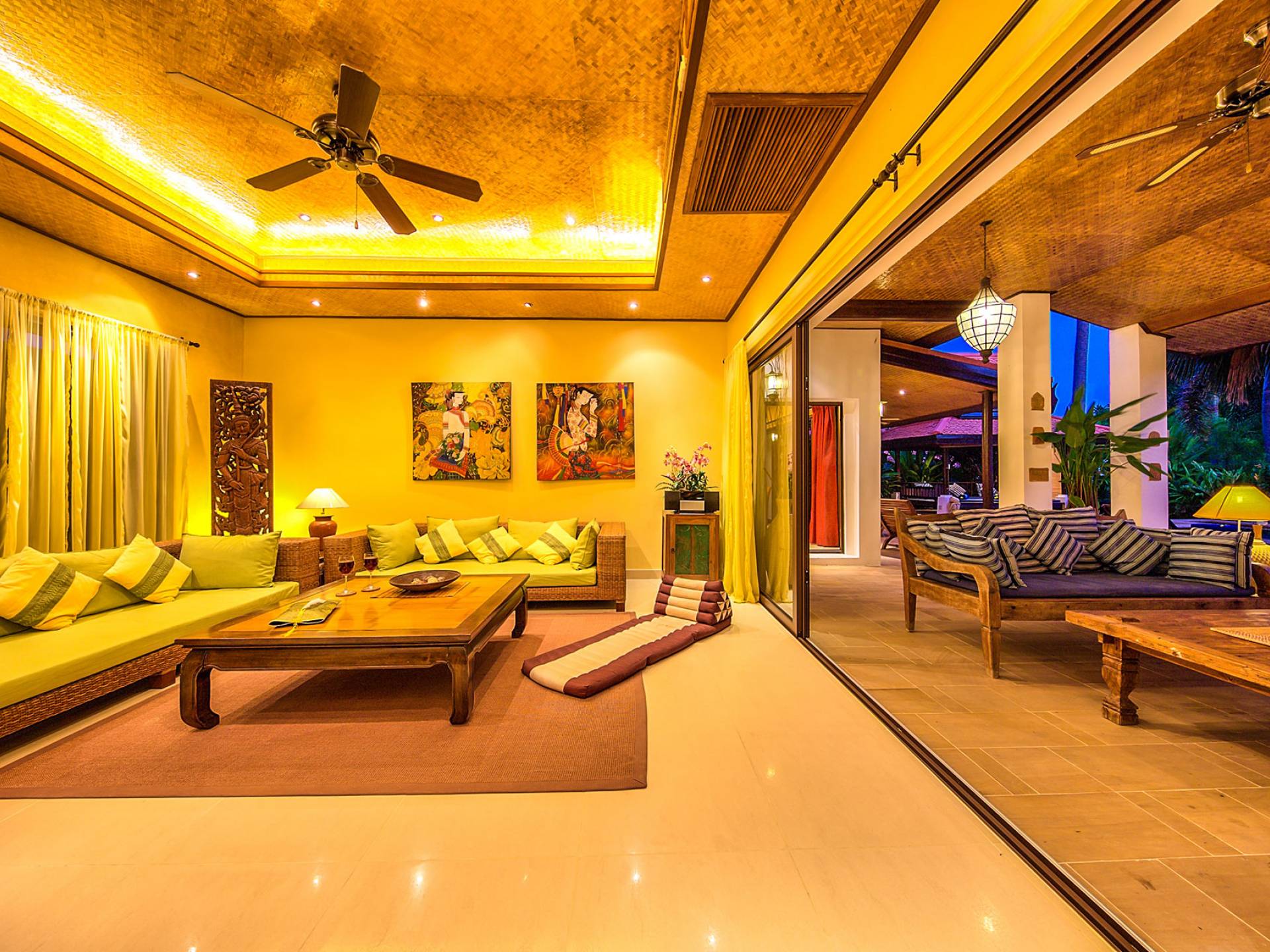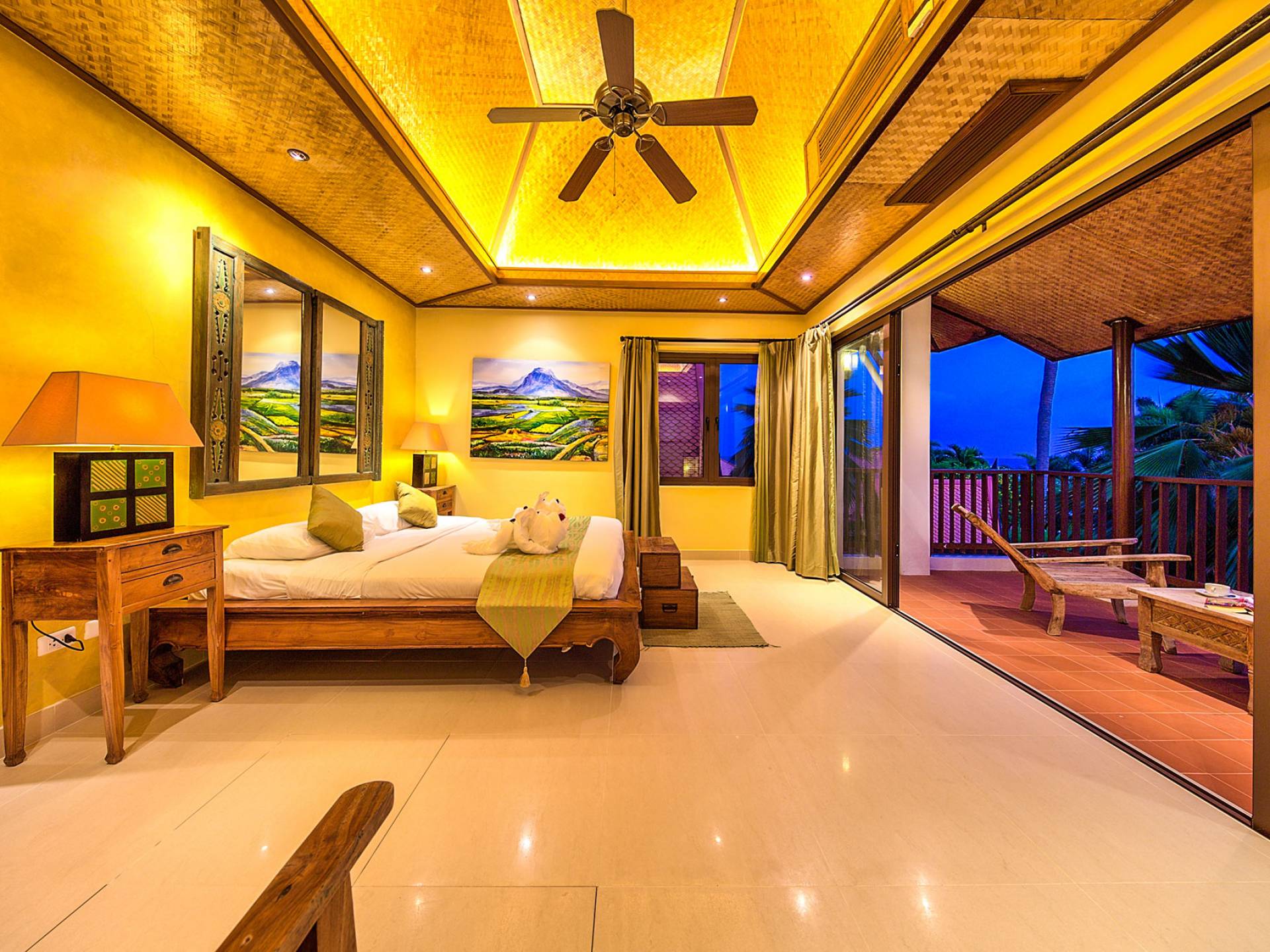 Villa Baan Buaa Samui è una lussuosa villa fronte mare in affitto con 3 camere da letto che può ospitare comodamente 6 adulti. Ci sono 3 camere matrimoniali e una culla che può essere fornita anche su richiesta e soggetta a disponibilità. Questa villa in affitto sulla spiaggia comprende un edificio principale di 2 piani e un edificio separato per gli ospiti adiacente. E' splendidamente arredato con molti pezzi d'antiquariato e riccamente decorato per riflettere l'architettura tailandese/balinese. Baan Buena è stato progettato per riflettere la vita tropicale interna ed esterna e offre un ambiente tranquillo e lussuoso per la tua vacanza sull'isola tropicale a Samui. La villa si trova a pochi passi dalla sabbia bianca di Nahai Beach e offre viste sul mare e sulla spiaggia dalle camere da letto e dai balconi al piano superiore.
