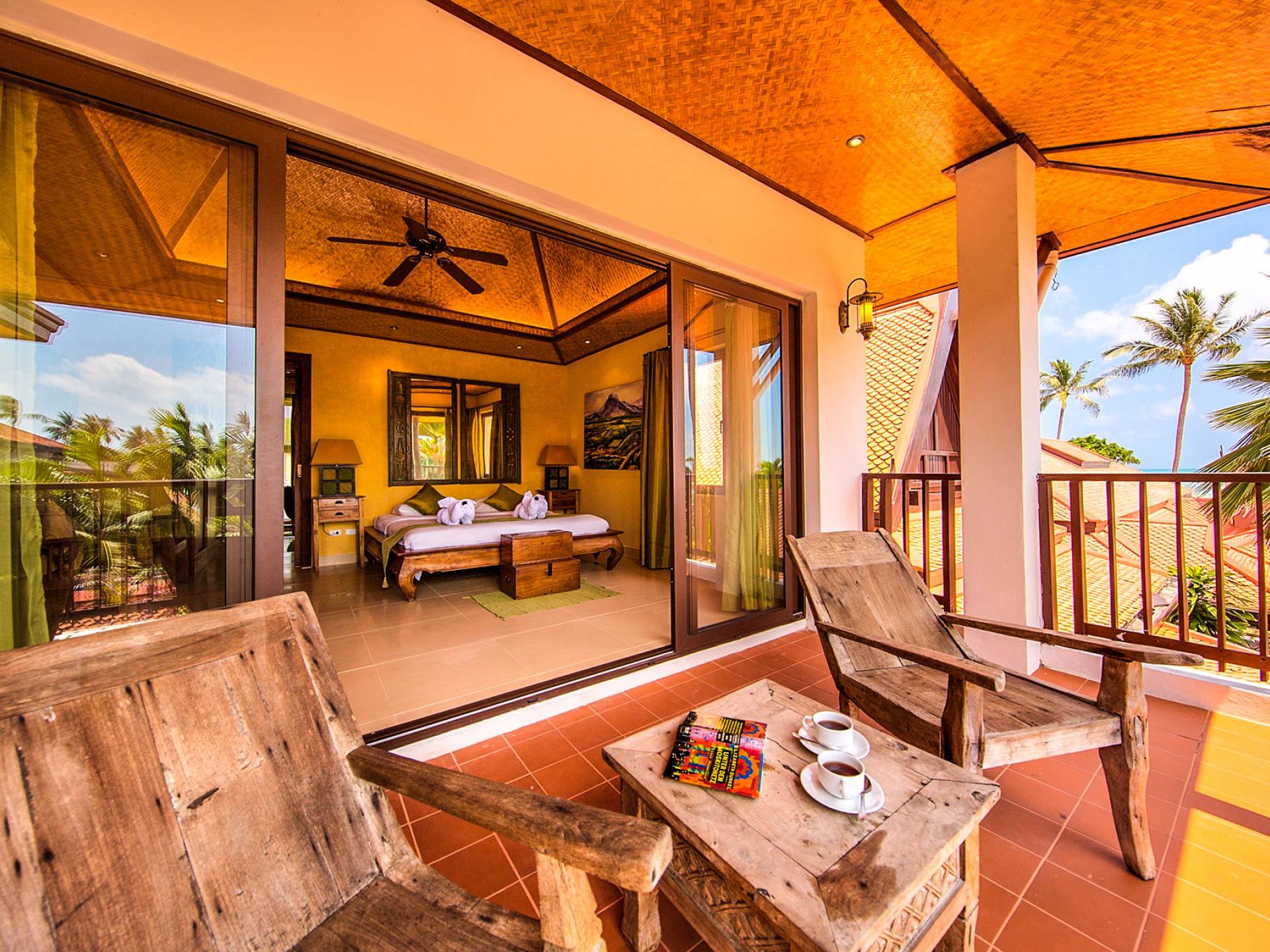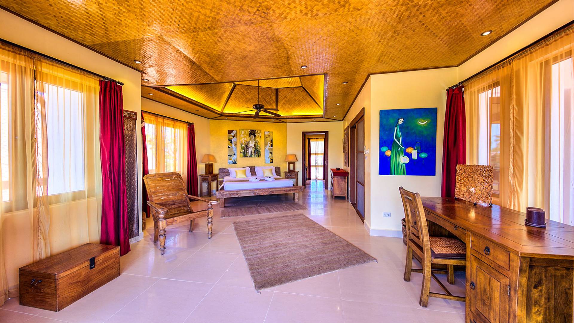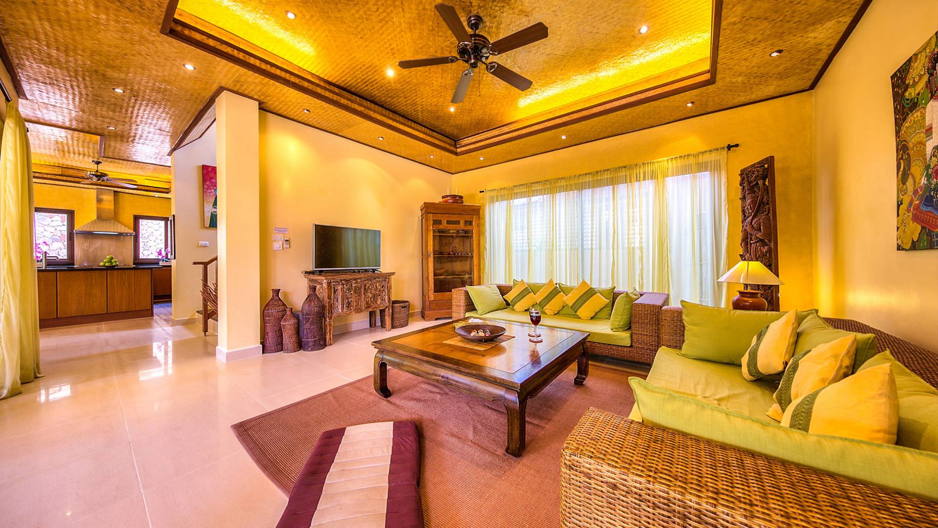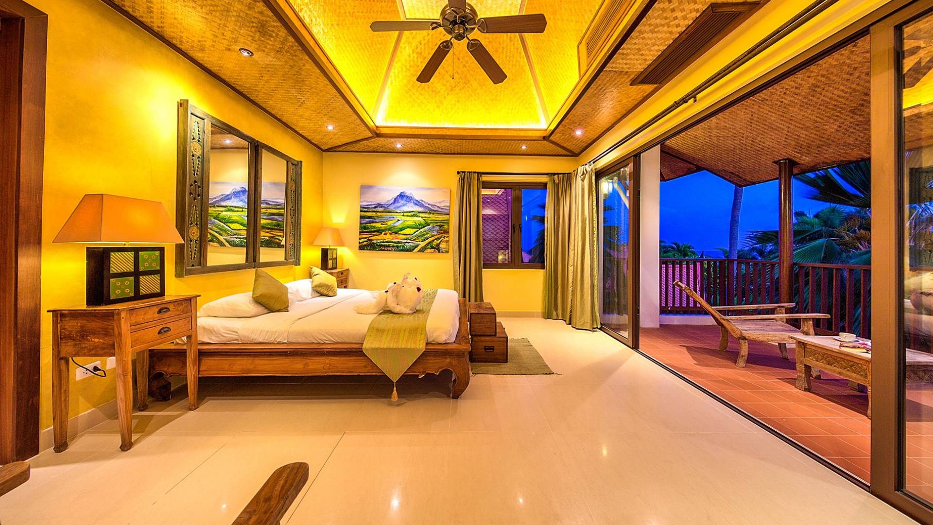 Villa Baan Buaa Samui è una lussuosa villa fronte mare in affitto con 3 camere da letto che può ospitare comodamente 6 adulti. Ci sono 3 camere matrimoniali e una culla che può essere fornita anche su richiesta e soggetta a disponibilità. Questa villa in affitto sulla spiaggia comprende un edificio principale di 2 piani e un edificio separato per gli ospiti adiacente. E' splendidamente arredato con molti pezzi d'antiquariato e riccamente decorato per riflettere l'architettura tailandese/balinese. Baan Buena è stato progettato per riflettere la vita tropicale interna ed esterna e offre un ambiente tranquillo e lussuoso per la tua vacanza sull'isola tropicale a Samui. La villa si trova a pochi passi dalla sabbia bianca di Nahai Beach e offre viste sul mare e sulla spiaggia dalle camere da letto e dai balconi al piano superiore.
