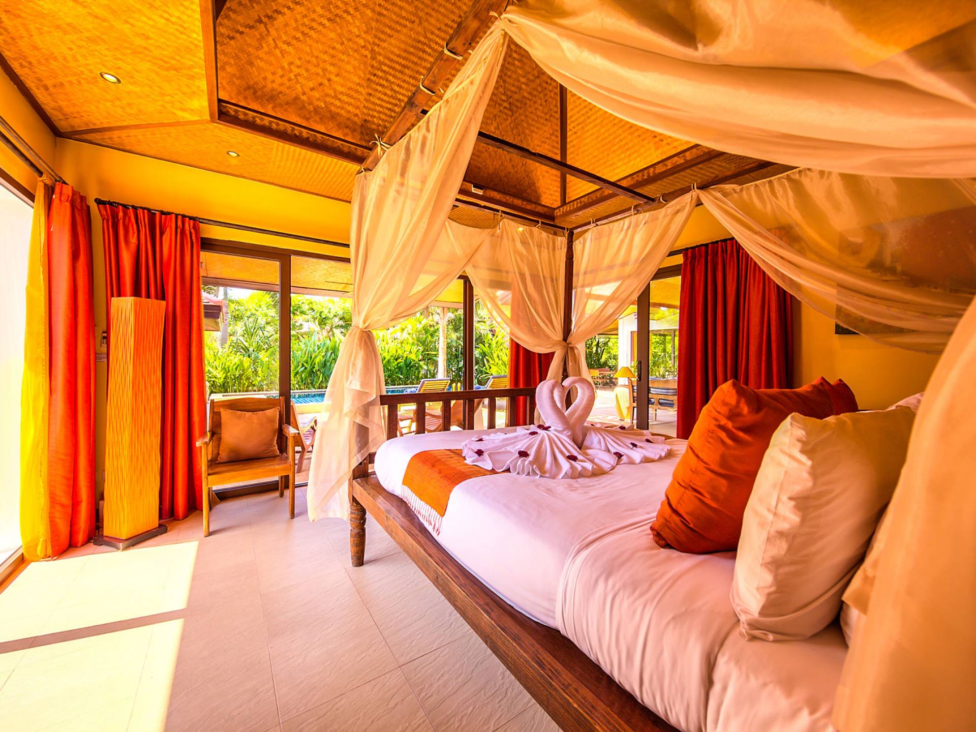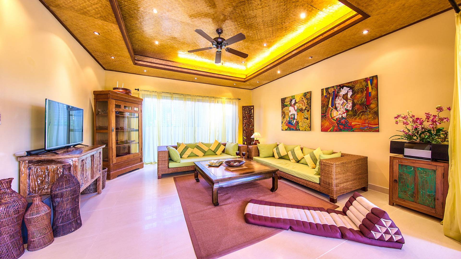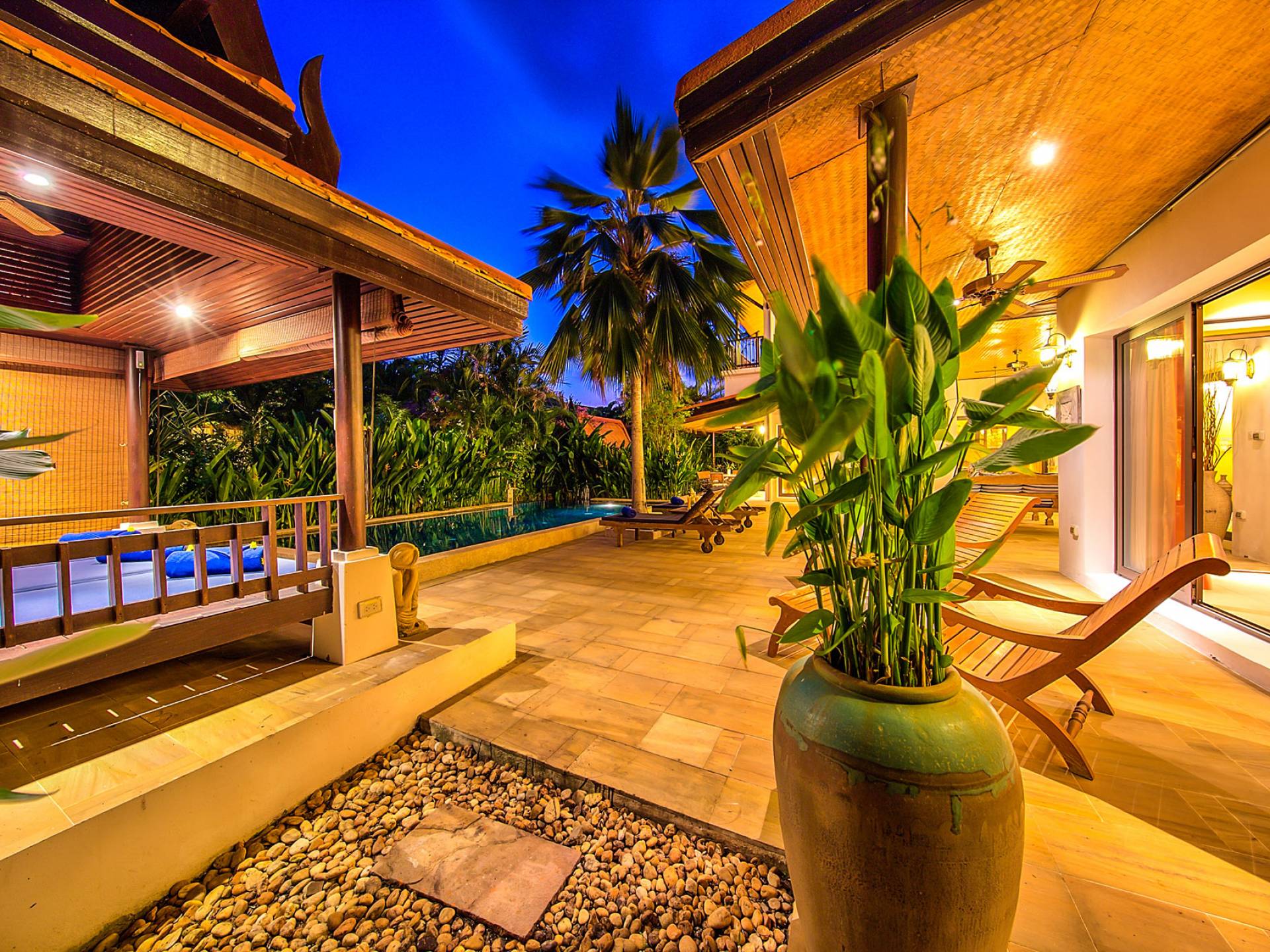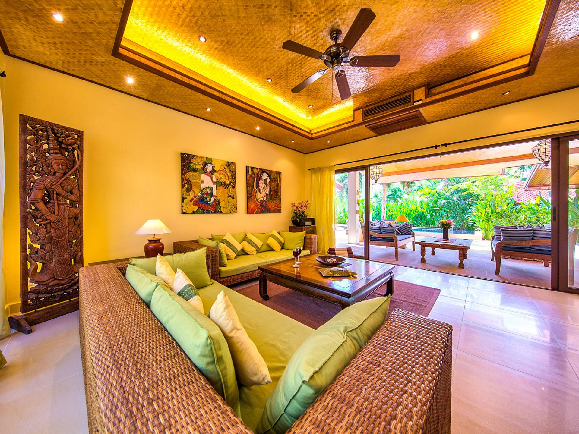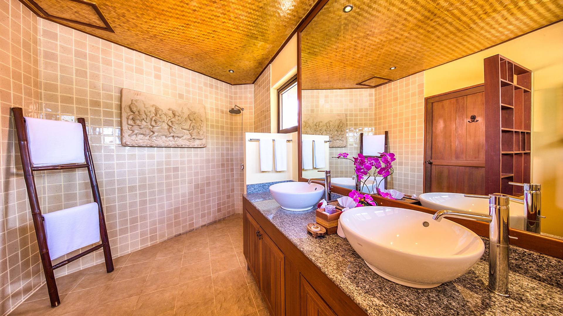 Villa Baan Buaa Samui è una lussuosa villa fronte mare in affitto con 3 camere da letto che può ospitare comodamente 6 adulti. Ci sono 3 camere matrimoniali e una culla che può essere fornita anche su richiesta e soggetta a disponibilità. Questa villa in affitto sulla spiaggia comprende un edificio principale di 2 piani e un edificio separato per gli ospiti adiacente. E' splendidamente arredato con molti pezzi d'antiquariato e riccamente decorato per riflettere l'architettura tailandese/balinese. Baan Buena è stato progettato per riflettere la vita tropicale interna ed esterna e offre un ambiente tranquillo e lussuoso per la tua vacanza sull'isola tropicale a Samui. La villa si trova a pochi passi dalla sabbia bianca di Nahai Beach e offre viste sul mare e sulla spiaggia dalle camere da letto e dai balconi al piano superiore.
