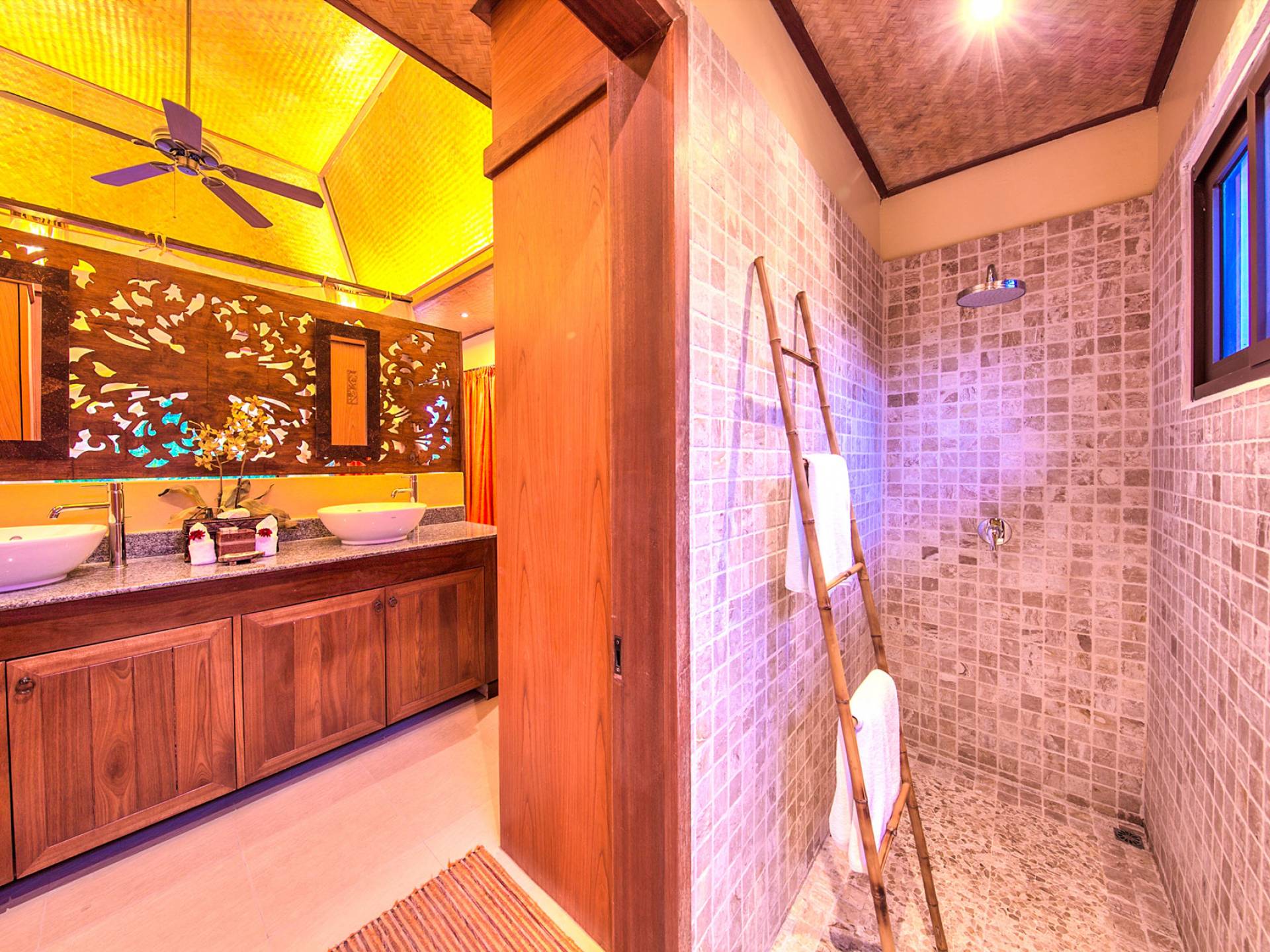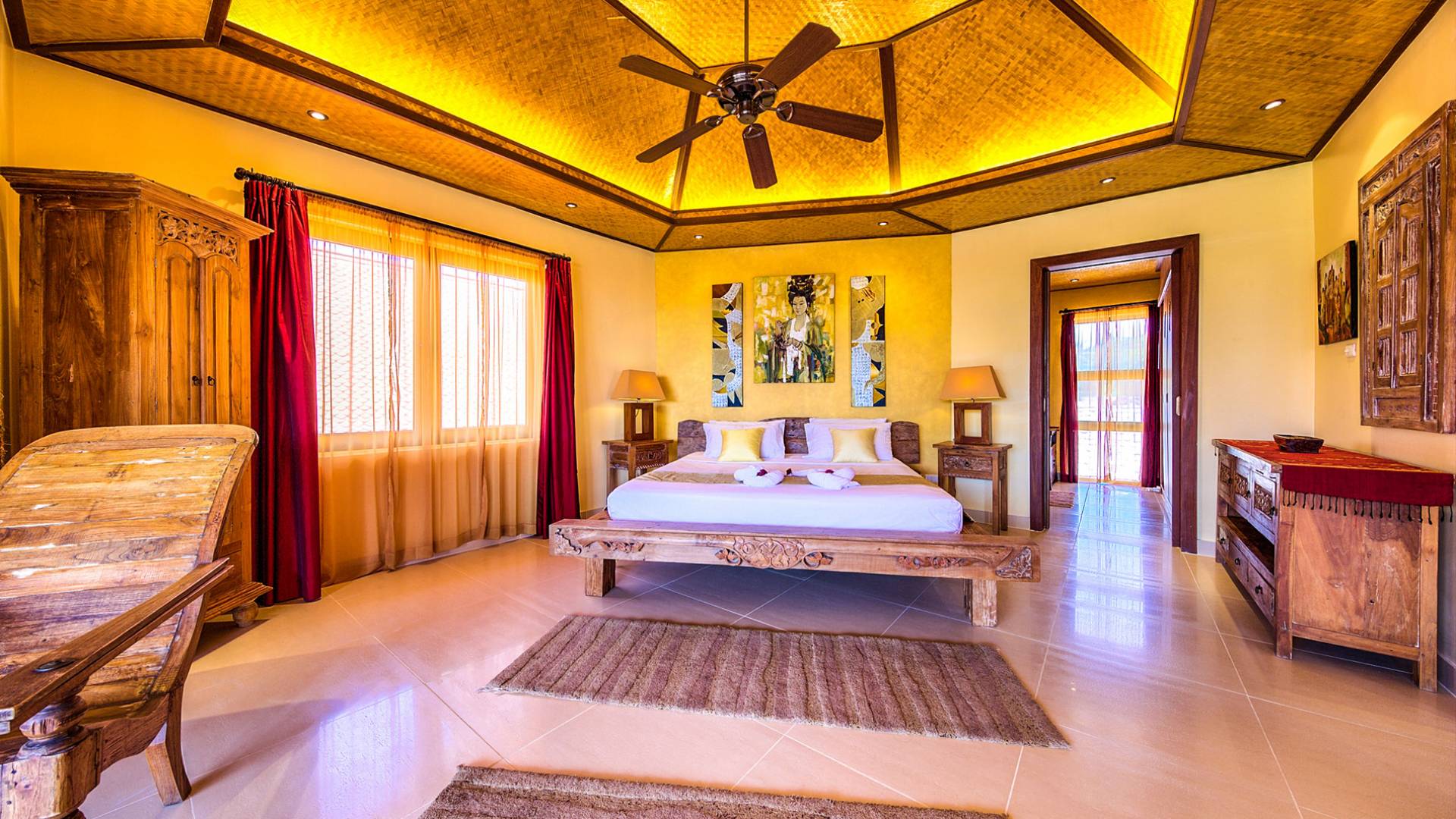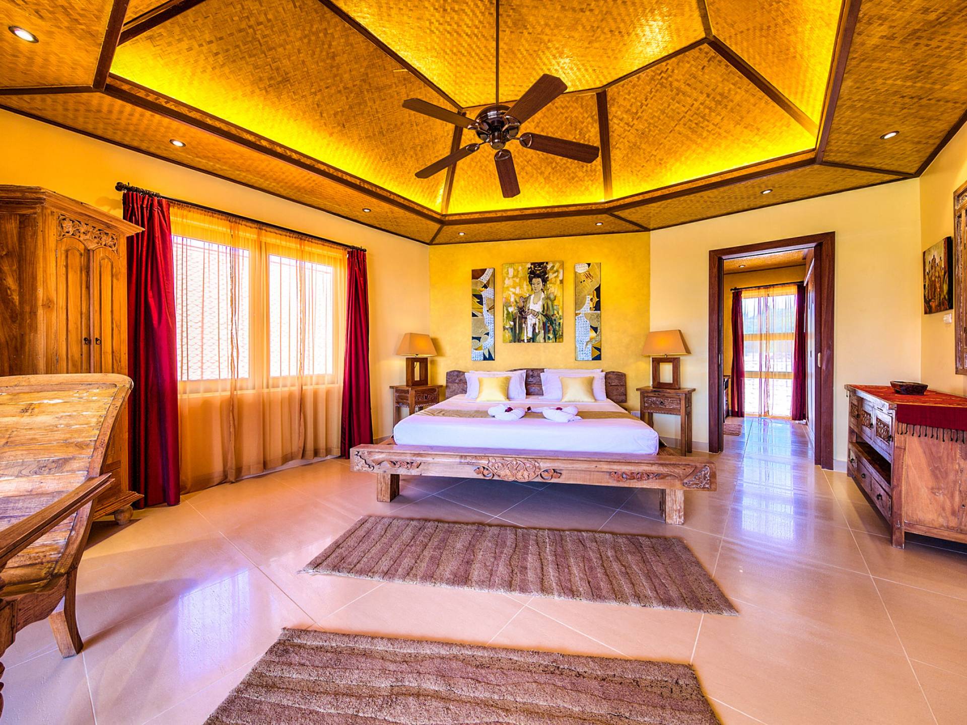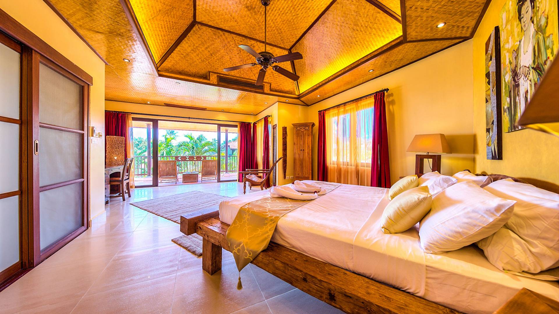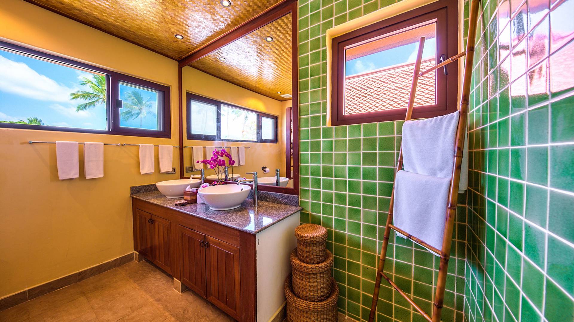 Villa Baan Buaa Samui è una lussuosa villa fronte mare in affitto con 3 camere da letto che può ospitare comodamente 6 adulti. Ci sono 3 camere matrimoniali e una culla che può essere fornita anche su richiesta e soggetta a disponibilità. Questa villa in affitto sulla spiaggia comprende un edificio principale di 2 piani e un edificio separato per gli ospiti adiacente. E' splendidamente arredato con molti pezzi d'antiquariato e riccamente decorato per riflettere l'architettura tailandese/balinese. Baan Buena è stato progettato per riflettere la vita tropicale interna ed esterna e offre un ambiente tranquillo e lussuoso per la tua vacanza sull'isola tropicale a Samui. La villa si trova a pochi passi dalla sabbia bianca di Nahai Beach e offre viste sul mare e sulla spiaggia dalle camere da letto e dai balconi al piano superiore.