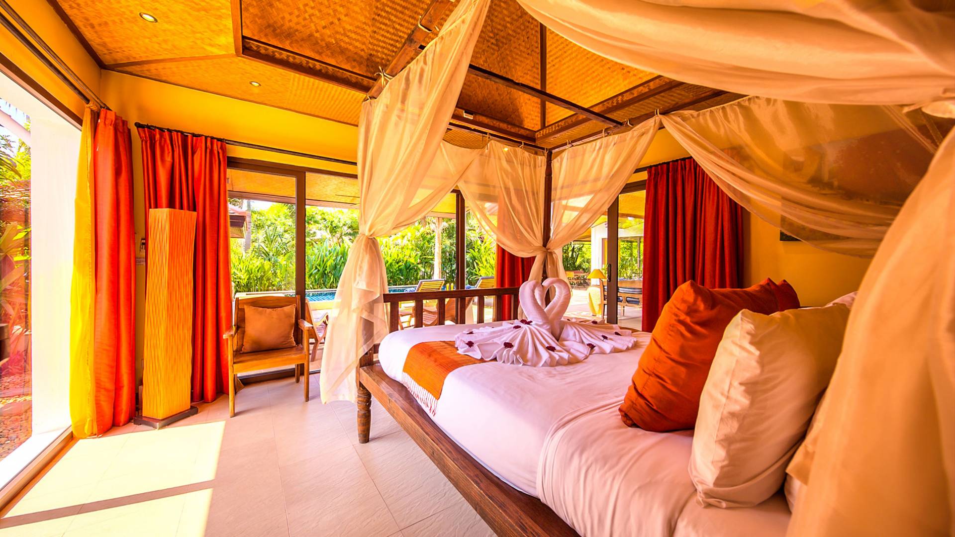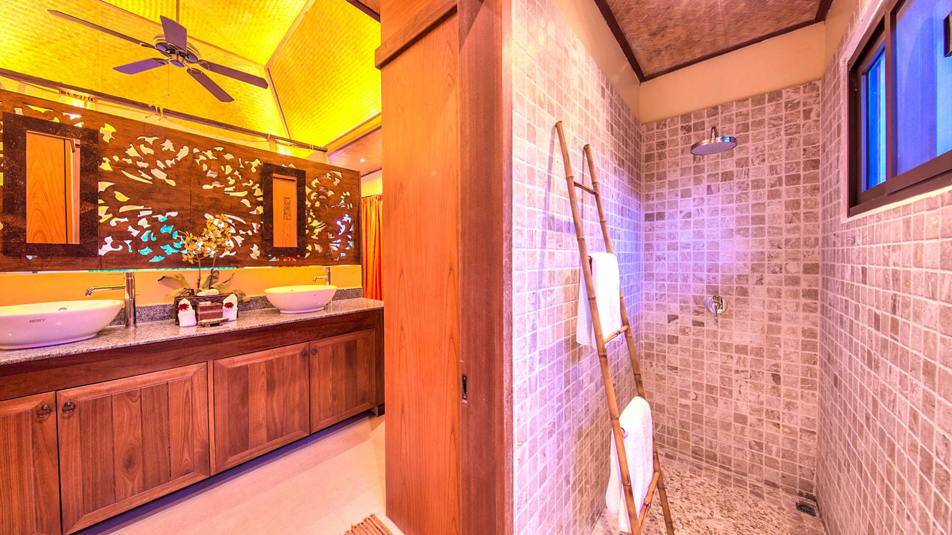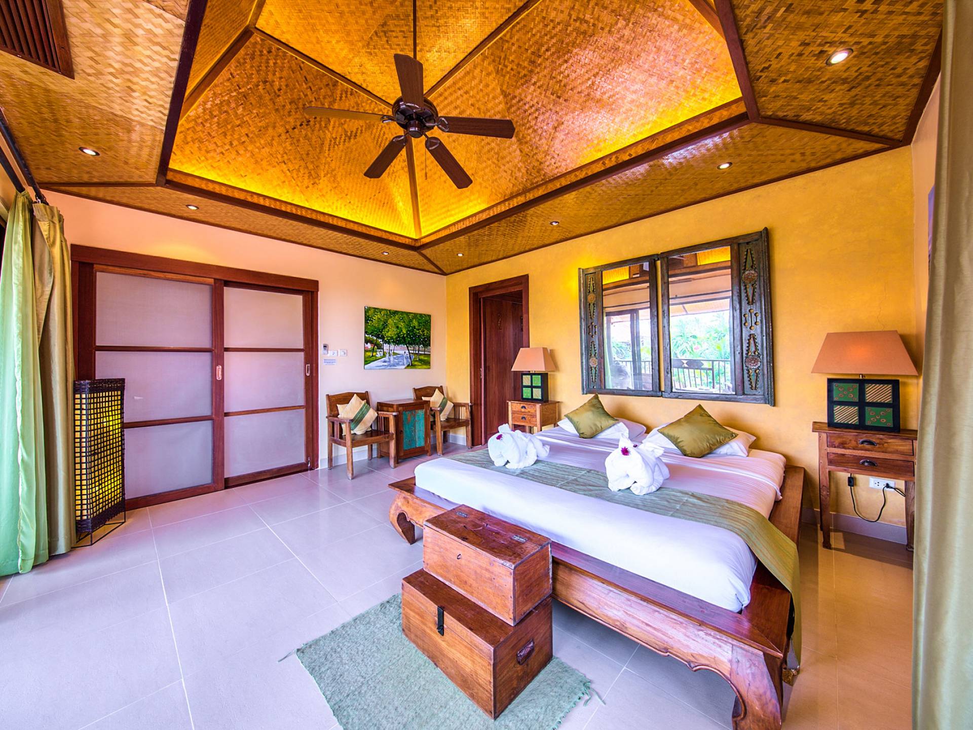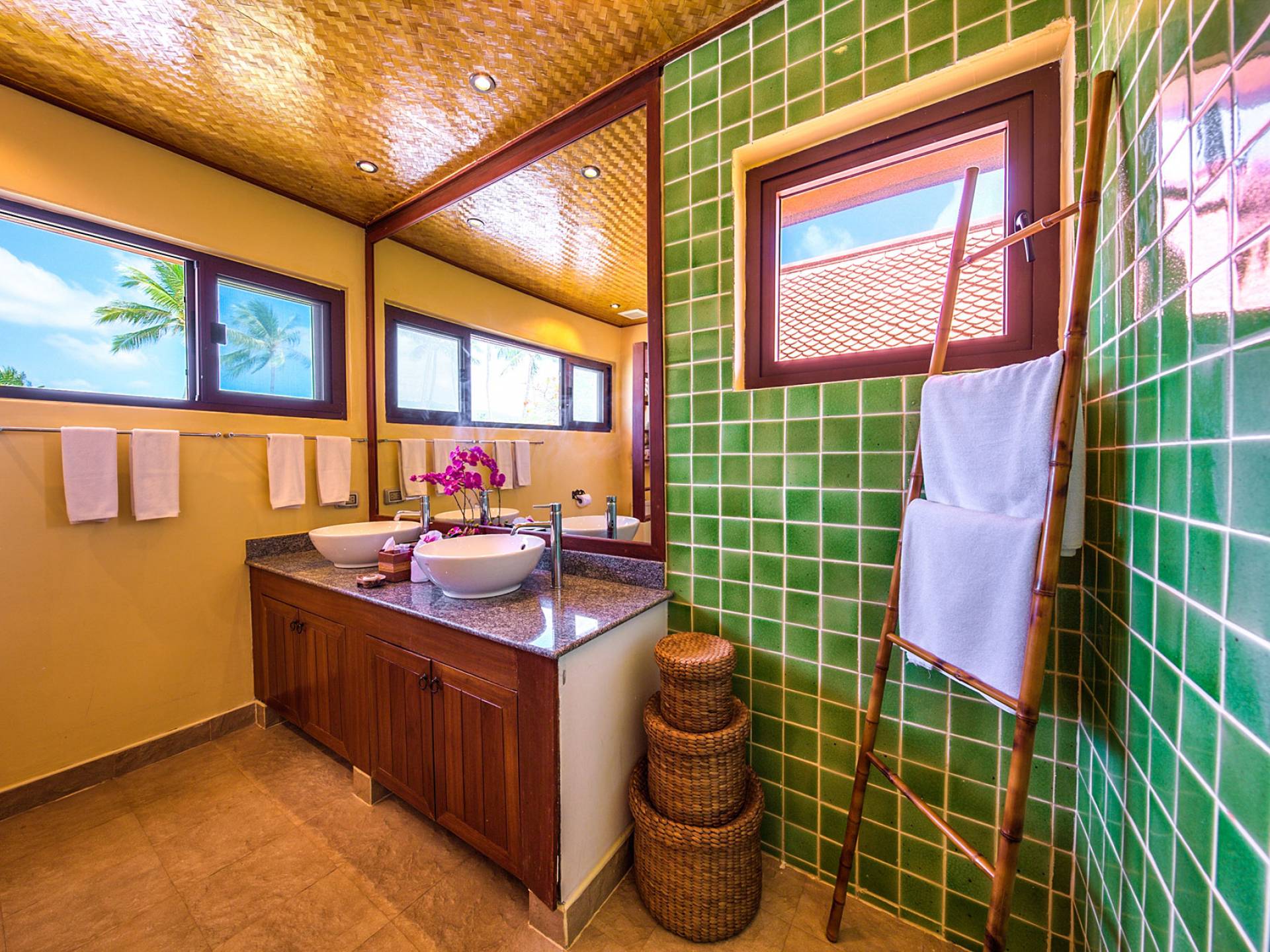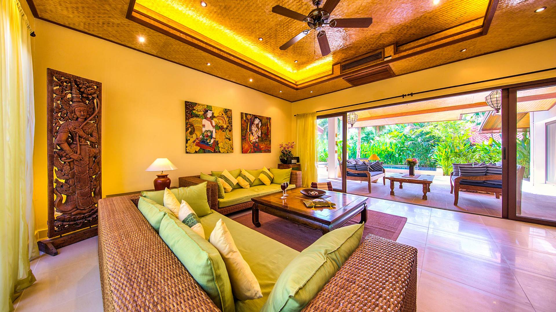 Villa Baan Buaa Samui è una lussuosa villa fronte mare in affitto con 3 camere da letto che può ospitare comodamente 6 adulti. Ci sono 3 camere matrimoniali e una culla che può essere fornita anche su richiesta e soggetta a disponibilità. Questa villa in affitto sulla spiaggia comprende un edificio principale di 2 piani e un edificio separato per gli ospiti adiacente. E' splendidamente arredato con molti pezzi d'antiquariato e riccamente decorato per riflettere l'architettura tailandese/balinese. Baan Buena è stato progettato per riflettere la vita tropicale interna ed esterna e offre un ambiente tranquillo e lussuoso per la tua vacanza sull'isola tropicale a Samui. La villa si trova a pochi passi dalla sabbia bianca di Nahai Beach e offre viste sul mare e sulla spiaggia dalle camere da letto e dai balconi al piano superiore.