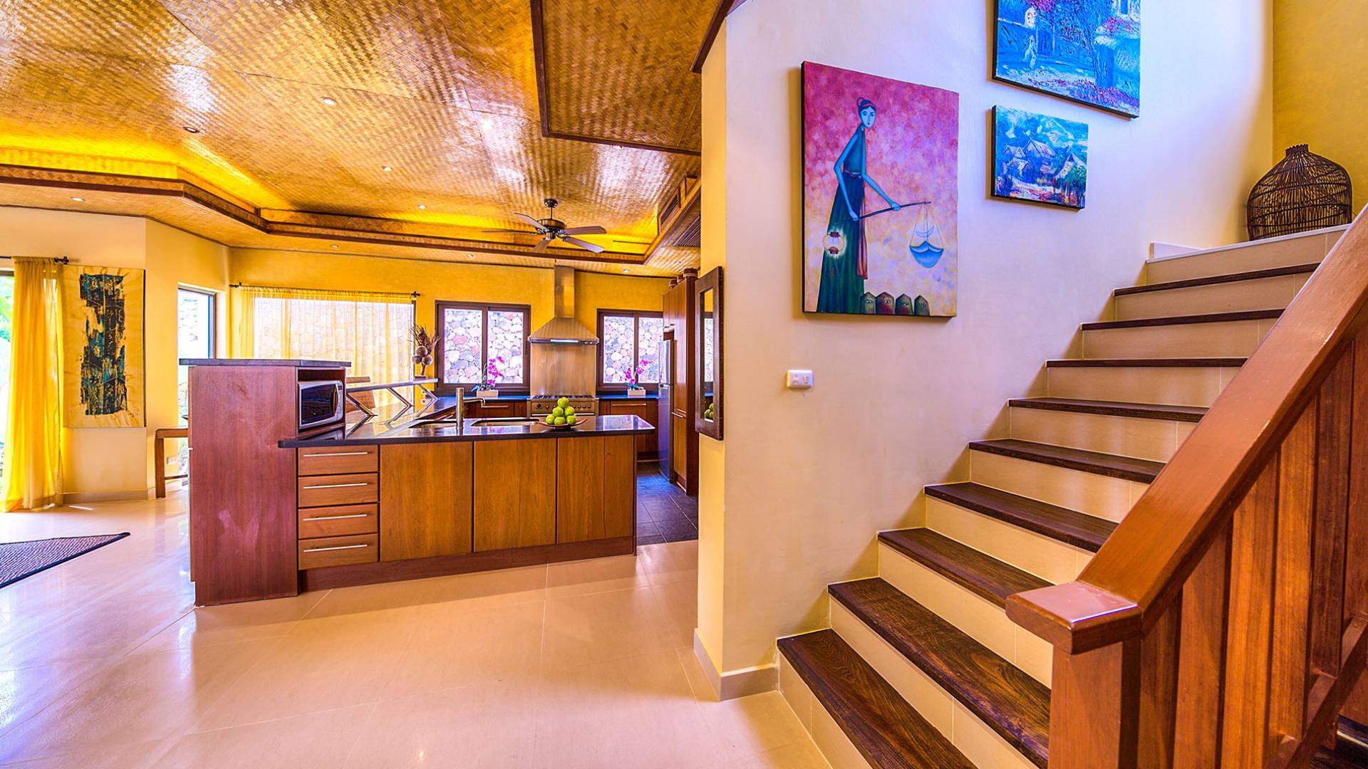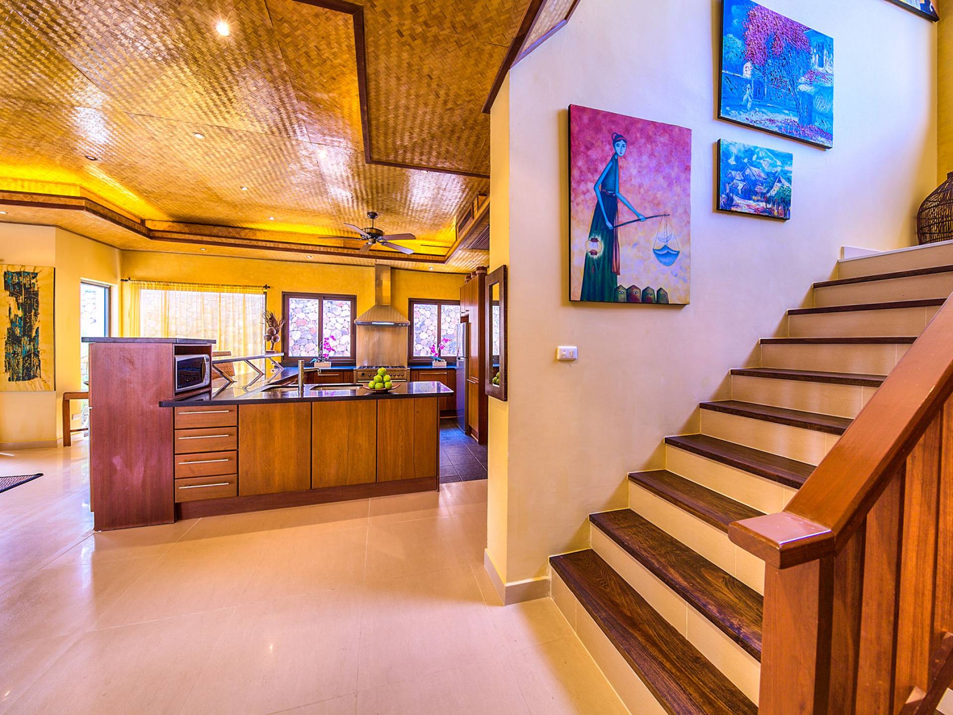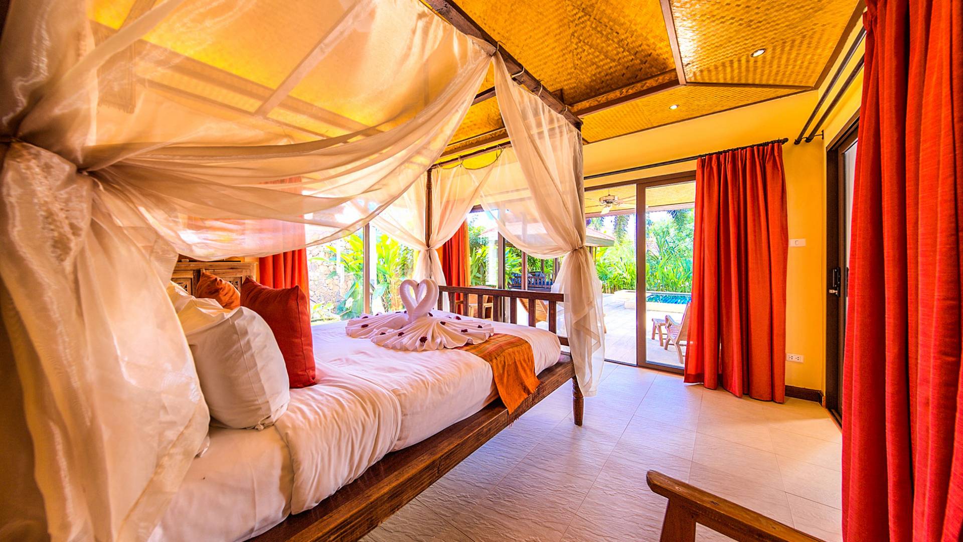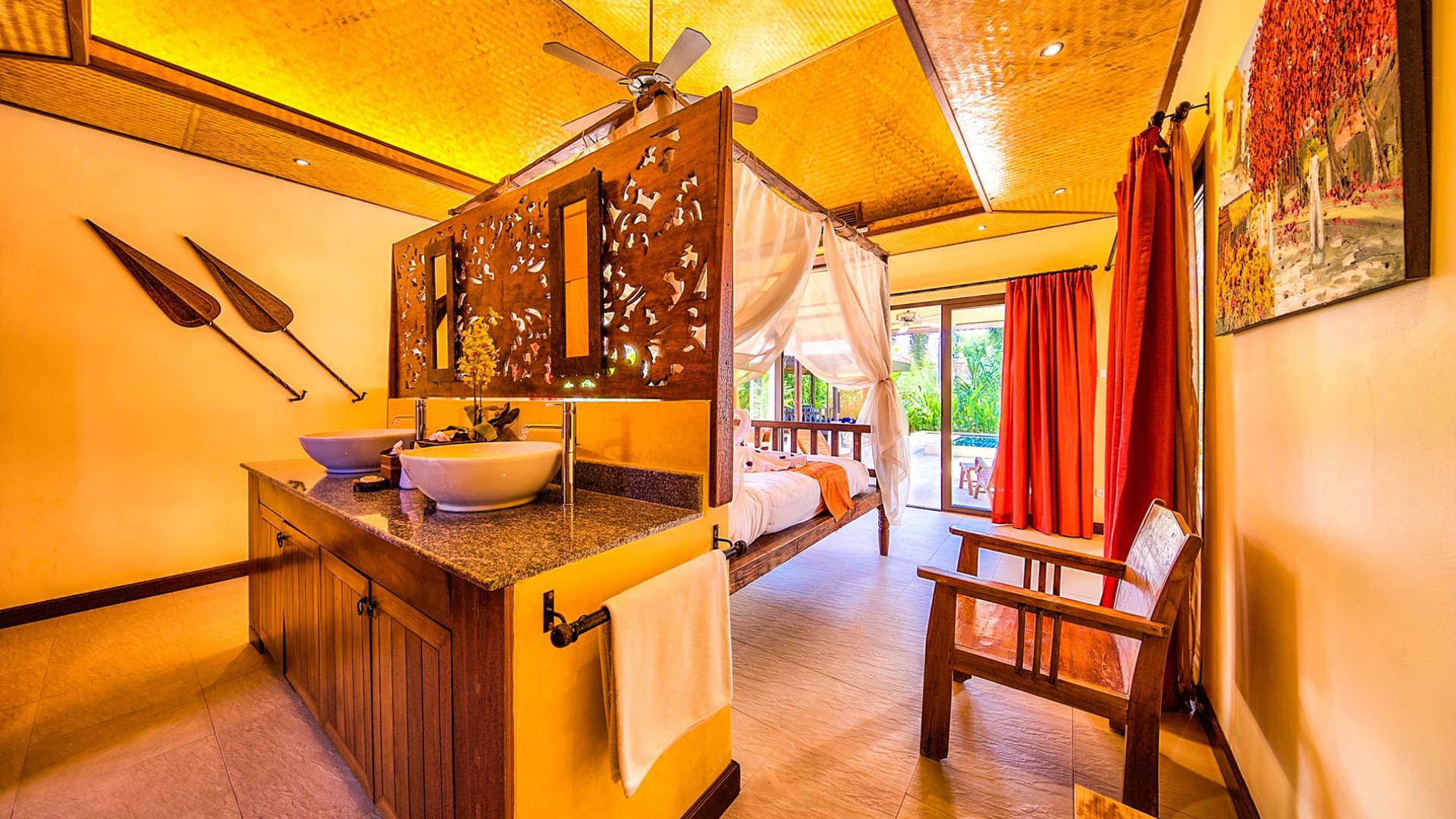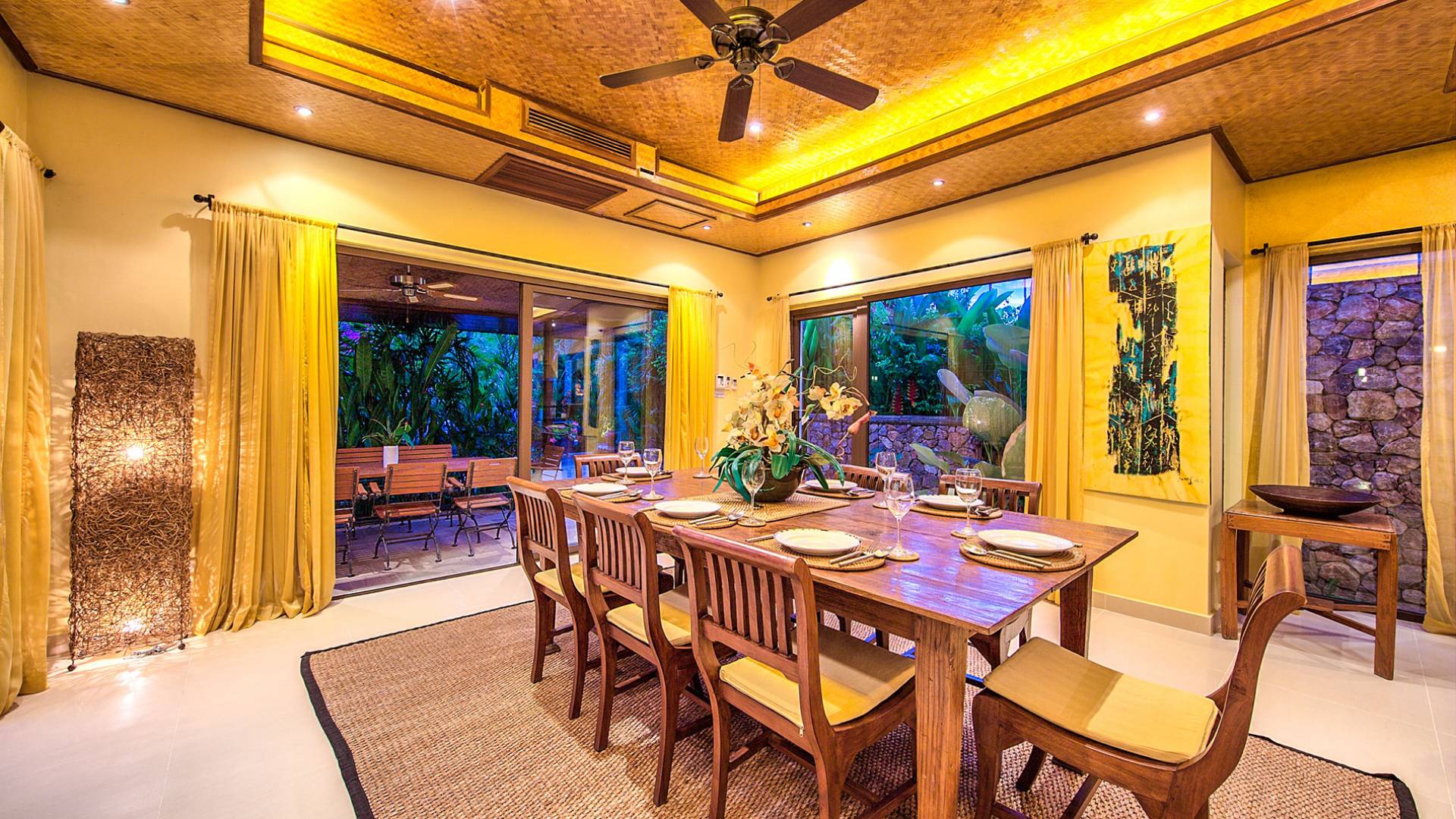 Villa Baan Buaa Samui è una lussuosa villa fronte mare in affitto con 3 camere da letto che può ospitare comodamente 6 adulti. Ci sono 3 camere matrimoniali e una culla che può essere fornita anche su richiesta e soggetta a disponibilità. Questa villa in affitto sulla spiaggia comprende un edificio principale di 2 piani e un edificio separato per gli ospiti adiacente. E' splendidamente arredato con molti pezzi d'antiquariato e riccamente decorato per riflettere l'architettura tailandese/balinese. Baan Buena è stato progettato per riflettere la vita tropicale interna ed esterna e offre un ambiente tranquillo e lussuoso per la tua vacanza sull'isola tropicale a Samui. La villa si trova a pochi passi dalla sabbia bianca di Nahai Beach e offre viste sul mare e sulla spiaggia dalle camere da letto e dai balconi al piano superiore.