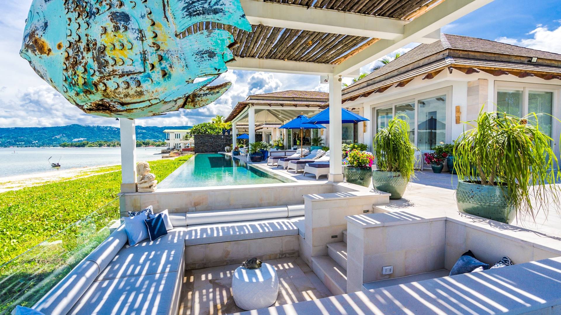 Con un'ampia facciata sulla spiaggia, i panorami sono semplicemente incredibili sulla baia di Chaweng e sull'adiacente piccola isola di Koh Matlang. La villa è cablata per il suono, consentendo agli amanti della musica di dedicarsi ai loro brani preferiti mentre fanno festa, si rilassano, cenano o si rilassano, godendosi nel contempo panorami mozzafiato.