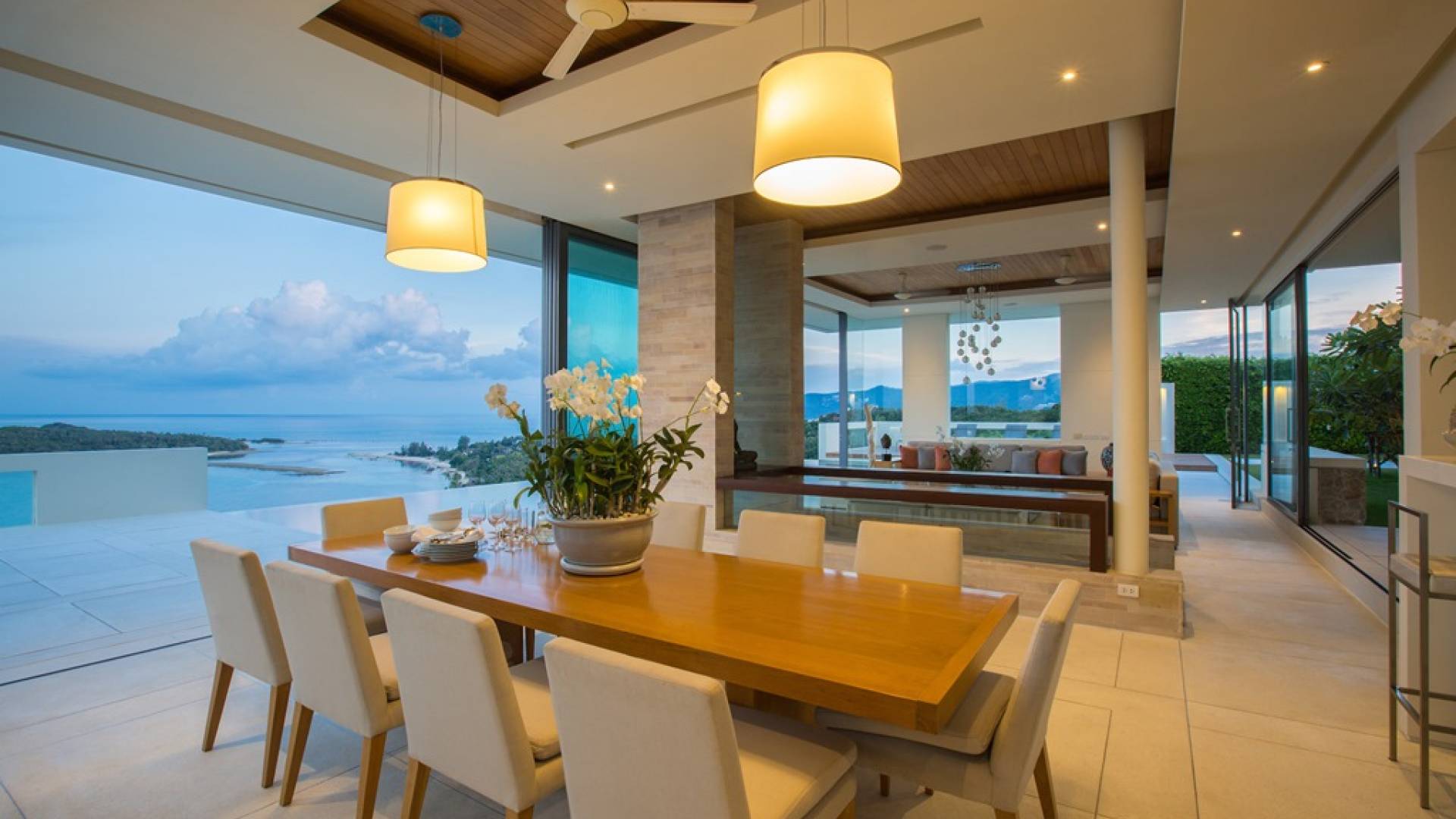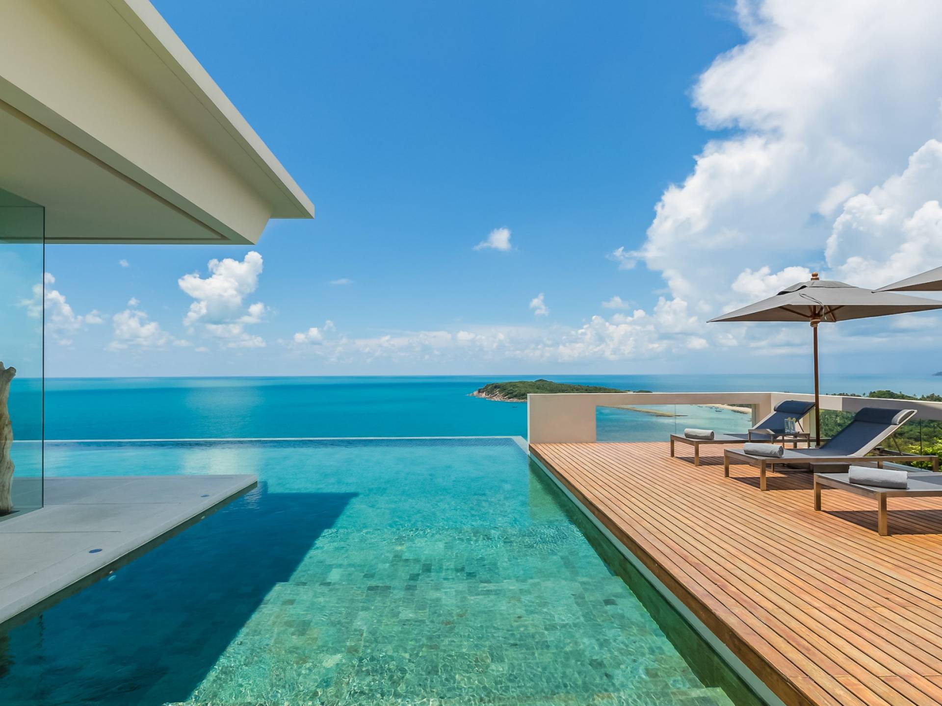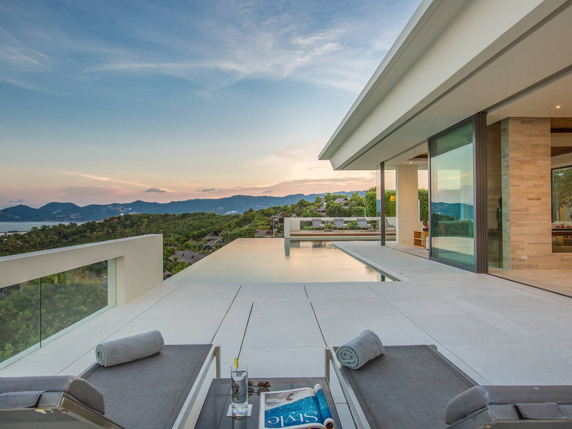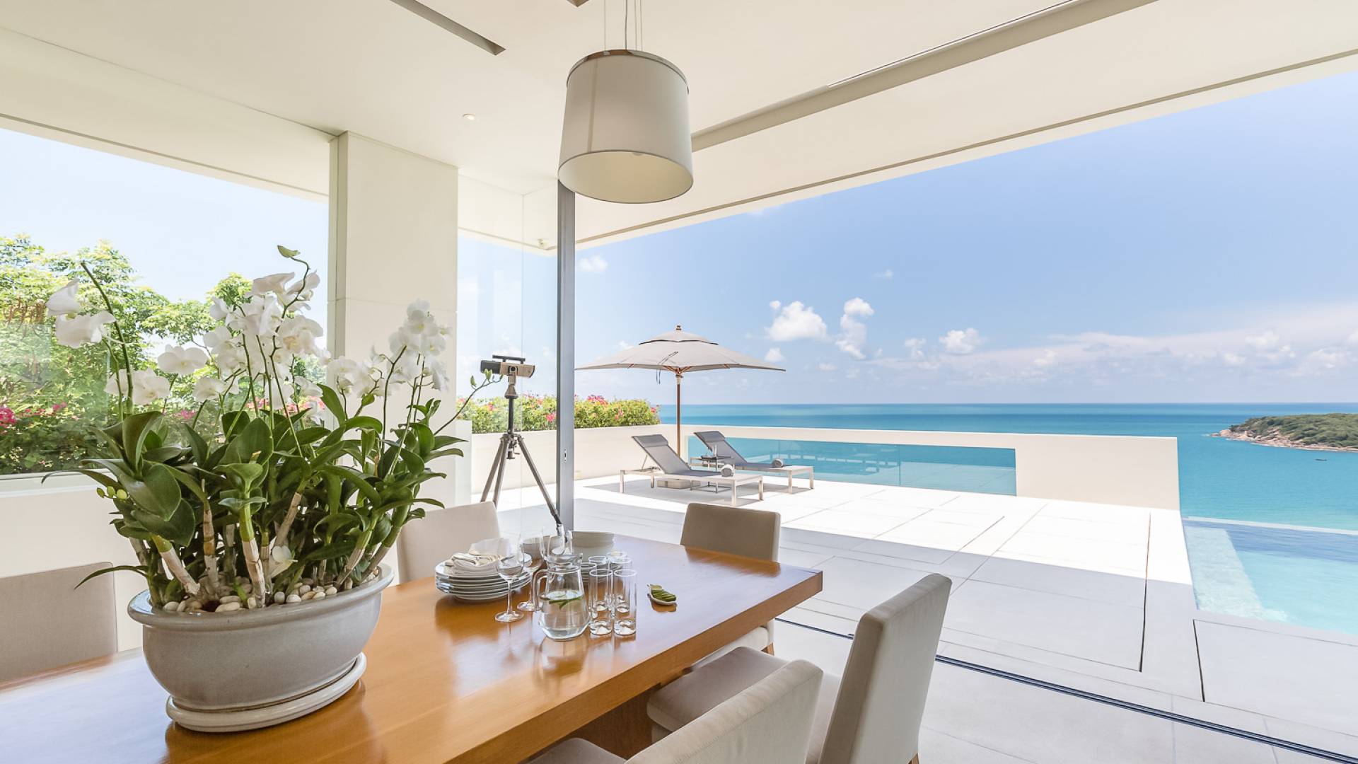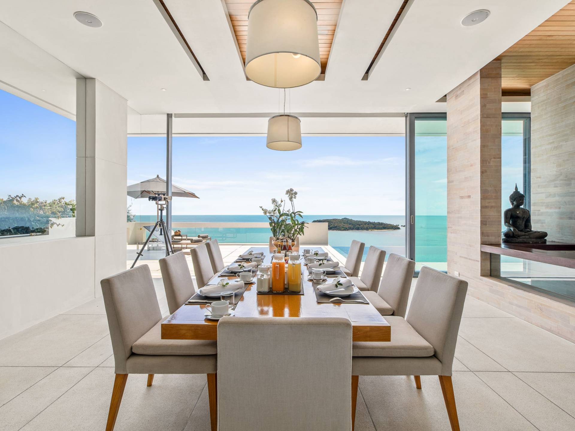 Villa Natha Samui è abilmente costruita su 3 livelli per massimizzare lo spazio utilizzabile e una vista sull'oceano superlativa. Ogni livello dispone di un proprio giardino privato ed è collegato al piano successivo da una scala interna chiusa. Un ampio salone di passaggio, una sala da pranzo con vista sul mare e una cucina a vista attrezzata sono tutti situati al piano superiore, così come una delle 2 camere da letto principali. Questa camera da letto e la zona giorno al piano superiore si aprono direttamente sull'invitante piscina a sfioro e sulla sua terrazza solarium arredata in pietra e legno, mentre la sala da pranzo si estende su una terrazza separata con un barbecue incorporato per pasti all'aperto.