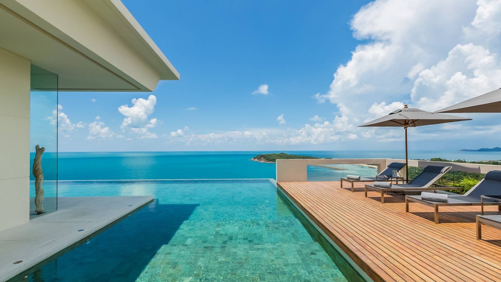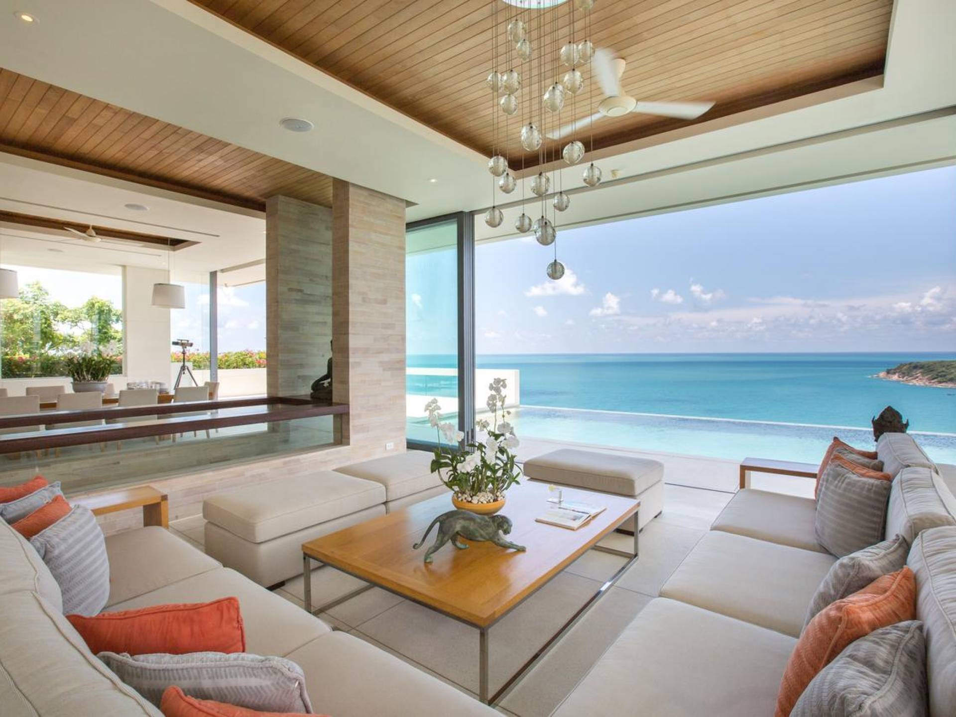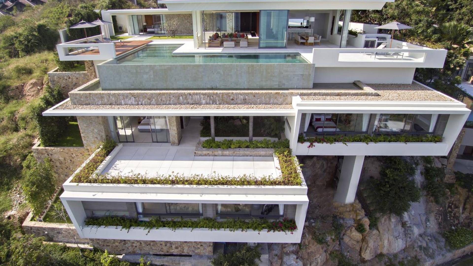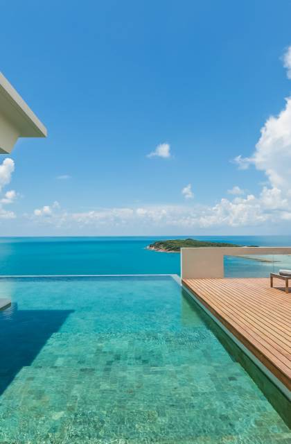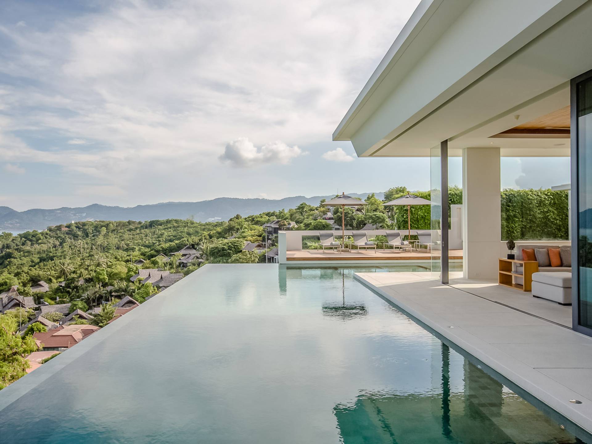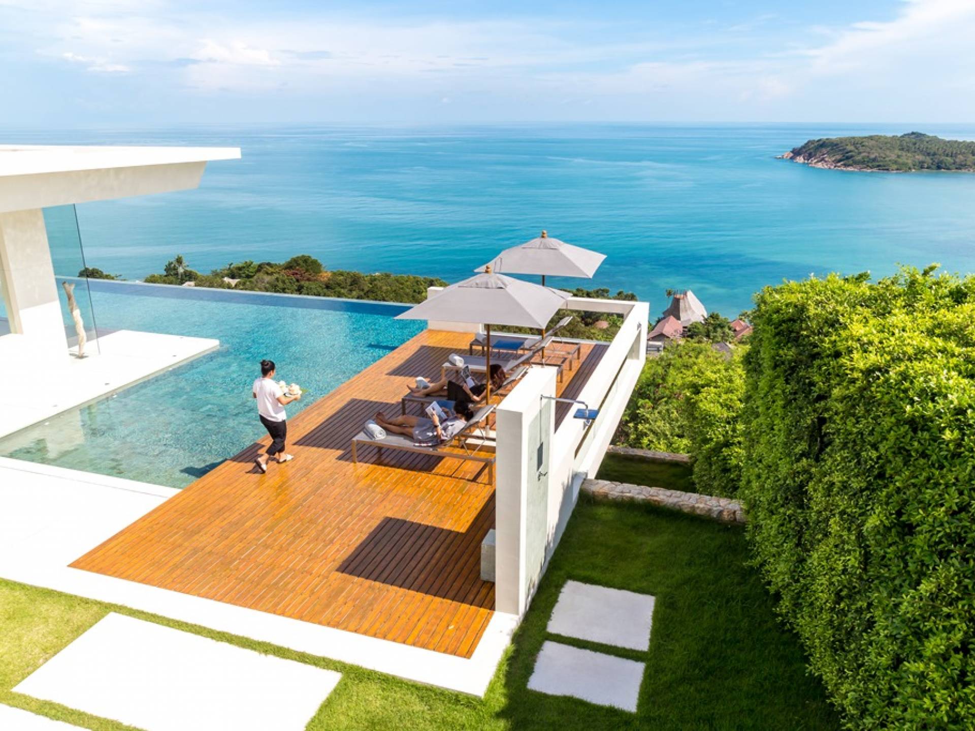 Villa Natha Samui è abilmente costruita su 3 livelli per massimizzare lo spazio utilizzabile e una vista sull'oceano superlativa. Ogni livello dispone di un proprio giardino privato ed è collegato al piano successivo da una scala interna chiusa. Un ampio salone di passaggio, una sala da pranzo con vista sul mare e una cucina a vista attrezzata sono tutti situati al piano superiore, così come una delle 2 camere da letto principali. Questa camera da letto e la zona giorno al piano superiore si aprono direttamente sull'invitante piscina a sfioro e sulla sua terrazza solarium arredata in pietra e legno, mentre la sala da pranzo si estende su una terrazza separata con un barbecue incorporato per pasti all'aperto.