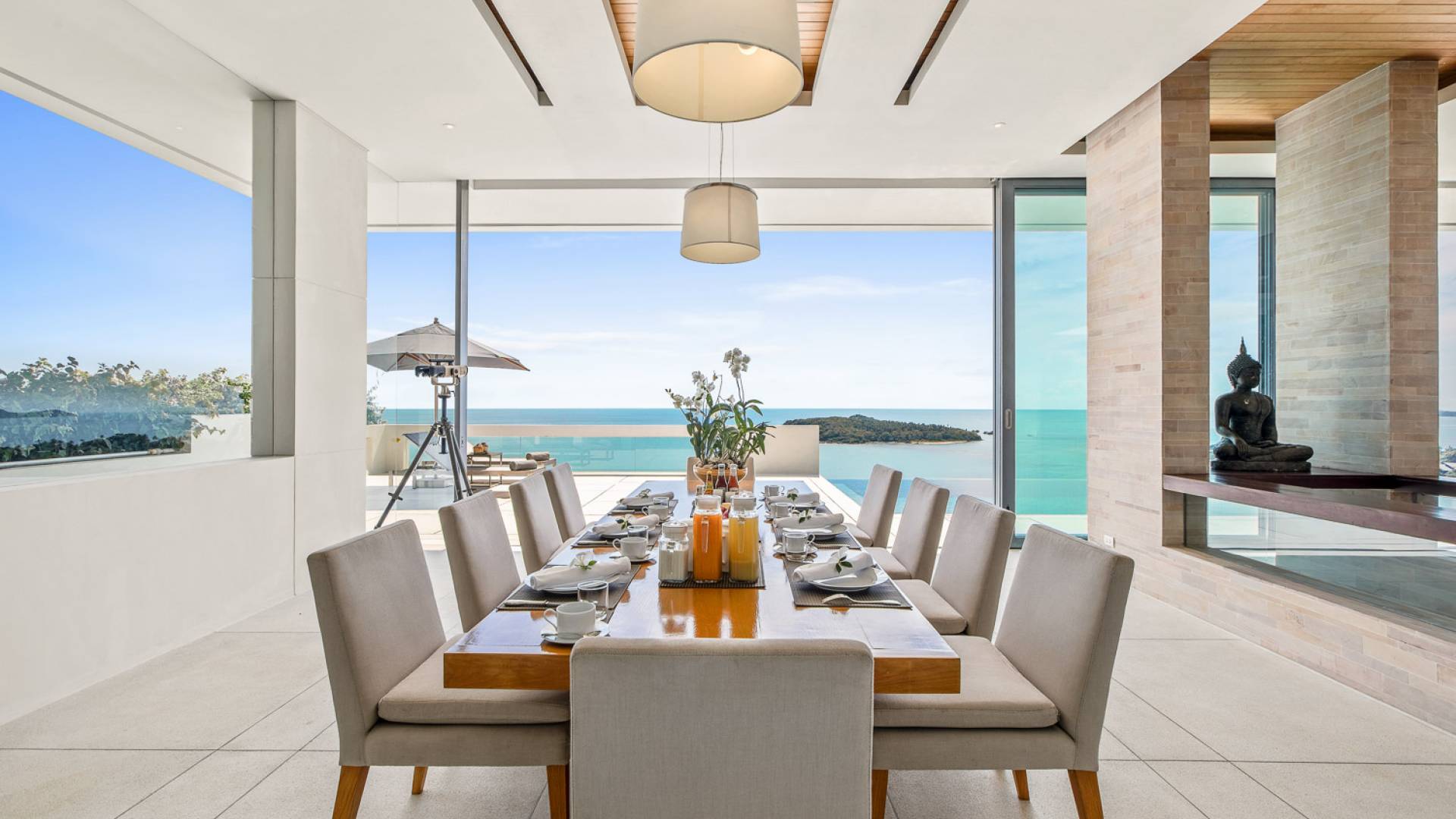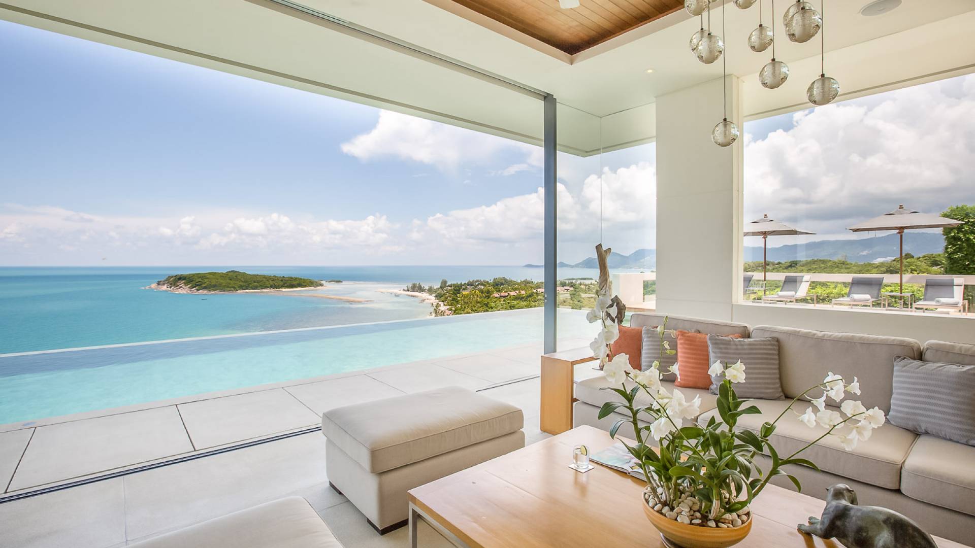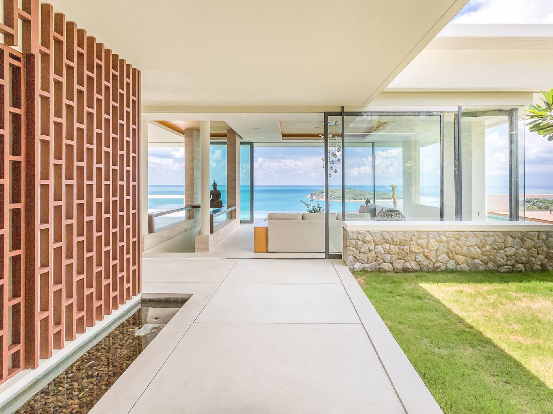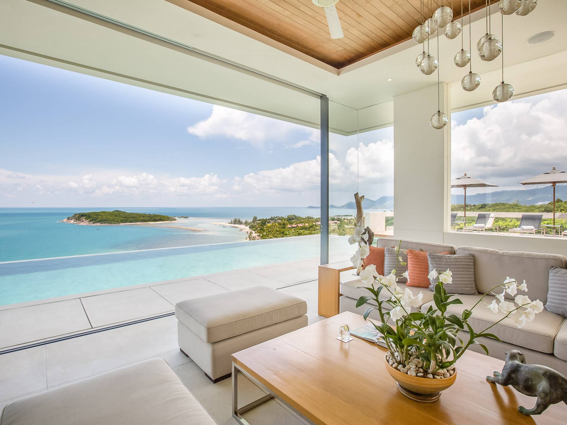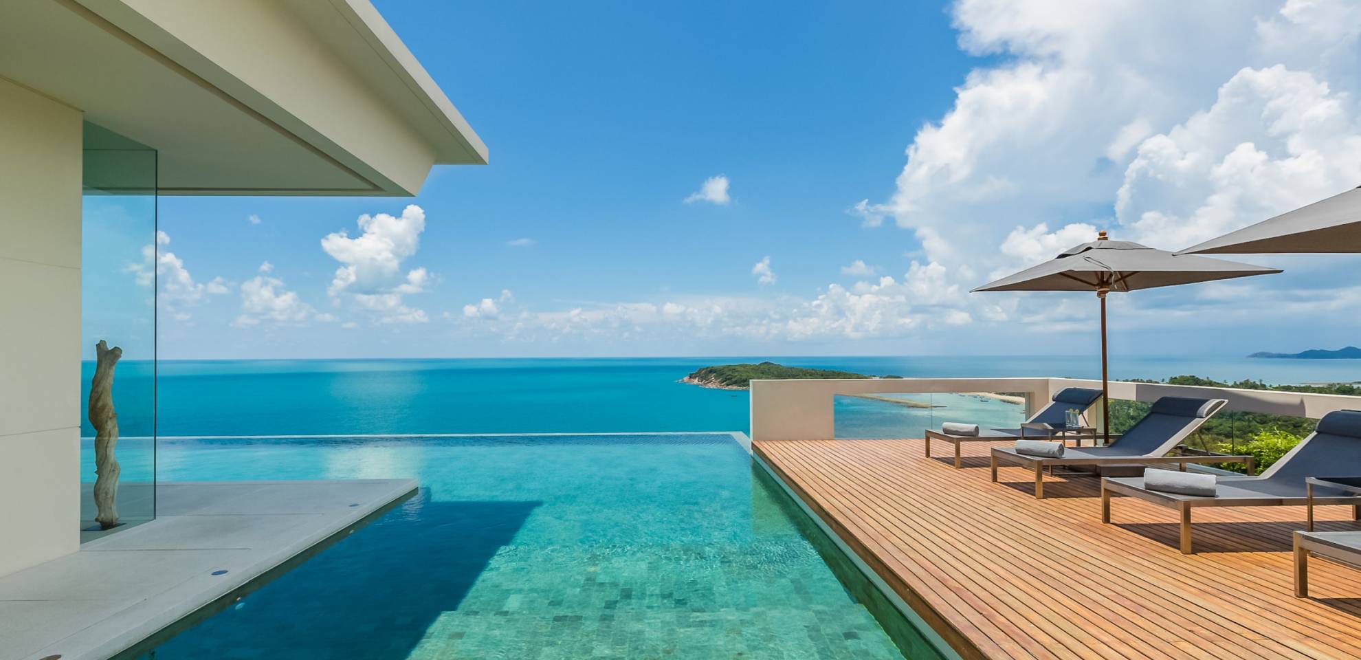 Villa Natha Samui è abilmente costruita su 3 livelli per massimizzare lo spazio utilizzabile e una vista sull'oceano superlativa. Ogni livello dispone di un proprio giardino privato ed è collegato al piano successivo da una scala interna chiusa. Un ampio salone di passaggio, una sala da pranzo con vista sul mare e una cucina a vista attrezzata sono tutti situati al piano superiore, così come una delle 2 camere da letto principali. Questa camera da letto e la zona giorno al piano superiore si aprono direttamente sull'invitante piscina a sfioro e sulla sua terrazza solarium arredata in pietra e legno, mentre la sala da pranzo si estende su una terrazza separata con un barbecue incorporato per pasti all'aperto.