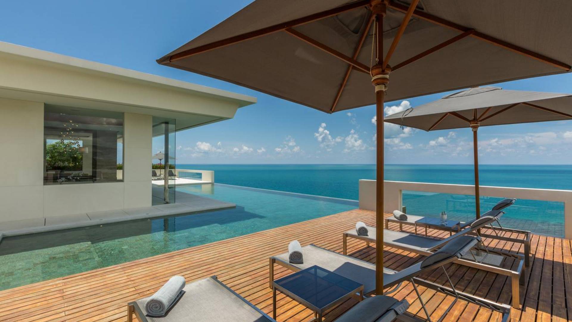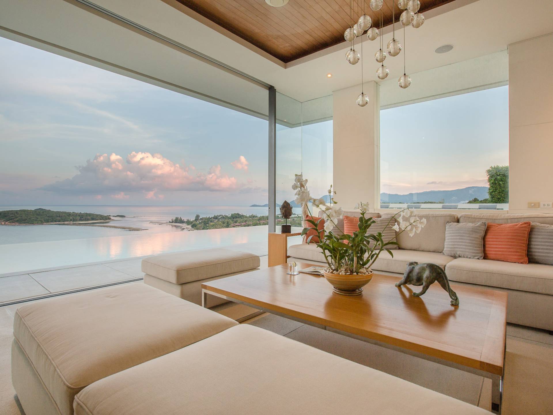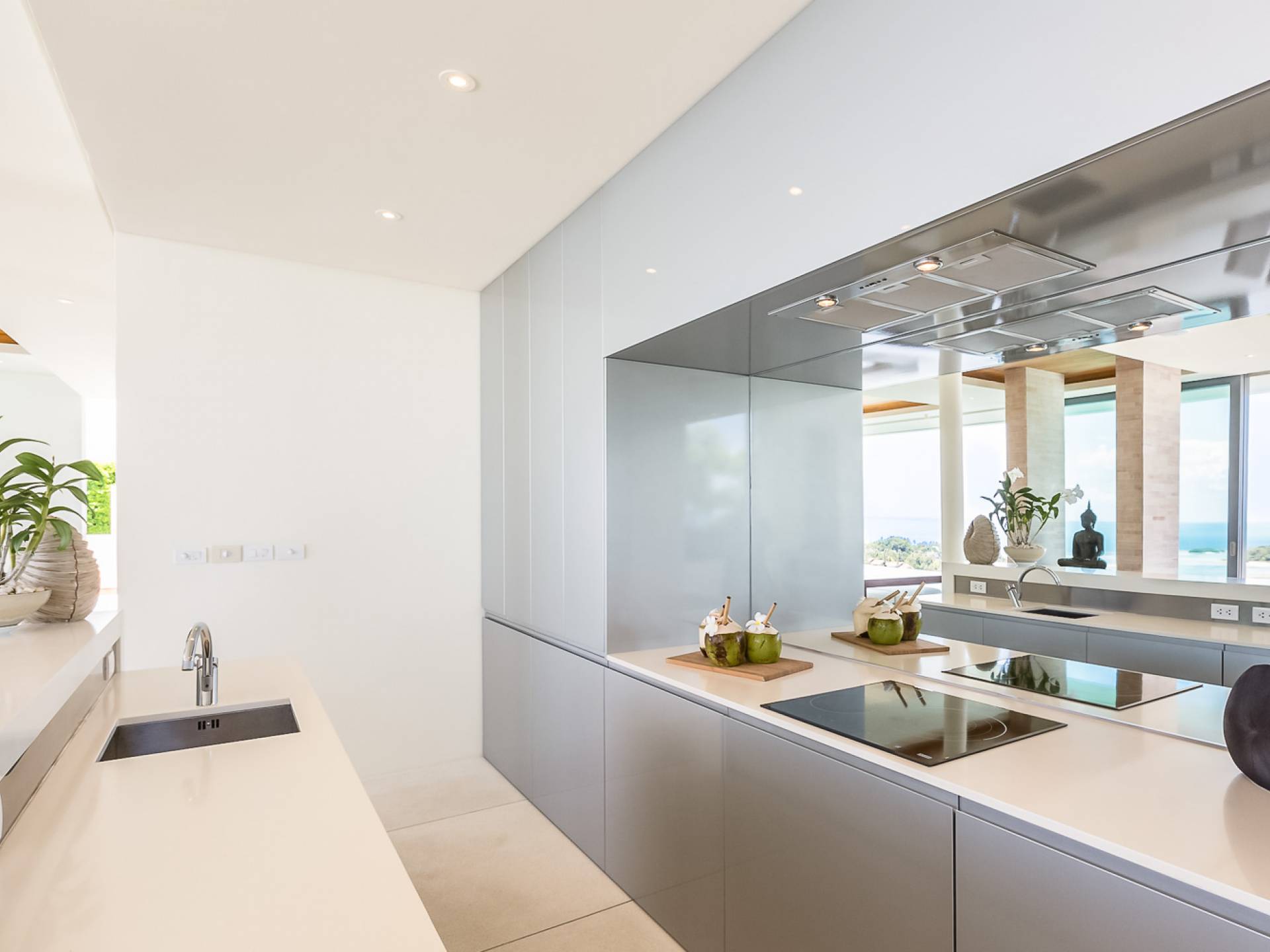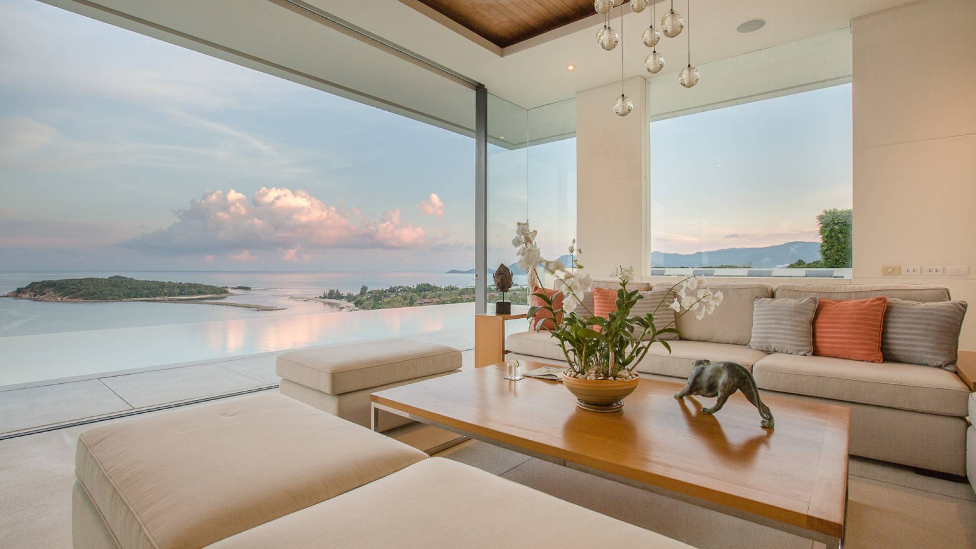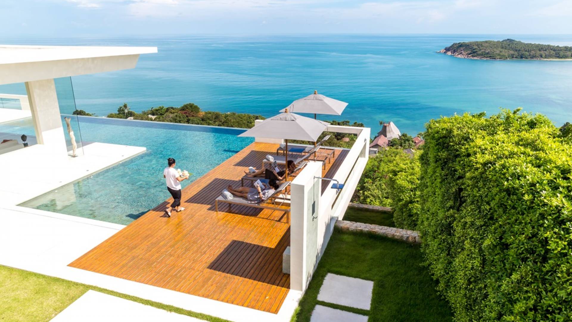 Villa Natha Samui è abilmente costruita su 3 livelli per massimizzare lo spazio utilizzabile e una vista sull'oceano superlativa. Ogni livello dispone di un proprio giardino privato ed è collegato al piano successivo da una scala interna chiusa. Un ampio salone di passaggio, una sala da pranzo con vista sul mare e una cucina a vista attrezzata sono tutti situati al piano superiore, così come una delle 2 camere da letto principali. Questa camera da letto e la zona giorno al piano superiore si aprono direttamente sull'invitante piscina a sfioro e sulla sua terrazza solarium arredata in pietra e legno, mentre la sala da pranzo si estende su una terrazza separata con un barbecue incorporato per pasti all'aperto.