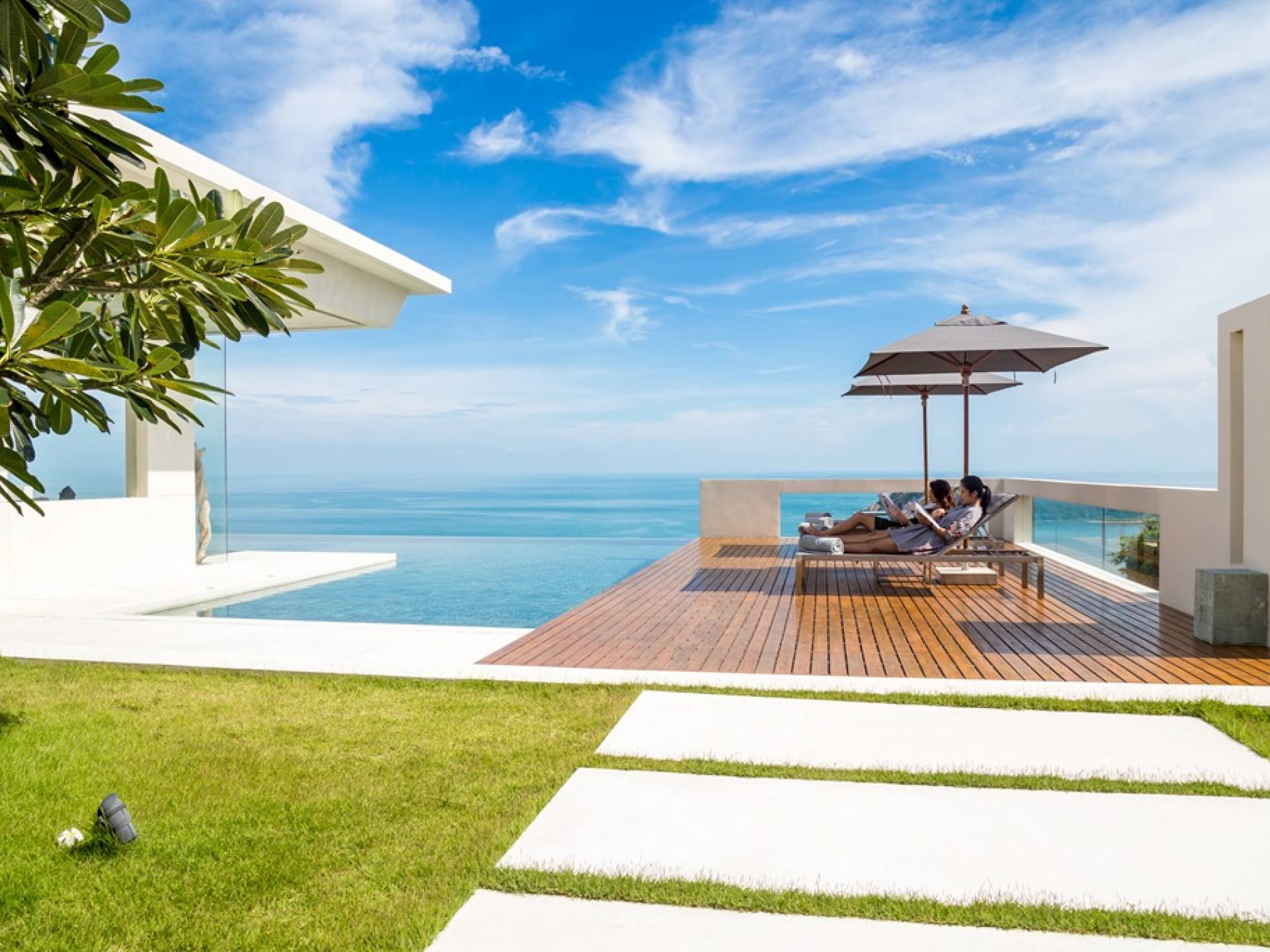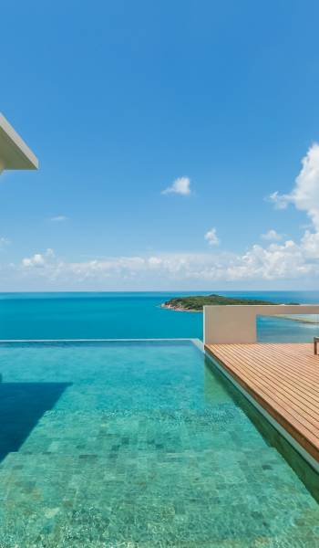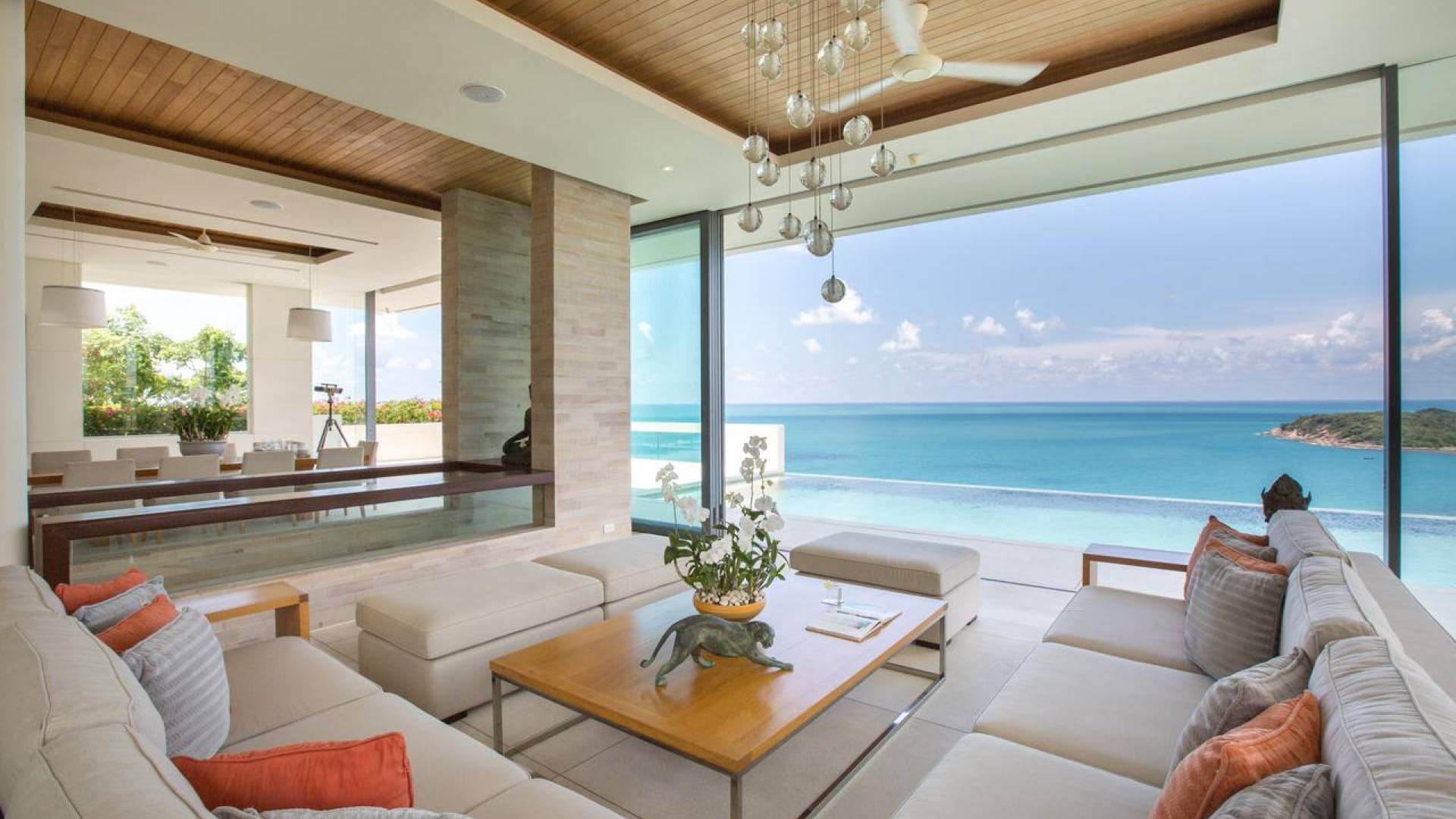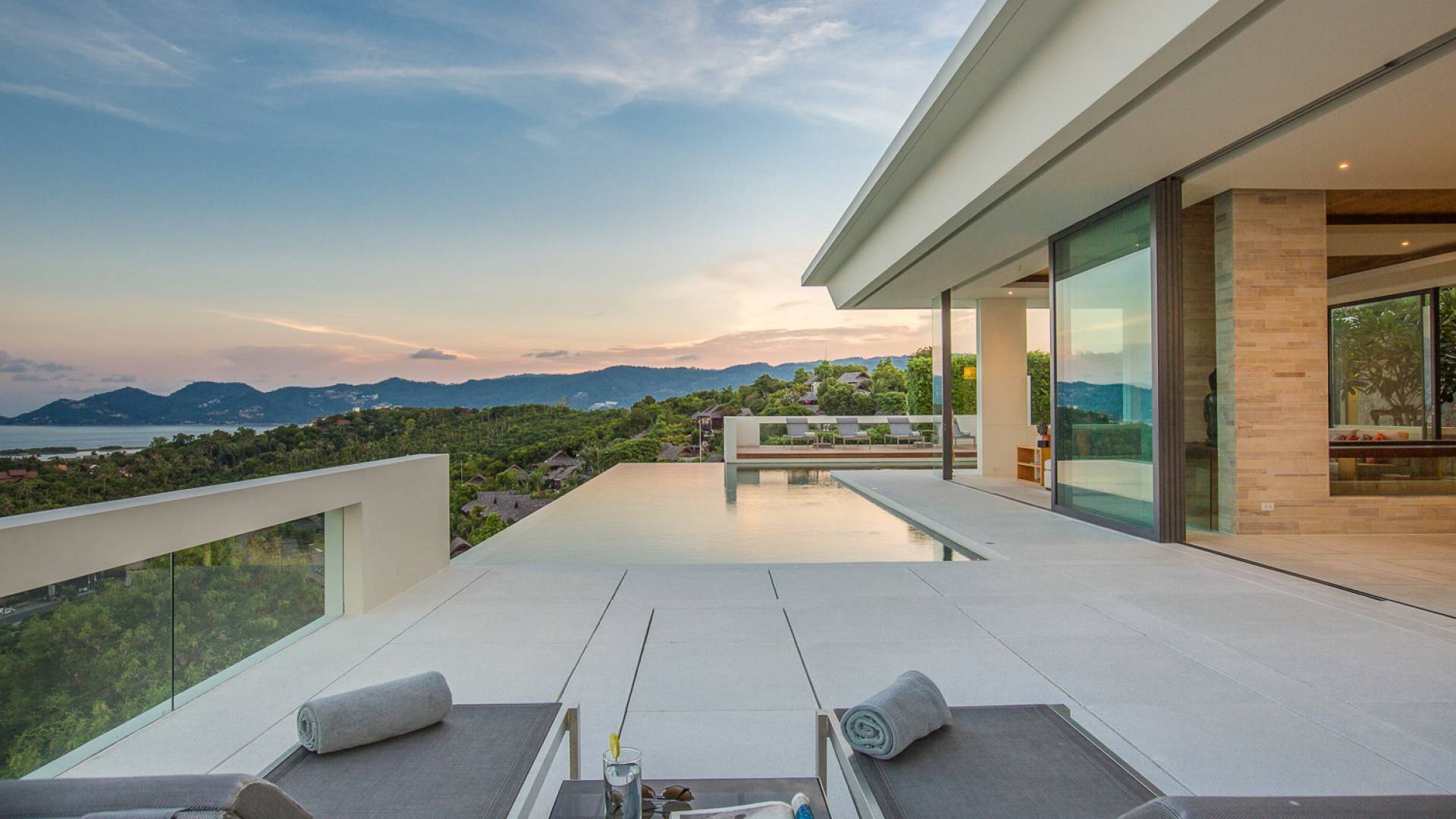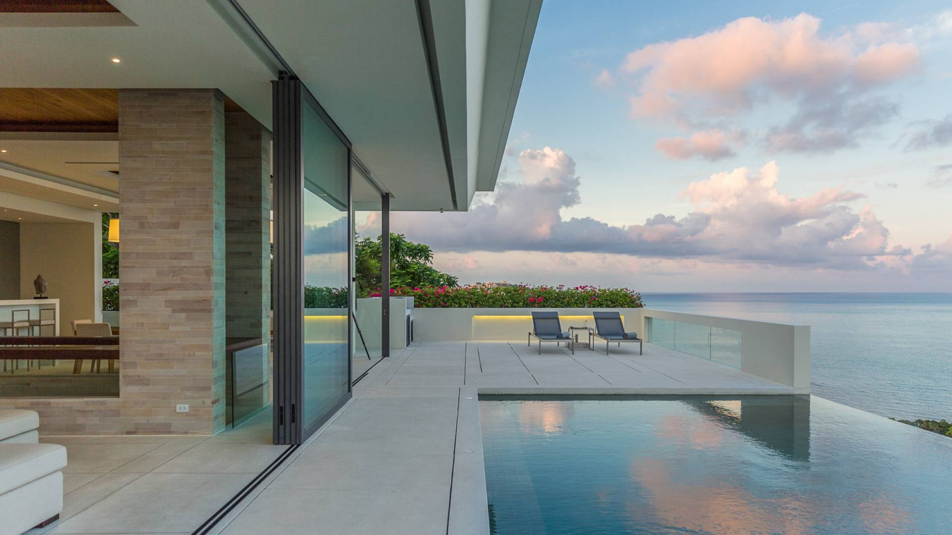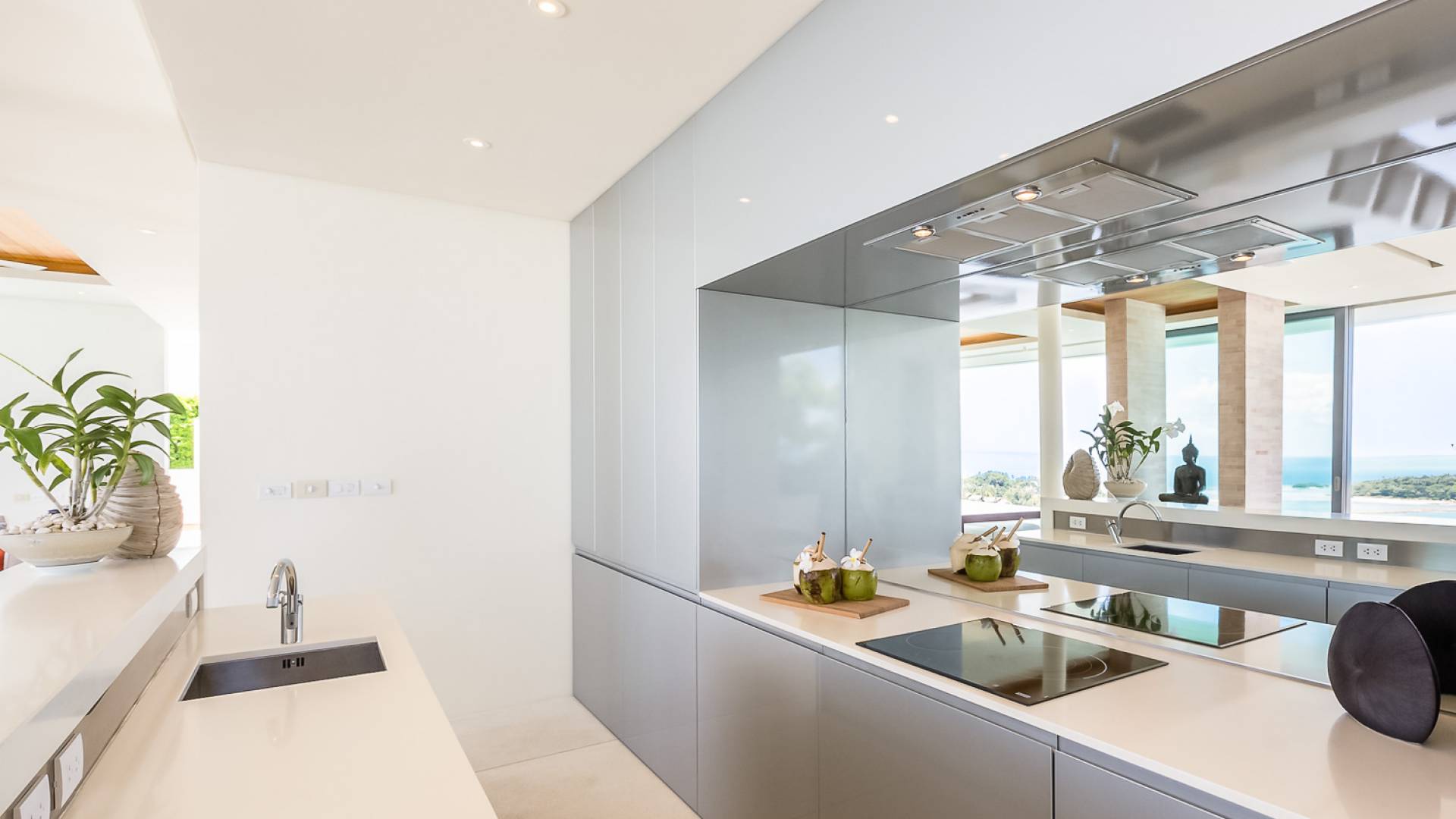 Villa Natha Samui è abilmente costruita su 3 livelli per massimizzare lo spazio utilizzabile e una vista sull'oceano superlativa. Ogni livello dispone di un proprio giardino privato ed è collegato al piano successivo da una scala interna chiusa. Un ampio salone di passaggio, una sala da pranzo con vista sul mare e una cucina a vista attrezzata sono tutti situati al piano superiore, così come una delle 2 camere da letto principali. Questa camera da letto e la zona giorno al piano superiore si aprono direttamente sull'invitante piscina a sfioro e sulla sua terrazza solarium arredata in pietra e legno, mentre la sala da pranzo si estende su una terrazza separata con un barbecue incorporato per pasti all'aperto.