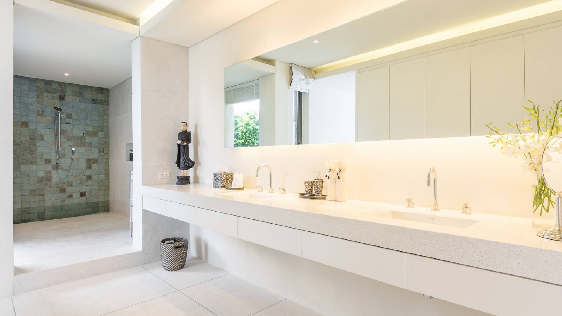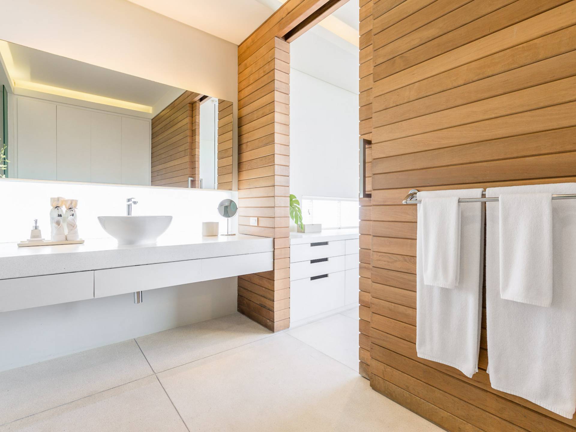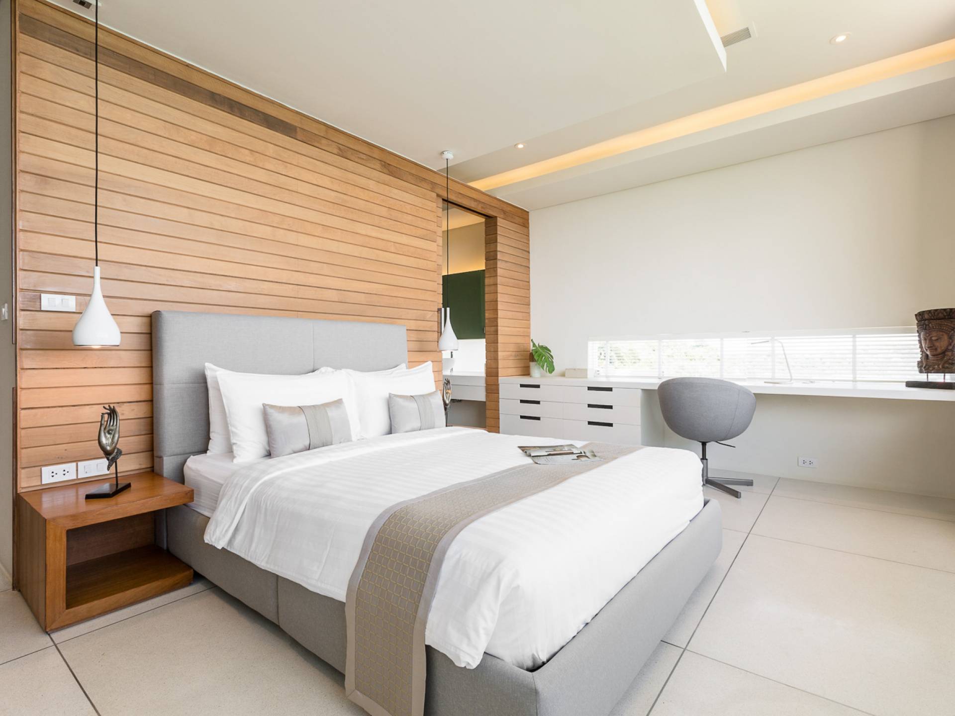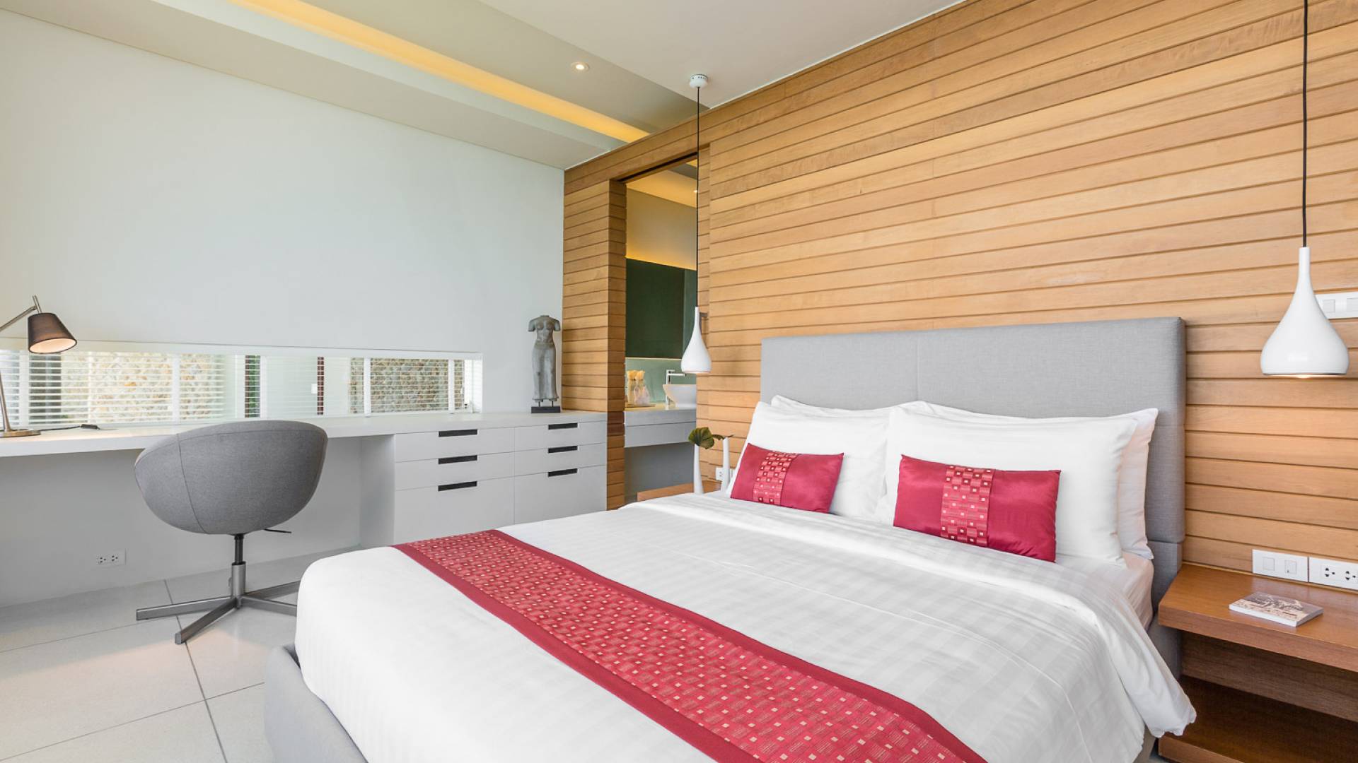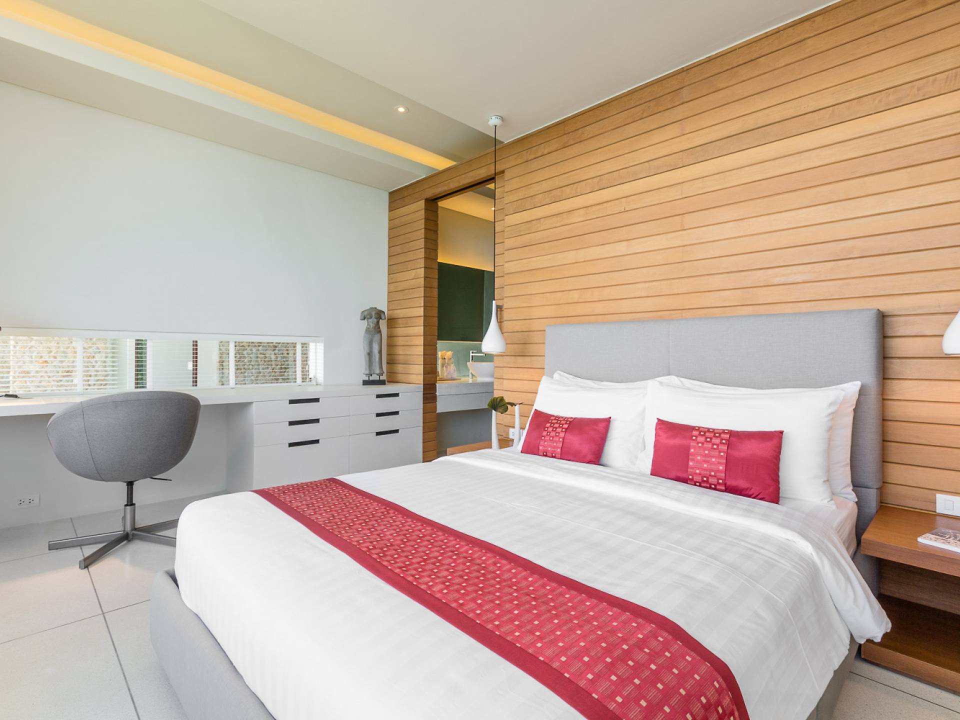 Villa Natha Samui offre agli ospiti 5 camere doppie (3 King e 2 Queen), tutte con viste sensazionali sul mare direttamente dal letto. TV e armadi a muro aggiungono la sensazione di un resort a 5 stelle, mentre gli enormi bagni privati collegati alle 2 master suite fanno un ulteriore passo avanti con doppi lavandini e una scelta di docce interne o esterne. Le restanti camere degli ospiti, sebbene leggermente più piccole, offrono anche sistemazioni confortevoli e moderne in stile resort con una gamma completa di servizi privati. Ulteriori servizi esclusivi offerti agli ospiti di Villa Natha includono una palestra privata completamente attrezzata, nonché un favoloso cinema privato con comode sedute, un grande schermo per proiettore e un sistema audio surround. La struttura è completamente protetta da un servizio di sicurezza 24 ore su 24 e dispone di un proprio parcheggio privato per gli ospiti.