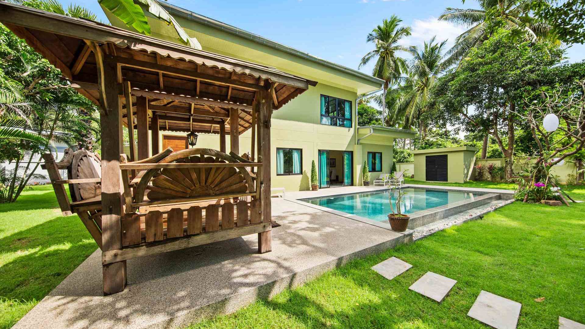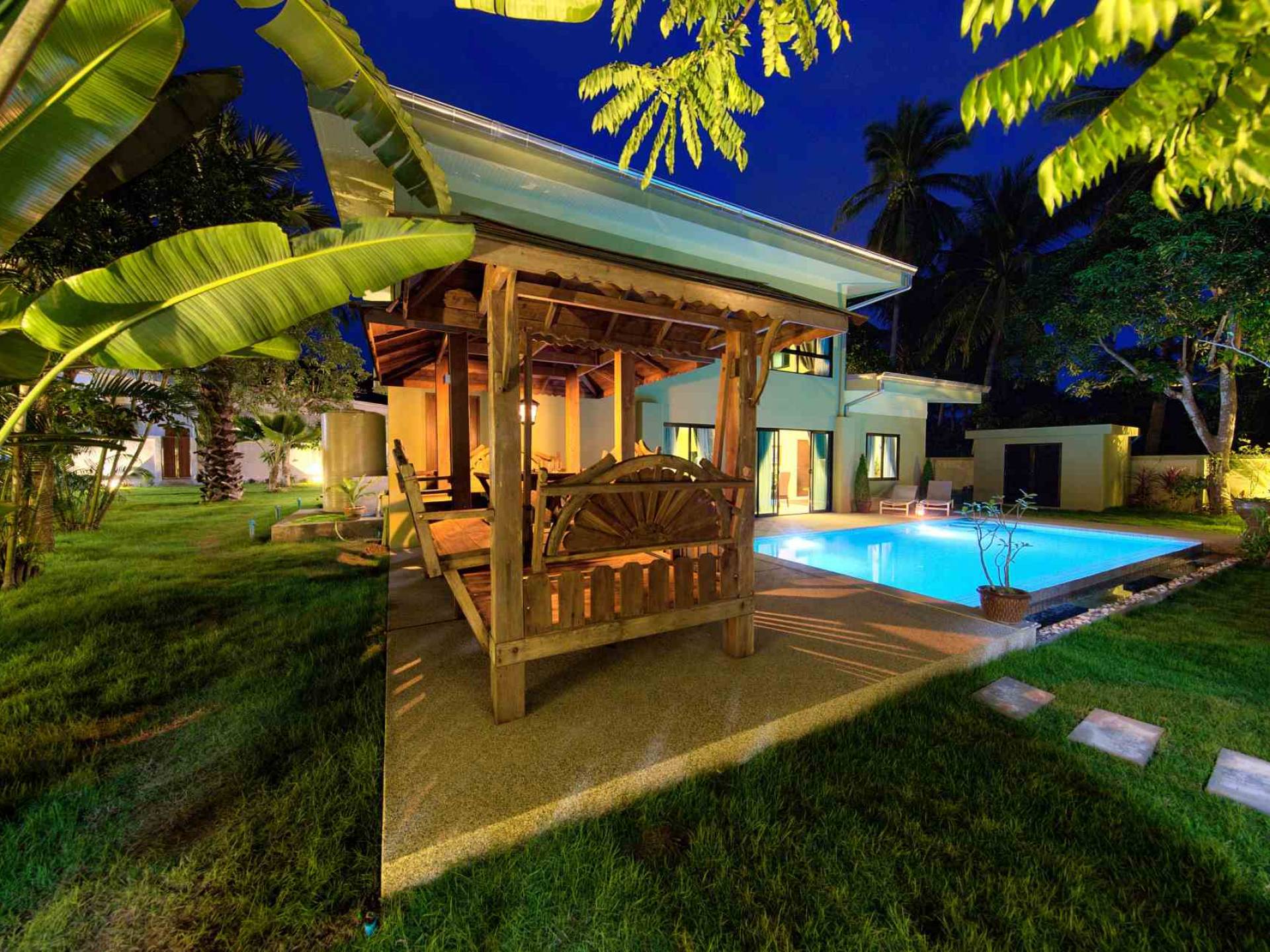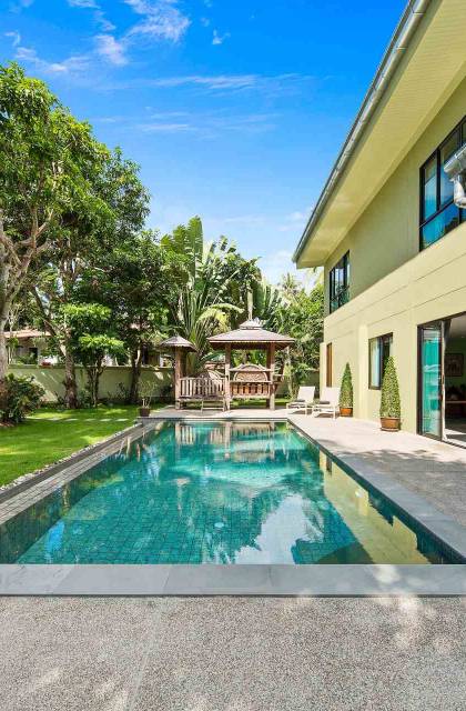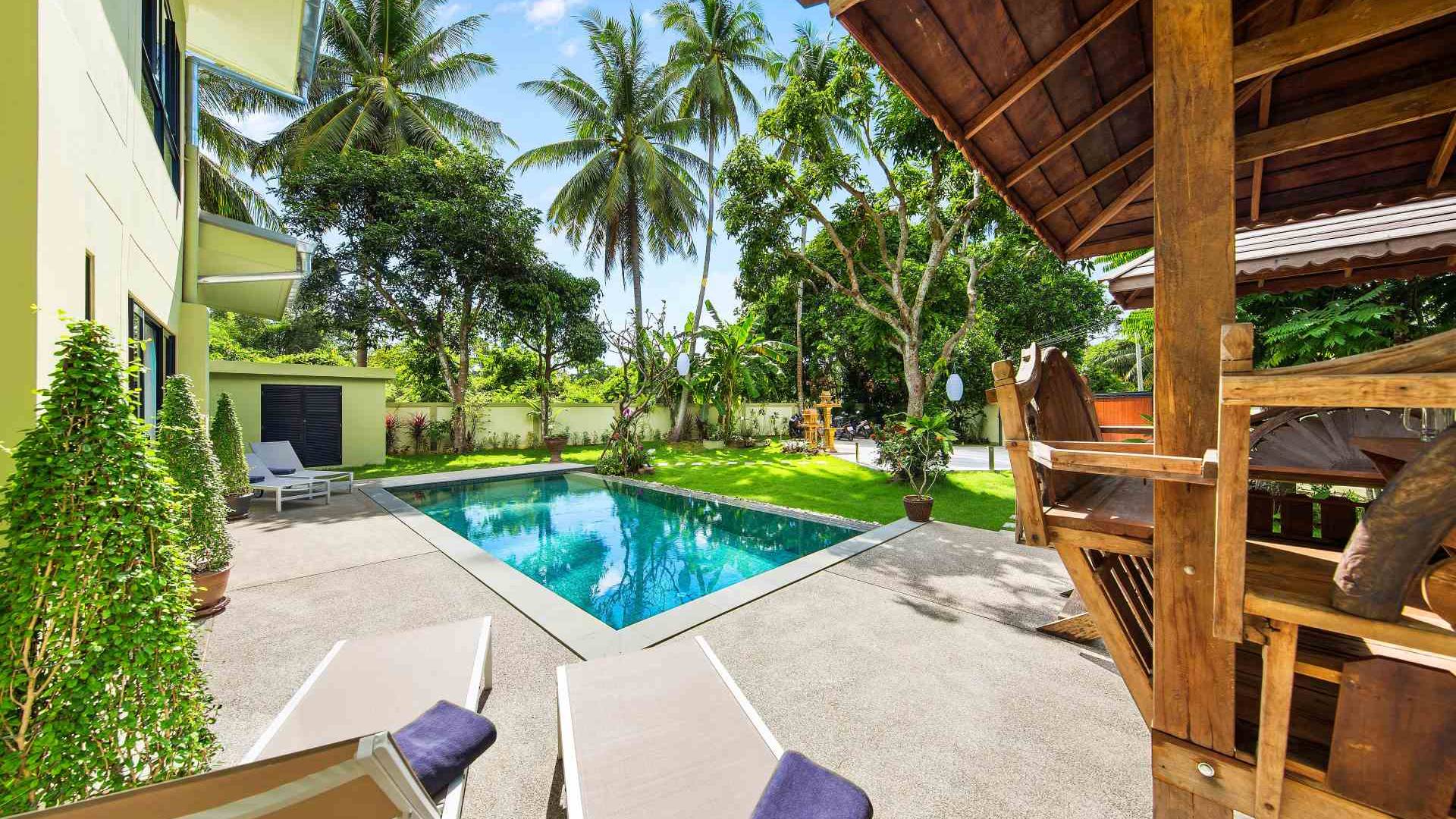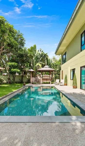La piscina di acqua salata è lunga oltre 8 metri e profonda da 1 metro a 1,8 metri. L'ampia terrazza a bordo piscina è l'ideale per prendere il sole. A bordo piscina, c'è una sala tradizionale in legno in stile tailandese (10 posti a sedere) che è l'ideale per un po' di ombra di benvenuto nel pomeriggio e anche come zona pranzo ideale per quando si fa uso del barbecue la sera È ideale anche per semplicemente una serata di relax a bordo piscina. Questa villa per le vacanze è un rifugio ideale per le famiglie in quanto è una zona molto tranquilla e ricca di natura, molto vicina a tre spiagge bellissime ma tranquille e al villaggio di pescatori sulla spiaggia di Thong Krut. Thong Krut ha alcuni ristoranti e bar internazionali, nonché i caffè tailandesi locali sulla spiaggia. La zona organizza regolarmente snorkeling ed escursioni orientate al mare, oltre ad avere un minimarket locale e una caffetteria biologica.