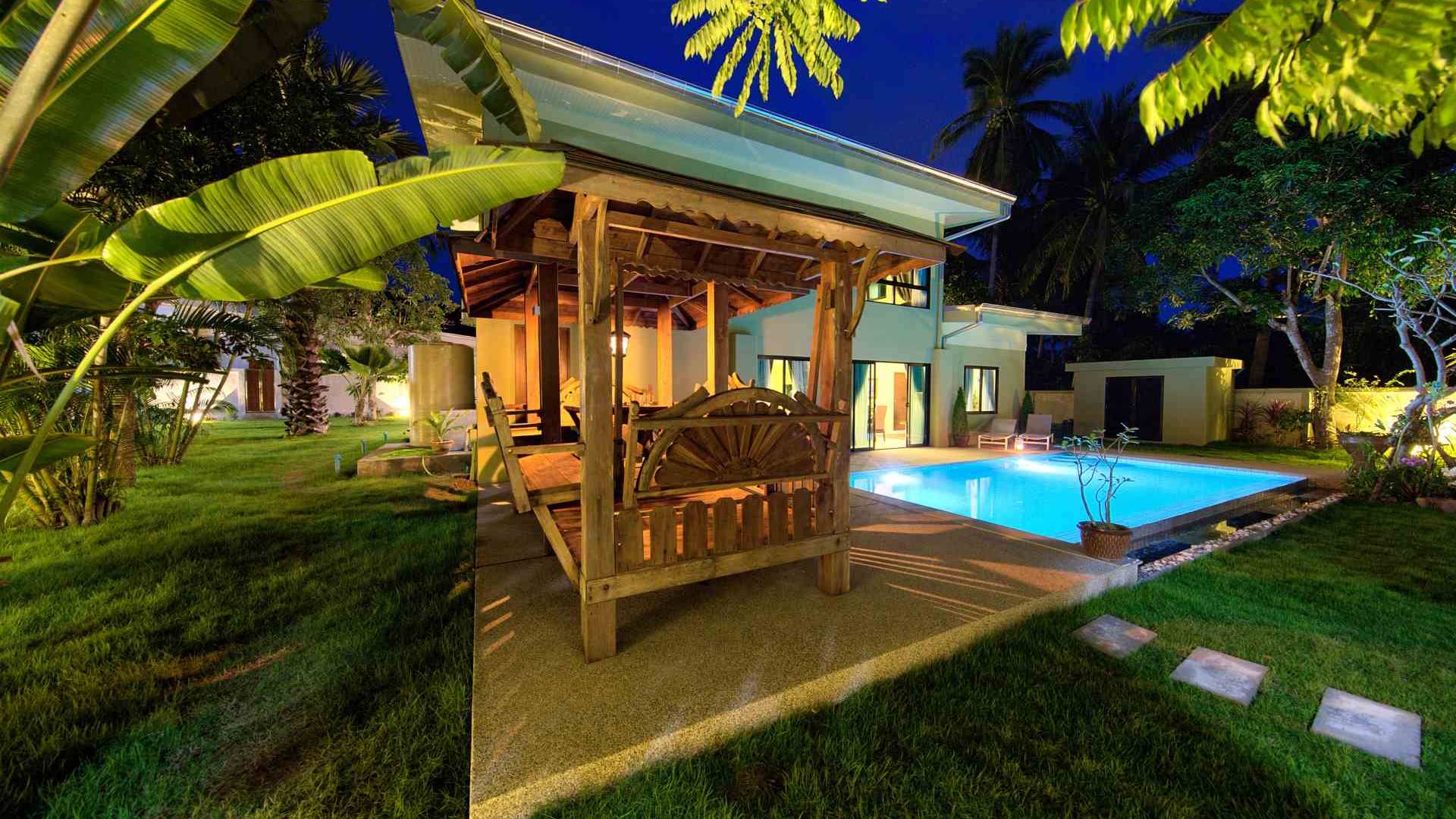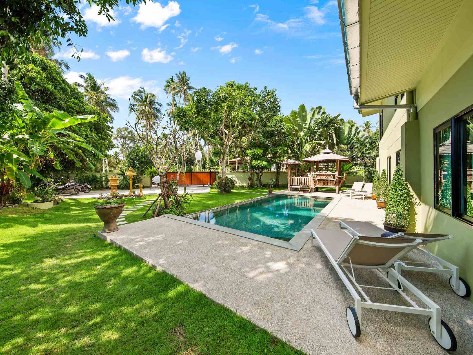 Baan Suaan Serenity Villa Samui è una lussuosa villa in affitto con 4 camere da letto e una piscina privata. Nei suoi giardini privati nel cuore del sud di Samui. Baan Suaan Serenity Villa Samui è una delle ville per vacanze nascoste nel sud di Samui. Fate un tuffo o semplicemente rilassatevi e prendete il sole a bordo della piscina di acqua salata. Goditi qualche drink fresco mentre ti godi l'ombra nella tradizionale sala tailandese. Assapora i giardini tropicali, fai una breve passeggiata fino a una delle tre spiagge locali nelle vicinanze. Baan Suaan Serenity è la villa che fa per te.