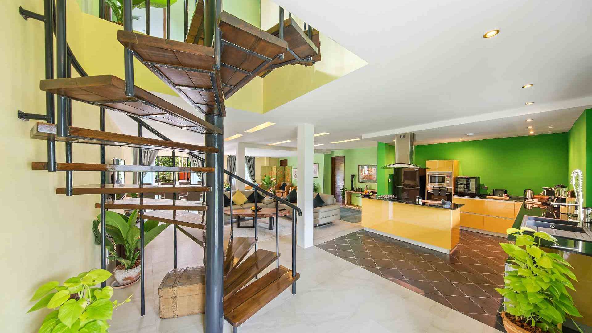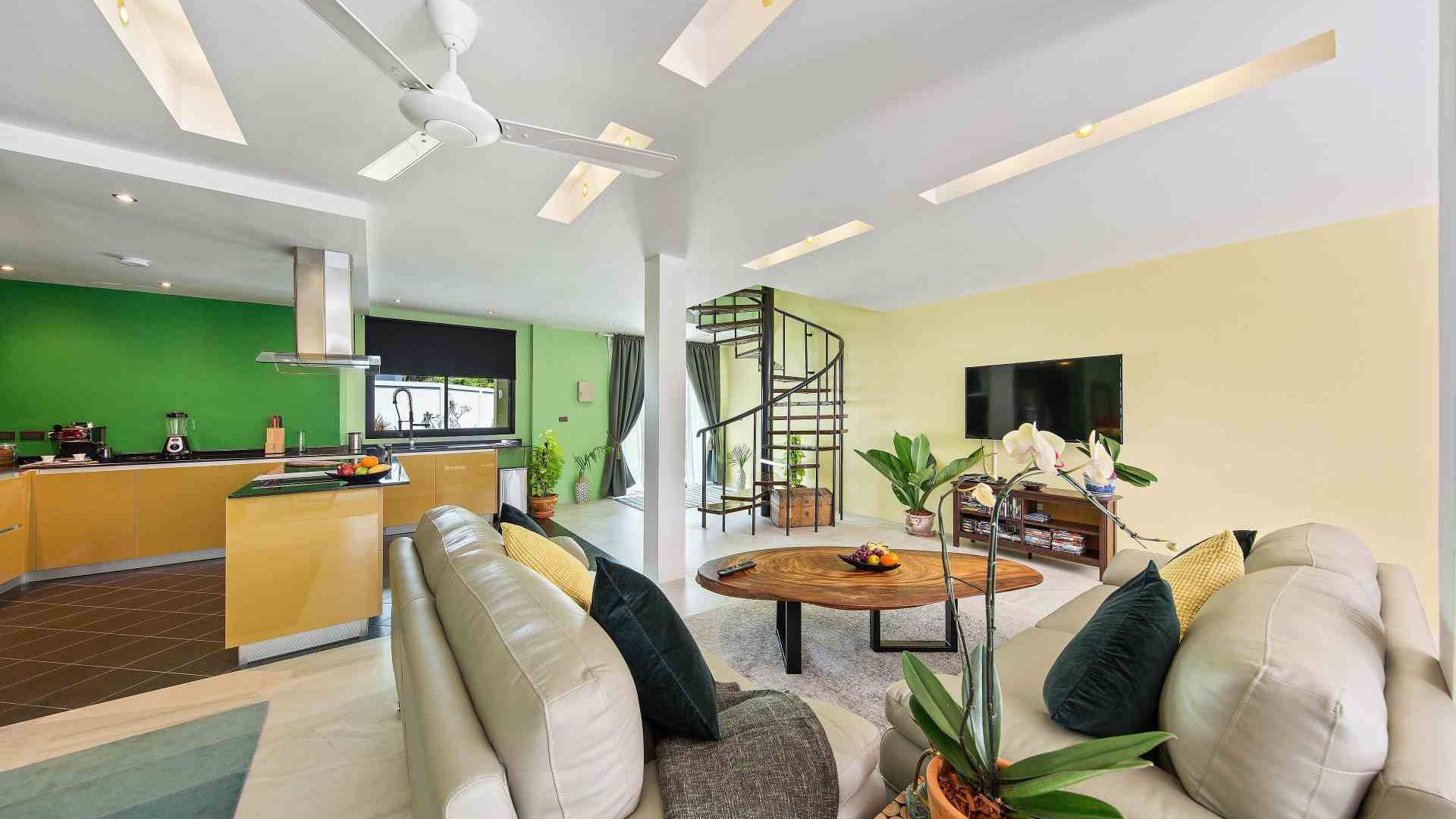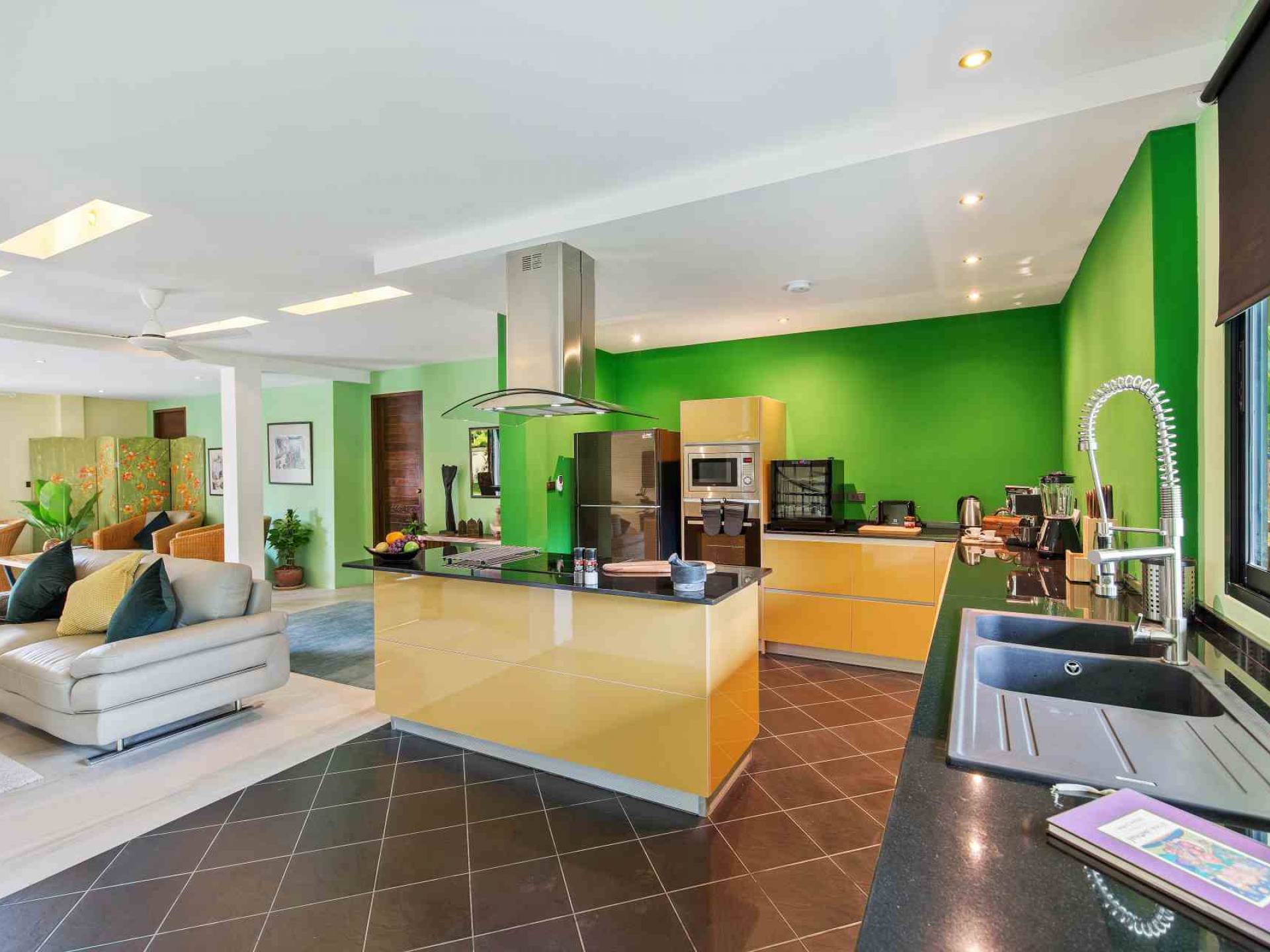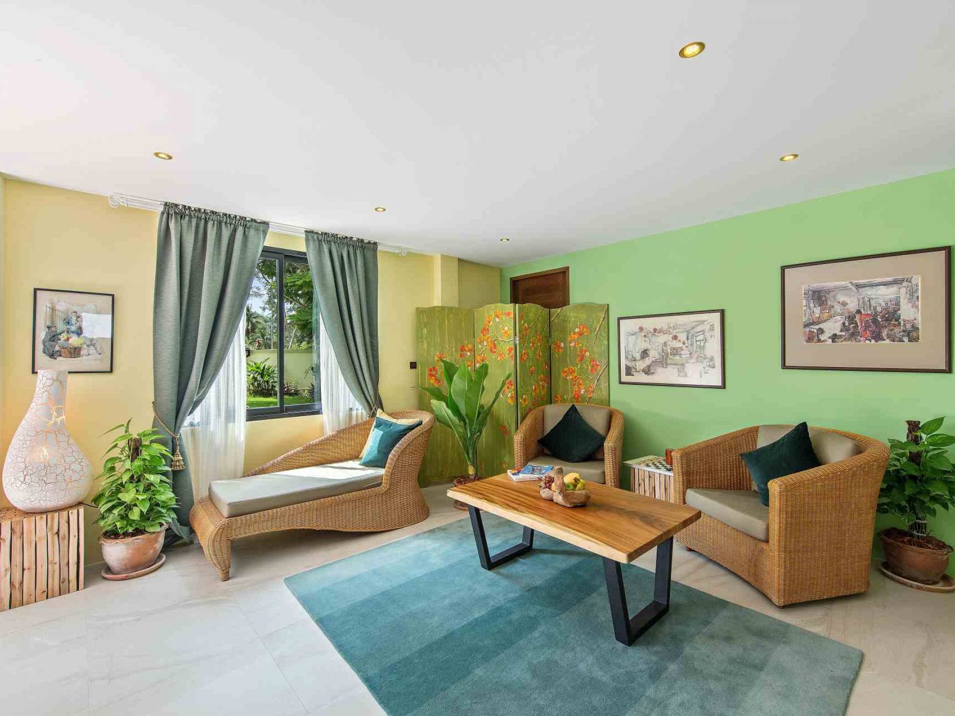 La zona giorno è molto spaziosa ma confortevole. Rilassati semplicemente su uno dei divani in pelle italiana mentre guardi la TV "smart" da 55 pollici, dotata di Ip tv, con oltre 300 canali in inglese, francese, tedesco, russo e tailandese. Viene fornito anche un lettore dvd. Il tavolo da pranzo in legno massello lungo tre metri è sistemato dalle finestre del patio che conducono alla piscina principale, alla sala, alla terrazza e al giardino anteriore. La Baan Suaan Serenity Villa dispone anche di rilassanti aree lettura e giochi. Nella parte posteriore del piano terra c'è una spaziosa cucina con un corridoio centrale di cottura. Questa cucina è molto moderna e completamente attrezzata con un grande frigorifero con congelatore. Dove oltre a generi alimentari di benvenuto troverete alcune birre locali (a pagamento) e bicchieri molto freschi. C'è anche un wine bar con una buona selezione di vini a prezzi ragionevoli.