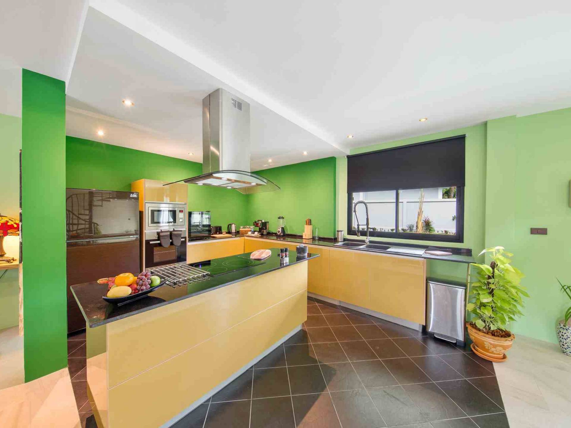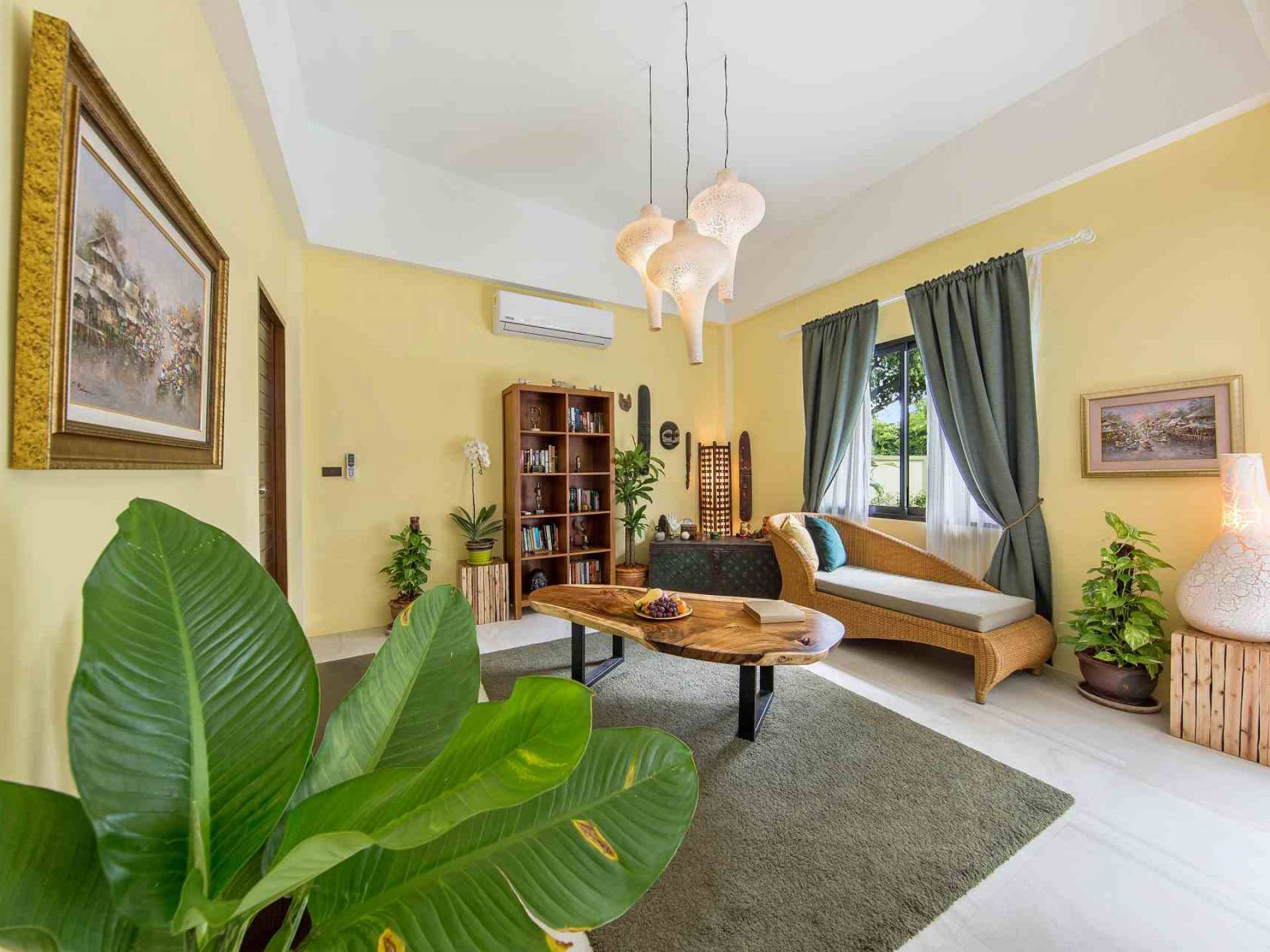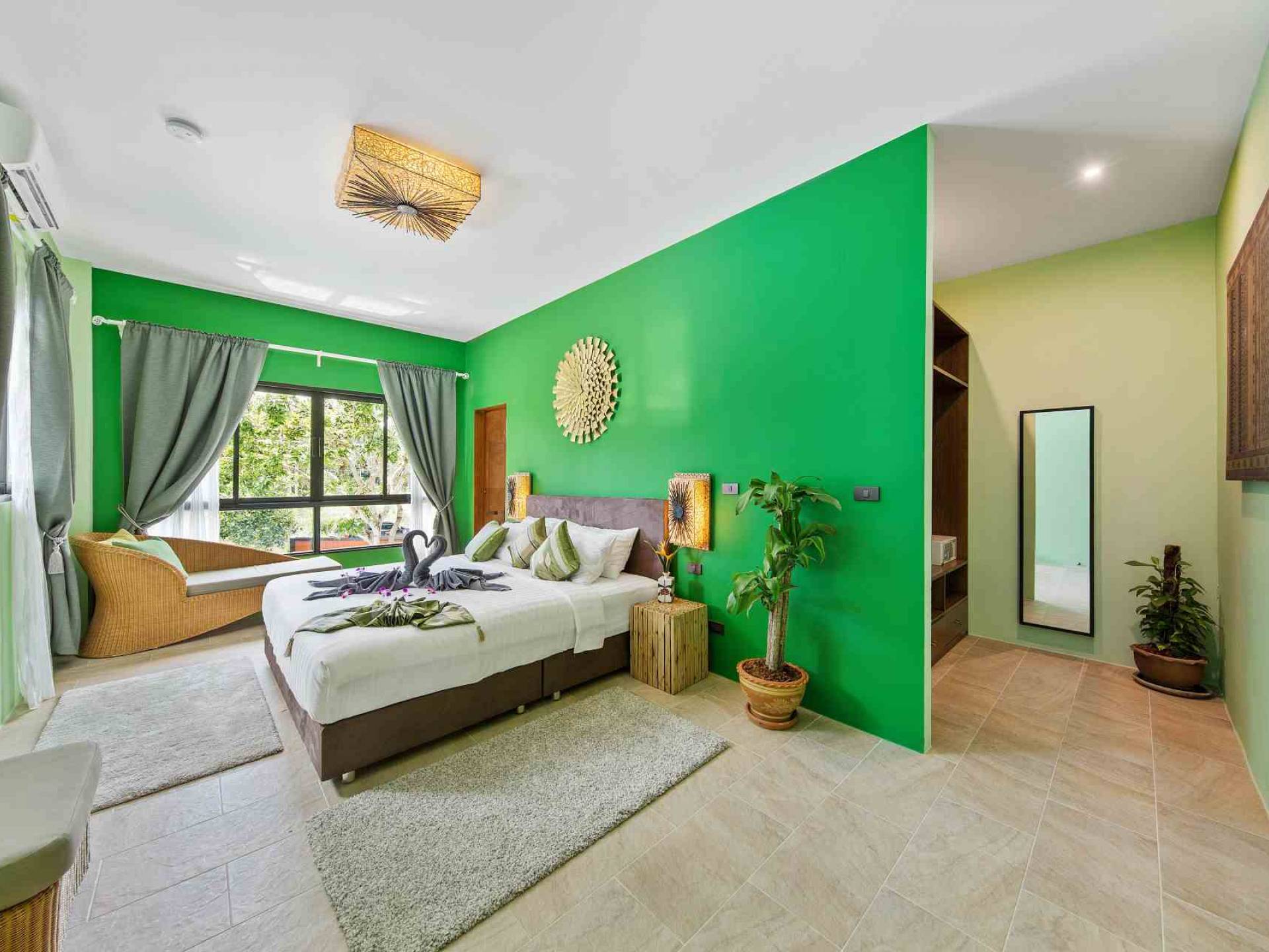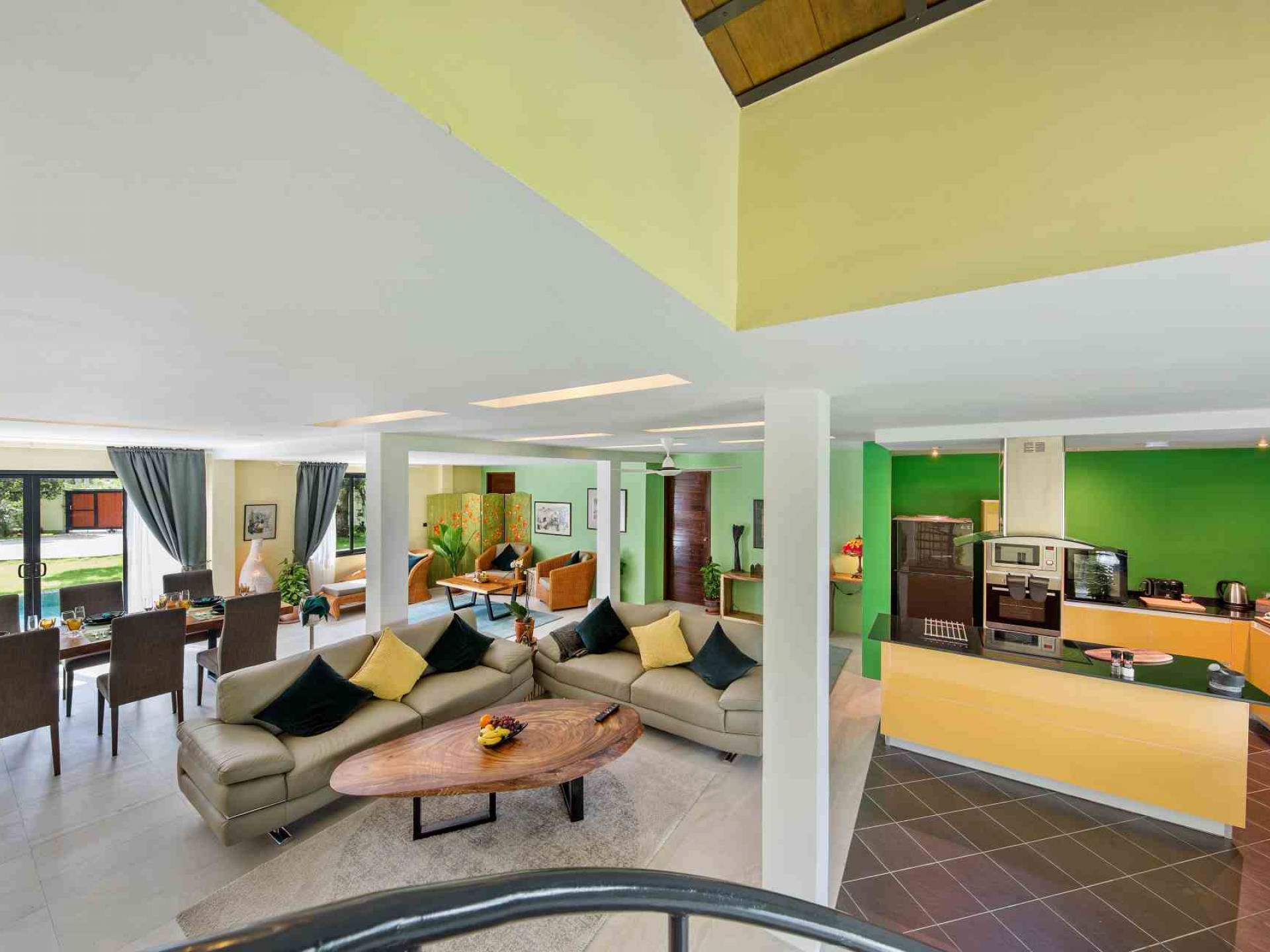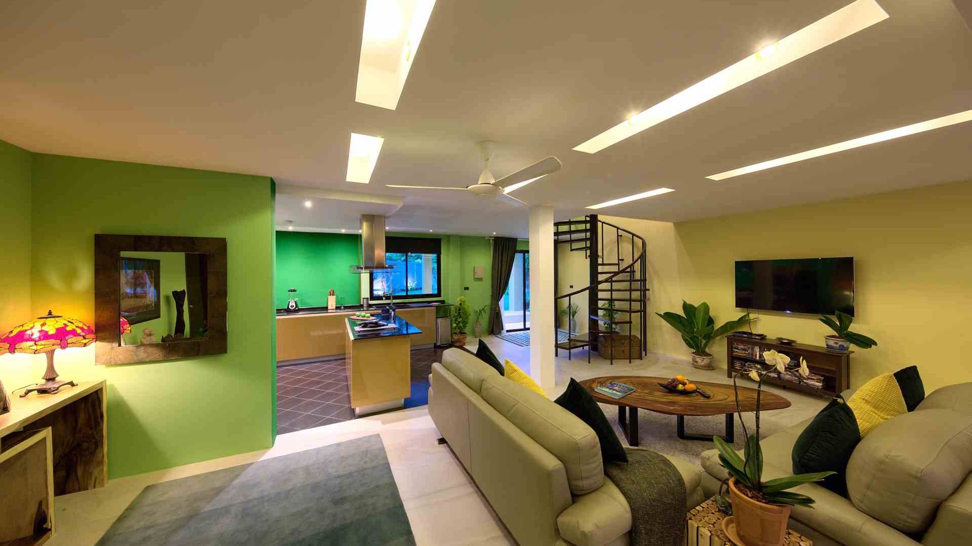 La zona giorno è molto spaziosa ma confortevole. Rilassati semplicemente su uno dei divani in pelle italiana mentre guardi la TV "smart" da 55 pollici, dotata di Ip tv, con oltre 300 canali in inglese, francese, tedesco, russo e tailandese. Viene fornito anche un lettore dvd. Il tavolo da pranzo in legno massello lungo tre metri è sistemato dalle finestre del patio che conducono alla piscina principale, alla sala, alla terrazza e al giardino anteriore. La Baan Suaan Serenity Villa dispone anche di rilassanti aree lettura e giochi. Nella parte posteriore del piano terra c'è una spaziosa cucina con un corridoio centrale di cottura. Questa cucina è molto moderna e completamente attrezzata con un grande frigorifero con congelatore. Dove oltre a generi alimentari di benvenuto troverete alcune birre locali (a pagamento) e bicchieri molto freschi. C'è anche un wine bar con una buona selezione di vini a prezzi ragionevoli.