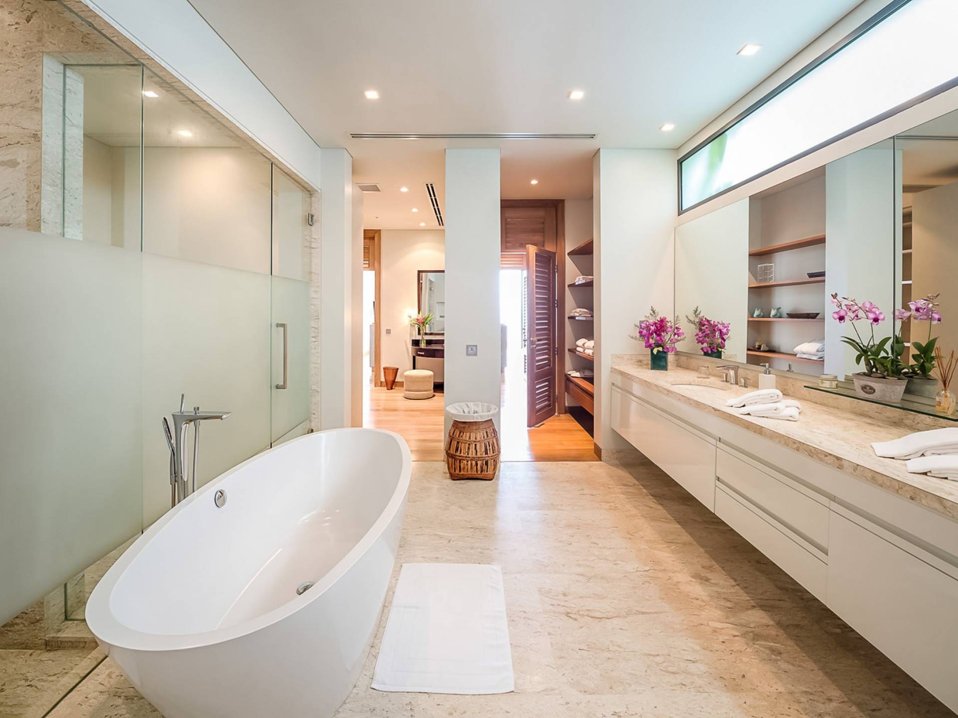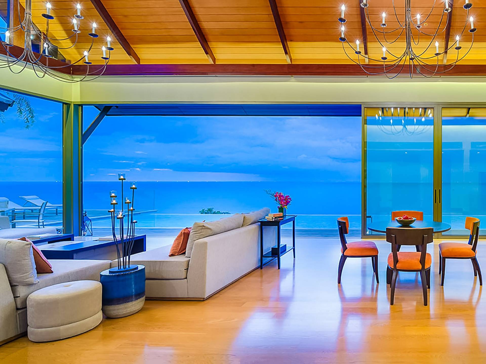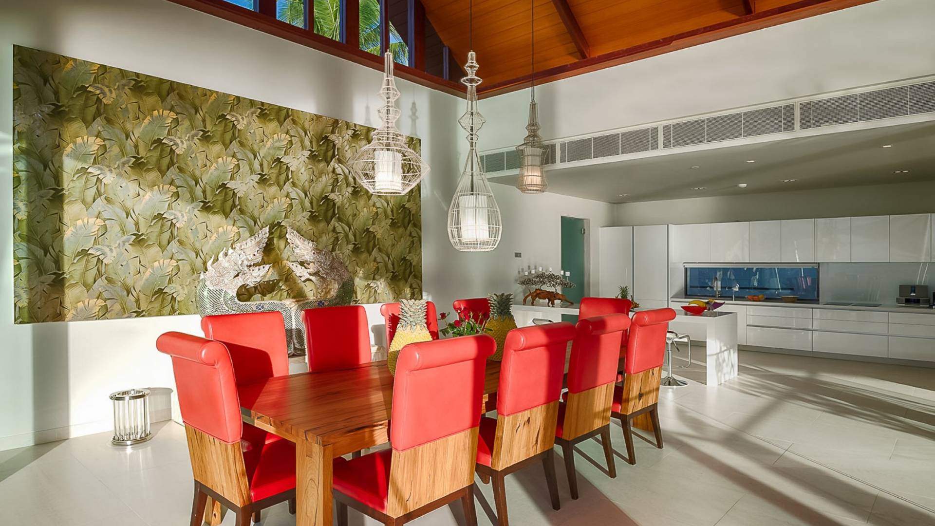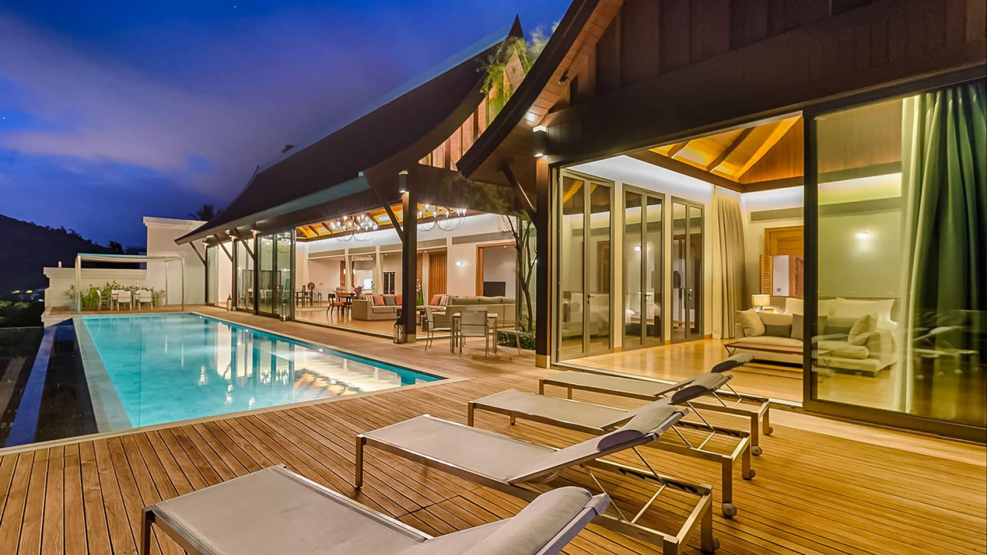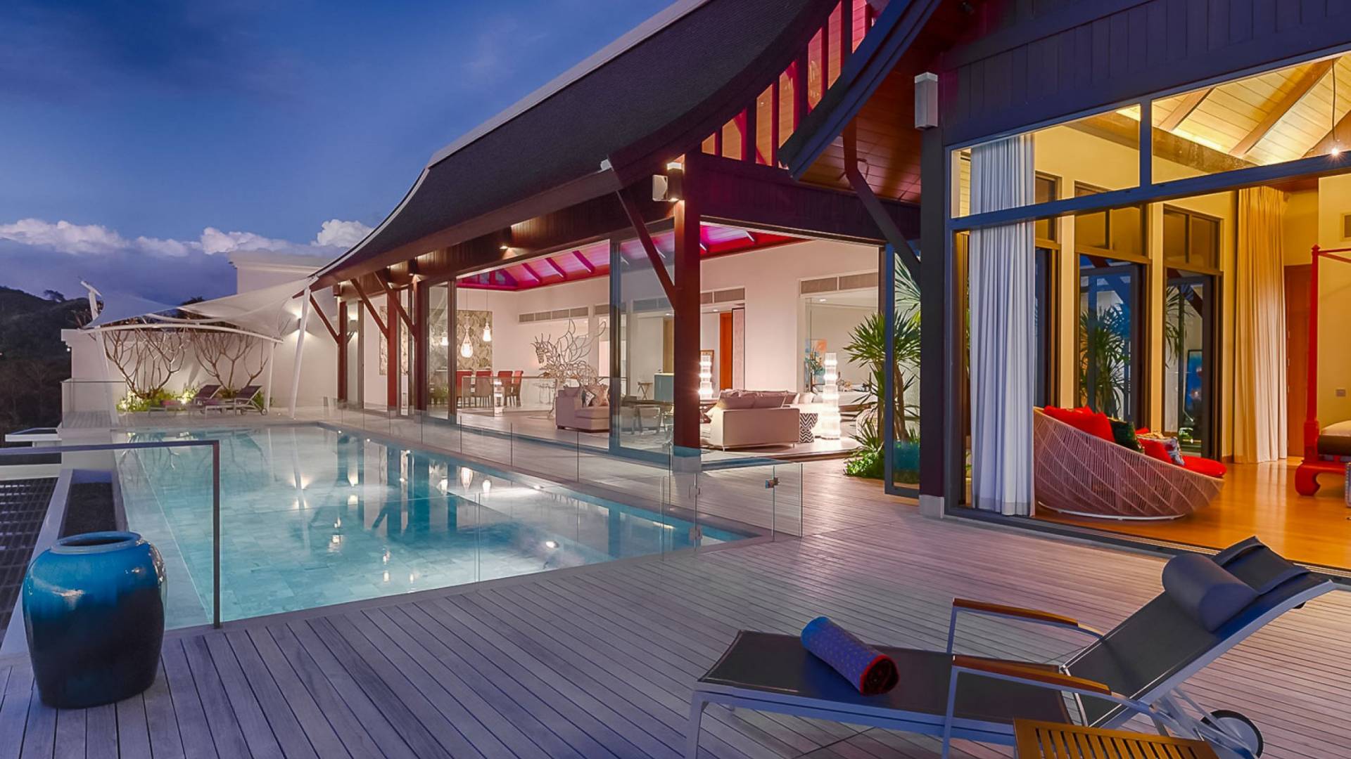 Villa Haleana a Malaiwana Villas Phuket è una luminosa lussuosa 6 camere da letto in affitto con ampie vedute sulla spiaggia di Nai Thon, situata nelle ultra esclusive Malaiwana Villas. Villa Haleana è una scelta invidiabile per famiglie e gruppi che cercano completa serenità e cure extra-lusso. Lascia che le giornate si svolgano beatamente con tuffi nella piscina di 18 metri, massaggi nella sontuosa sala spa, letture tranquille nello studio, allenamenti nella palestra privata o semplicemente rilassandoti nelle aree soggiorno all'aperto e al coperto. Le lussuose camere da letto includono due master suite con romantici bagni in marmo, mentre un manager, uno chef e il personale delle pulizie forniscono un servizio raffinato.