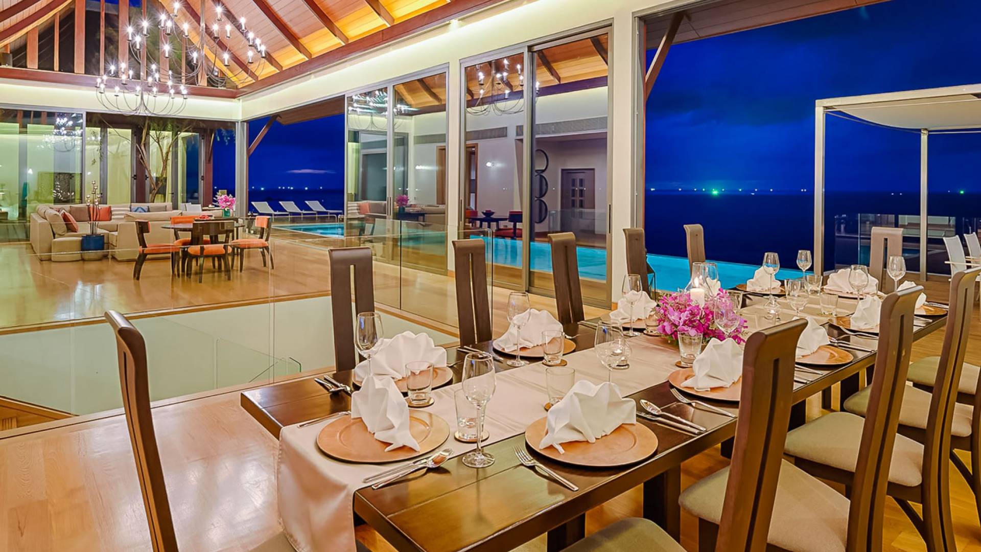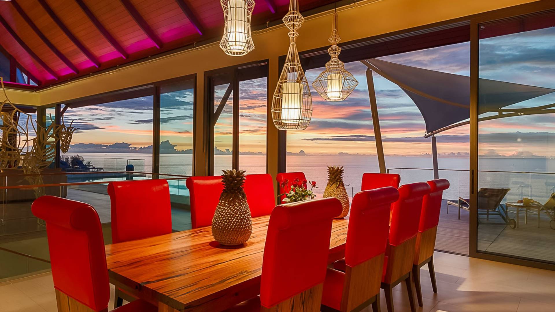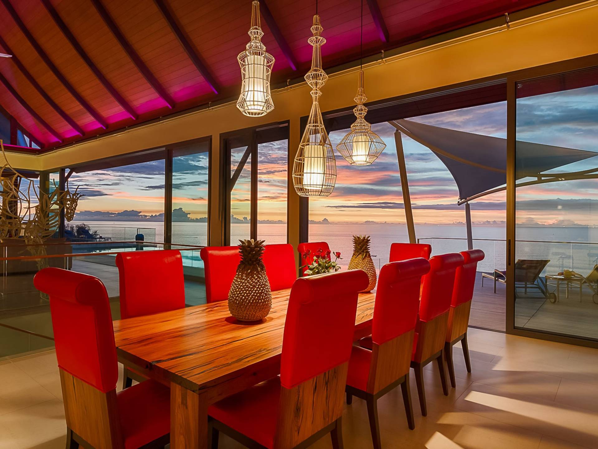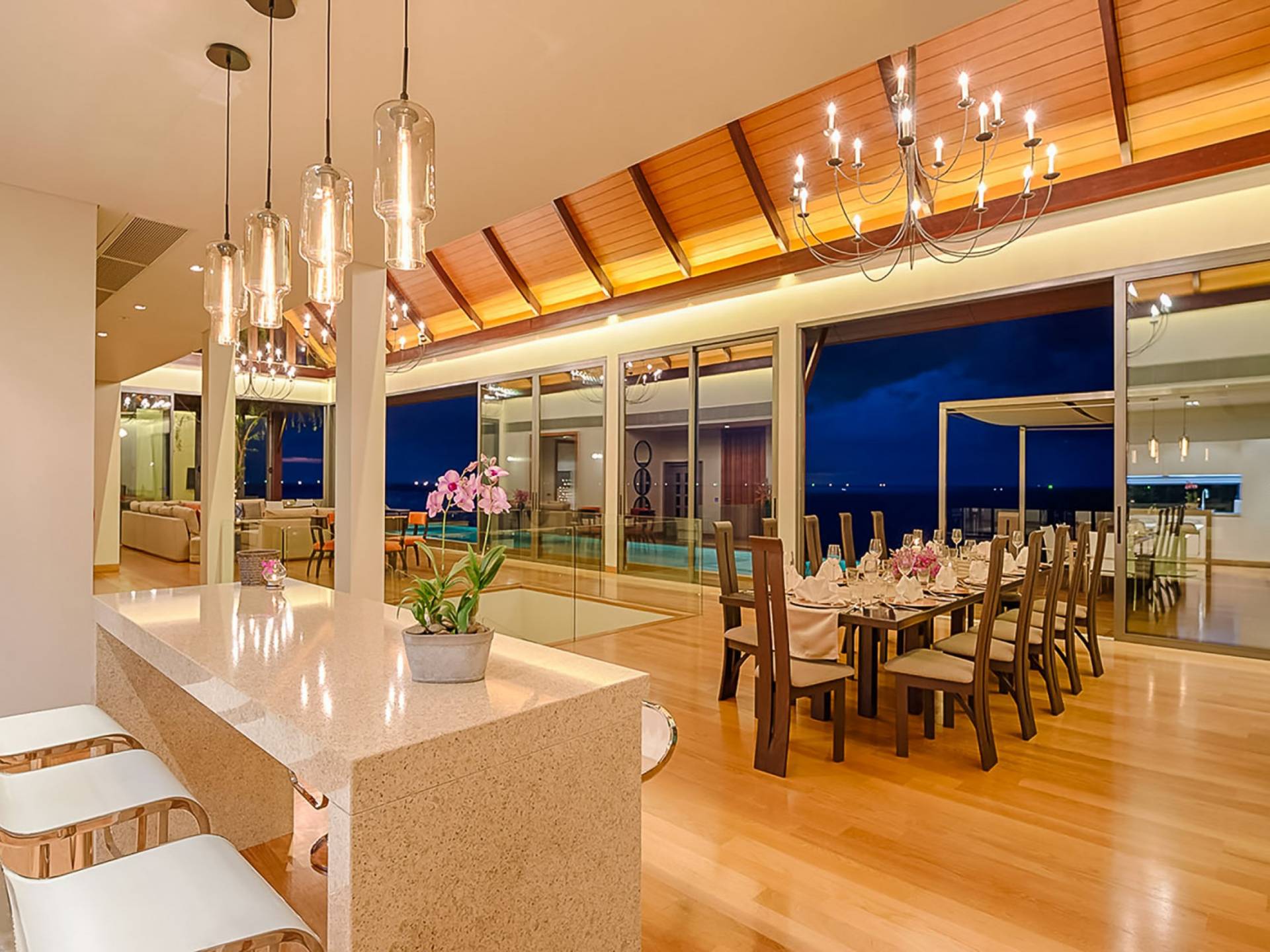 Le viste eccezionali sulle acque color zaffiro dell'affascinante oceano fino al maestoso tramonto sono la caratteristica distintiva della lussuosa Villa M del Malaiwana Villas Phuket. Villa M è composta da 5 camere da letto di cui 2 suite; un enorme soggiorno, con porte scorrevoli in vetro dal pavimento al soffitto, che si affacciano sull'altrettanto enorme piscina a sfioro, e un'ampia sala da pranzo, entrambe con pareti di vetro che si aprono per invitare brezze fresche all'interno. La sala fitness e la sala di intrattenimento, entrambe piene di strutture moderne e le attrezzature più sofisticate, assicurano che tutti siano sempre intrattenuti.