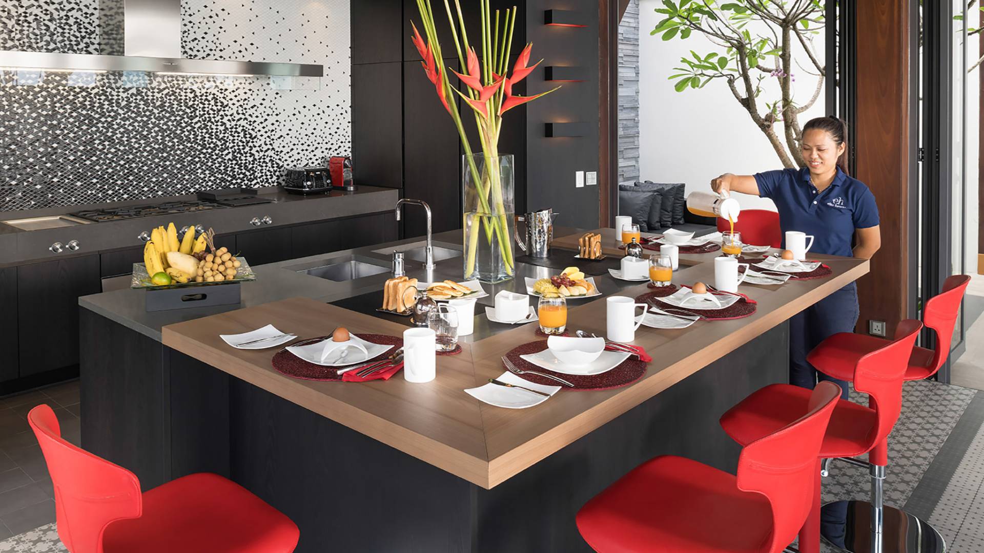 Anche durante il giorno la vista è paradisiaca, in continua trasformazione mentre il carro infuocato del sole vola attraverso la cupola del cielo, inseguito da nuvole occasionali che cambiano i colori del mare sottostante, che è increspato da brezze leggere e frecce barche da pesca e l'occasionale yacht. Garantendo che gli ospiti abbiano ogni opportunità di apprezzare appieno le delizie di Malaiwana Villa M, il personale efficiente e sorridente anticipa ogni capriccio. Lo chef, in particolare, soddisferà qualsiasi capriccio culinario, con piatti thailandesi o internazionali.