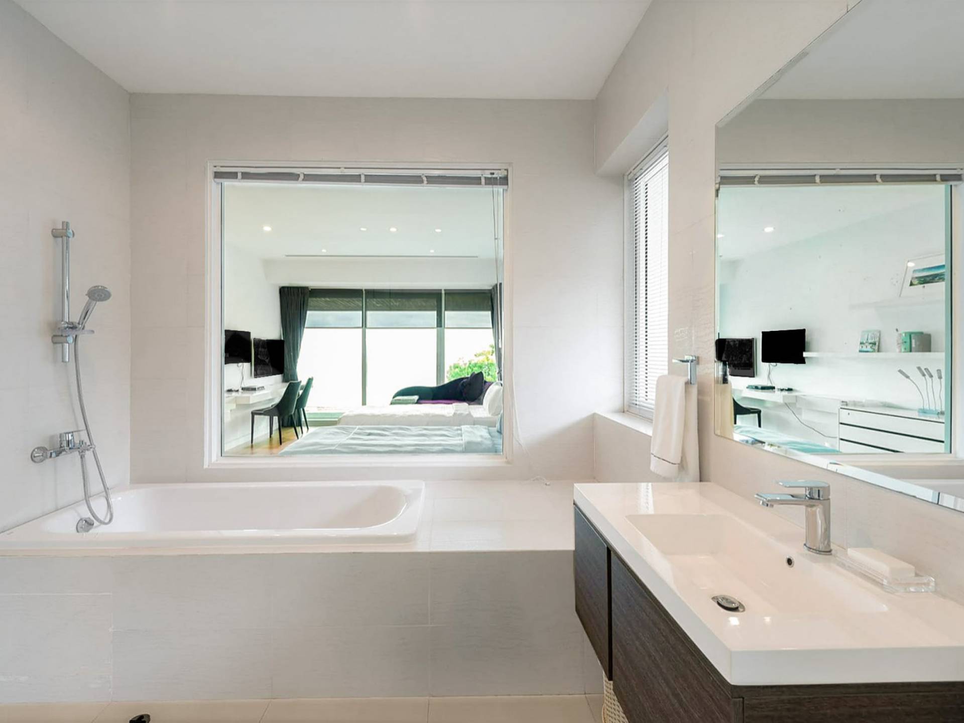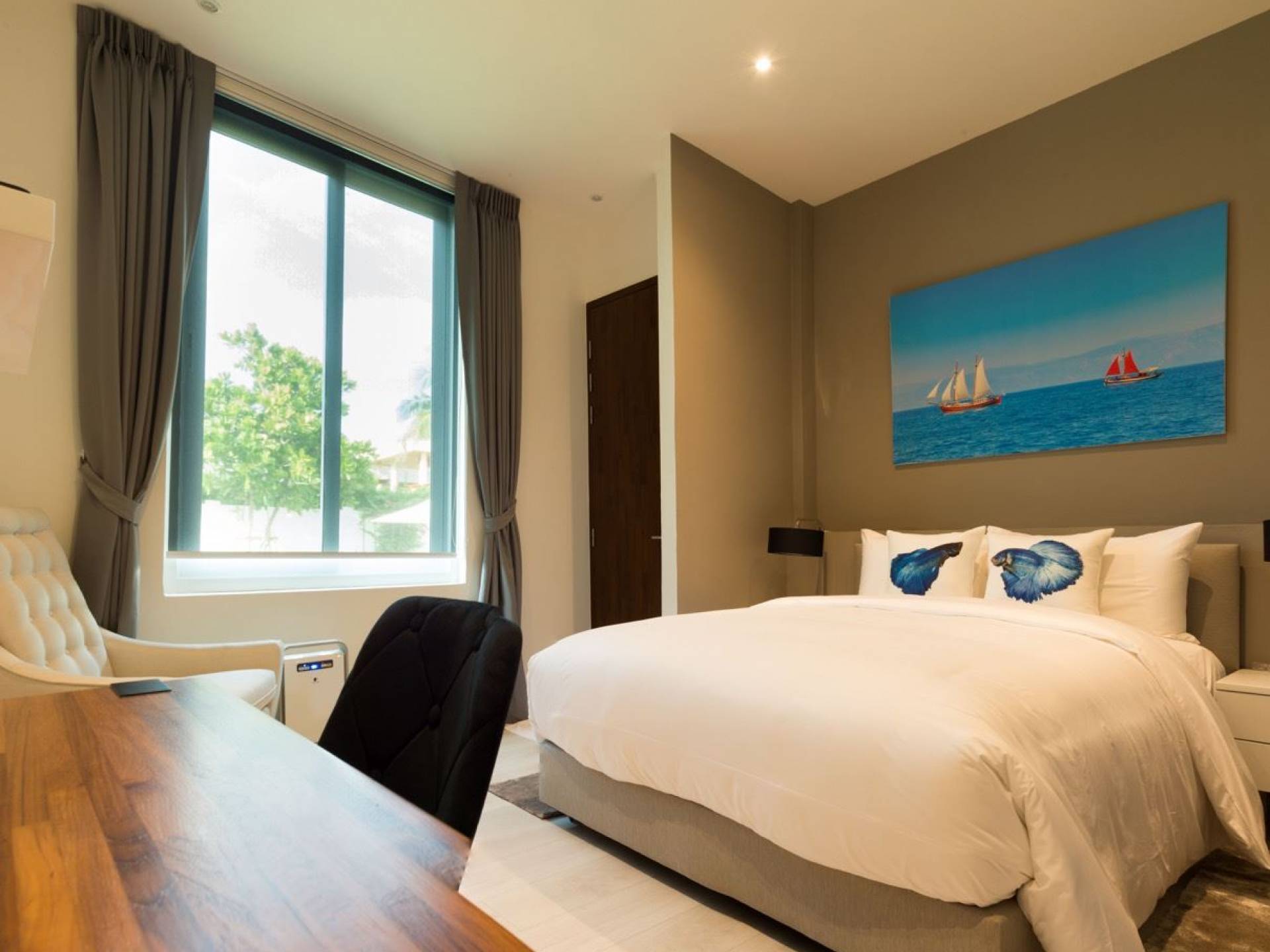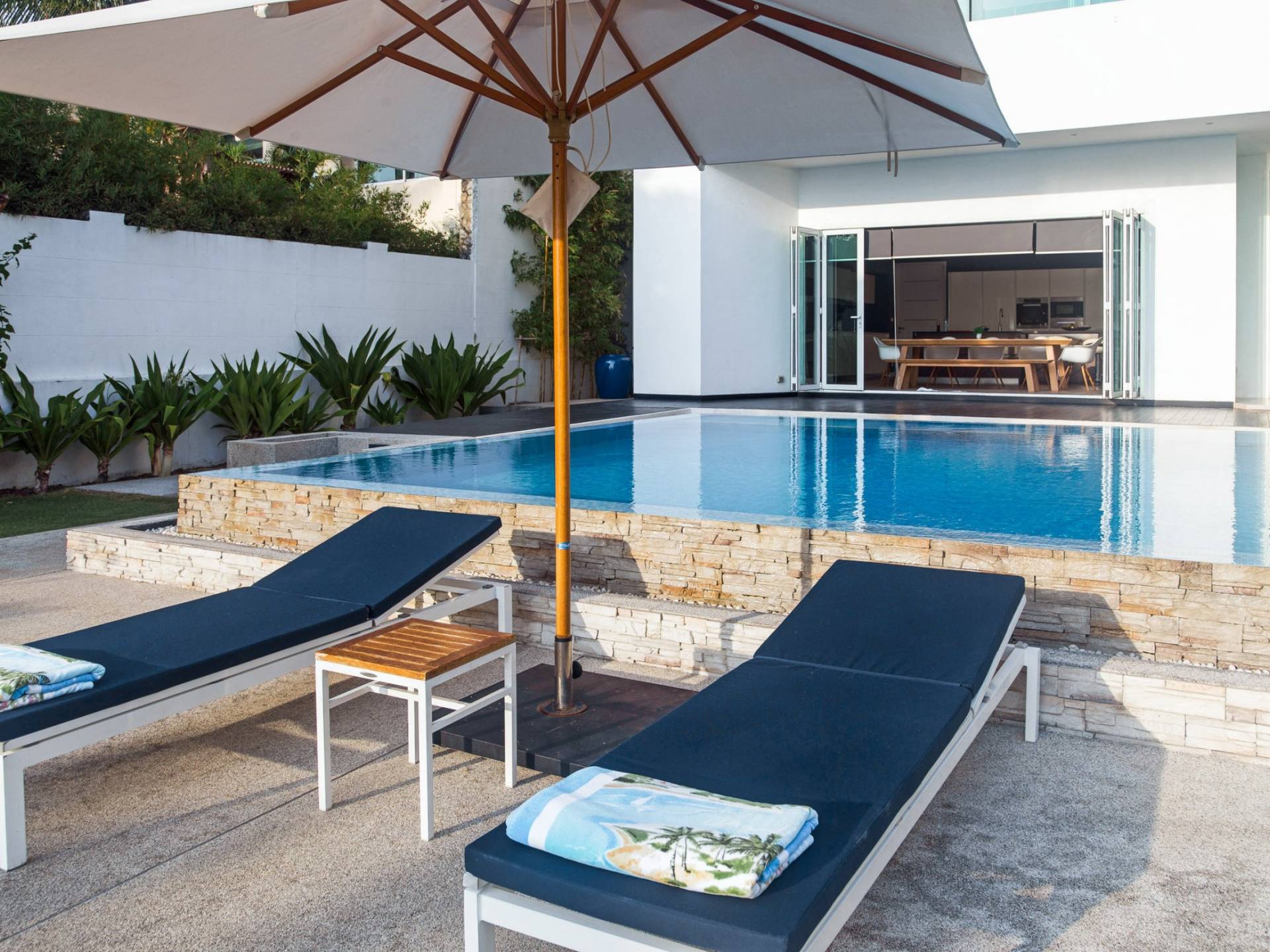 Lettini prendisole leggeri, facili da spostare con una comoda imbottitura spessa, rendono piacevole sdraiarsi a bordo piscina, godersi un romanzo o semplicemente navigare in Internet con il Wi-Fi in tutta la struttura. Le camere da letto, i soggiorni, la cucina e la sala da pranzo hanno una vista sull'oceano, con una magnifica vista senza ostacoli sui toni del blu in continua evoluzione, in alcune delle acque oceaniche più pulite della Thailandia.