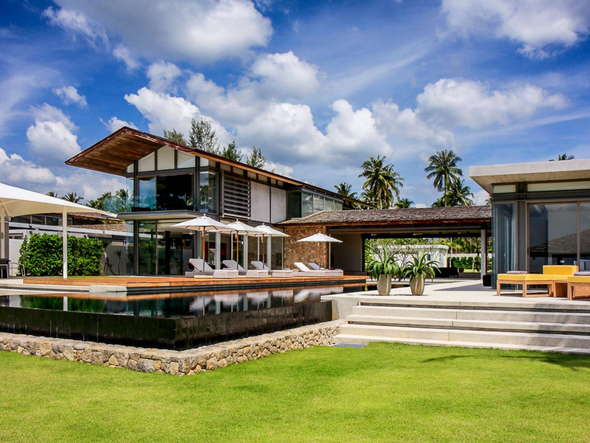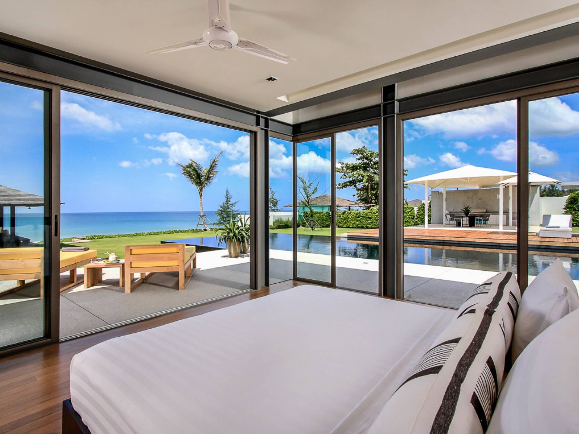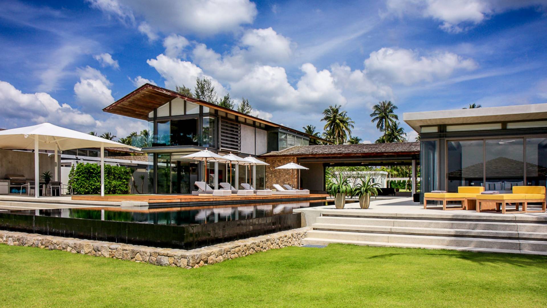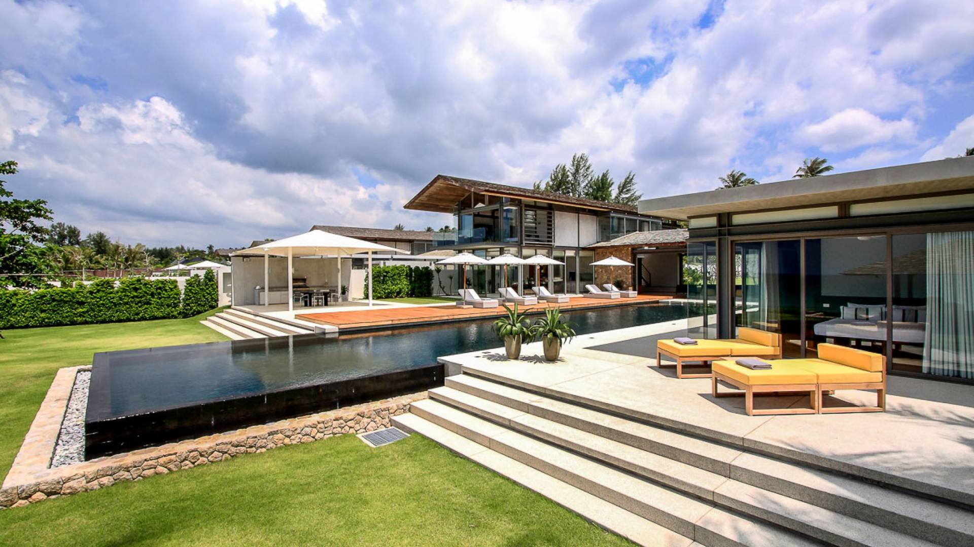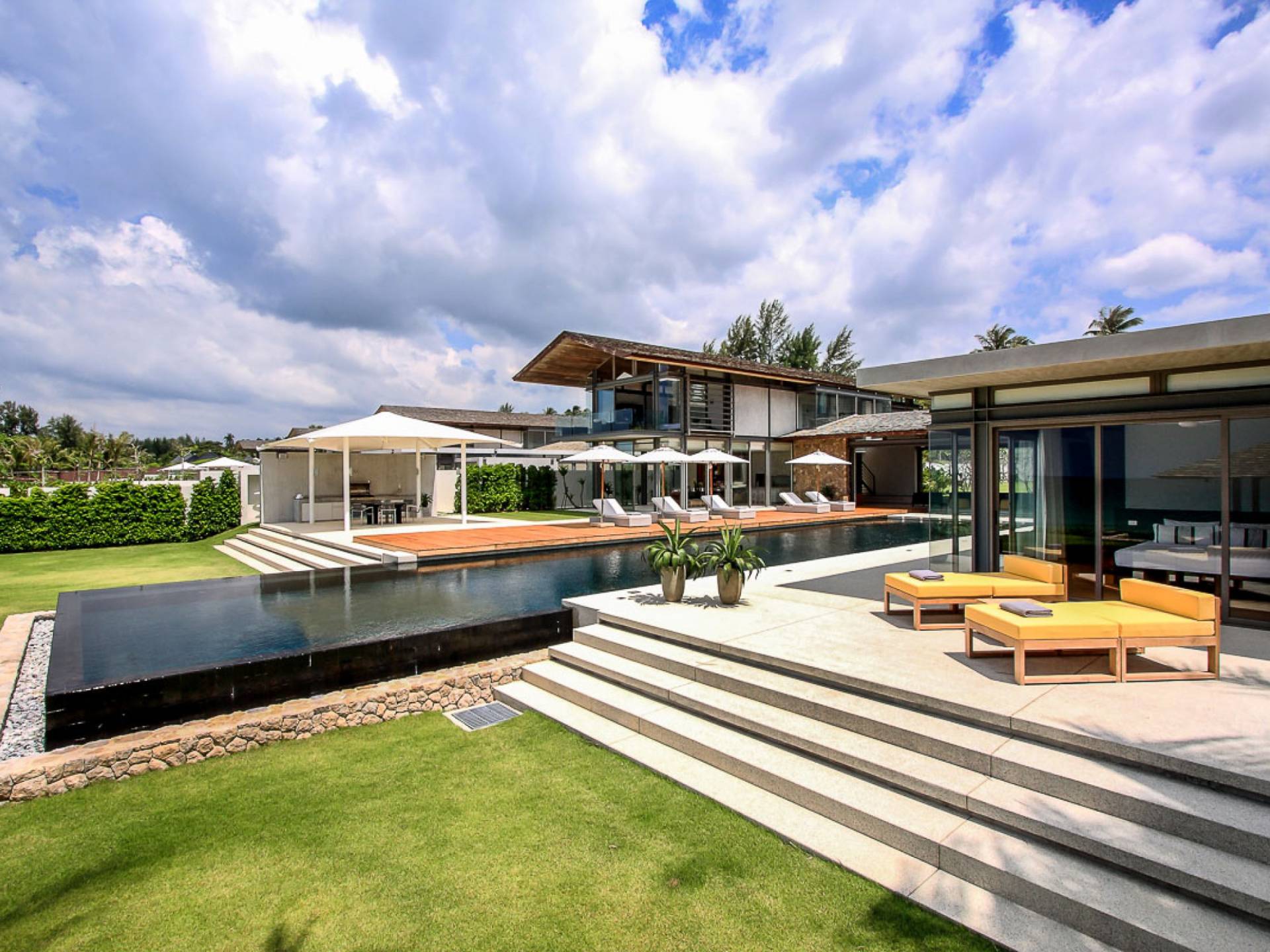 La Villa Amarelo con sei camere da letto è un'affascinante fuga tropicale per famiglie o gruppi con il suo ampio ambiente fronte mare e il design luminoso e aperto. Le eleganti camere da letto della villa a forma di U e le aree soggiorno e pranzo a pianta aperta avvolgono una piscina a sfioro privata lunga 25 metri, circondata da ampi terrazzamenti e prati per l'intrattenimento all'aperto. Gli ospiti sono prodigati con l'attenzione del personale a tempo pieno che include un manager della villa e uno chef tailandese esecutivo. Una vasta gamma di strutture ricreative sono disponibili per gli ospiti, tra cui un tavolo da biliardo, tavole da surf, attrezzature da calcio e pallavolo. Per un romantico matrimonio tropicale o un evento speciale, Amarelo è un luogo magico con infinite viste sul mare.