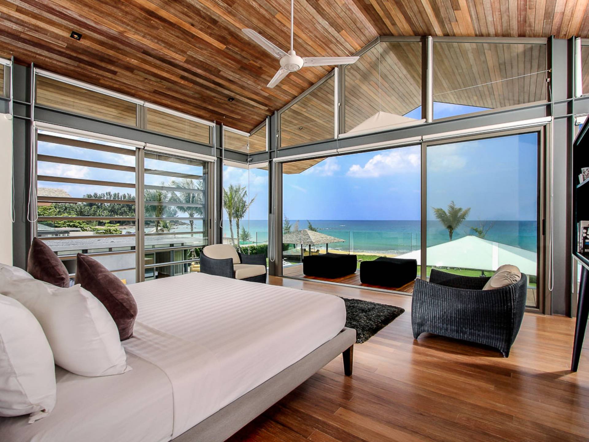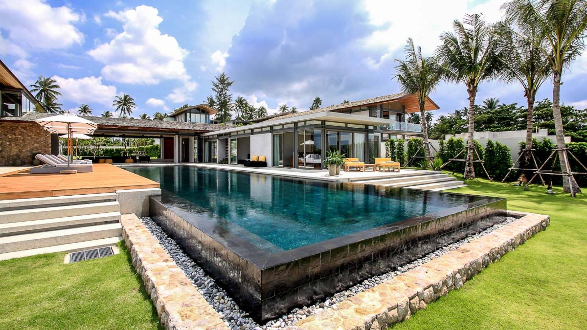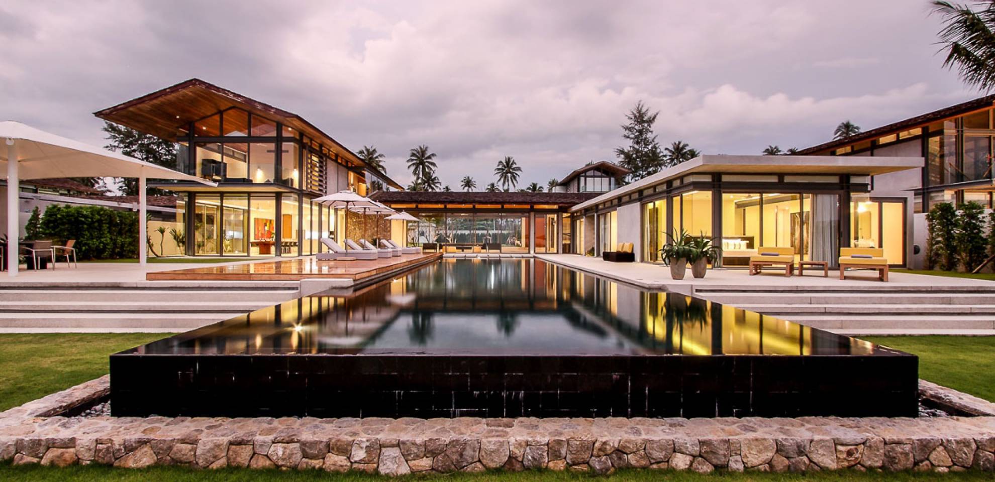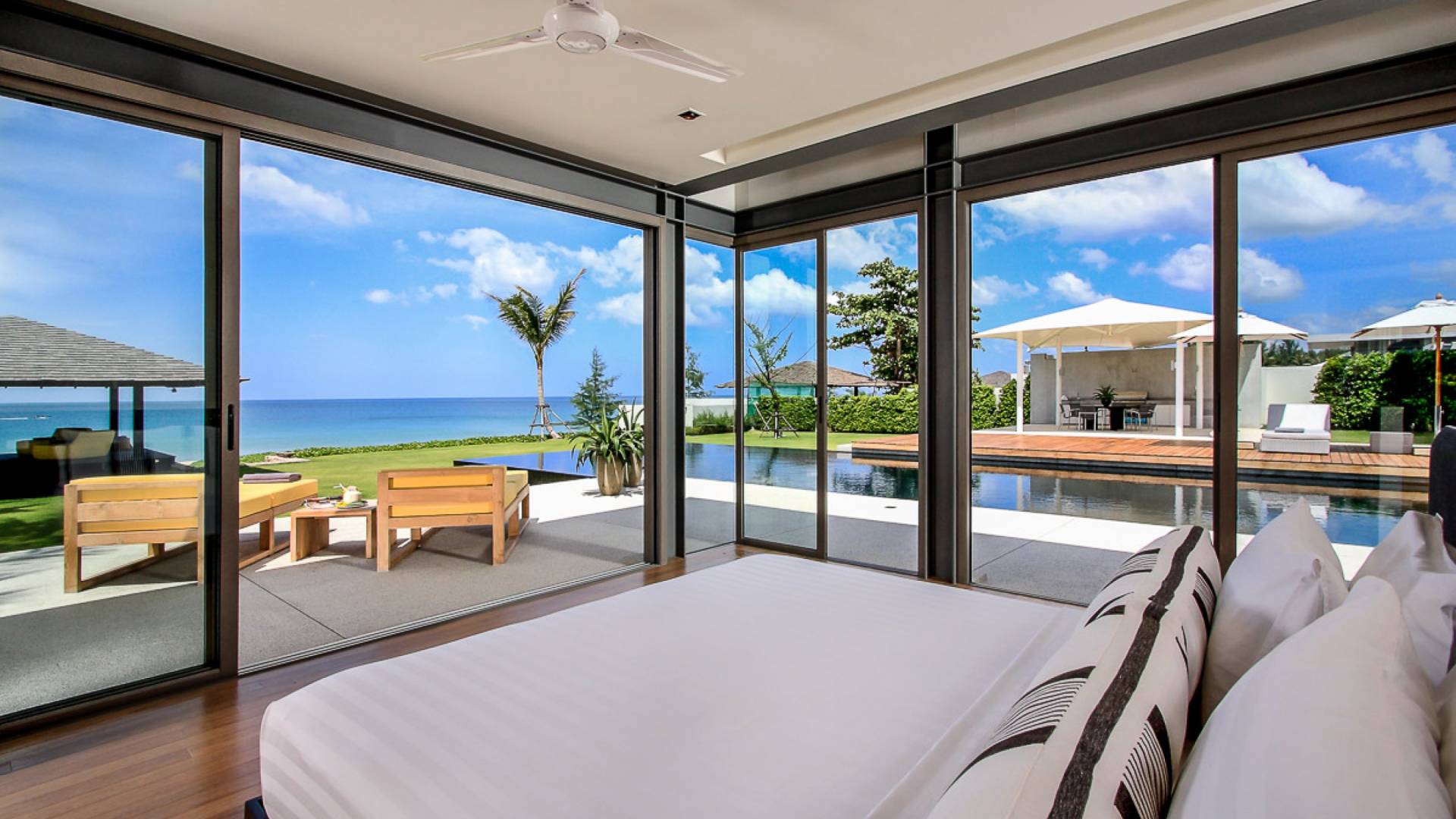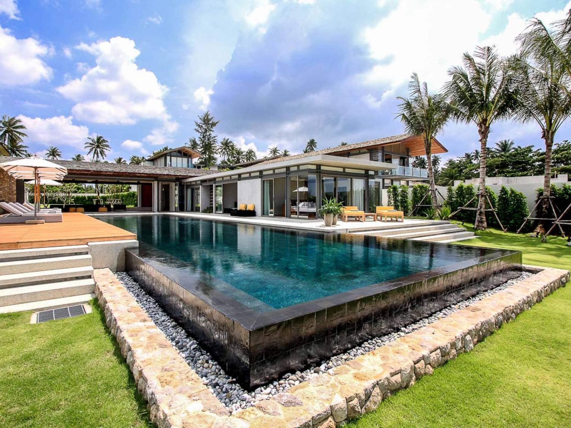 La Villa Amarelo con sei camere da letto è un'affascinante fuga tropicale per famiglie o gruppi con il suo ampio ambiente fronte mare e il design luminoso e aperto. Le eleganti camere da letto della villa a forma di U e le aree soggiorno e pranzo a pianta aperta avvolgono una piscina a sfioro privata lunga 25 metri, circondata da ampi terrazzamenti e prati per l'intrattenimento all'aperto. Gli ospiti sono prodigati con l'attenzione del personale a tempo pieno che include un manager della villa e uno chef tailandese esecutivo. Una vasta gamma di strutture ricreative sono disponibili per gli ospiti, tra cui un tavolo da biliardo, tavole da surf, attrezzature da calcio e pallavolo. Per un romantico matrimonio tropicale o un evento speciale, Amarelo è un luogo magico con infinite viste sul mare.