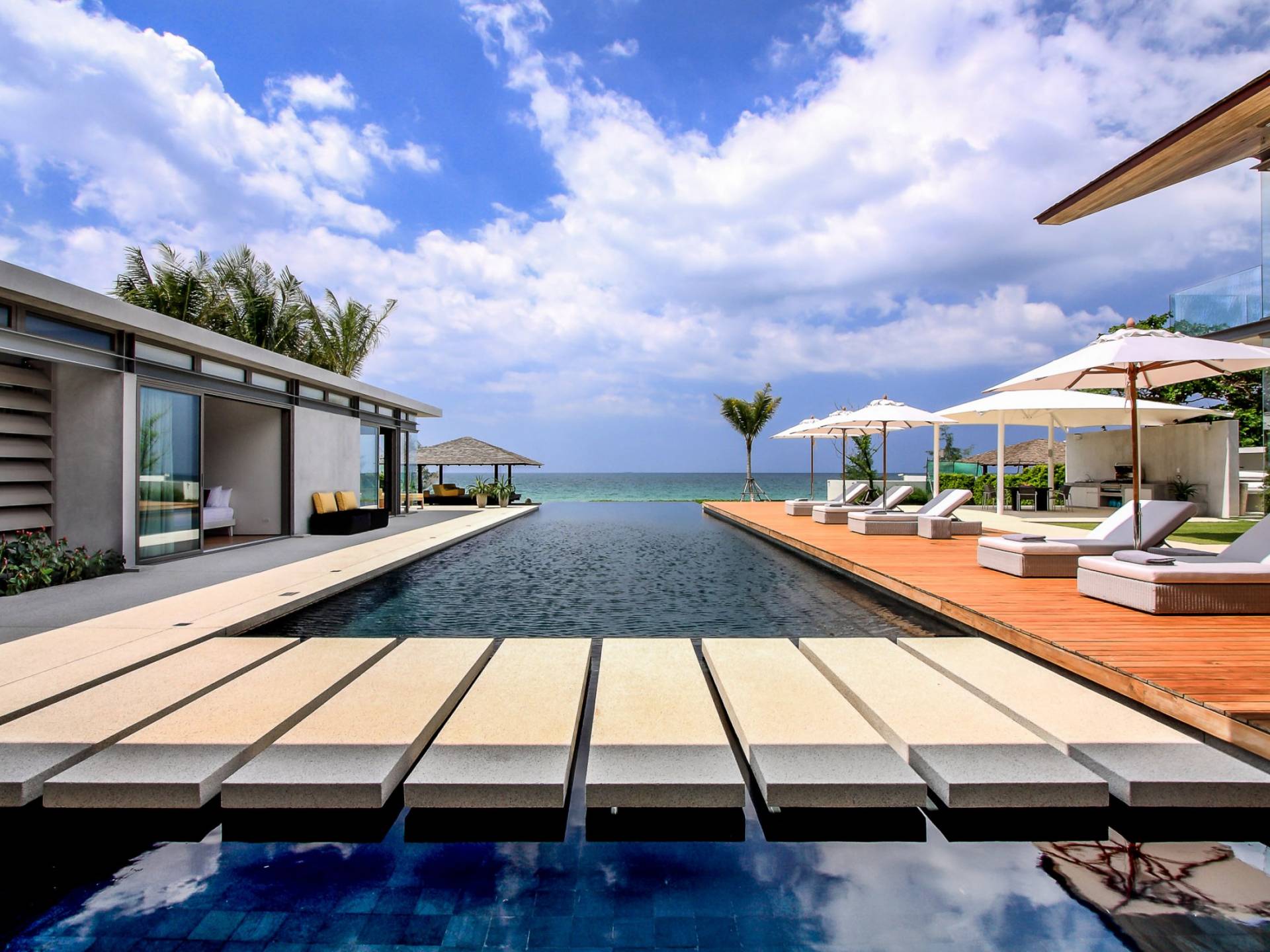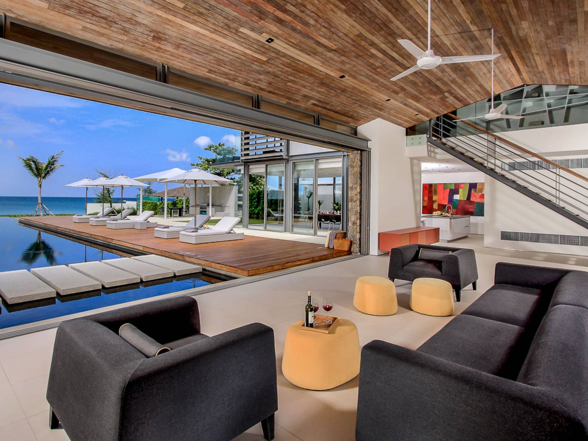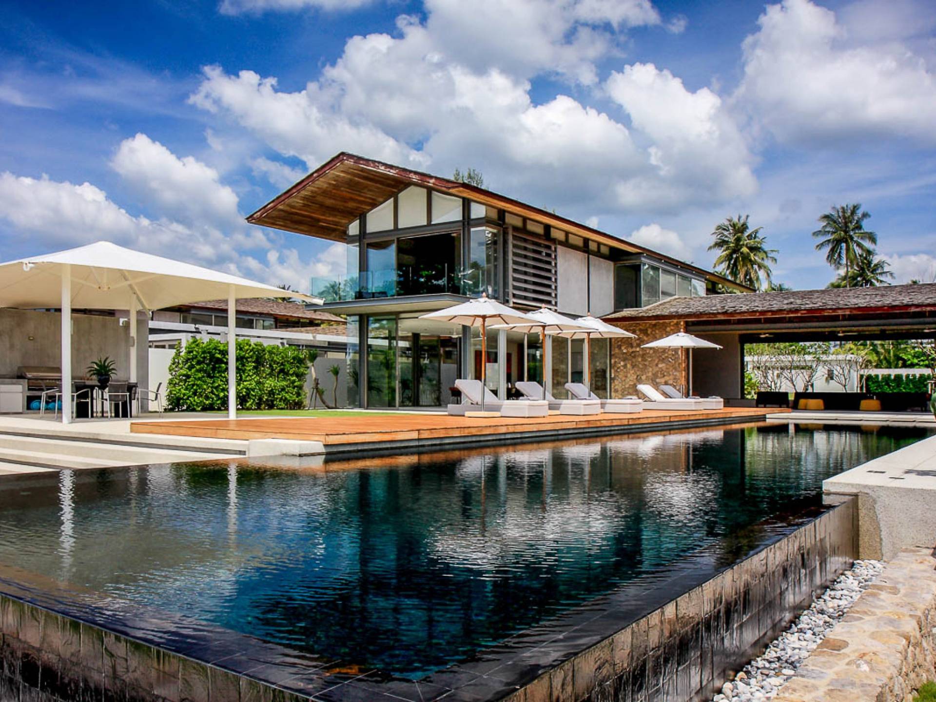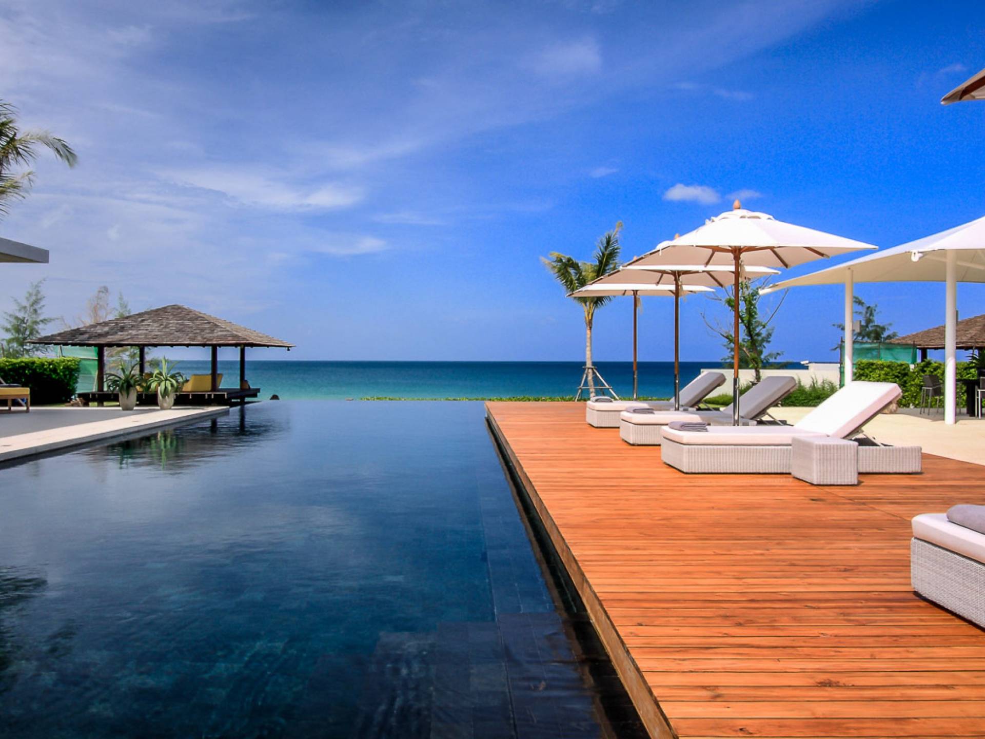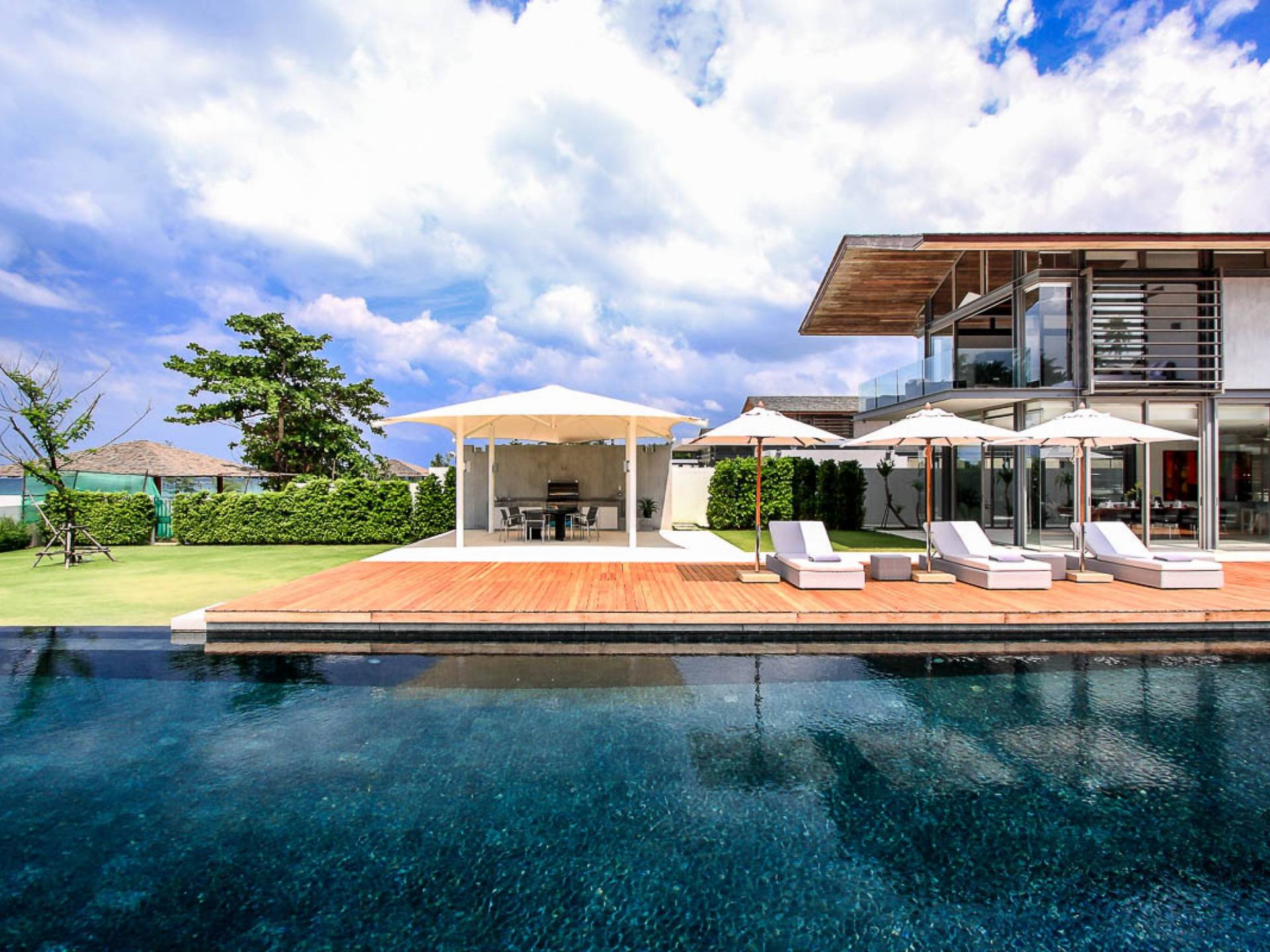La Villa Amarelo con sei camere da letto è un'affascinante fuga tropicale per famiglie o gruppi con il suo ampio ambiente fronte mare e il design luminoso e aperto. Le eleganti camere da letto della villa a forma di U e le aree soggiorno e pranzo a pianta aperta avvolgono una piscina a sfioro privata lunga 25 metri, circondata da ampi terrazzamenti e prati per l'intrattenimento all'aperto. Gli ospiti sono prodigati con l'attenzione del personale a tempo pieno che include un manager della villa e uno chef tailandese esecutivo. Una vasta gamma di strutture ricreative sono disponibili per gli ospiti, tra cui un tavolo da biliardo, tavole da surf, attrezzature da calcio e pallavolo. Per un romantico matrimonio tropicale o un evento speciale, Amarelo è un luogo magico con infinite viste sul mare.