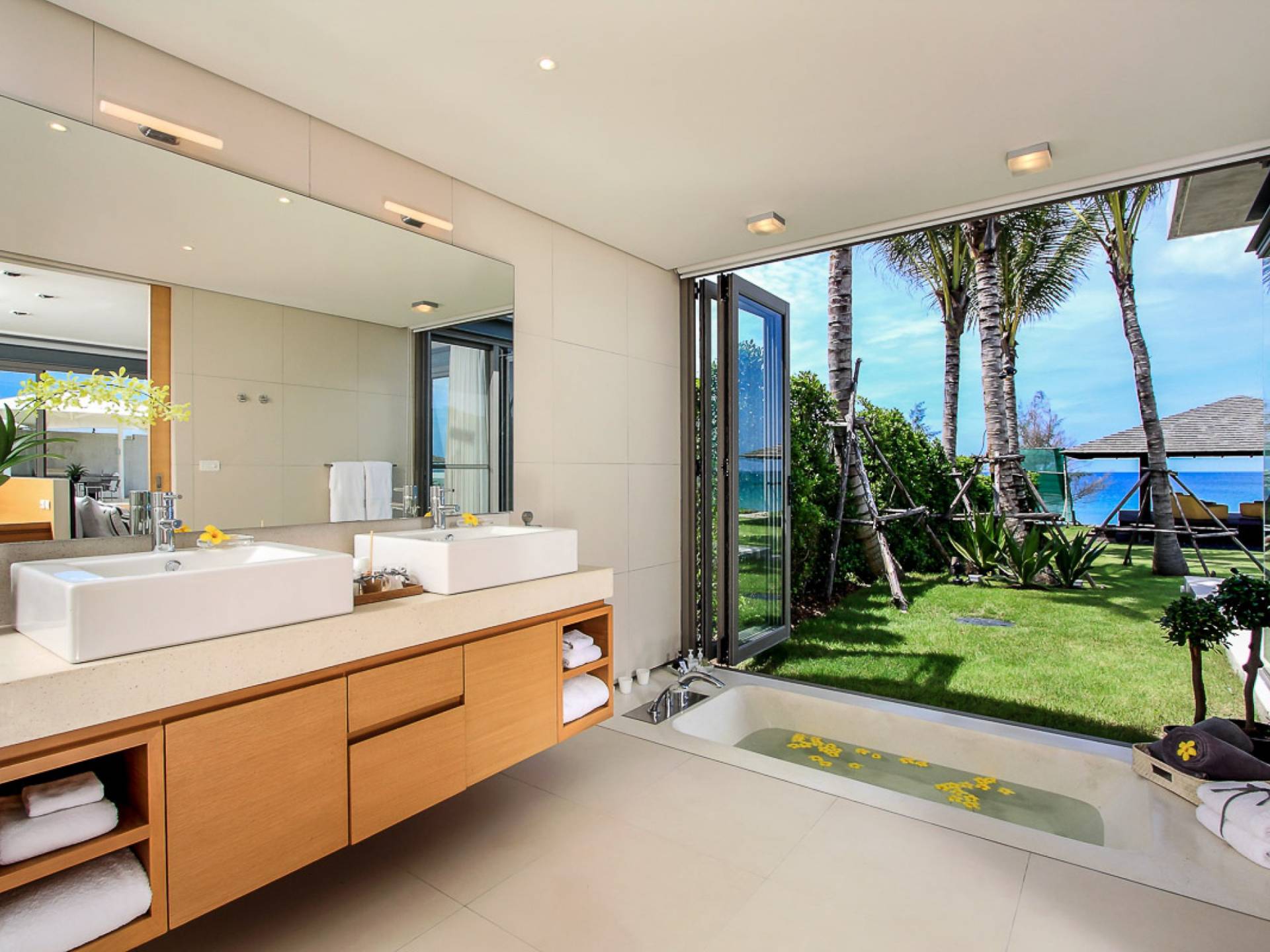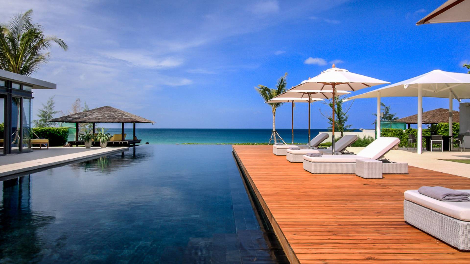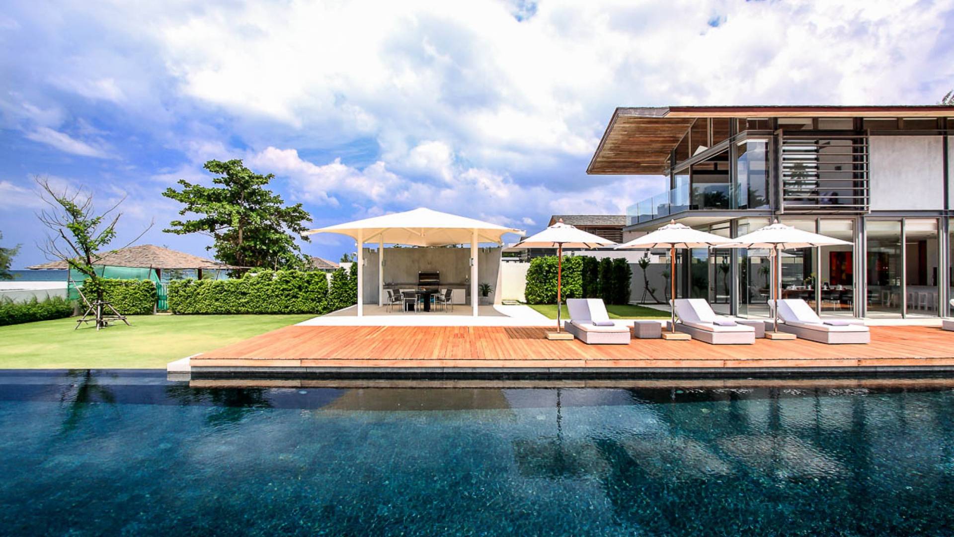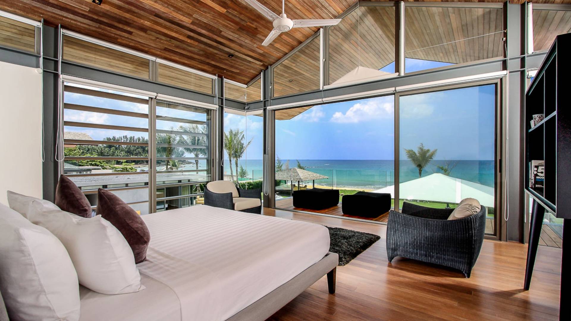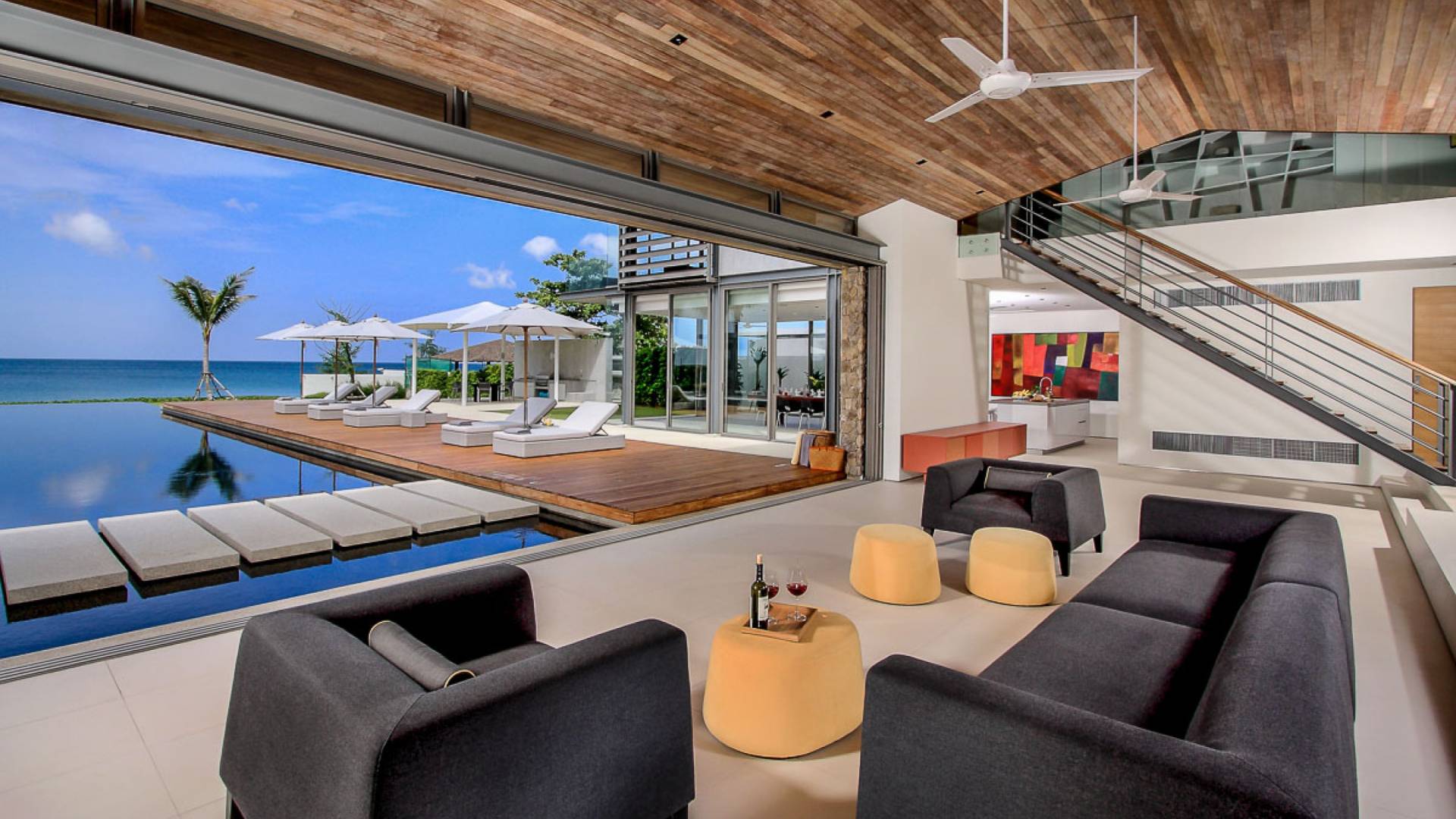 La Villa Amarelo con sei camere da letto è un'affascinante fuga tropicale per famiglie o gruppi con il suo ampio ambiente fronte mare e il design luminoso e aperto. Le eleganti camere da letto della villa a forma di U e le aree soggiorno e pranzo a pianta aperta avvolgono una piscina a sfioro privata lunga 25 metri, circondata da ampi terrazzamenti e prati per l'intrattenimento all'aperto. Gli ospiti sono prodigati con l'attenzione del personale a tempo pieno che include un manager della villa e uno chef tailandese esecutivo. Una vasta gamma di strutture ricreative sono disponibili per gli ospiti, tra cui un tavolo da biliardo, tavole da surf, attrezzature da calcio e pallavolo. Per un romantico matrimonio tropicale o un evento speciale, Amarelo è un luogo magico con infinite viste sul mare.