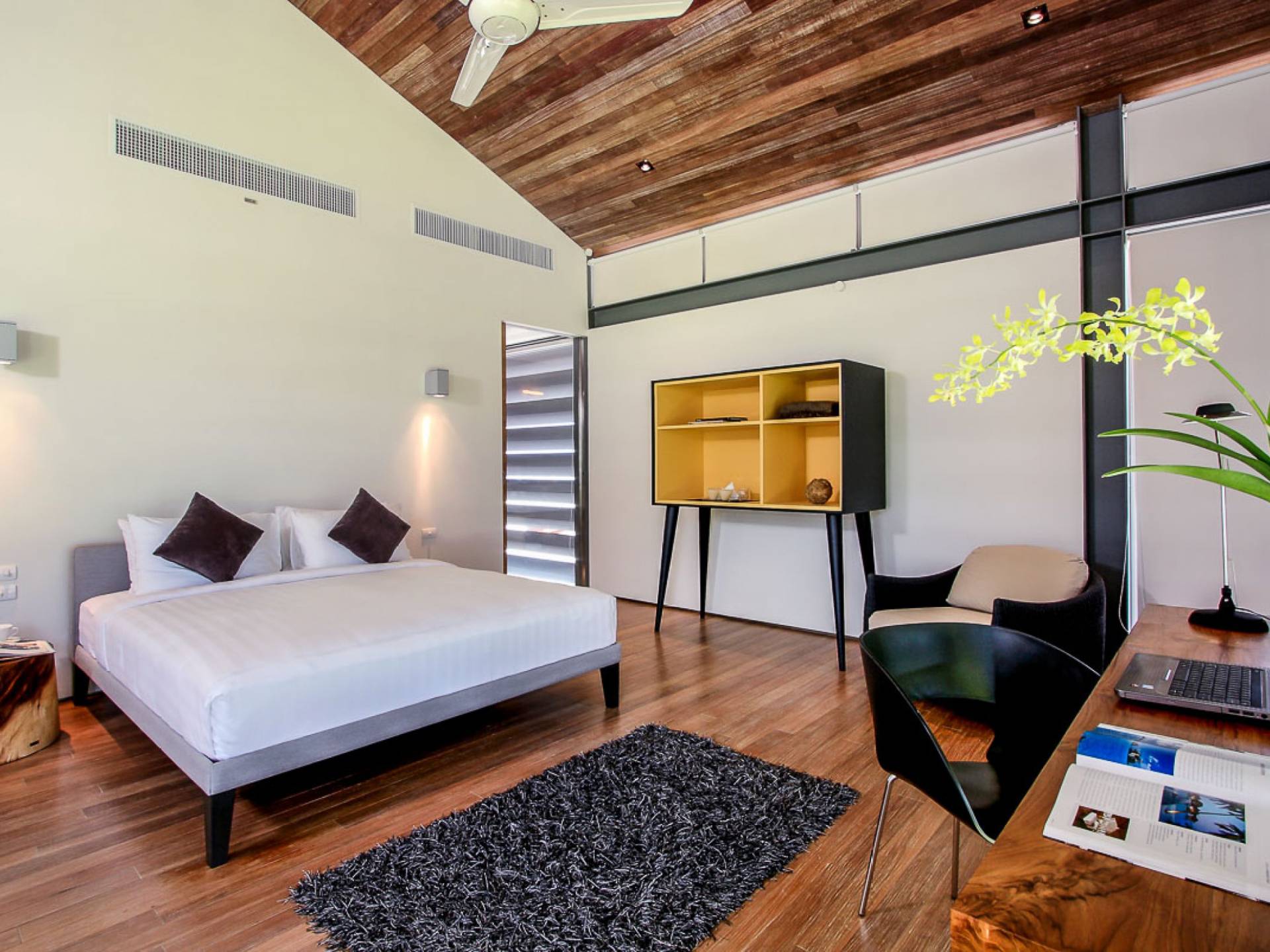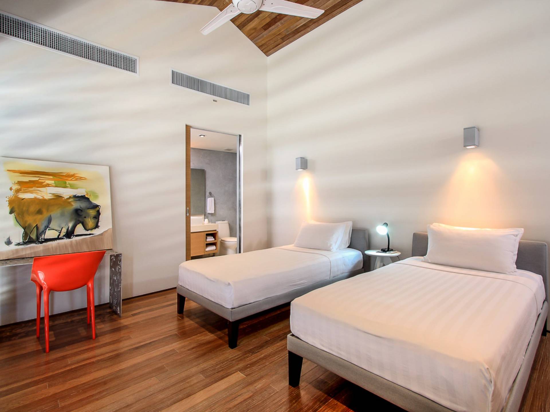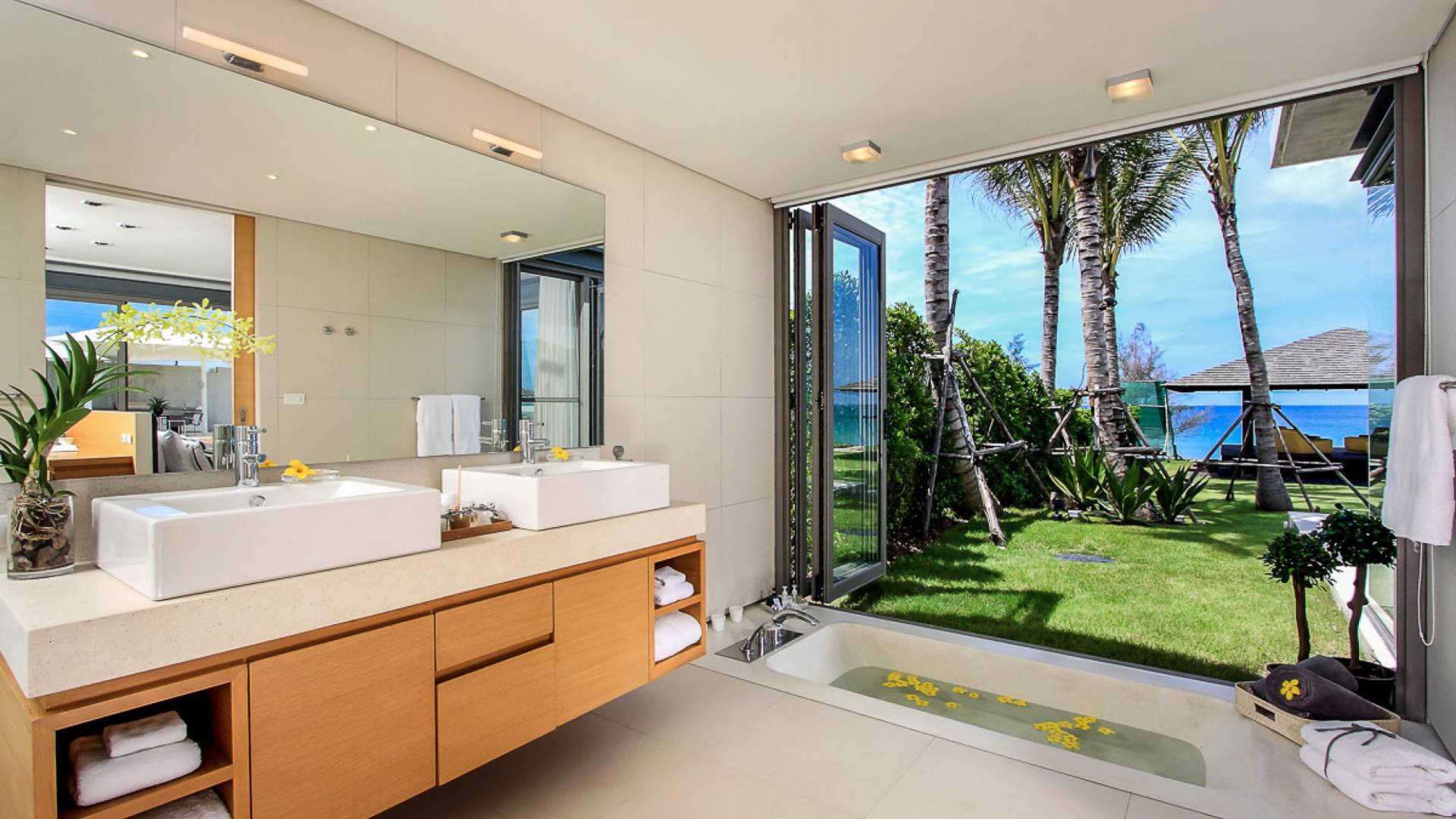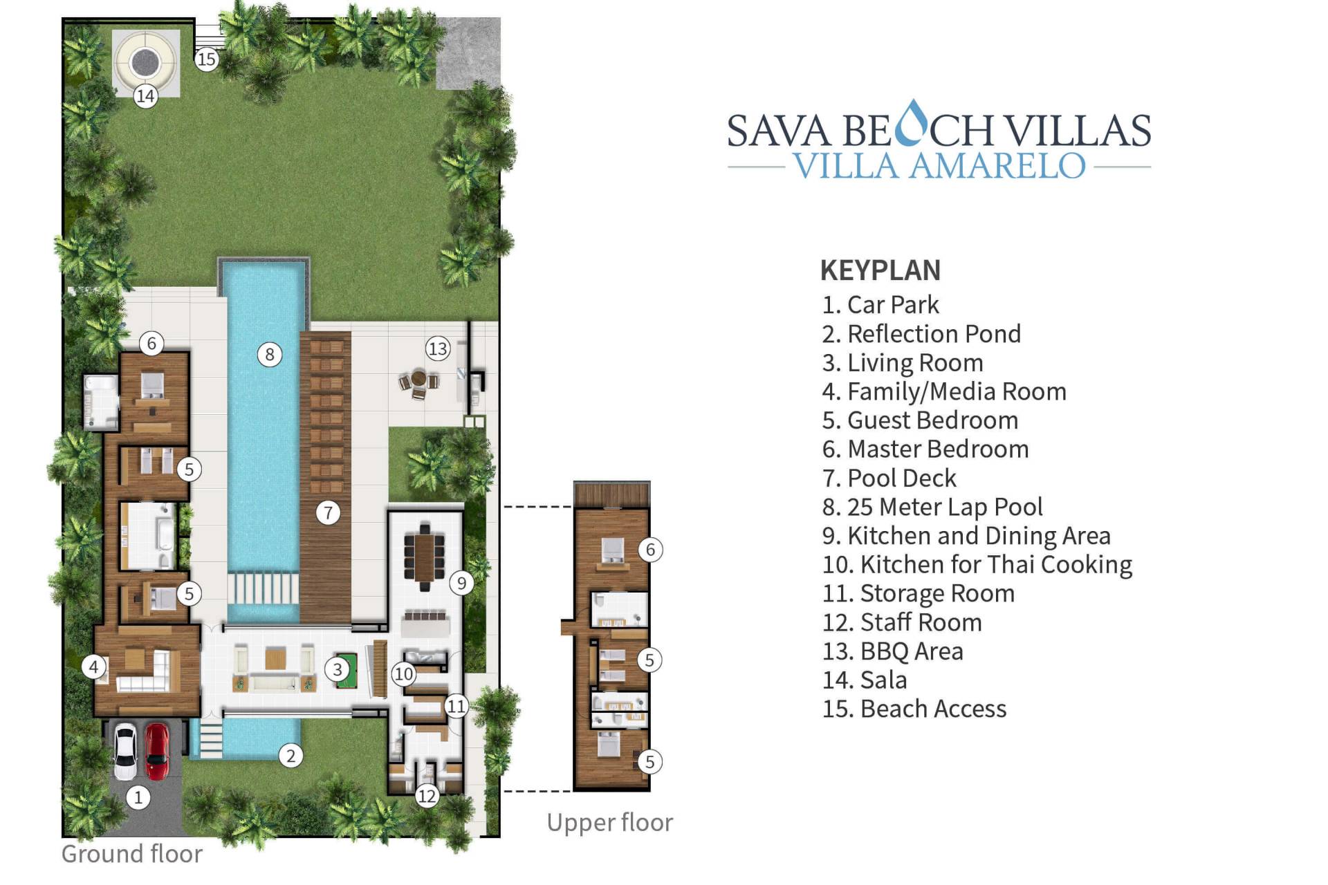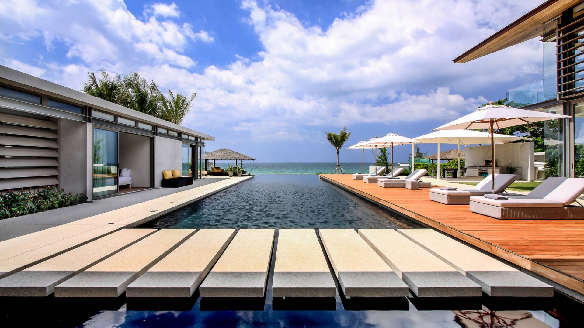La Villa Amarelo con sei camere da letto è un'affascinante fuga tropicale per famiglie o gruppi con il suo ampio ambiente fronte mare e il design luminoso e aperto. Le eleganti camere da letto della villa a forma di U e le aree soggiorno e pranzo a pianta aperta avvolgono una piscina a sfioro privata lunga 25 metri, circondata da ampi terrazzamenti e prati per l'intrattenimento all'aperto. Gli ospiti sono prodigati con l'attenzione del personale a tempo pieno che include un manager della villa e uno chef tailandese esecutivo. Una vasta gamma di strutture ricreative sono disponibili per gli ospiti, tra cui un tavolo da biliardo, tavole da surf, attrezzature da calcio e pallavolo. Per un romantico matrimonio tropicale o un evento speciale, Amarelo è un luogo magico con infinite viste sul mare.