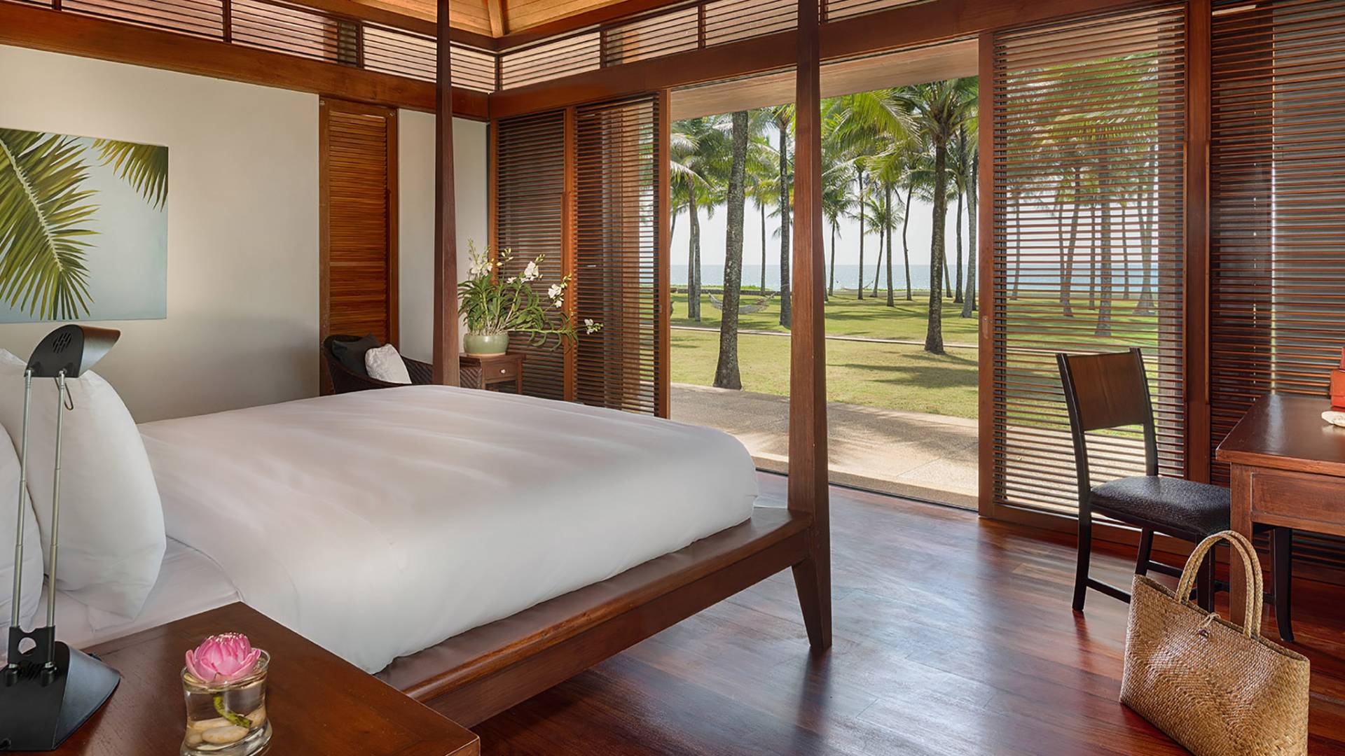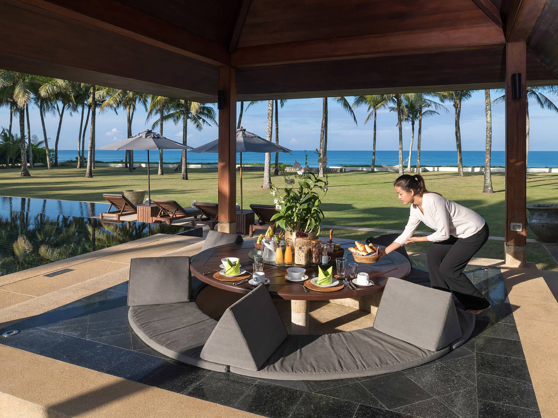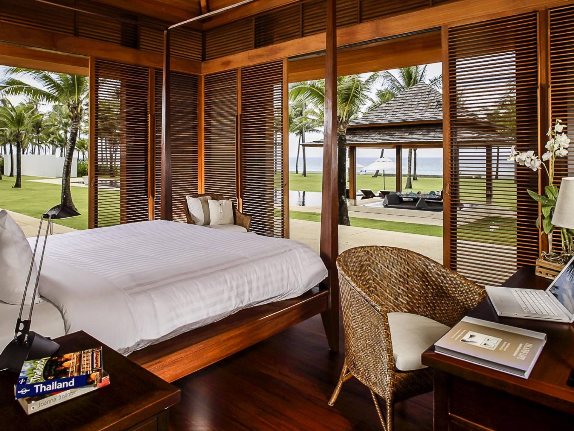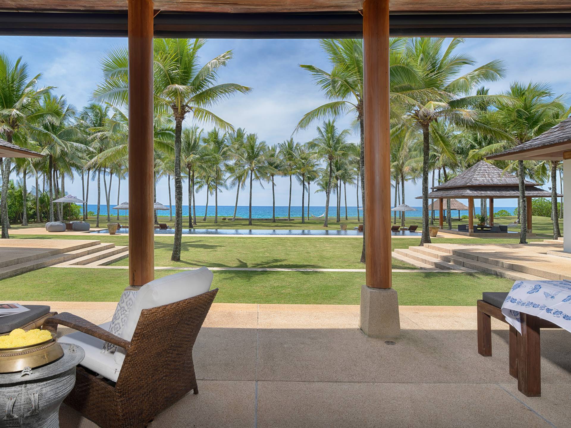 Villa Ananda a Jivana Beach Villas Natai è idealmente situata sulle incontaminate sabbie bianche di Natai Beach a soli 25 minuti a nord dell'aeroporto internazionale di Phuket, tramite il ponte Sarasin. La villa vanta 80 metri di spiaggia assoluta su quella che viene definita "fila dei milionari", un'esclusiva comunità di proprietà di lusso che attrae molti espatriati che vivono nella regione. Acque cristalline e dolci onde che lambiscono la riva caratterizzano questa striscia di costa straordinariamente bella, che è sostenuta da un tranquillo paesaggio rurale dove la pesca e l'agricoltura sono ancora il cardine della popolazione locale. Natai Beach è perfetta per il paddleboarding, il kayak e il nuoto e i resort di Aleenta e Iniala Beach, entrambi proprio lungo la sabbia, offrono ristoranti premiati.