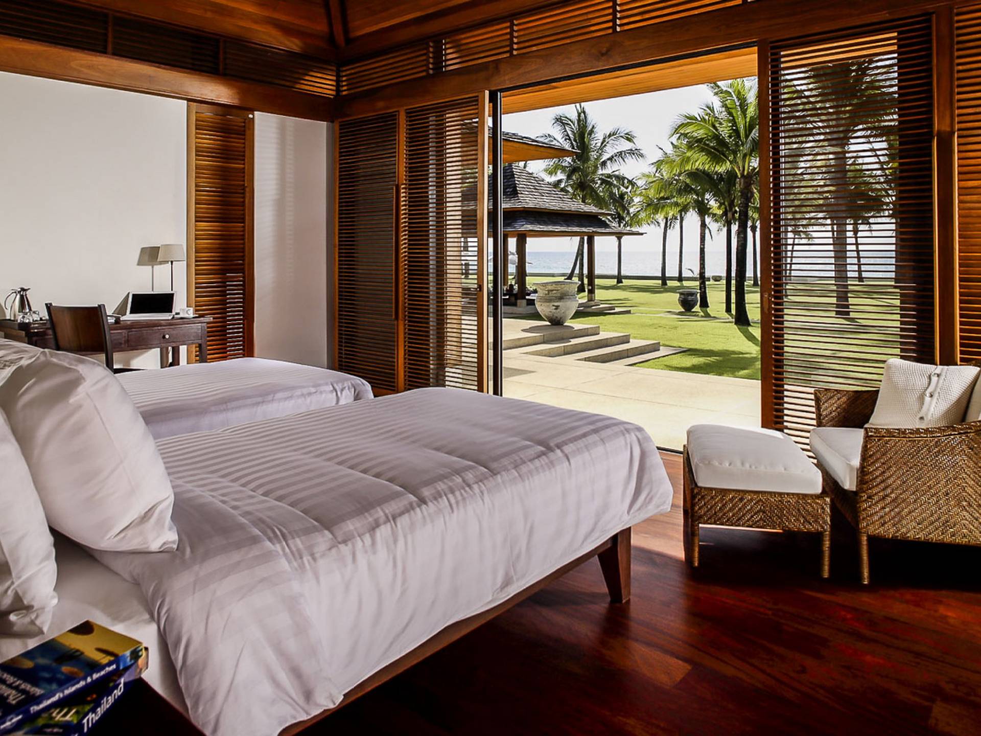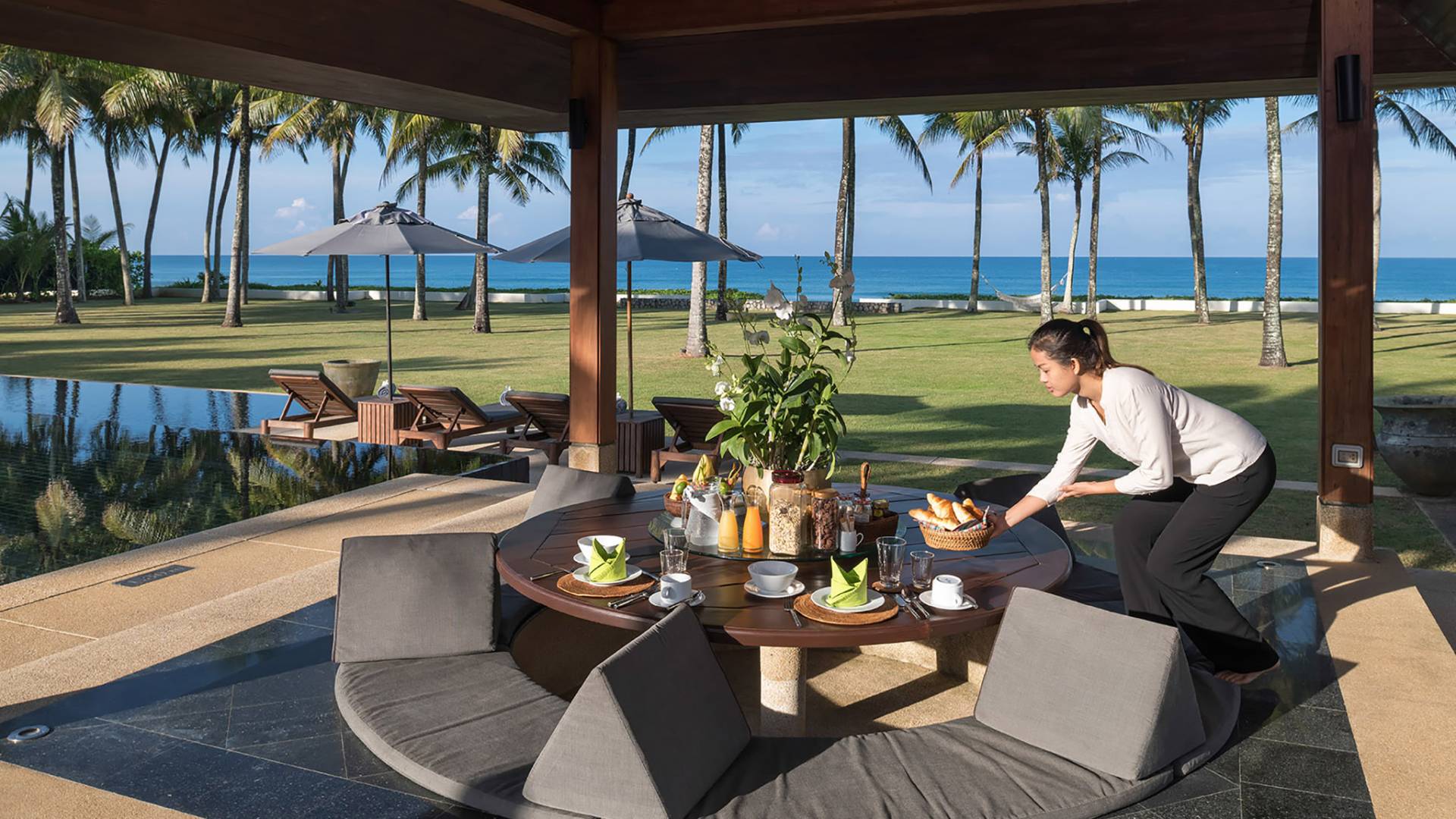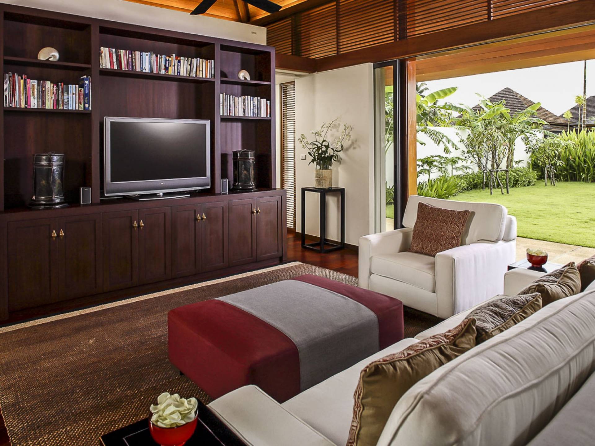 Villa Ananda a Jivana Beach Villas Natai è idealmente situata sulle incontaminate sabbie bianche di Natai Beach a soli 25 minuti a nord dell'aeroporto internazionale di Phuket, tramite il ponte Sarasin. La villa vanta 80 metri di spiaggia assoluta su quella che viene definita "fila dei milionari", un'esclusiva comunità di proprietà di lusso che attrae molti espatriati che vivono nella regione. Acque cristalline e dolci onde che lambiscono la riva caratterizzano questa striscia di costa straordinariamente bella, che è sostenuta da un tranquillo paesaggio rurale dove la pesca e l'agricoltura sono ancora il cardine della popolazione locale. Natai Beach è perfetta per il paddleboarding, il kayak e il nuoto e i resort di Aleenta e Iniala Beach, entrambi proprio lungo la sabbia, offrono ristoranti premiati.
