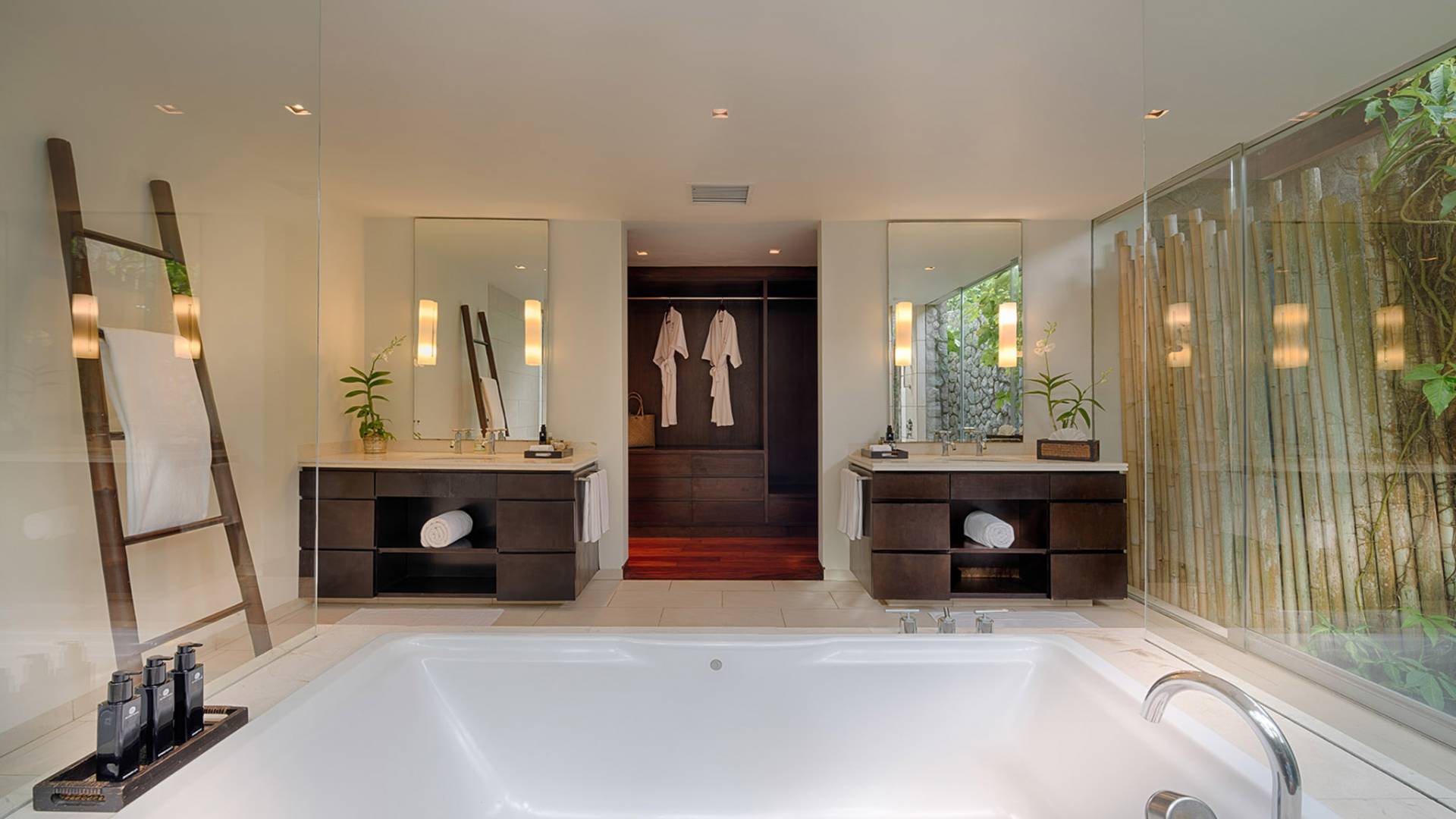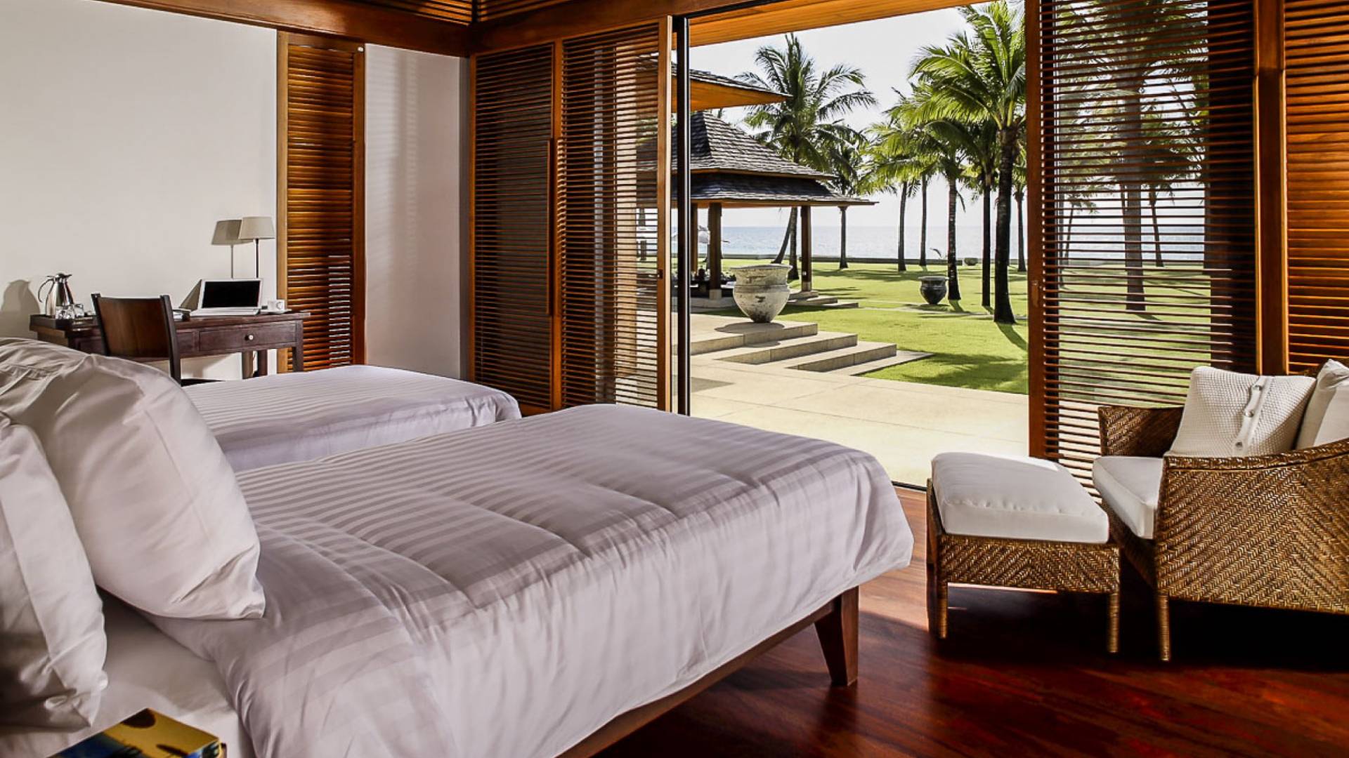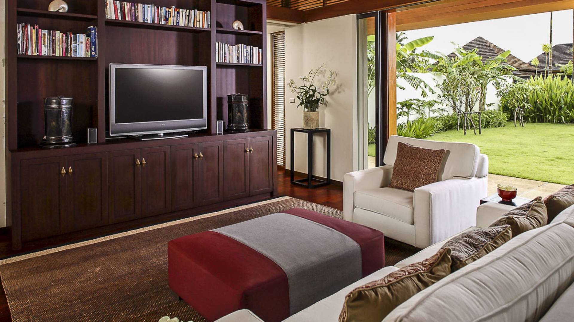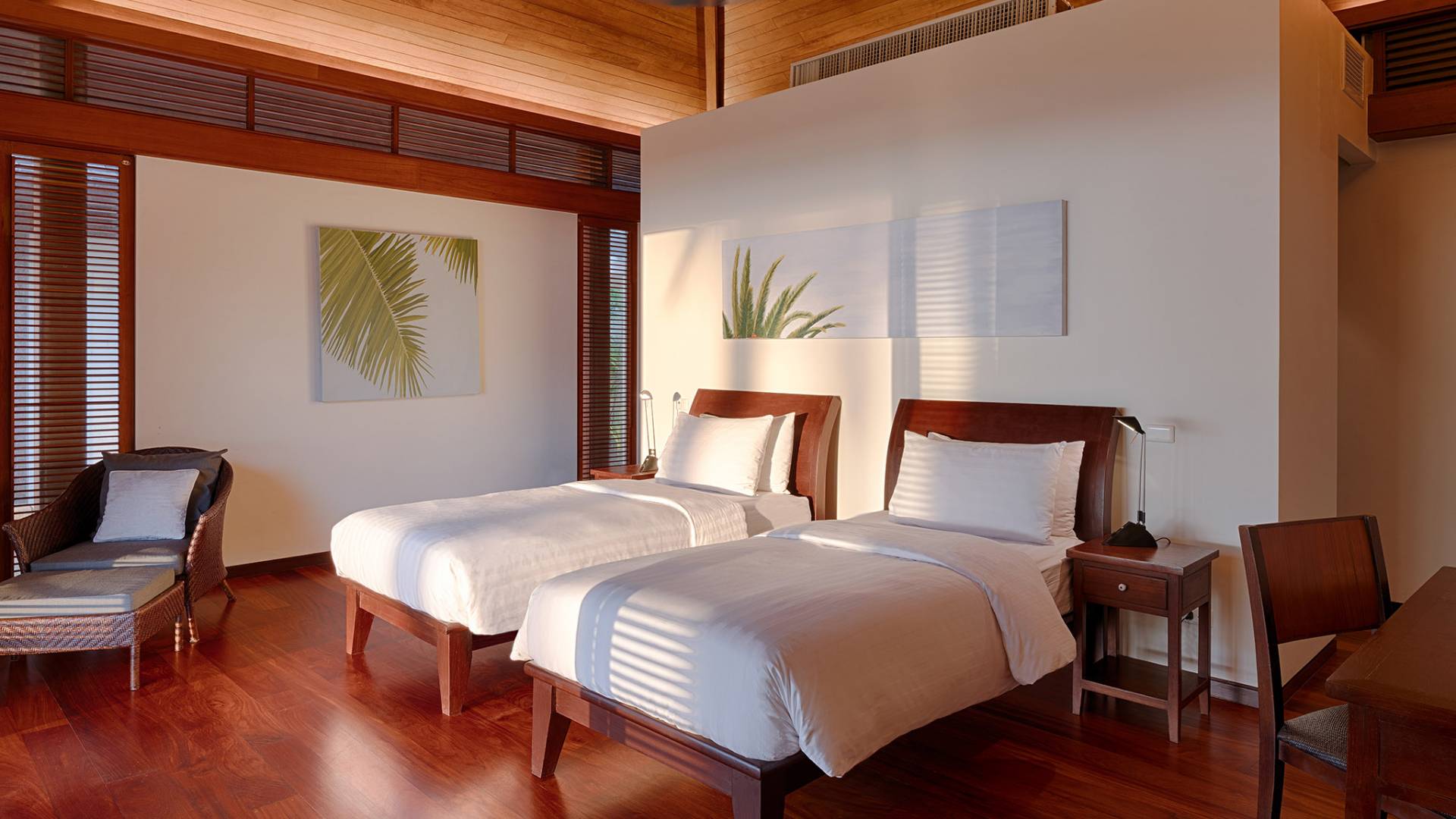 Villa Ananda a Jivana Beach Villas Natai è idealmente situata sulle incontaminate sabbie bianche di Natai Beach a soli 25 minuti a nord dell'aeroporto internazionale di Phuket, tramite il ponte Sarasin. La villa vanta 80 metri di spiaggia assoluta su quella che viene definita "fila dei milionari", un'esclusiva comunità di proprietà di lusso che attrae molti espatriati che vivono nella regione. Acque cristalline e dolci onde che lambiscono la riva caratterizzano questa striscia di costa straordinariamente bella, che è sostenuta da un tranquillo paesaggio rurale dove la pesca e l'agricoltura sono ancora il cardine della popolazione locale. Natai Beach è perfetta per il paddleboarding, il kayak e il nuoto e i resort di Aleenta e Iniala Beach, entrambi proprio lungo la sabbia, offrono ristoranti premiati.