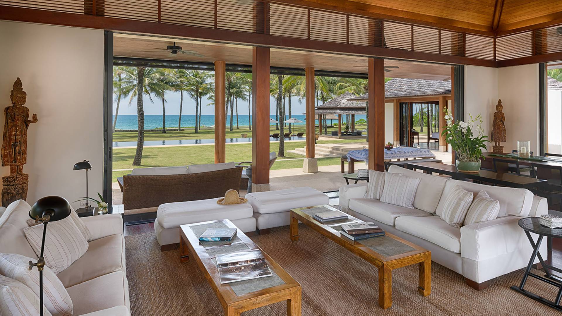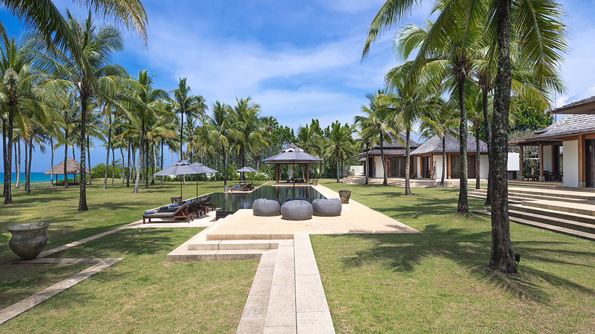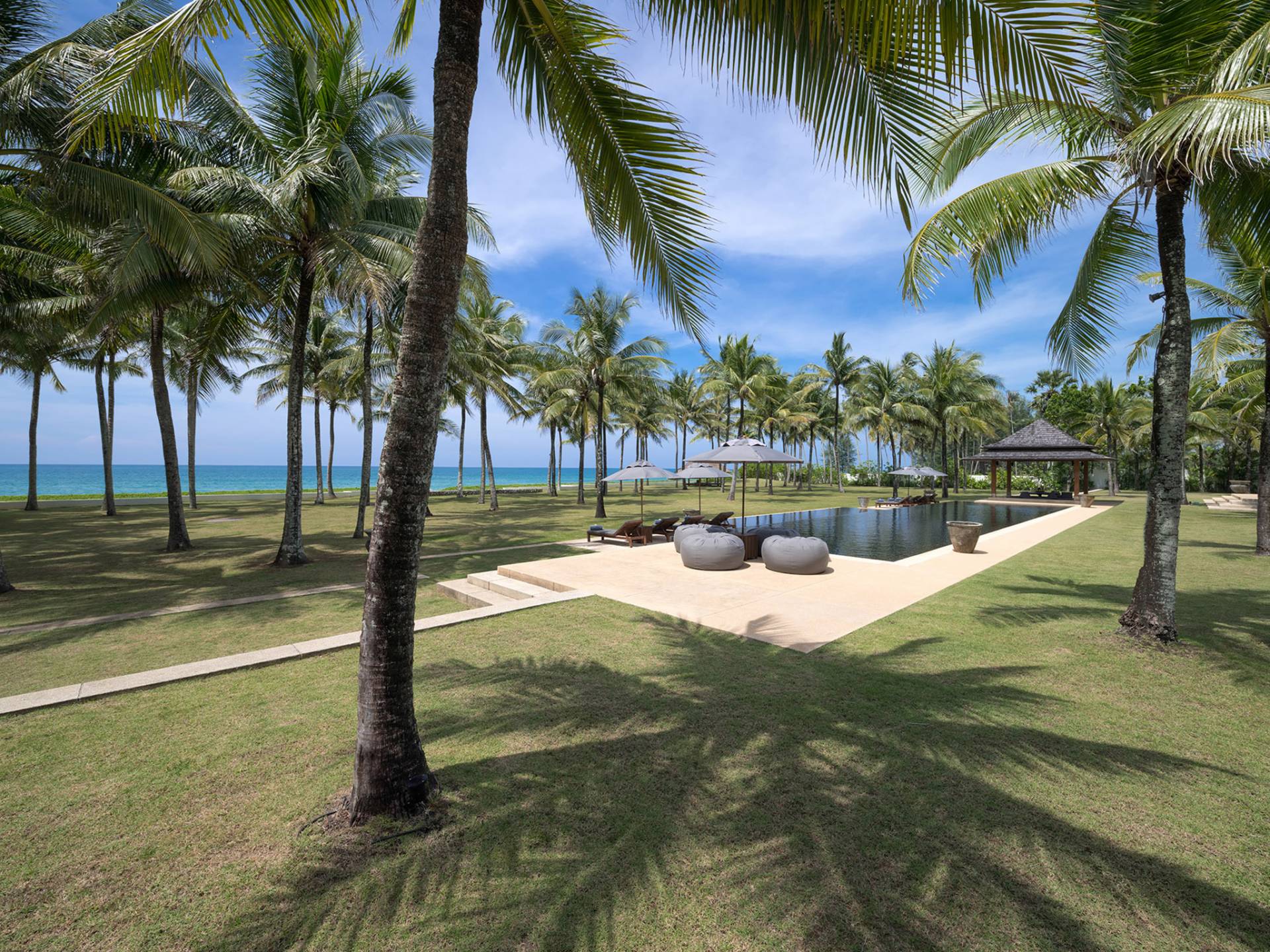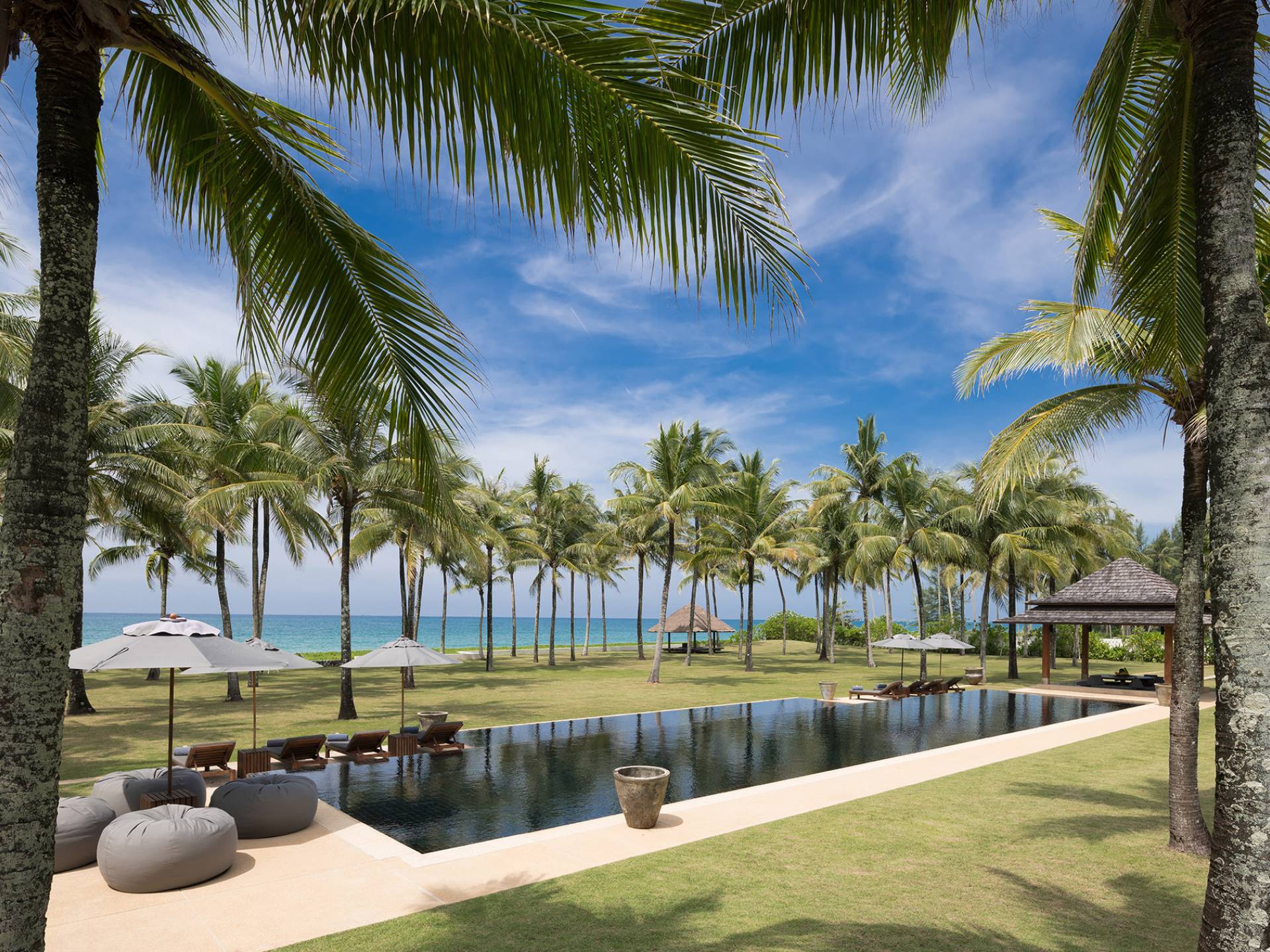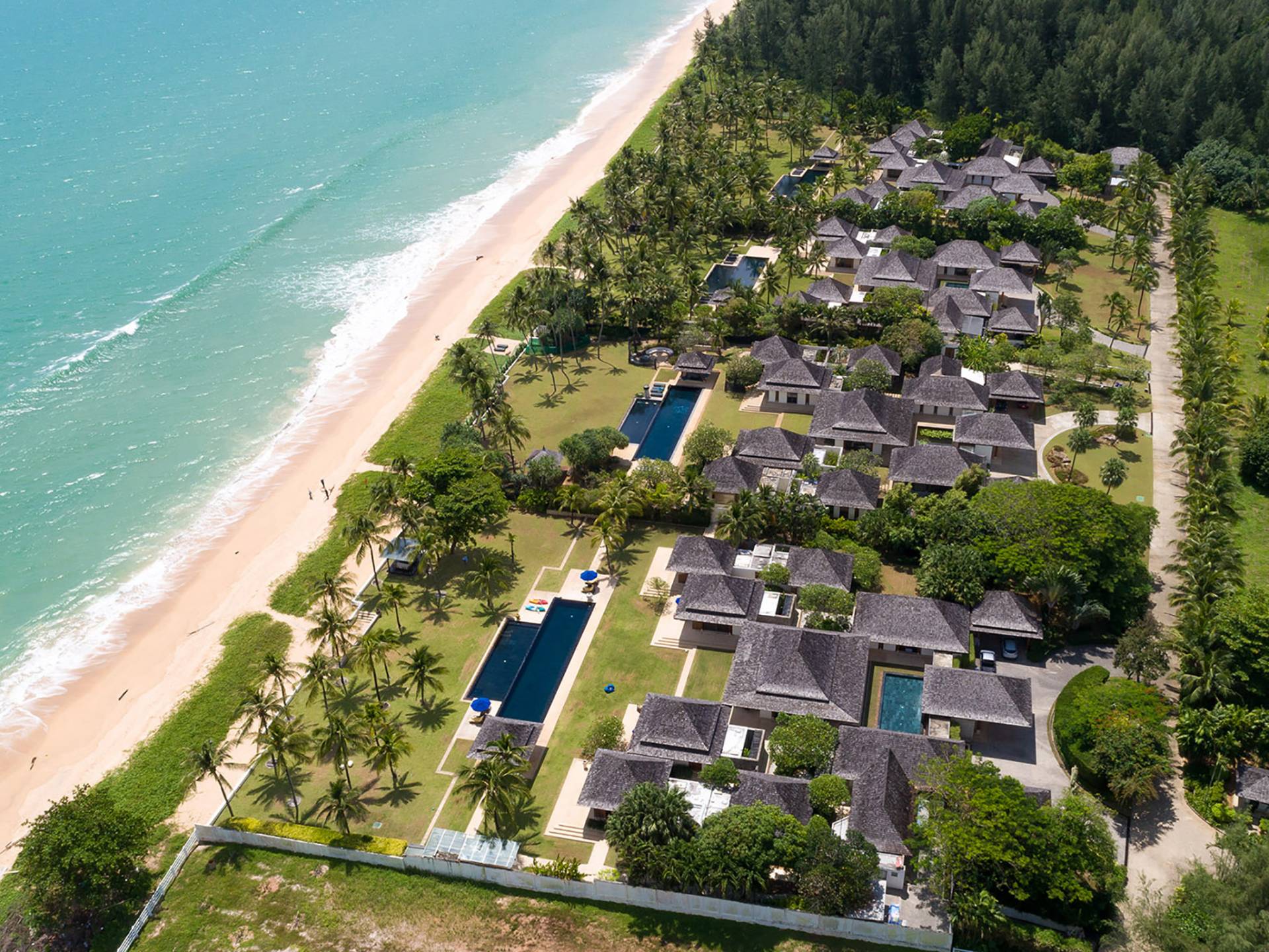 L'opulenza e la beatitudine sulla spiaggia definiscono la Villa Ananda con sette camere da letto al Jivana Beach Villas Natai si trova sulle sabbie bianche appartate di Natai Beach, a Phang Nga, a soli 25 minuti dall'aeroporto internazionale di Phuket. Parte dell'esclusivo Jivana Beach Villas Natai, questa villa vanta quattro padiglioni individuali distribuiti su 9.500 mq di proprietà fronte mare con ampie zone soggiorno e pranzo interne ed esterne, un'immensa cucina, una camera familiare, una piscina olimpionica di 25 metri e un vasto giardino tropicale con prati ben curati. Il team completo del personale comprende uno chef thailandese privato, un manager della villa, un giardiniere, un servizio di pulizia, personale di servizio, un team di portineria e un servizio di sicurezza 24 ore su 24. Perfetto per famiglie, gruppi di amici o eventi speciali.