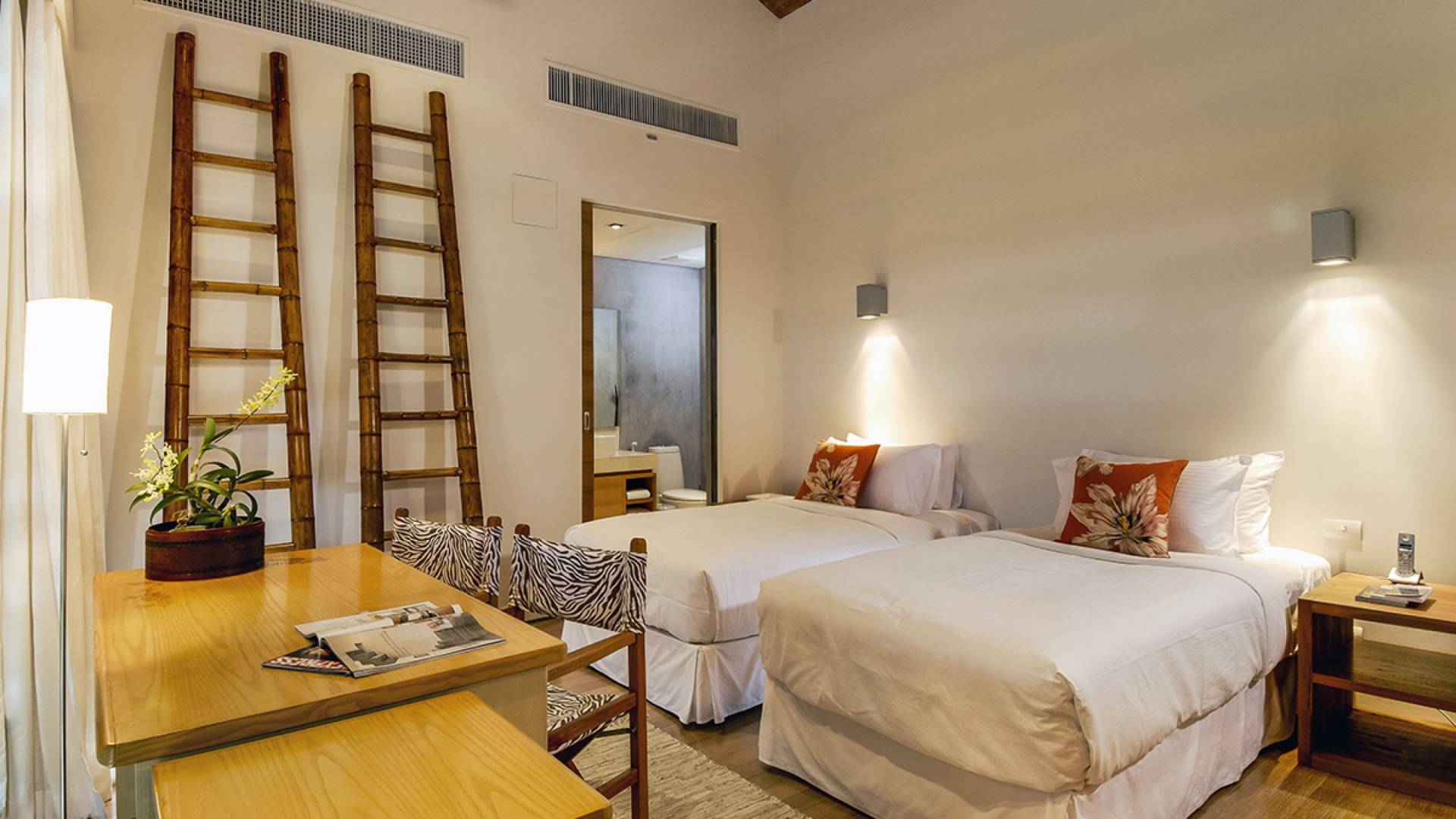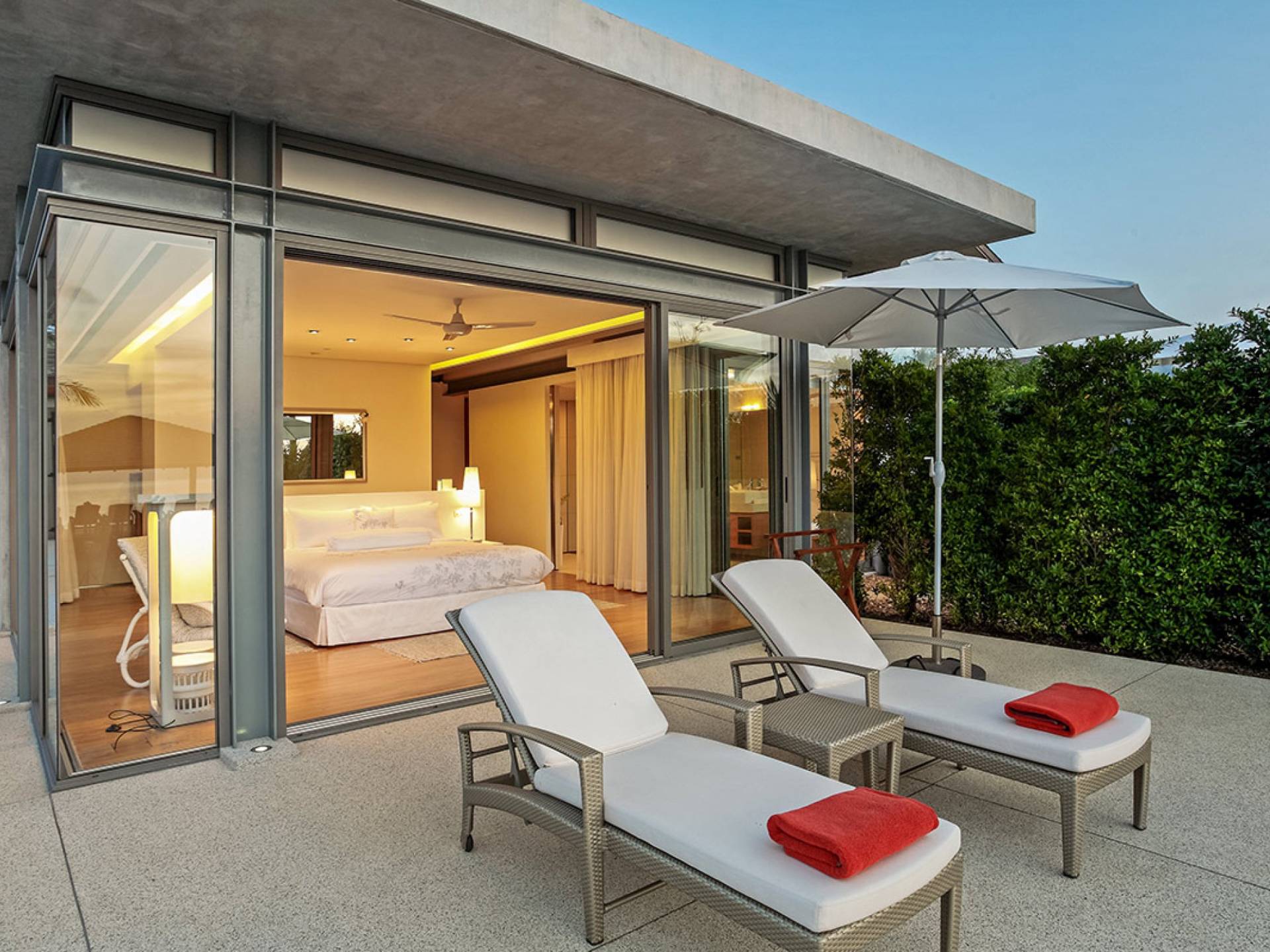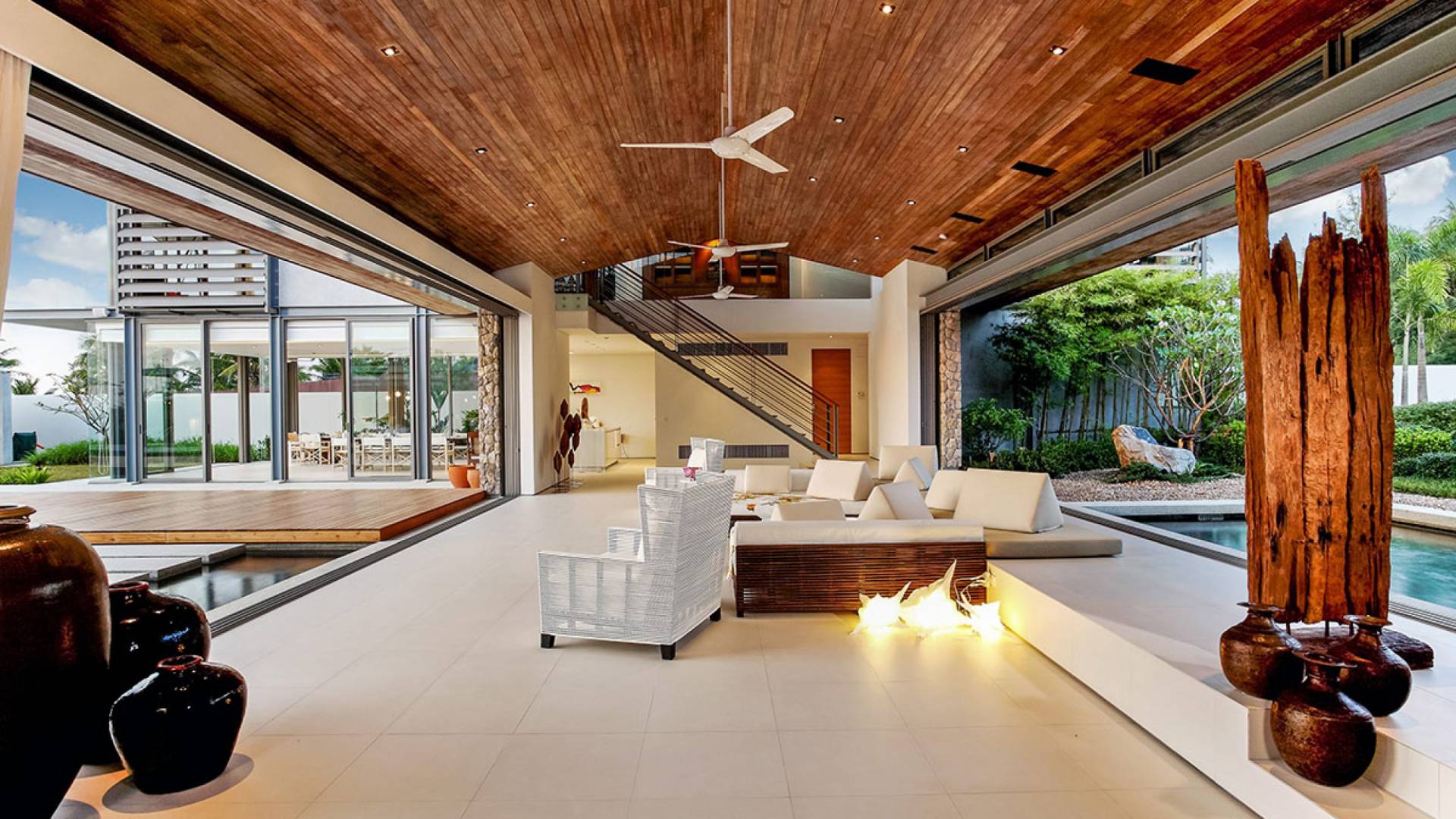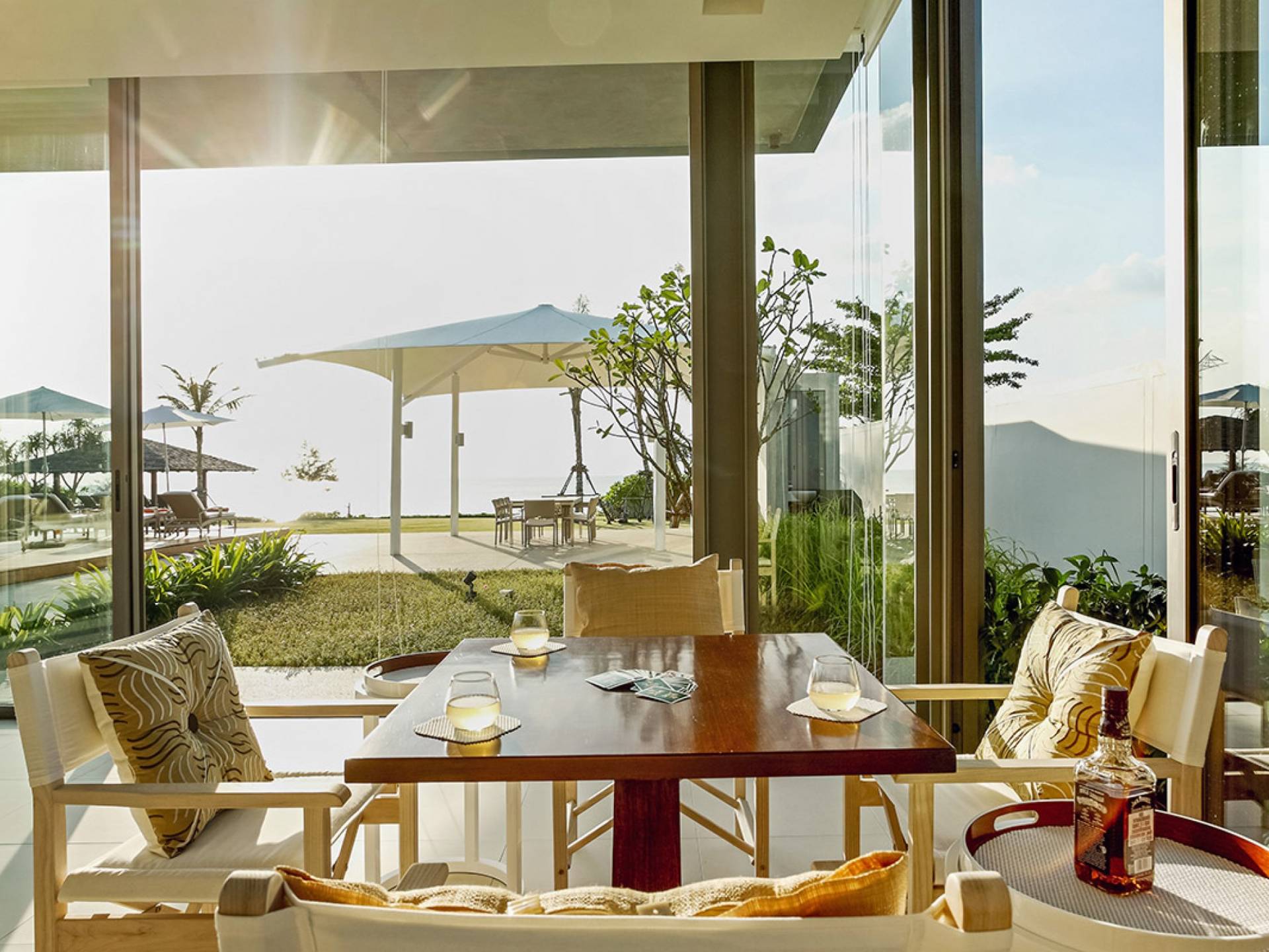 Disposta a forma di U che avvolge una piscina centrale, Villa Malee Sai offre magnifiche viste sul mare sconfinate. Situato al centro della villa, proprio dietro la piscina a sfioro privata, l'elegante zona giorno a pianta aperta presenta porte in vetro dal pavimento al soffitto che si aprono completamente per far scorrere la brezza oceanica. L'accesso a tutte le aree della villa, sia all'interno che all'esterno, avviene attraverso questo spazio cardine. La sala TV a lato conduce all'ala monopiano della villa con tre camere da letto, di cui una master suite, che si estende lungo la lunghezza della piscina verso il mare. La zona pranzo e la cucina per gli ospiti si trovano al piano terra dell'ala a due piani opposte, con una seconda master suite e due spaziose e confortevoli camere da letto per gli ospiti sopra.