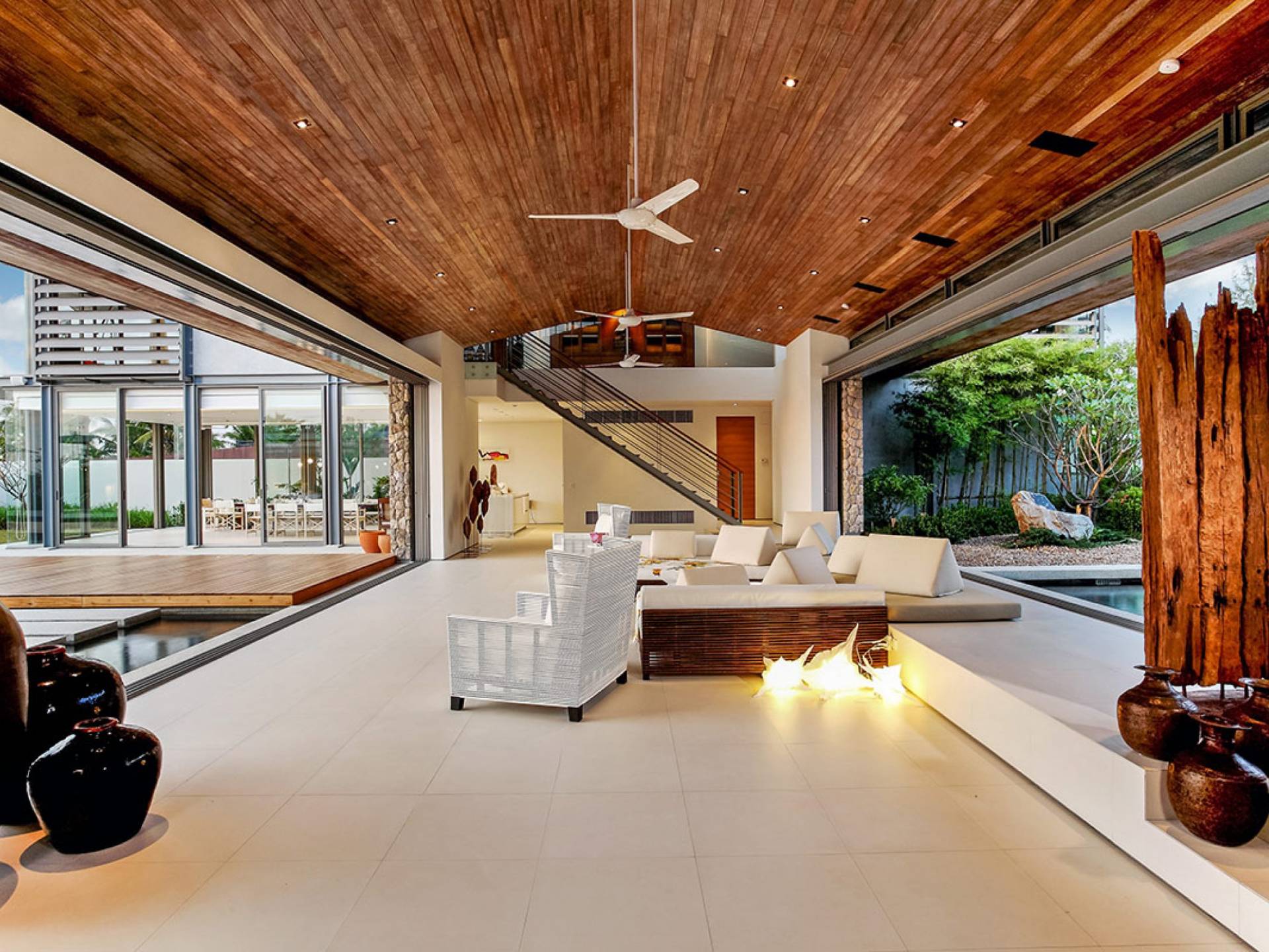 Gli spazi interni di Villa Malee Sai sono caldi e invitanti, con decorazioni colorate che completano i vivaci dintorni tropicali. Nella parte centrale della villa, sotto un tetto rialzato, si trova il soggiorno, arredato con un elegante divano bianco per rilassarsi in un fresco comfort ammirando la piscina e il mare. Una parte della sala è dedicata al gioco, con biliardino e giochi, e si apre completamente sulla terrazza della piscina davanti e sulla piscina riflettente dietro per un'atmosfera ventilata indoor-outdoor. In alternativa, può essere chiuso e raffreddato con aria condizionata.